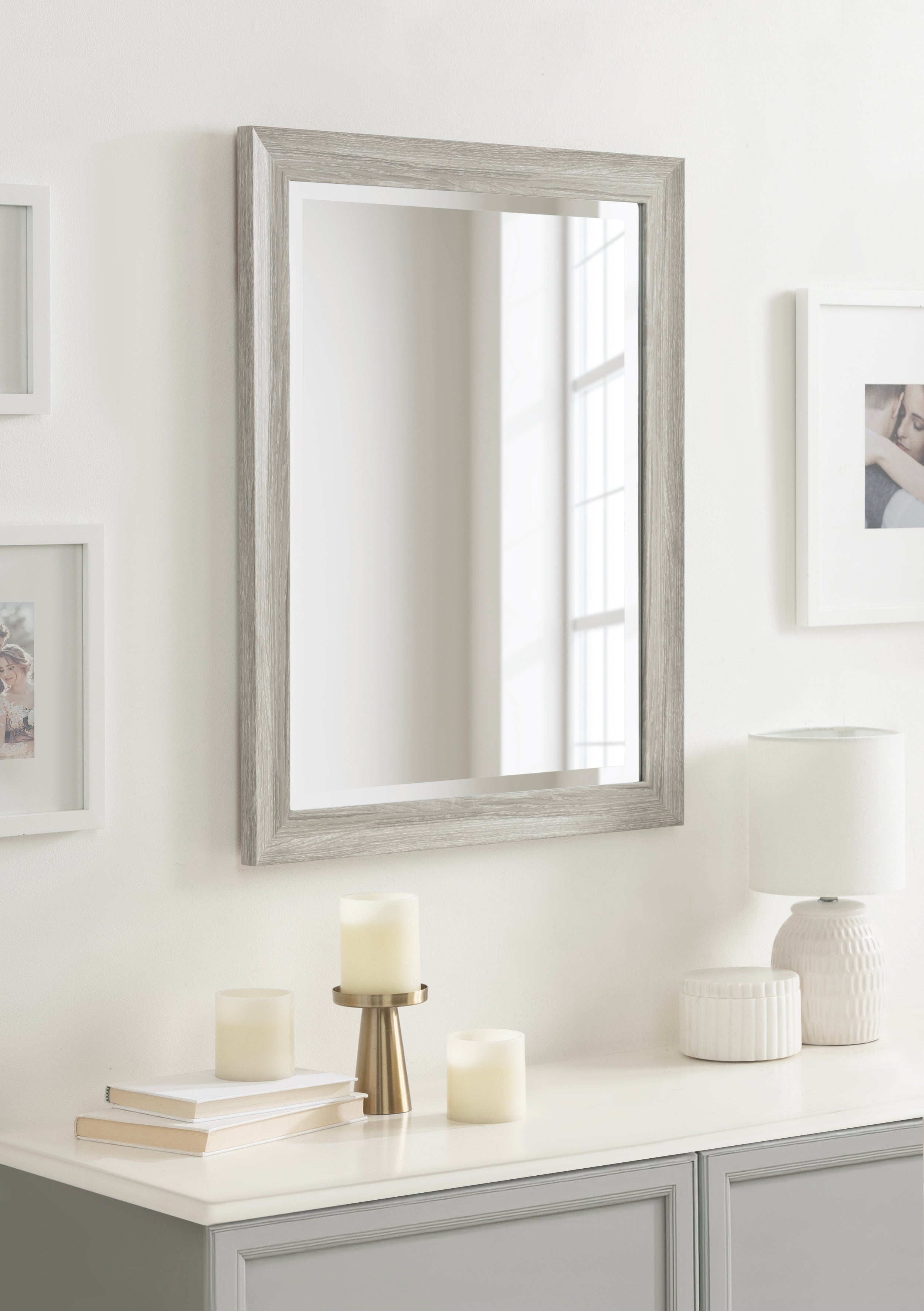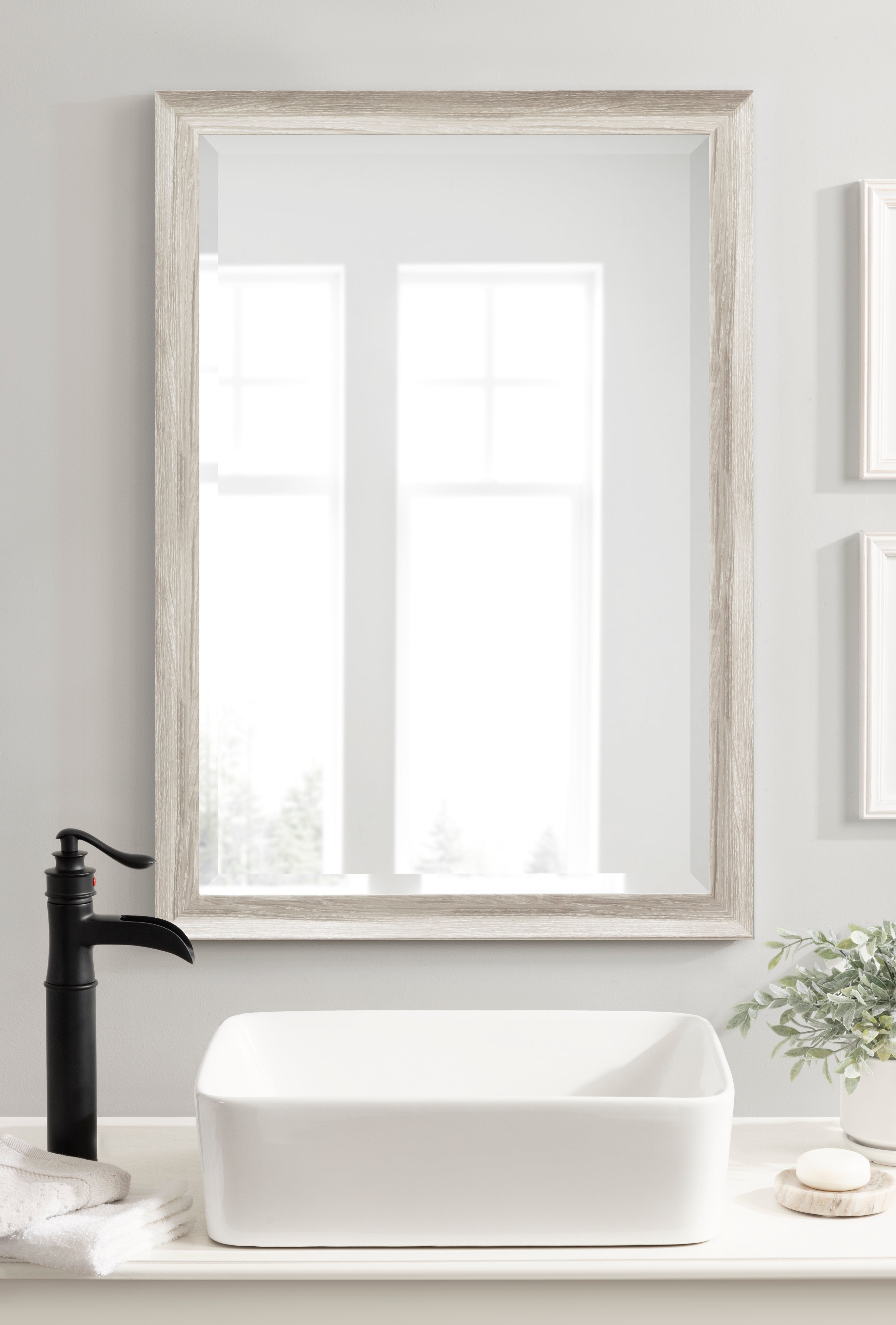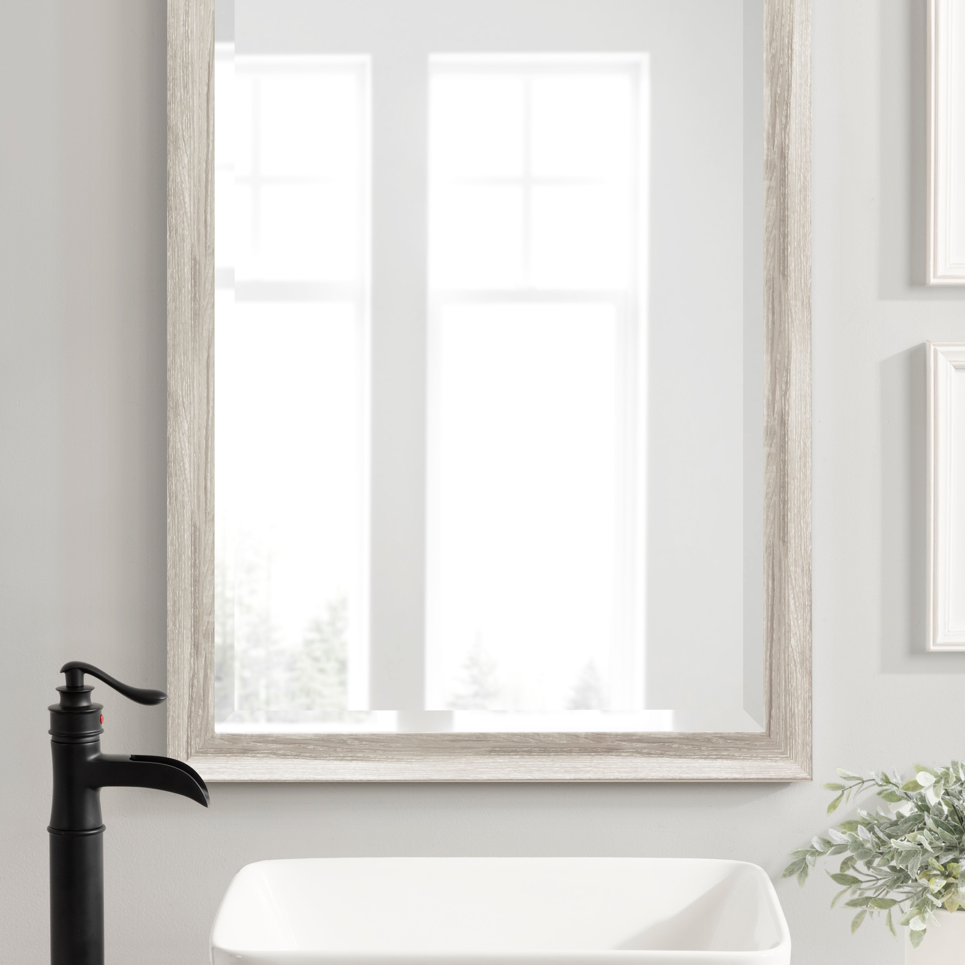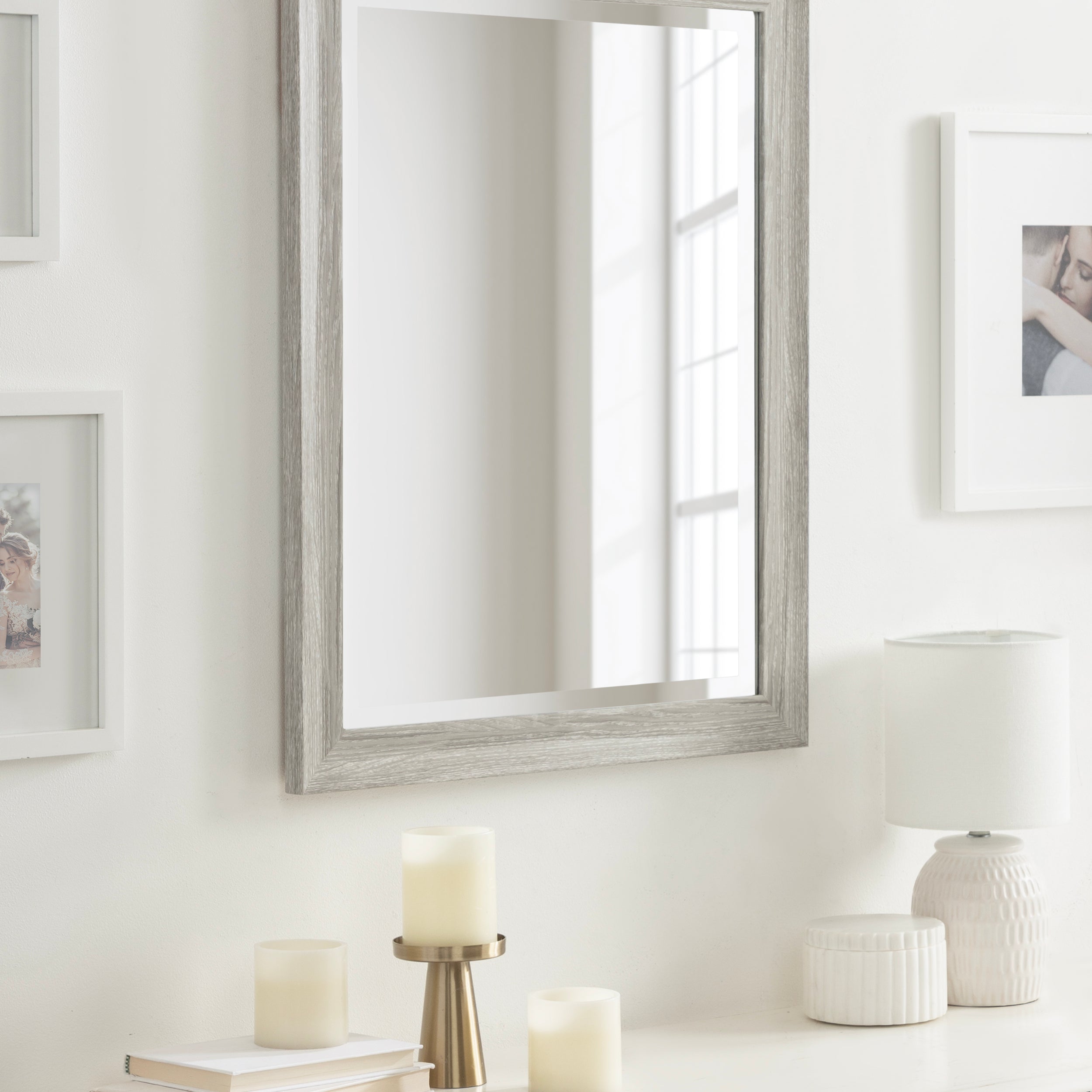 Using a mirror to dress up a part of your home is a simple choice with the Dalphia rectangular wall mirror by Kate and Laurel. It is a beautiful addition over the sink and an essential home decor element for everyday bathroom use. It's the perfect traditional selection for your bathroom either as a tasteful wall accent or a practical vanity mirror - use two for a great look over a double vanity. An easy way to revamp a space, the Dalphia frame has the perfect dimensions to add a stylish statement to a bathroom vanity, hallway, bedroom, or living room. You could even place two on adjacent walls for opening up space in any smaller room. The frame is made of a sturdy polystyrene material with a lovely wood grain style.
