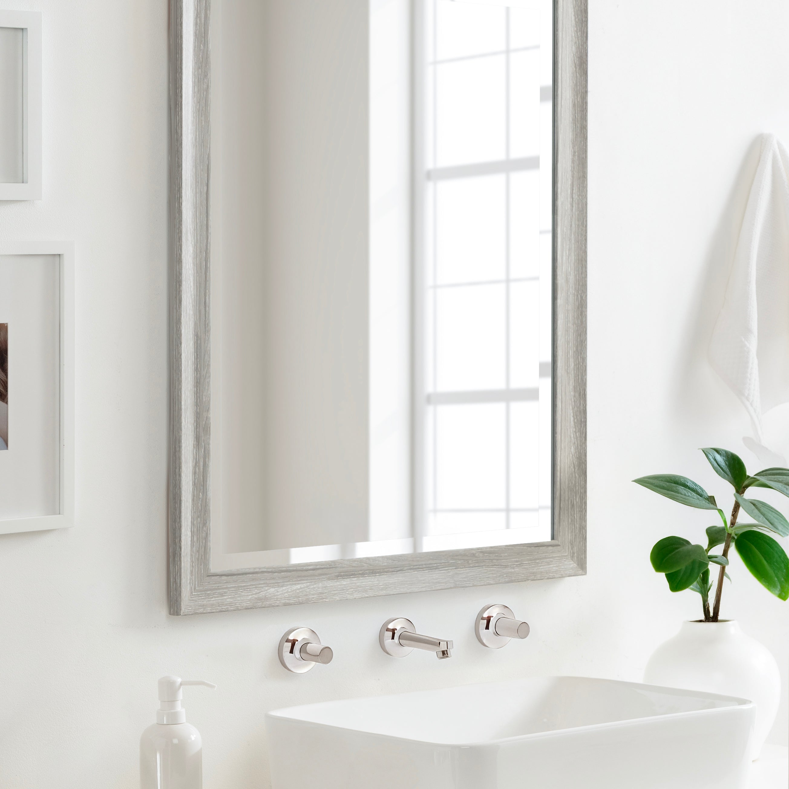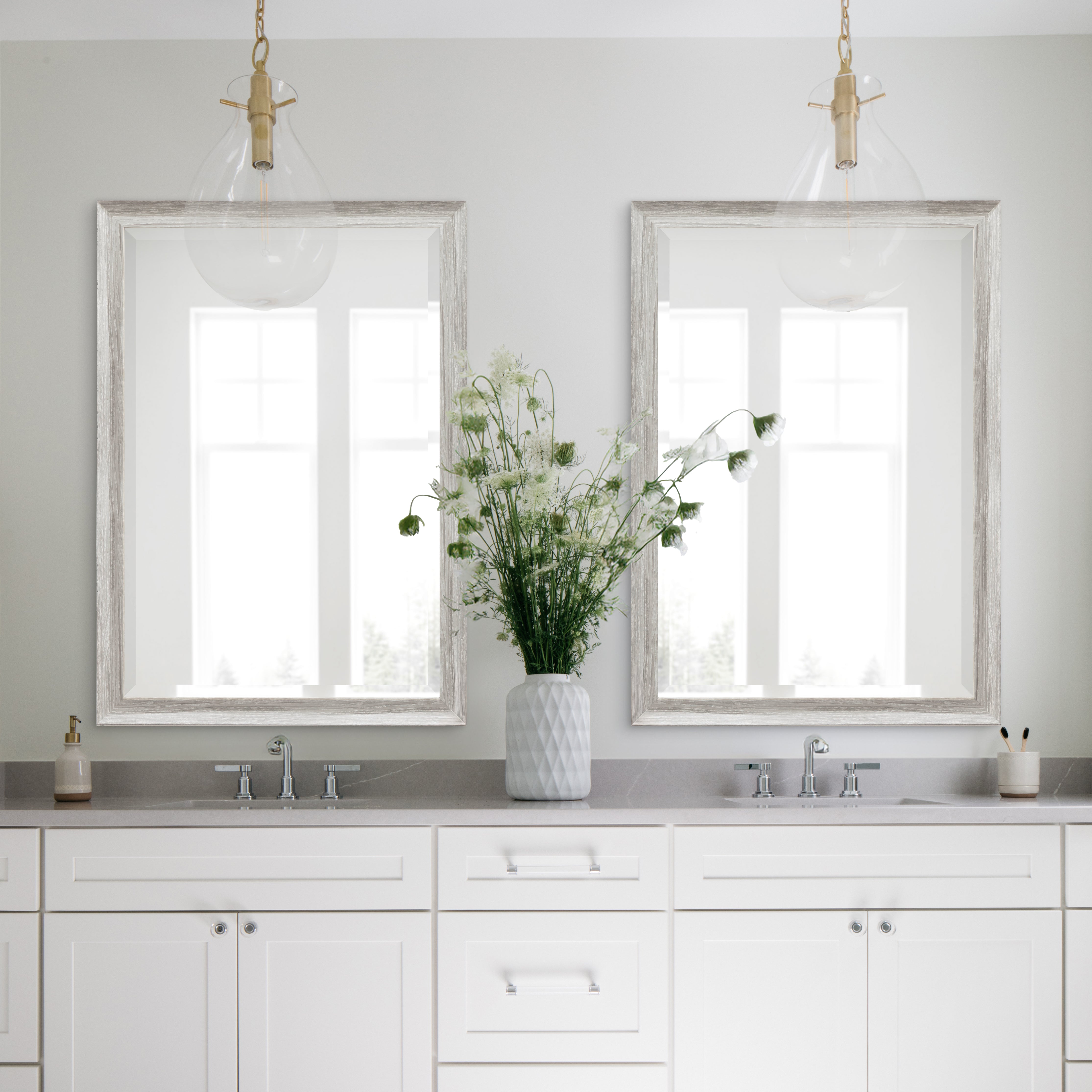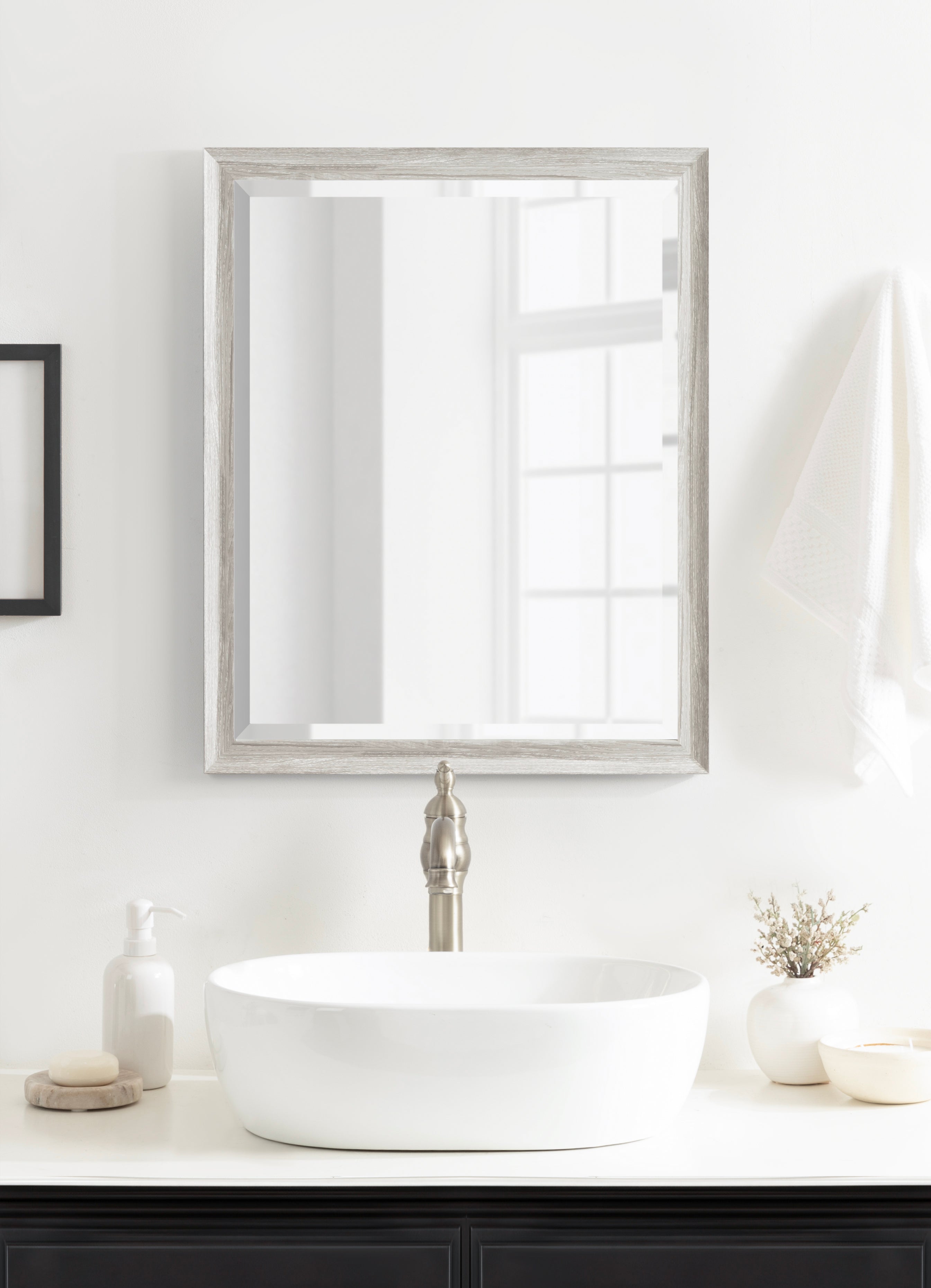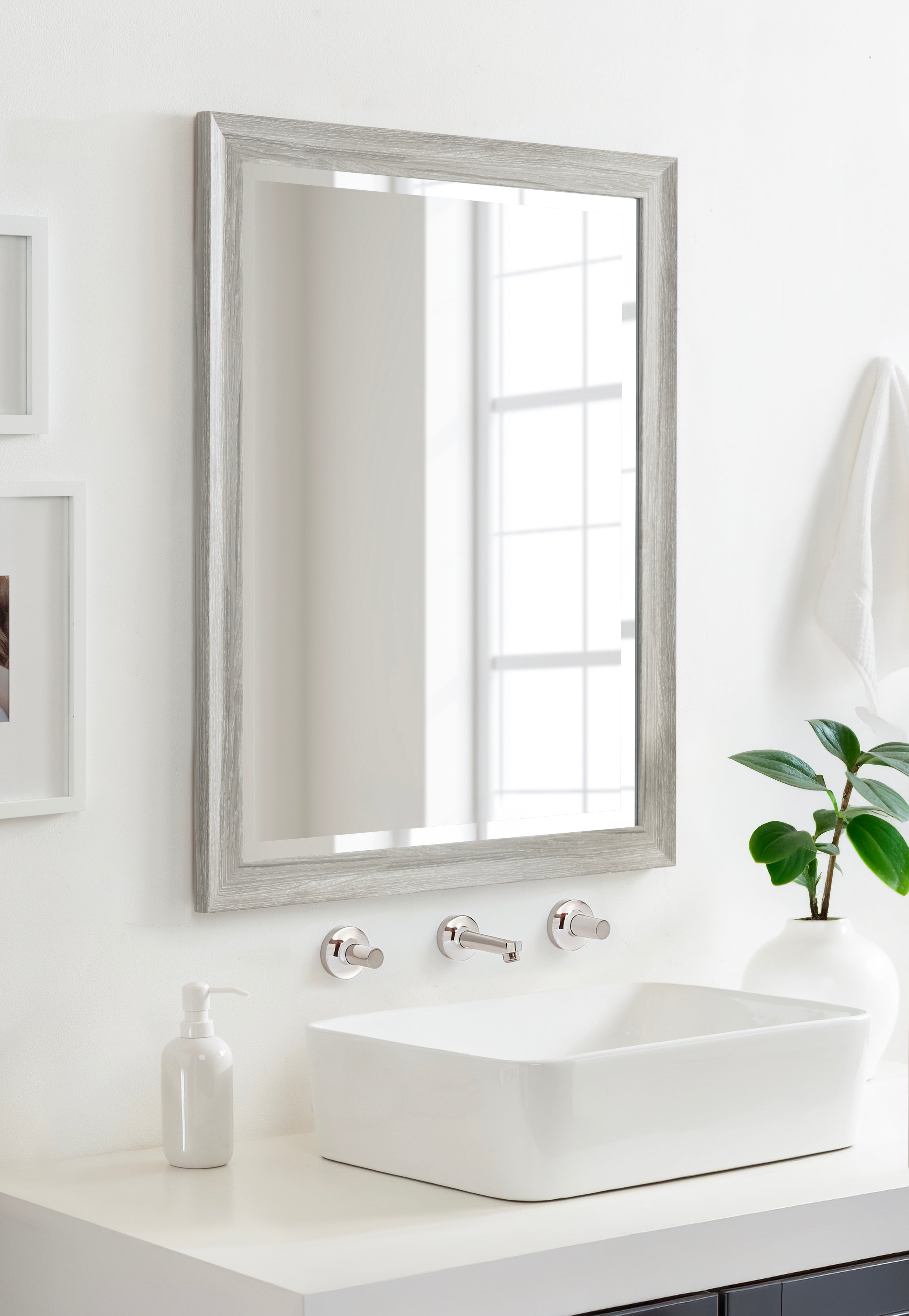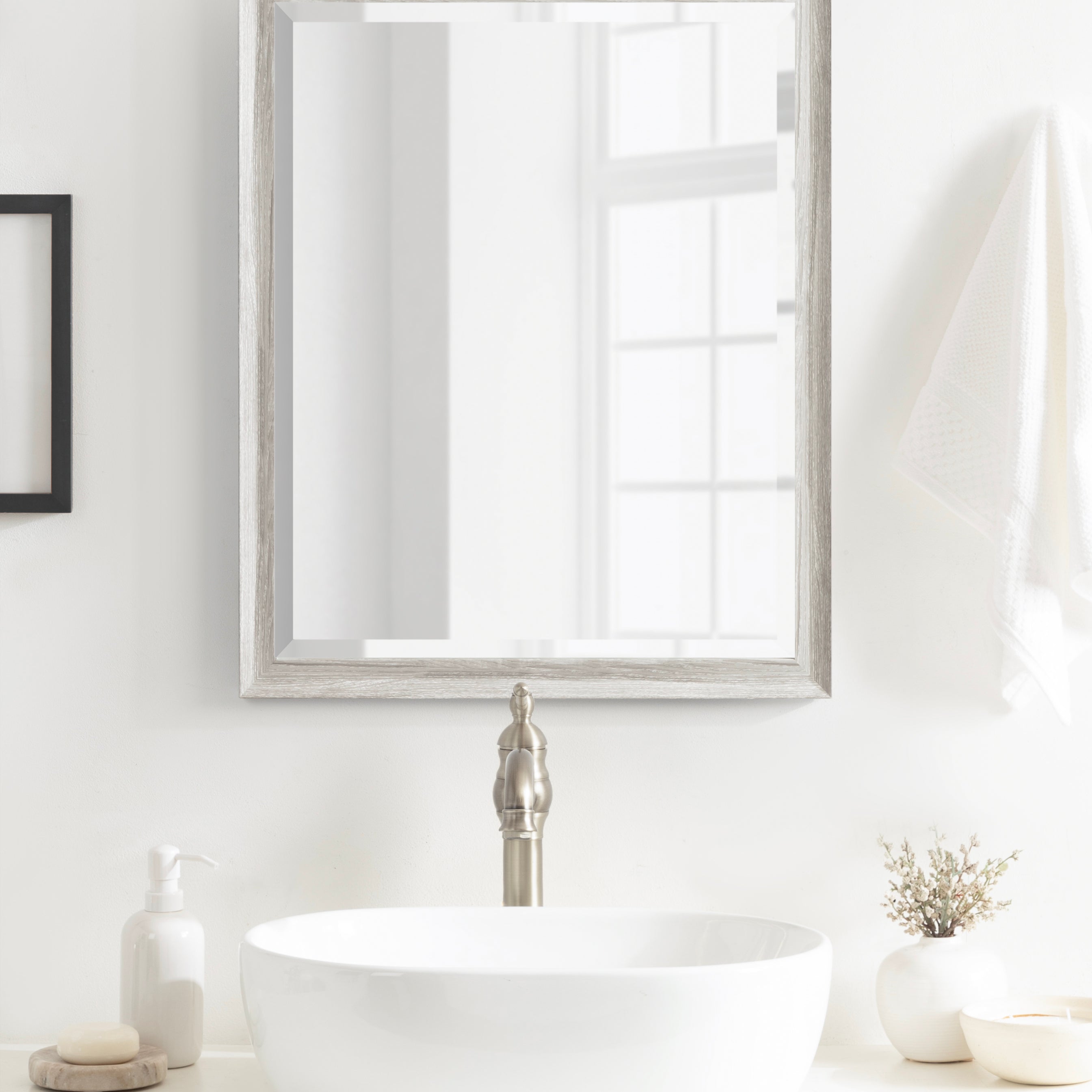 Using a mirror to dress up a part of your home is a simple choice with the Dalphia rectangular wall mirror by Kate and Laurel. It is a beautiful addition over the sink and an essential home decor element for everyday bathroom use. It's the perfect traditional selection for your bathroom either as a tasteful wall accent or a practical vanity mirror - use two for a great look over a double vanity. An easy way to revamp a space, the Dalphia frame has the perfect dimensions to add a stylish statement to a bathroom vanity, hallway, bedroom, or living room. You could even place two on adjacent walls for opening up space in any smaller room. The frame is made of a sturdy polystyrene material with a lovely wood grain style.