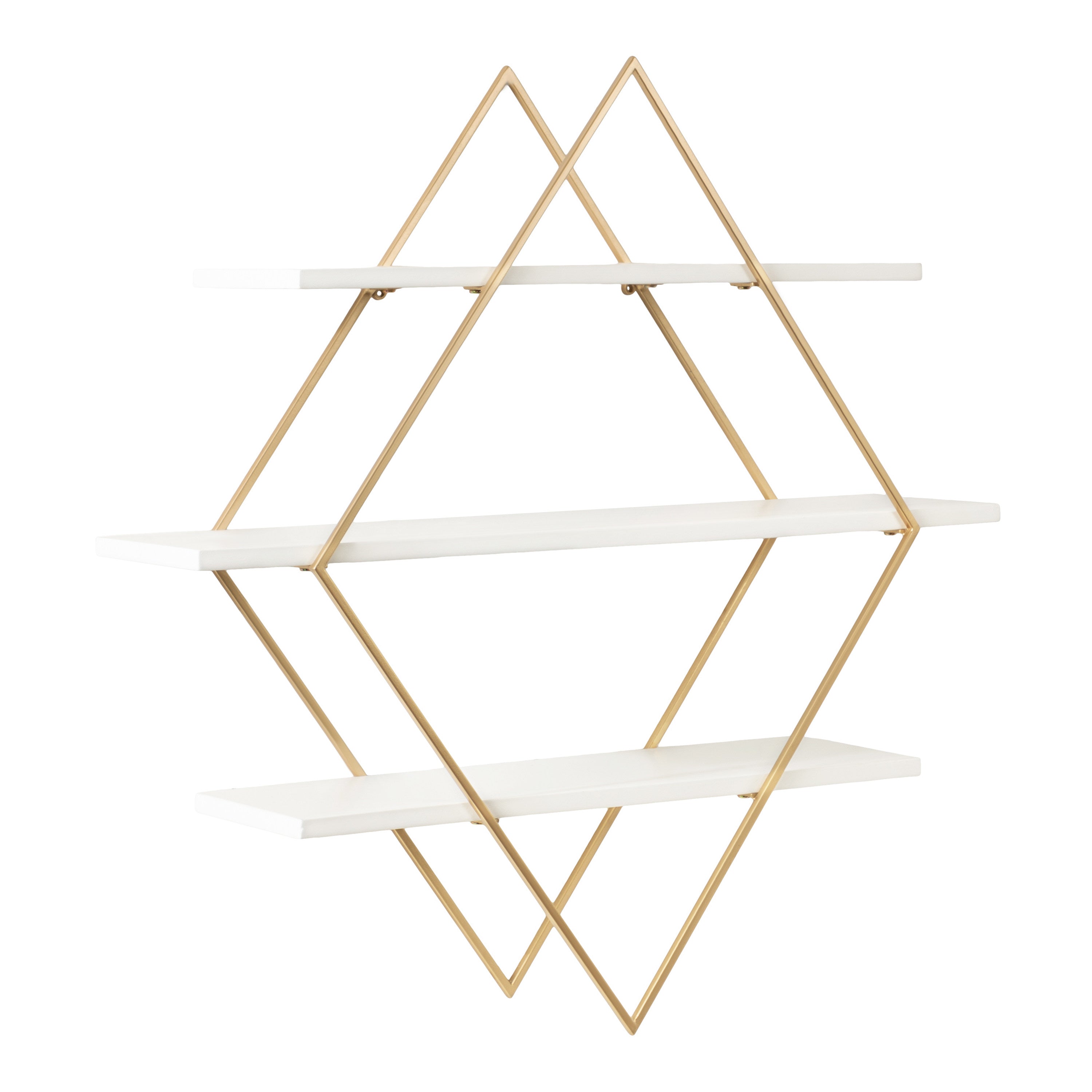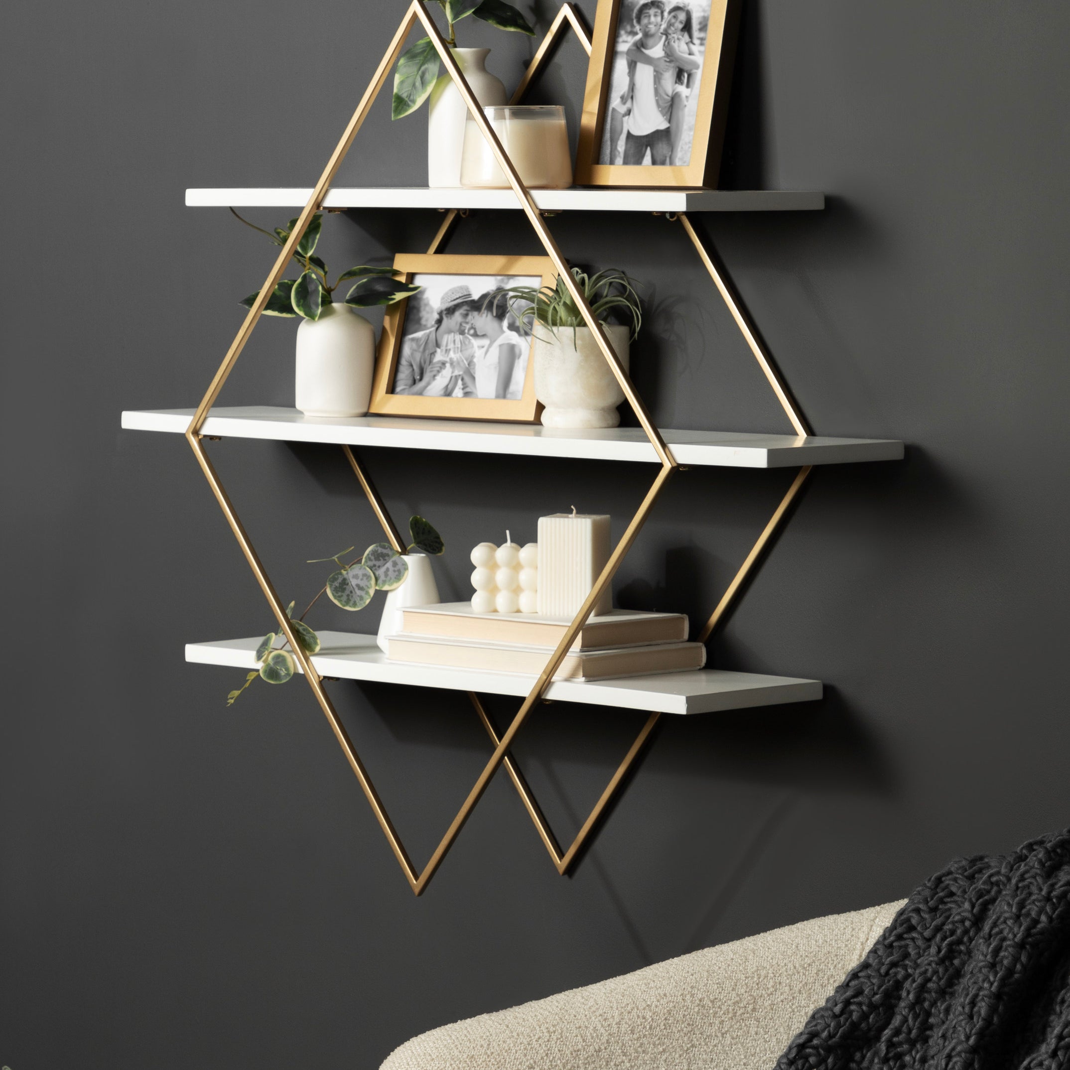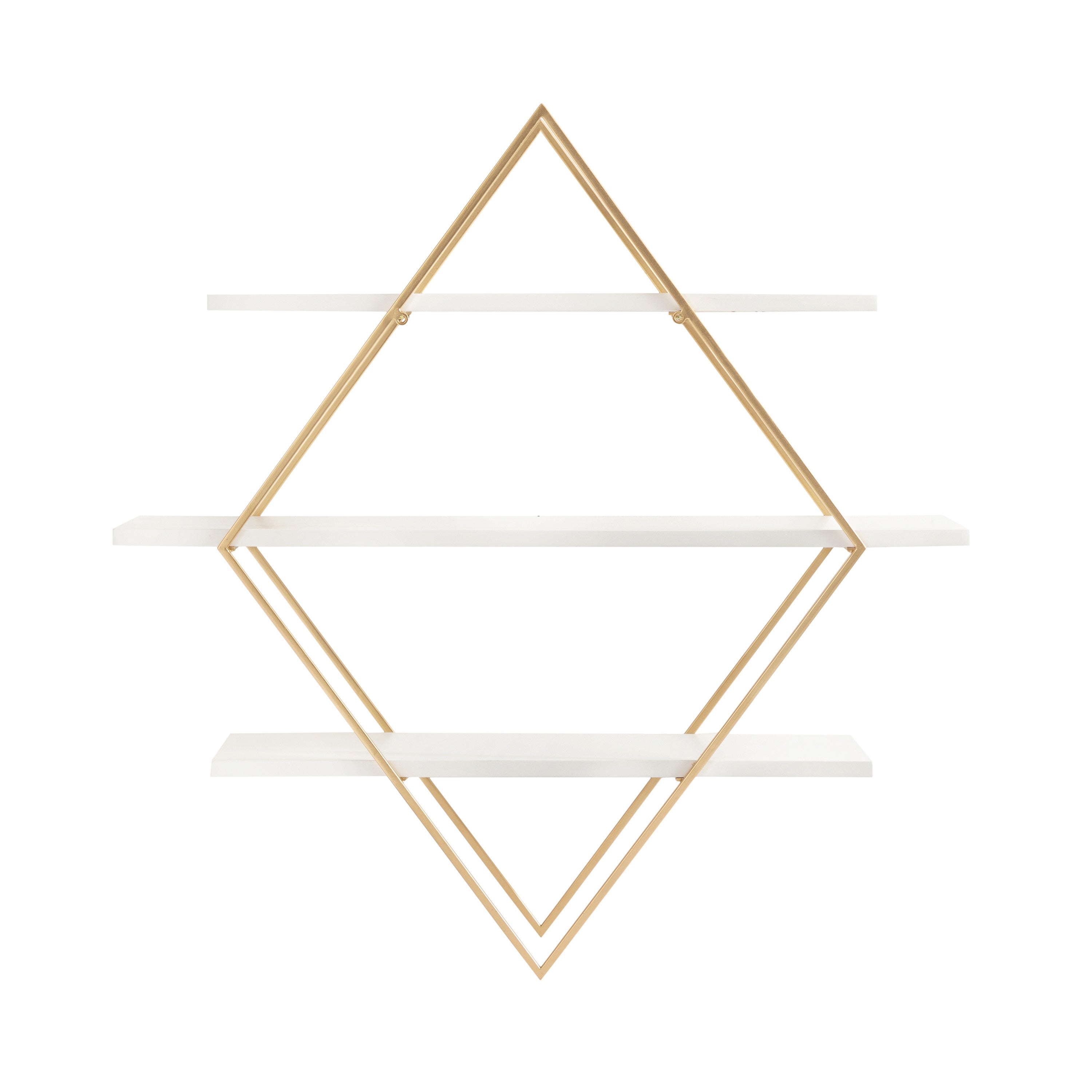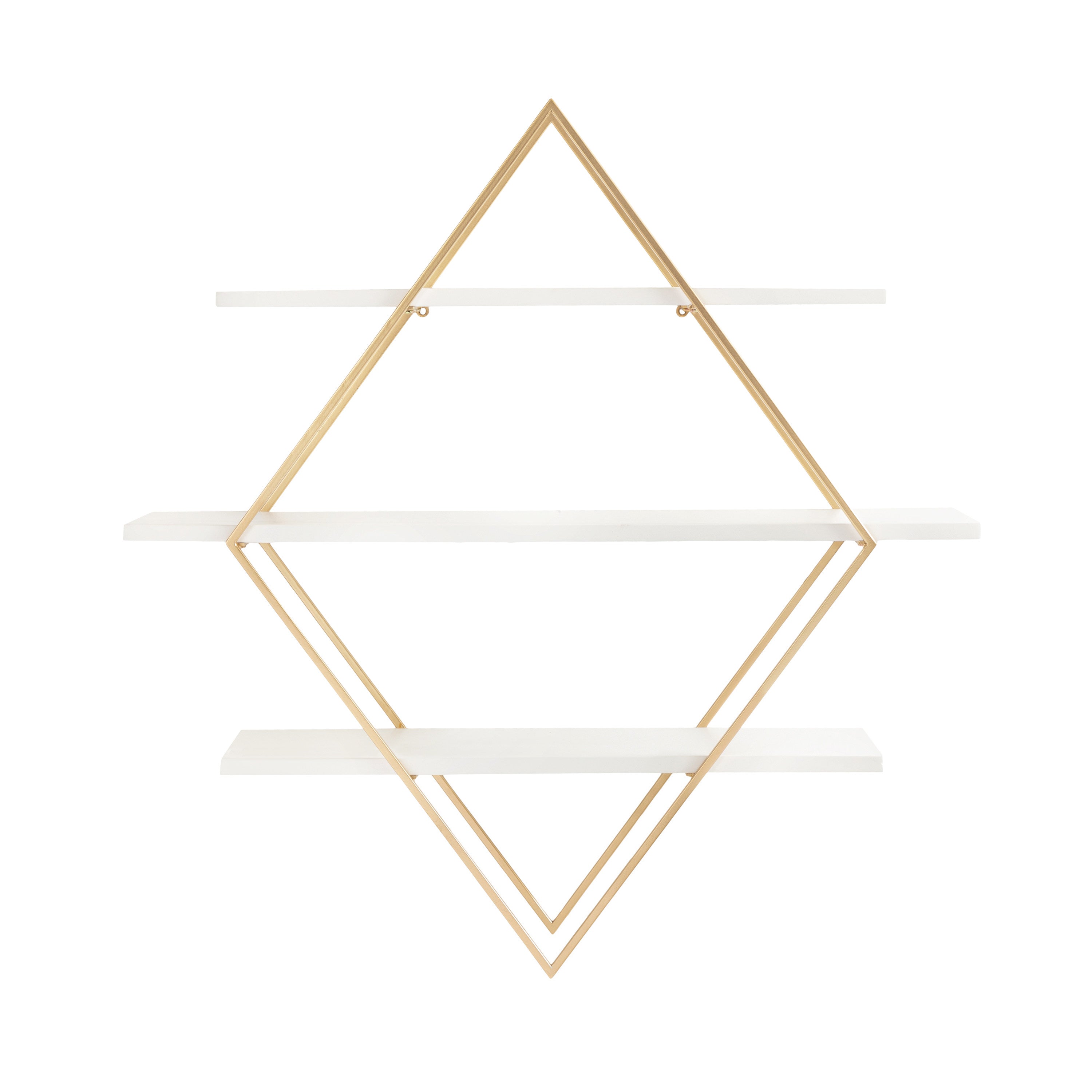 Create an unforgettable wall decor solution while also providing your home with space-saving storage with the Daxton diamond wall shelf. Inspired by sleek, elegant glamour, the Daxton wall shelf features sturdy wooden shelves, nestled in a sturdy metal frame with an elegant finish. Hang the chic wall shelf as a decorative, space-saving storage solution in your living room, bedroom, entryway, dining room, home office, or kitchen.