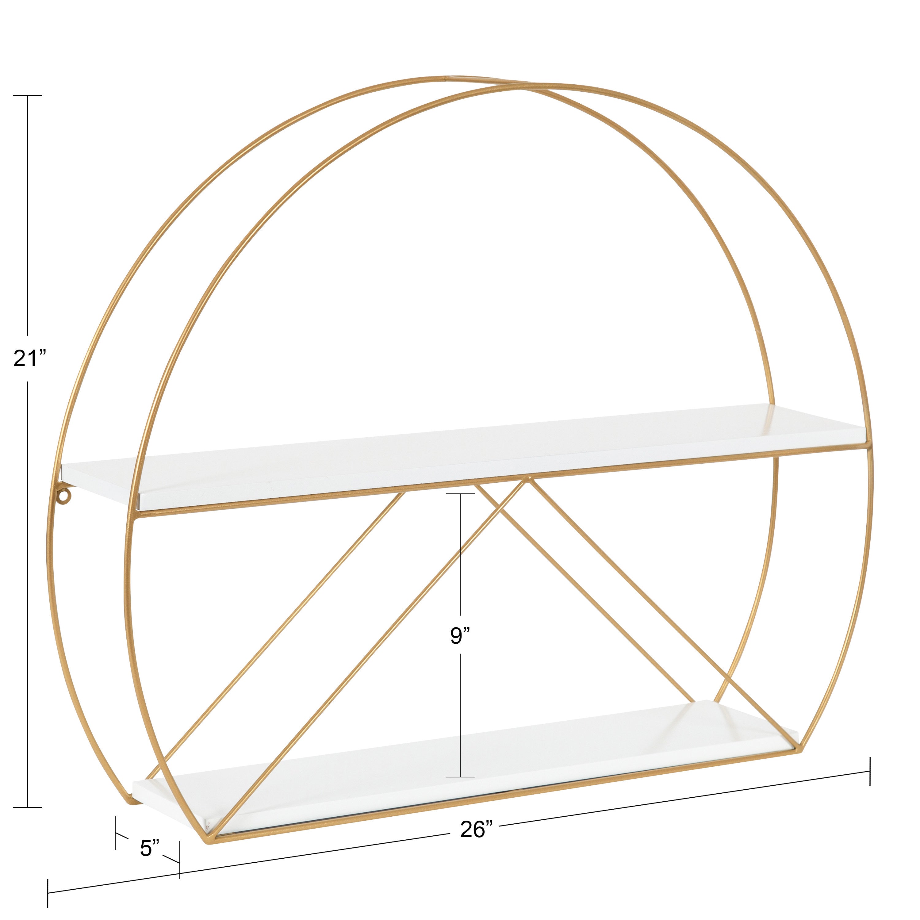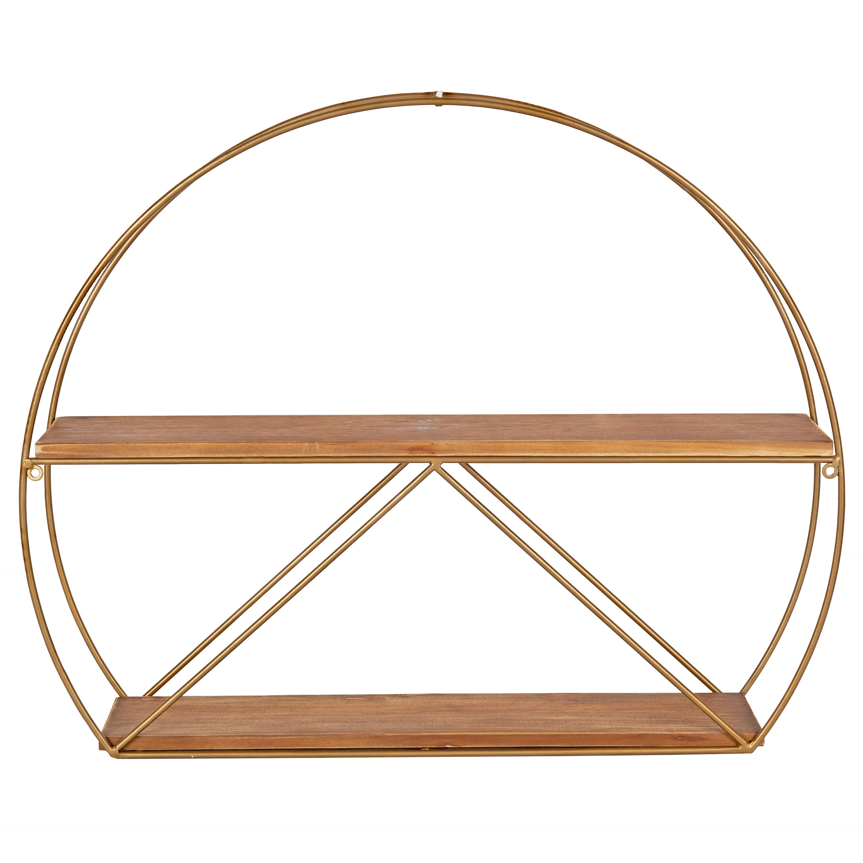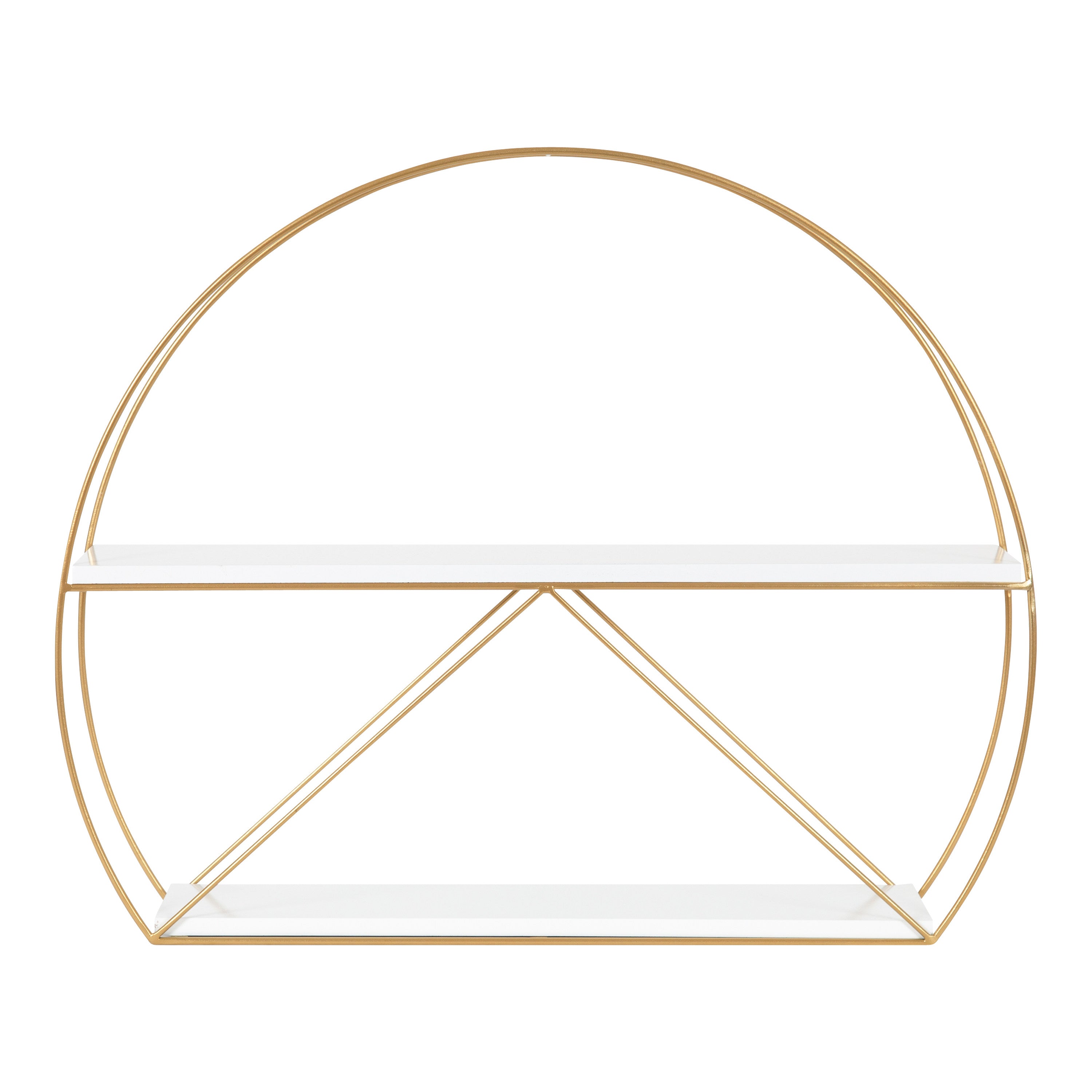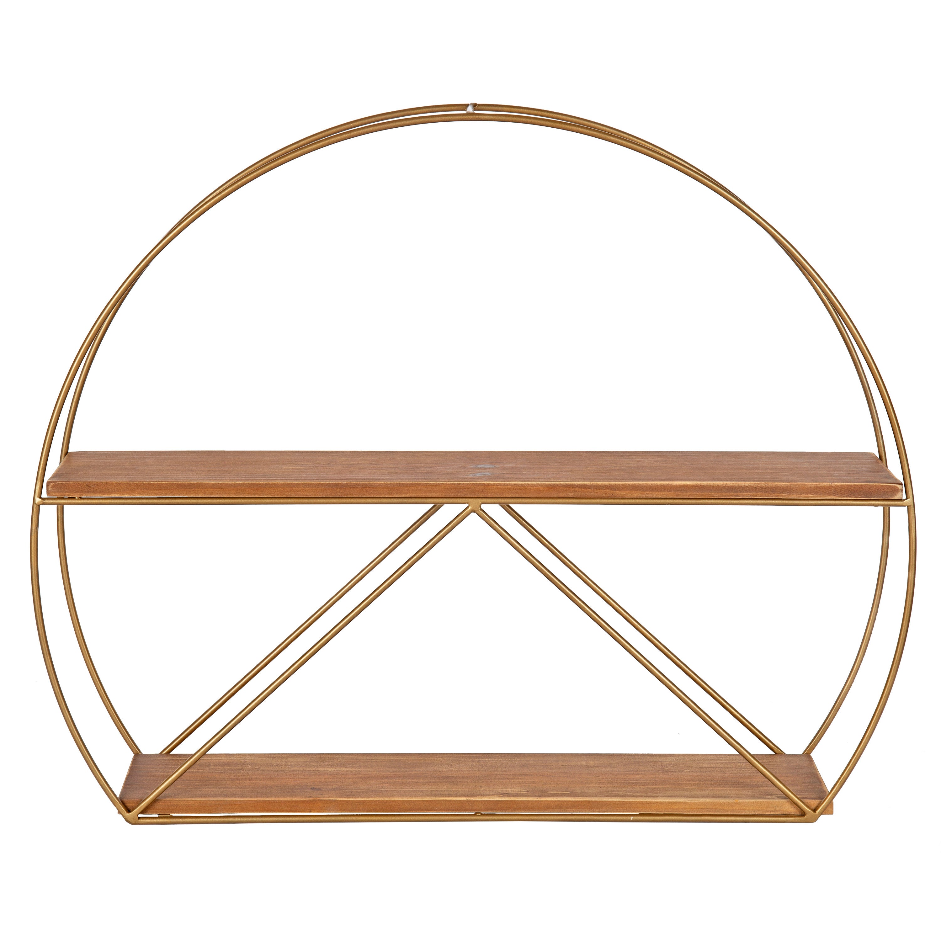The Delmar wall shelf adds a mid-century modern statement to your home while providing convenient display and storage opportunities. Use it to display your small succulents, novels, photos, and keepsakes. The metallic finish of the frame paired with the rustic finish of the shelving provides a unique accent in any room of your home.