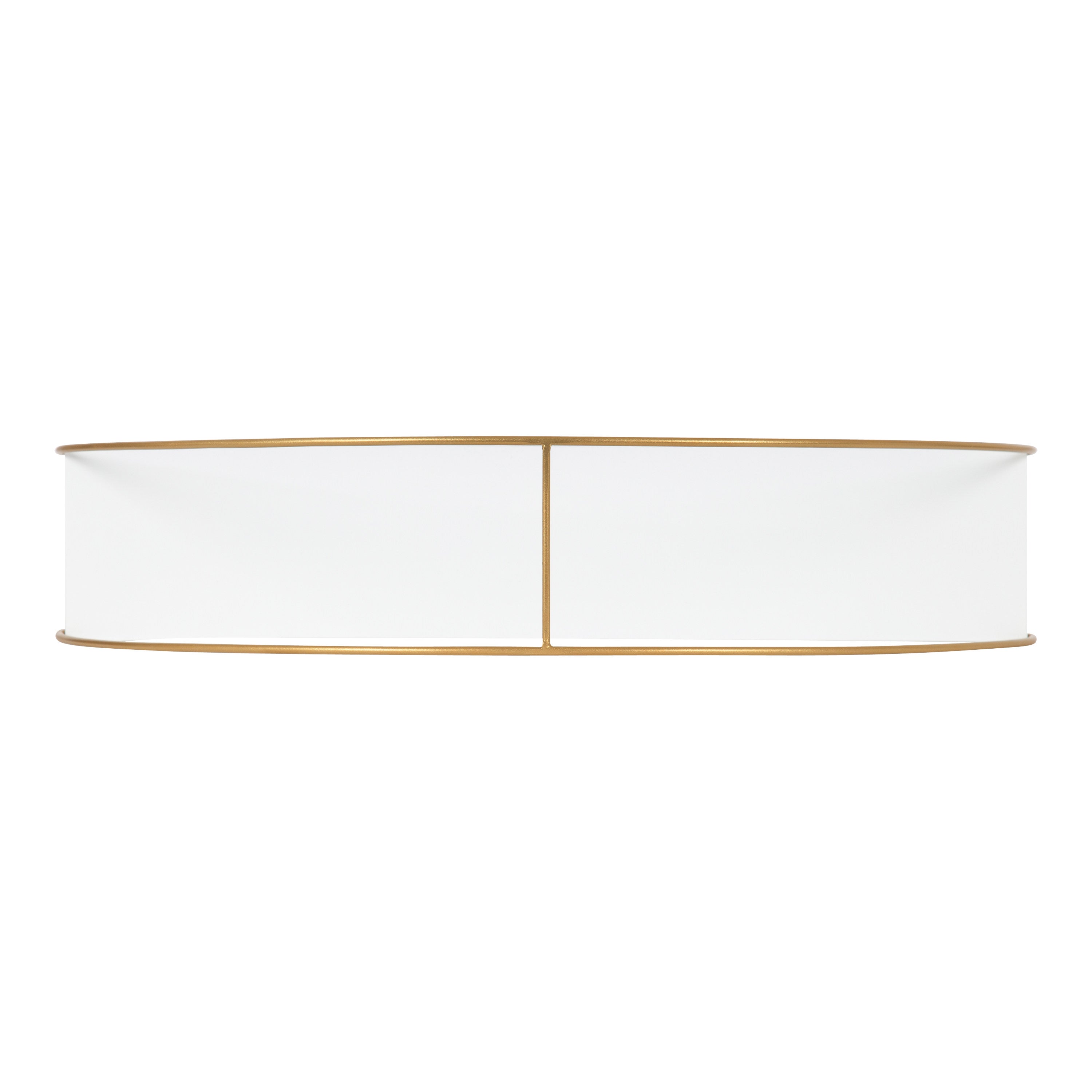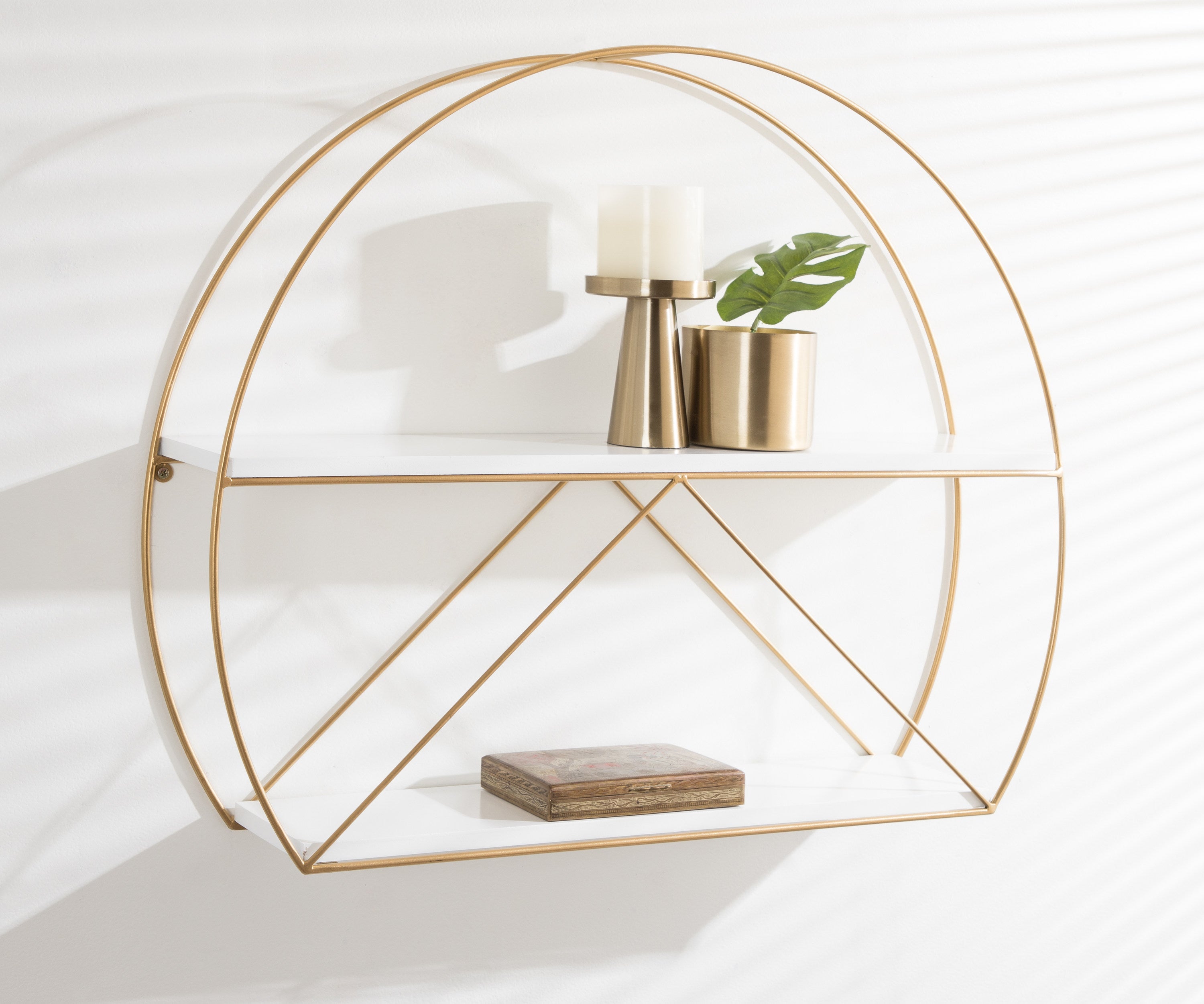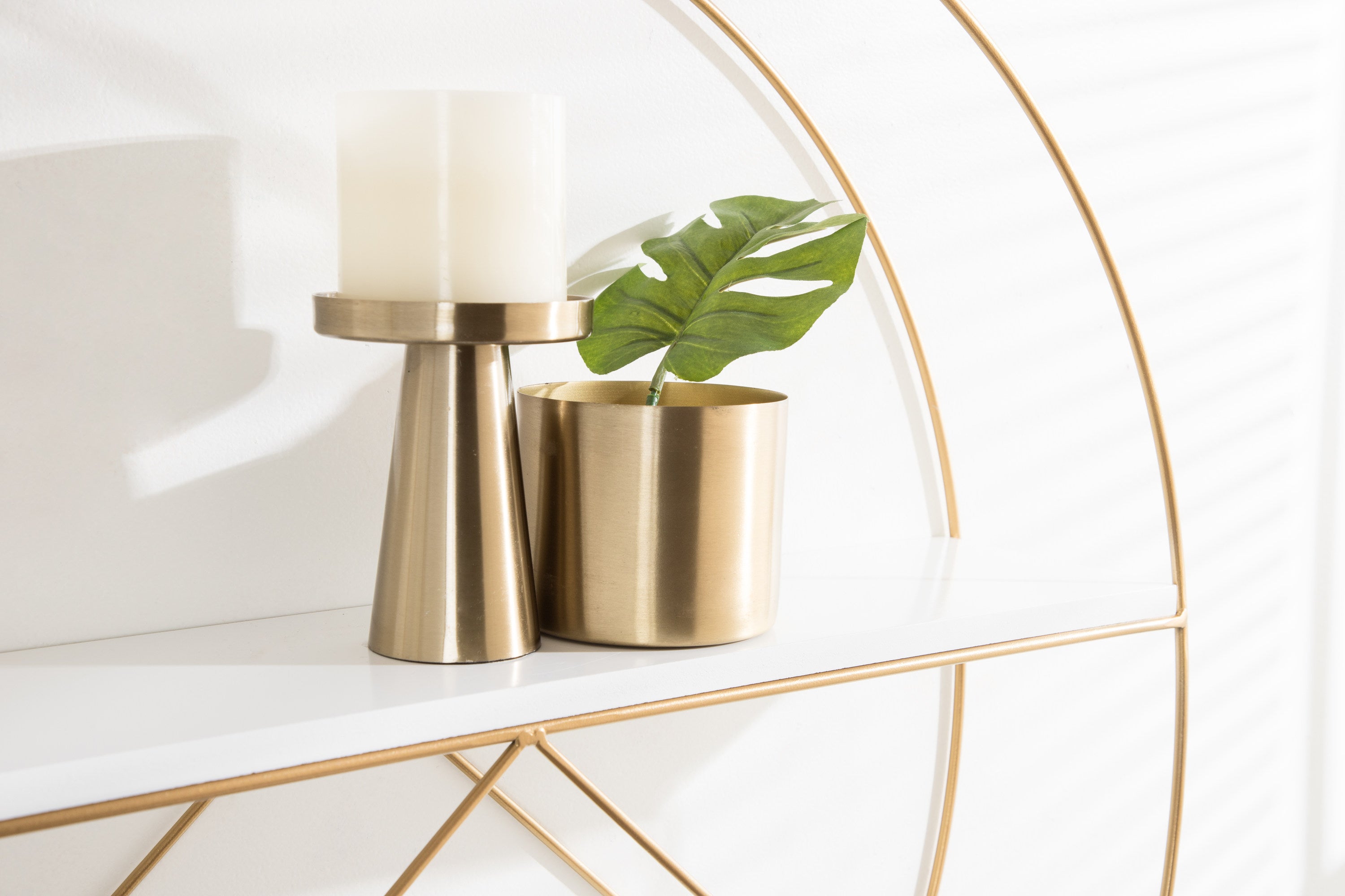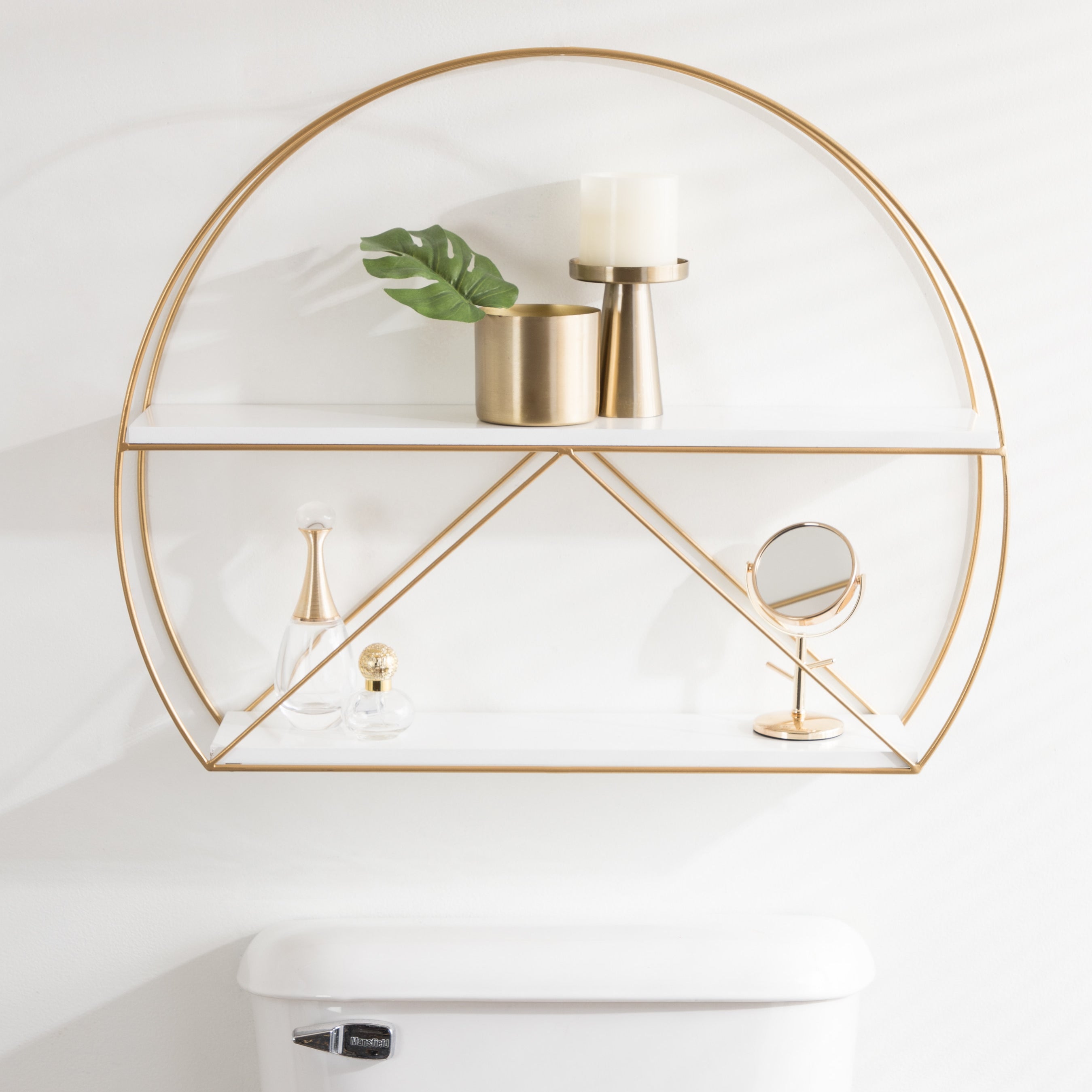 The Delmar wall shelf adds a mid-century modern statement to your home while providing convenient display and storage opportunities. Use it to display your small succulents, novels, photos, and keepsakes. The metallic finish of the frame paired with the rustic finish of the shelving provides a unique accent in any room of your home.