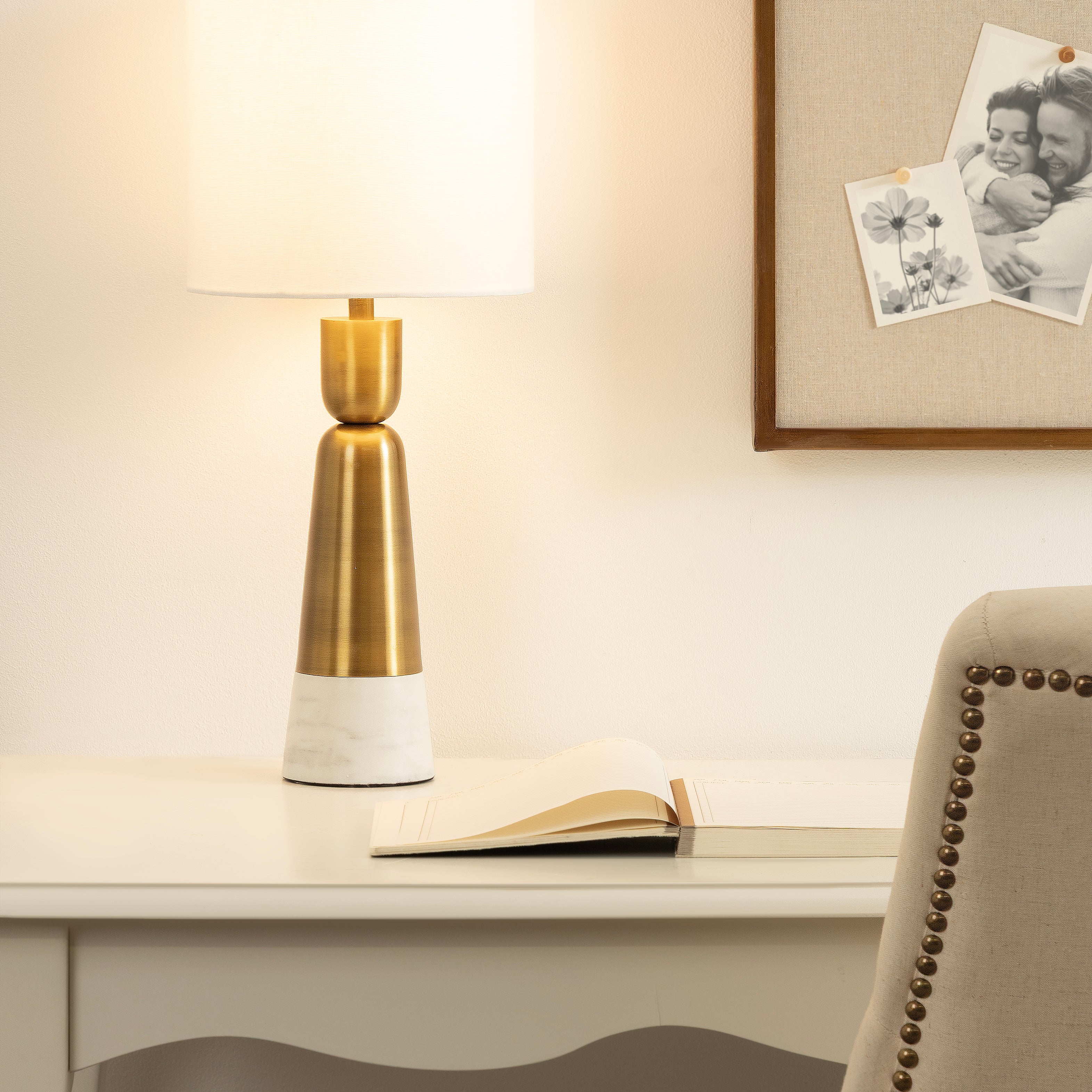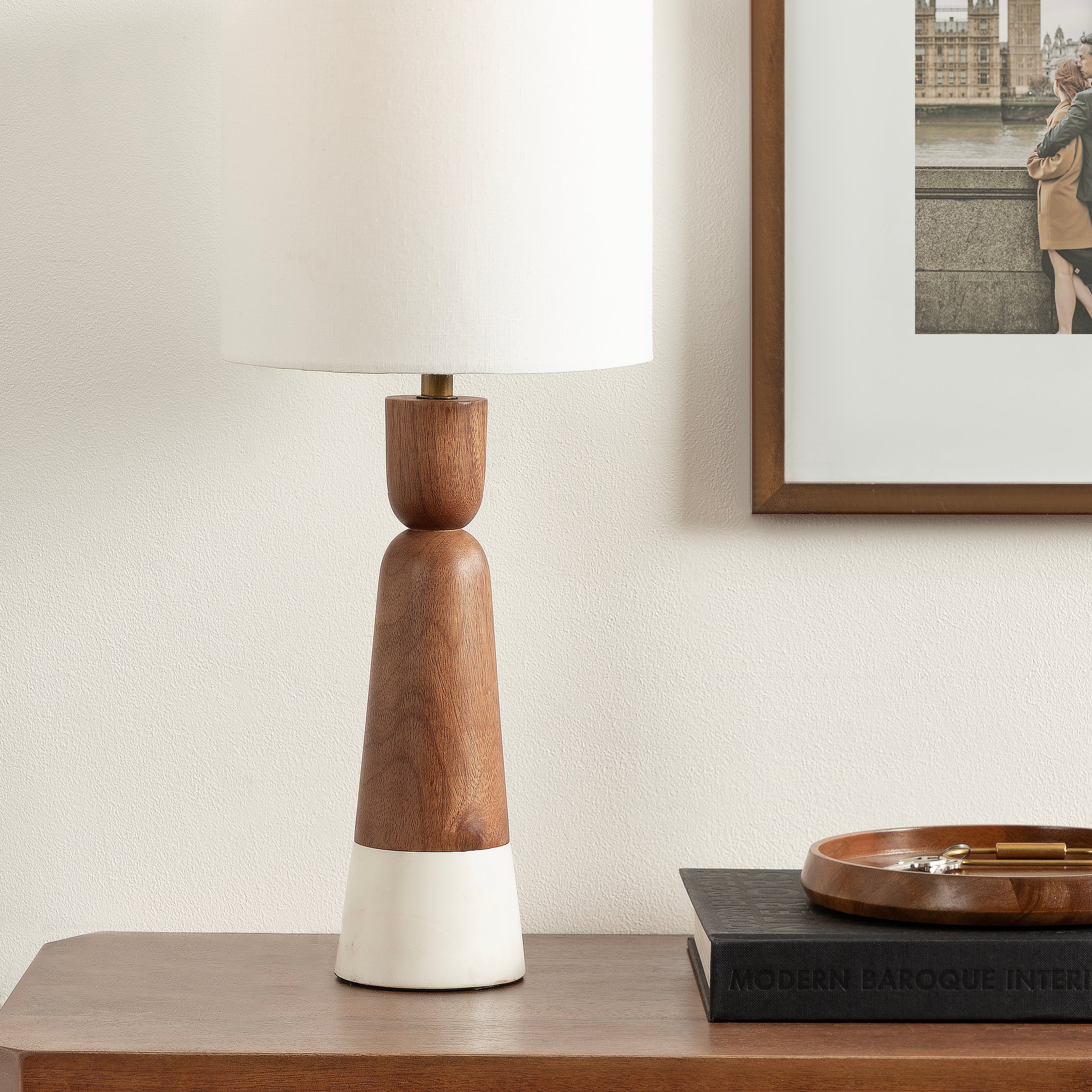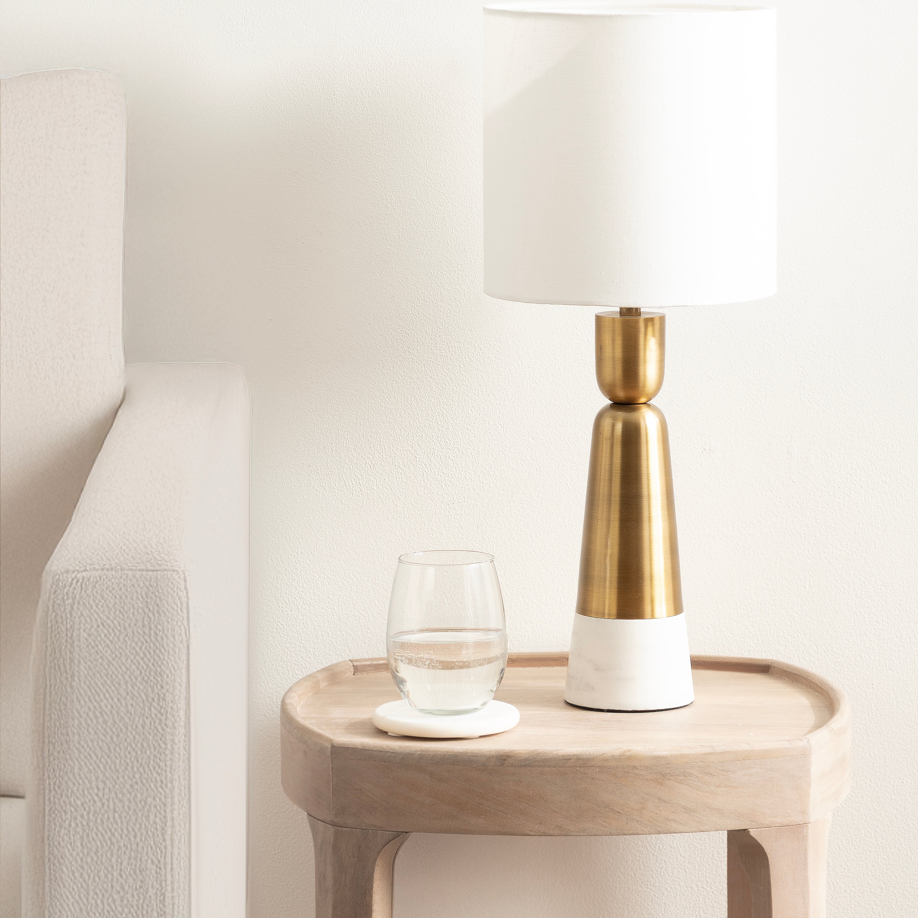 Elevate your home lighting with the Deori bedside table lamp from Kate and Laurel—a sculptural piece that blends functional design with contemporary decor. The geometric base adds an artistic flair, making it as much a decorative object as a source of light. Topped with a soft white linen drum shade, the Deori lamp diffuses light softly, creating a warm and inviting atmosphere perfect for bedrooms, living rooms, or home offices. Whether placed on a nightstand, console table, or desk, this lamp provides both style and substance. Designed for easy use with a standard E26 bulb (not included) that is up to 60 watts for an incandescent bulb or a 9W LED bulb, it's the perfect balance of practicality and elevated design. A UL-Certified product, this tabletop lamp can be used without worry. Add a modern edge to your space with this bold yet refined lighting piece.
