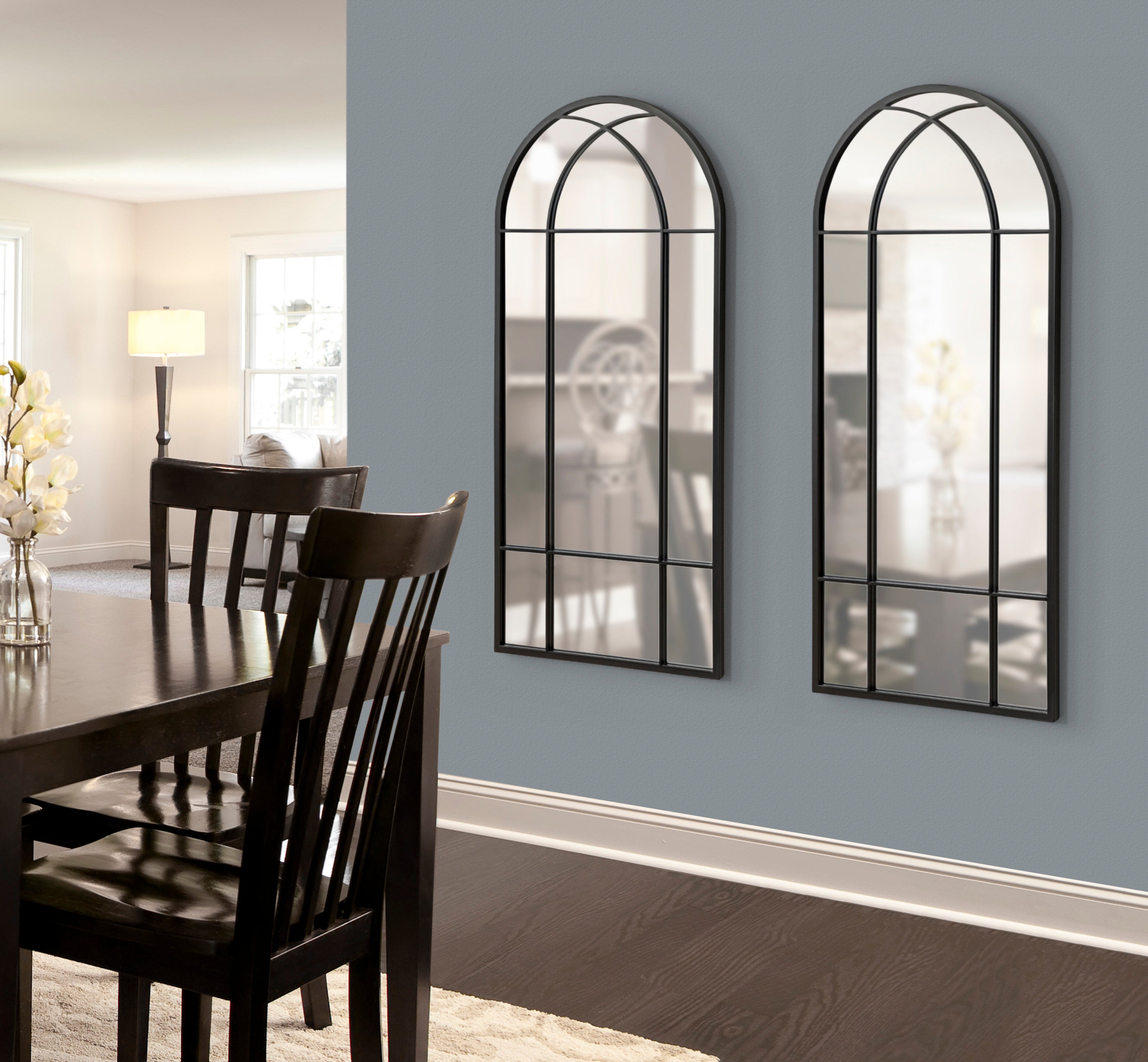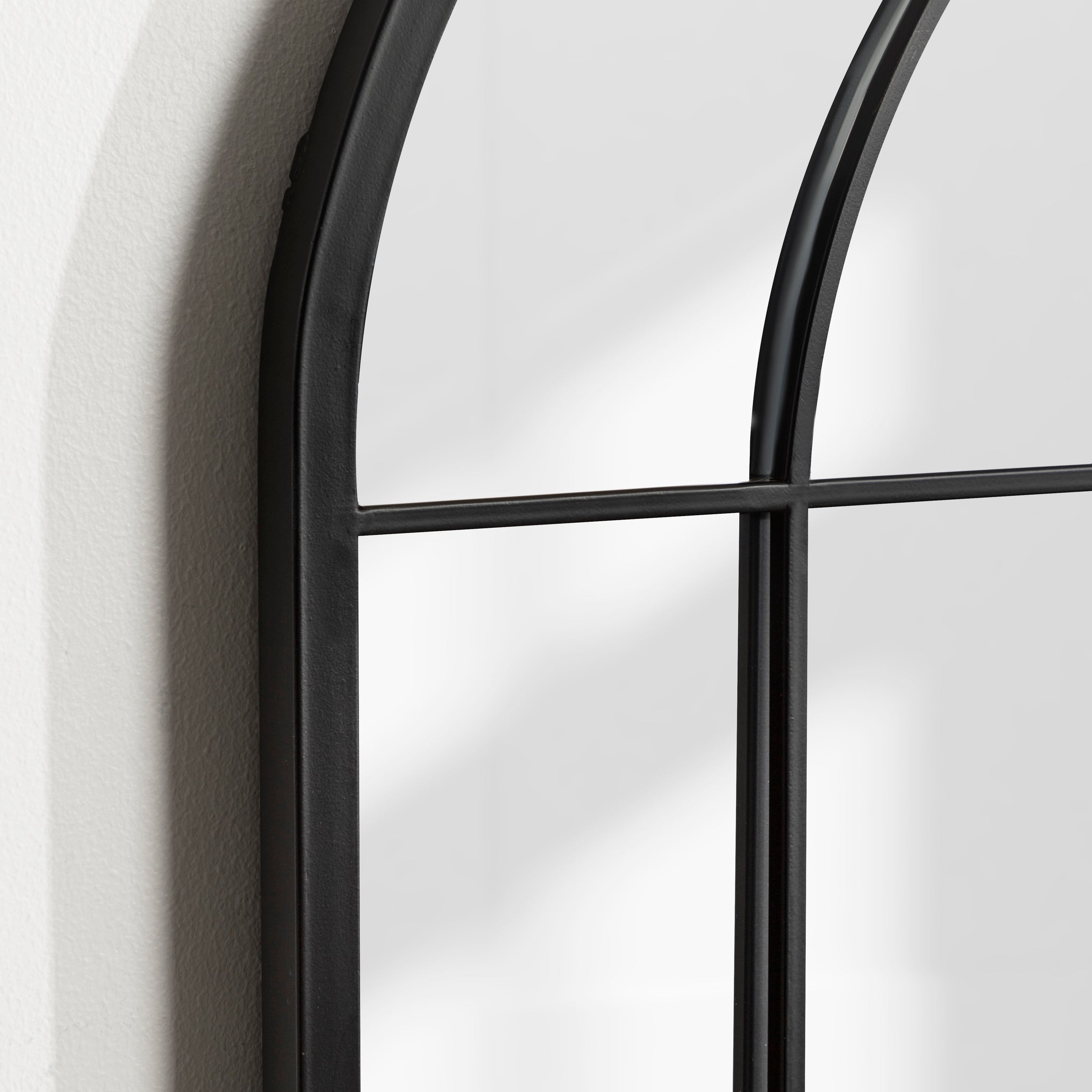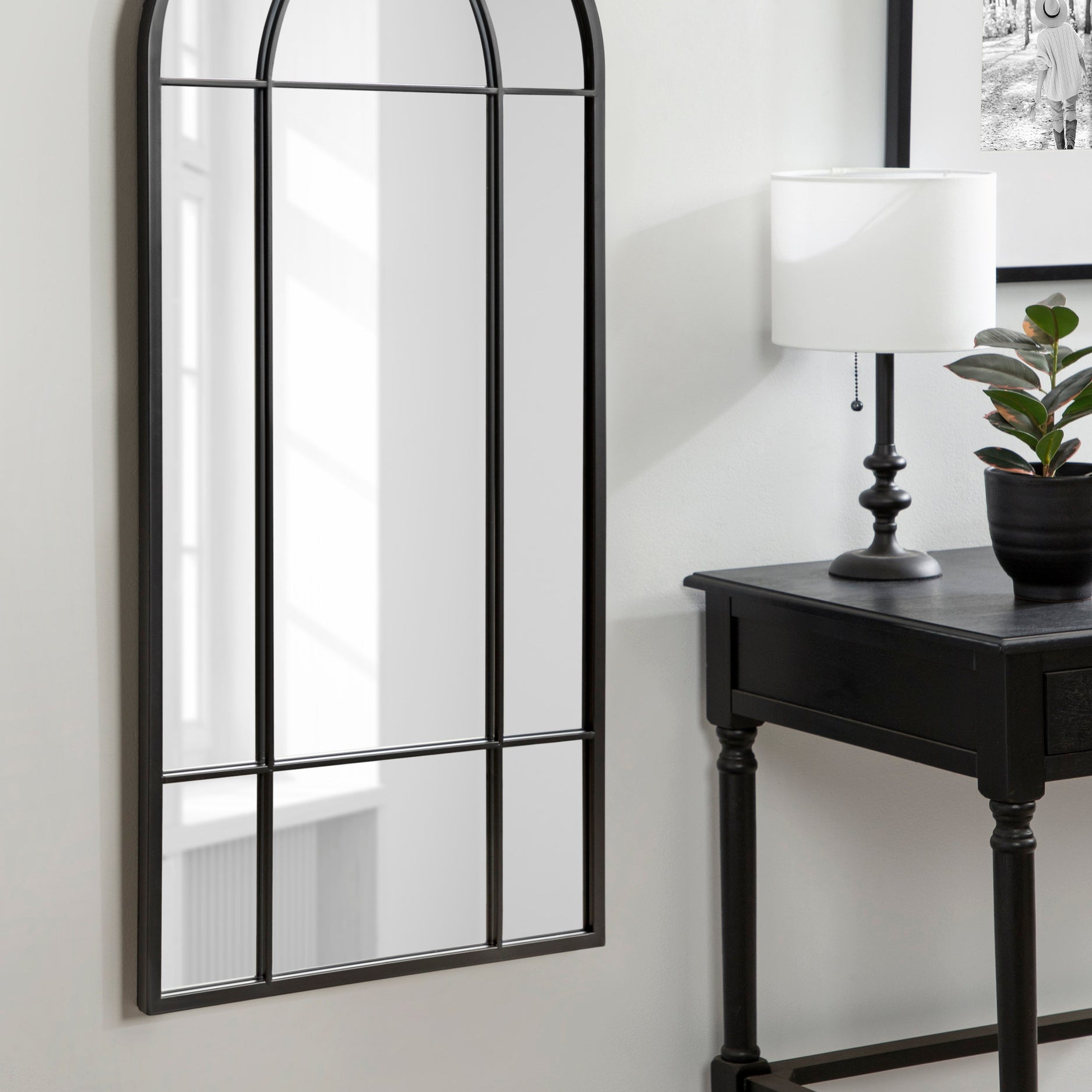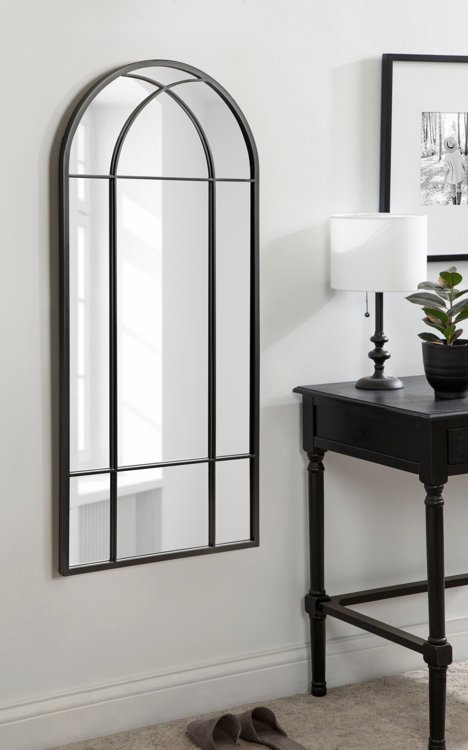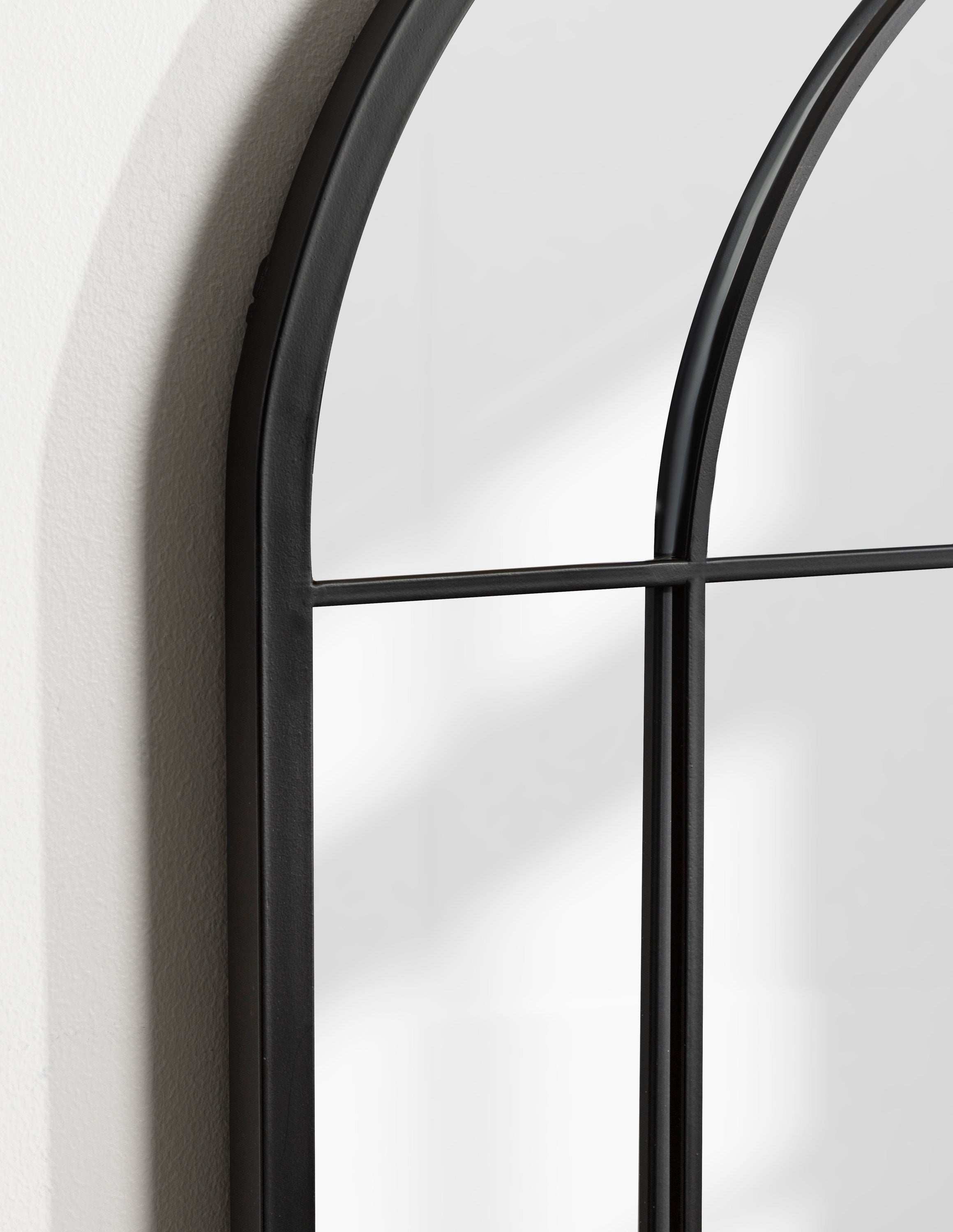 This Dolbrook mirror steals the show with its traditional arched shape and windowpane inlays. Couple that shape and design with the classic finish, and you're looking at a timeless piece that effortlessly casts more light throughout the room. Due to its spanning height, this mirror not only casts more light throughout the room, but it also gives the illusion of an overall larger and deeper room. The smooth curvature of the frame and the arched inlays give your living space a more modern, sophisticated look.