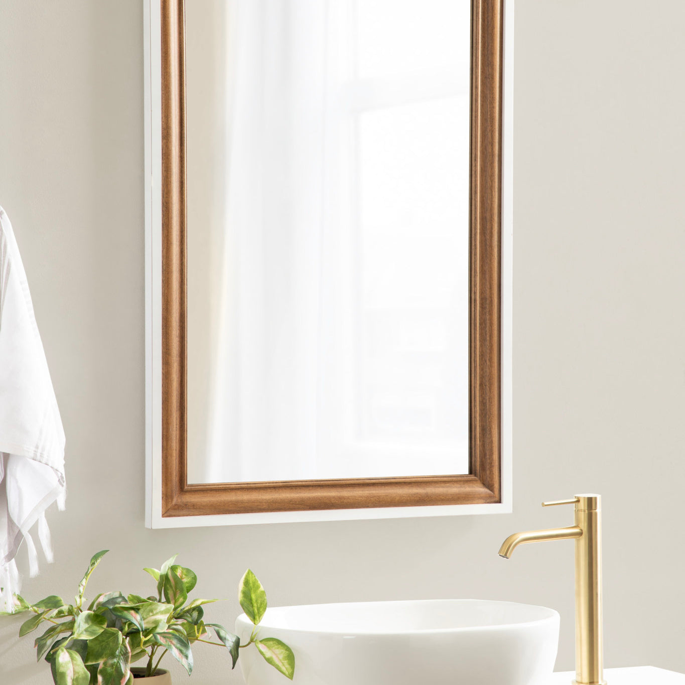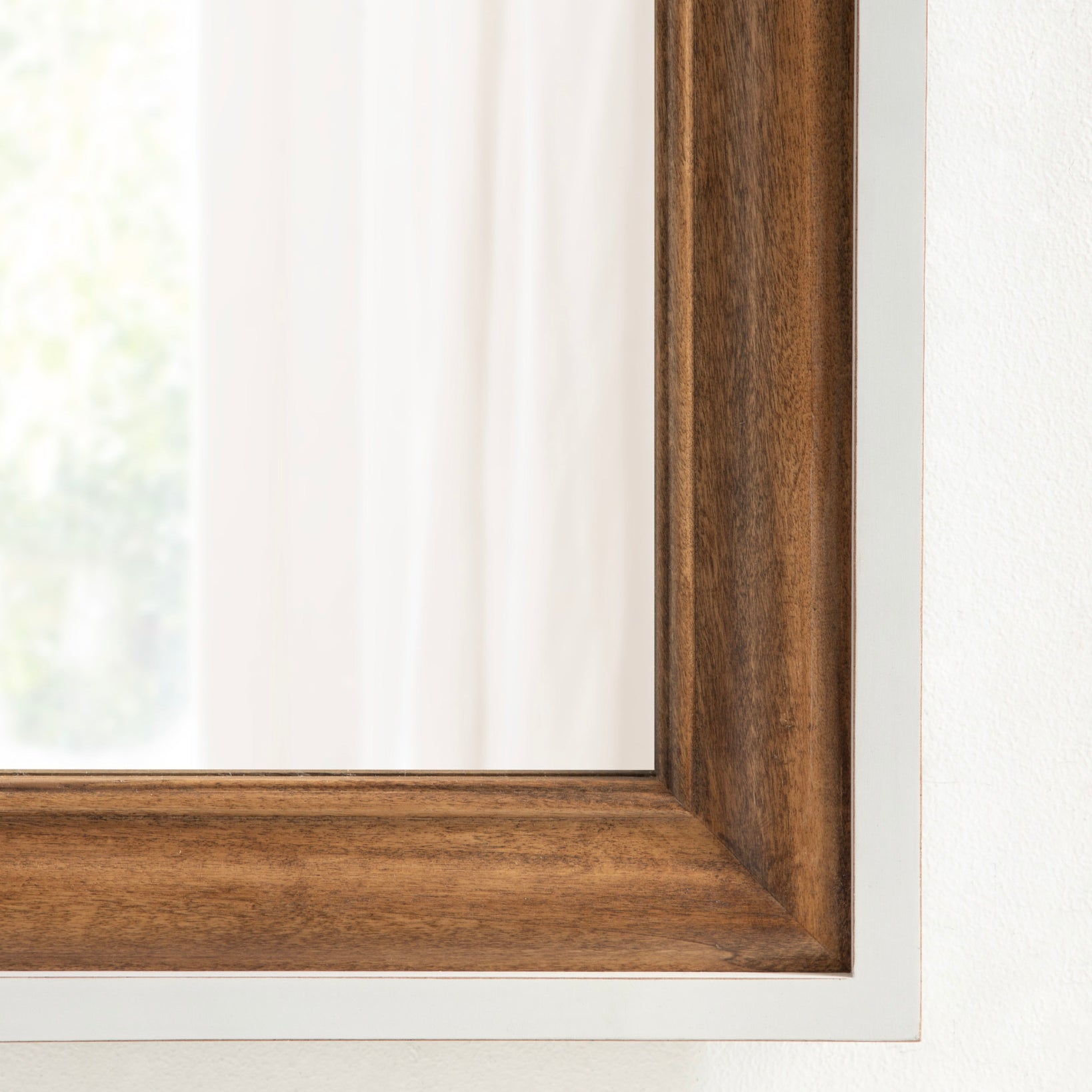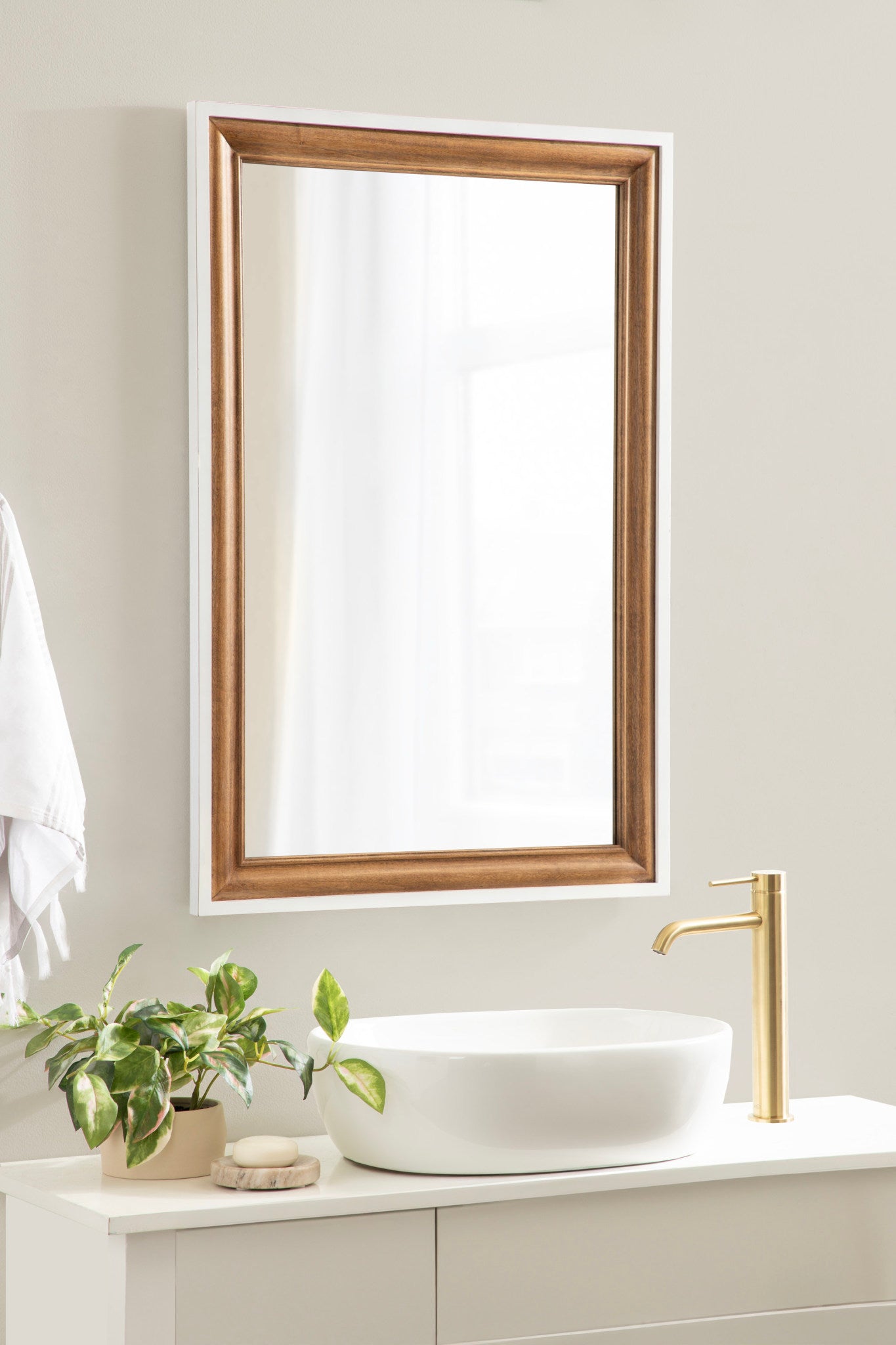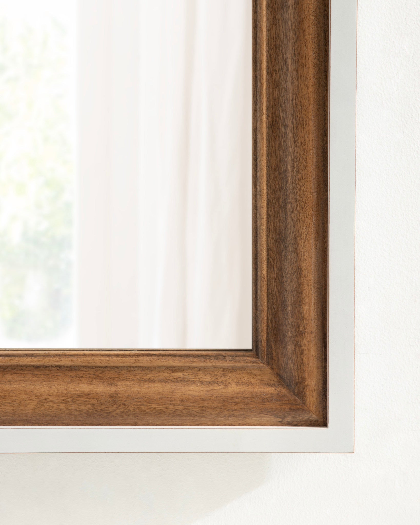 The Ellison rectangle wall mirror not only enhances the visual appeal of your room but also serves as a practical addition to your vanity or bathroom area. Its generously sized surface provides a clear and accurate reflection, making it a convenient and functional wall decor essential. Durability meets design with the sturdy construction of this bathroom mirror. The high-quality wooden frame ensures longevity, allowing it to withstand the test of time and maintain its elegance for years to come. The precise craftsmanship and attention to detail further showcase the mirror's superior quality, elevating the ambiance of any room.