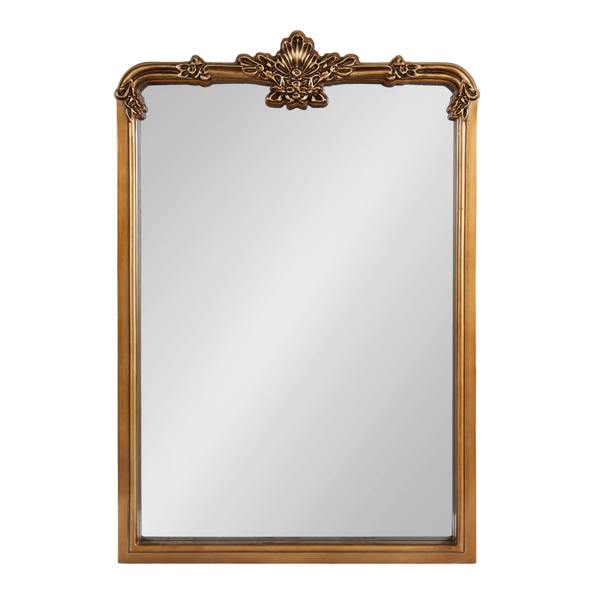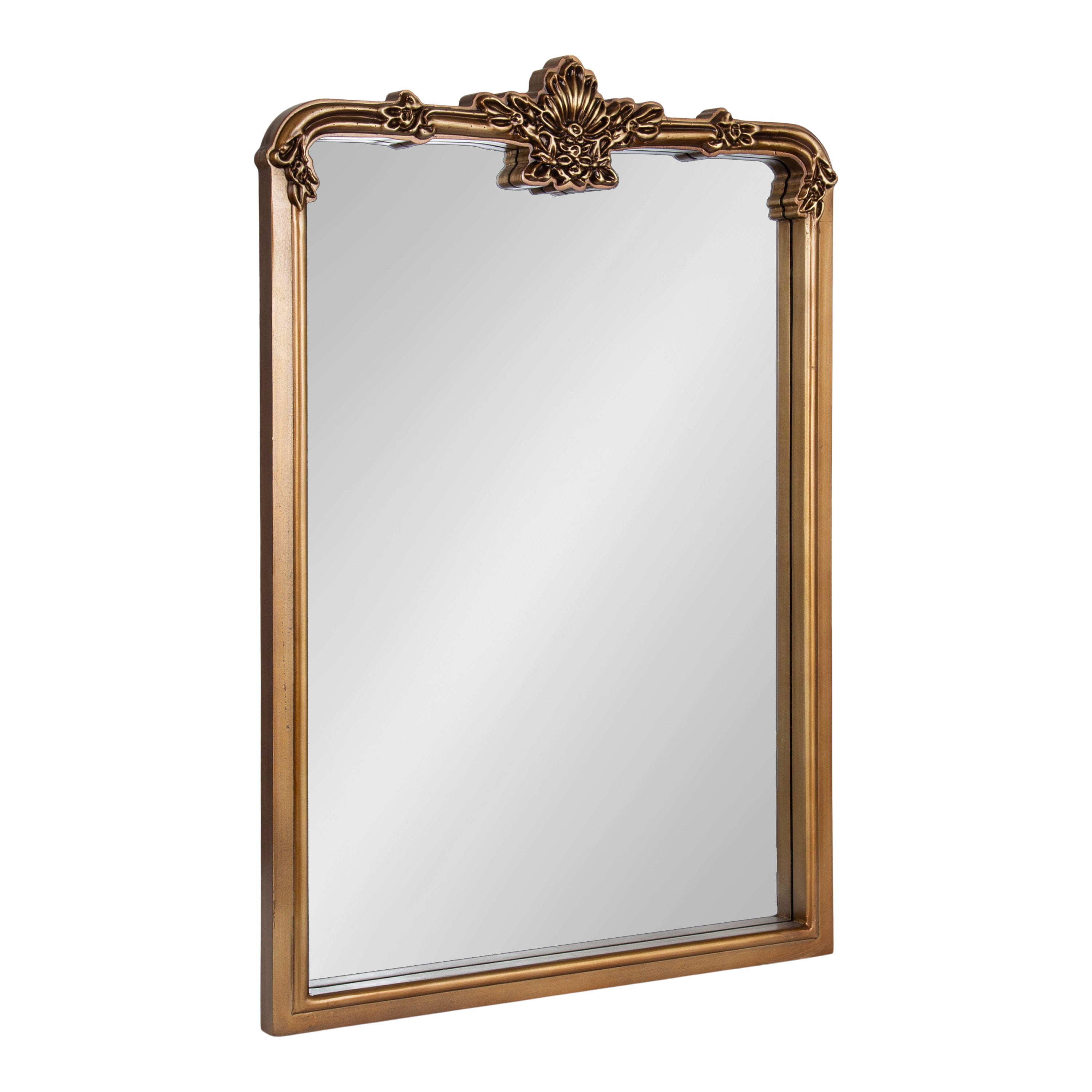 Bring the timeless beauty of French provincial design into your home with the lovely Elowyn wall mirror. This beautiful accent piece features a subtle arched shape with ornate garland details on the crown of the frame. Its antique finish captures the vintage look it strives for, providing a warm and storied visual that draws the eye and captures the imagination. This mirror is perfect for styling on your mantel, over an entryway console, or above your vanity as a bathroom mirror. Whether you're getting ready for the day or seeking a home decor piece that mirrors your personality, the Elowyn makes an excellent show-stopping presence.