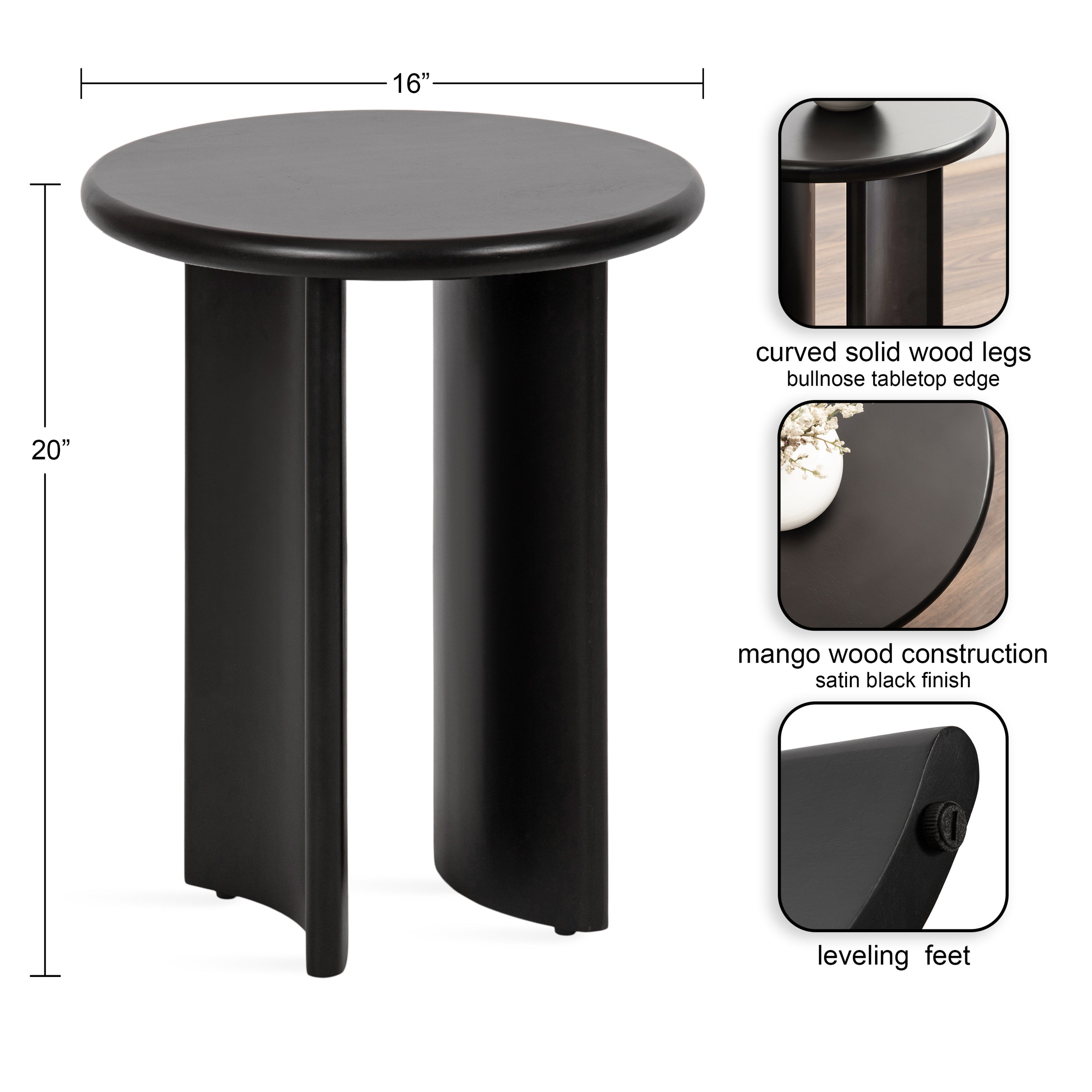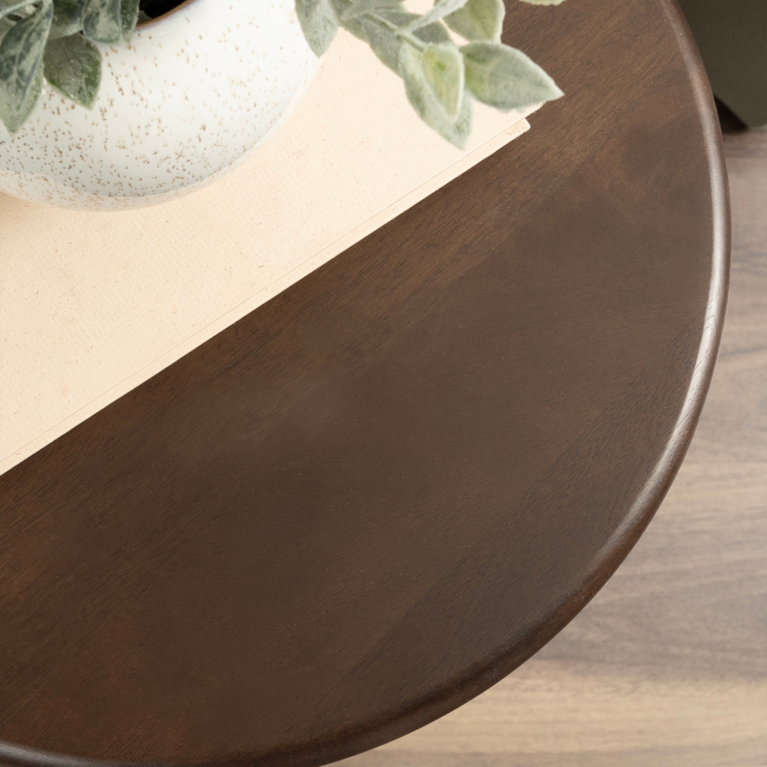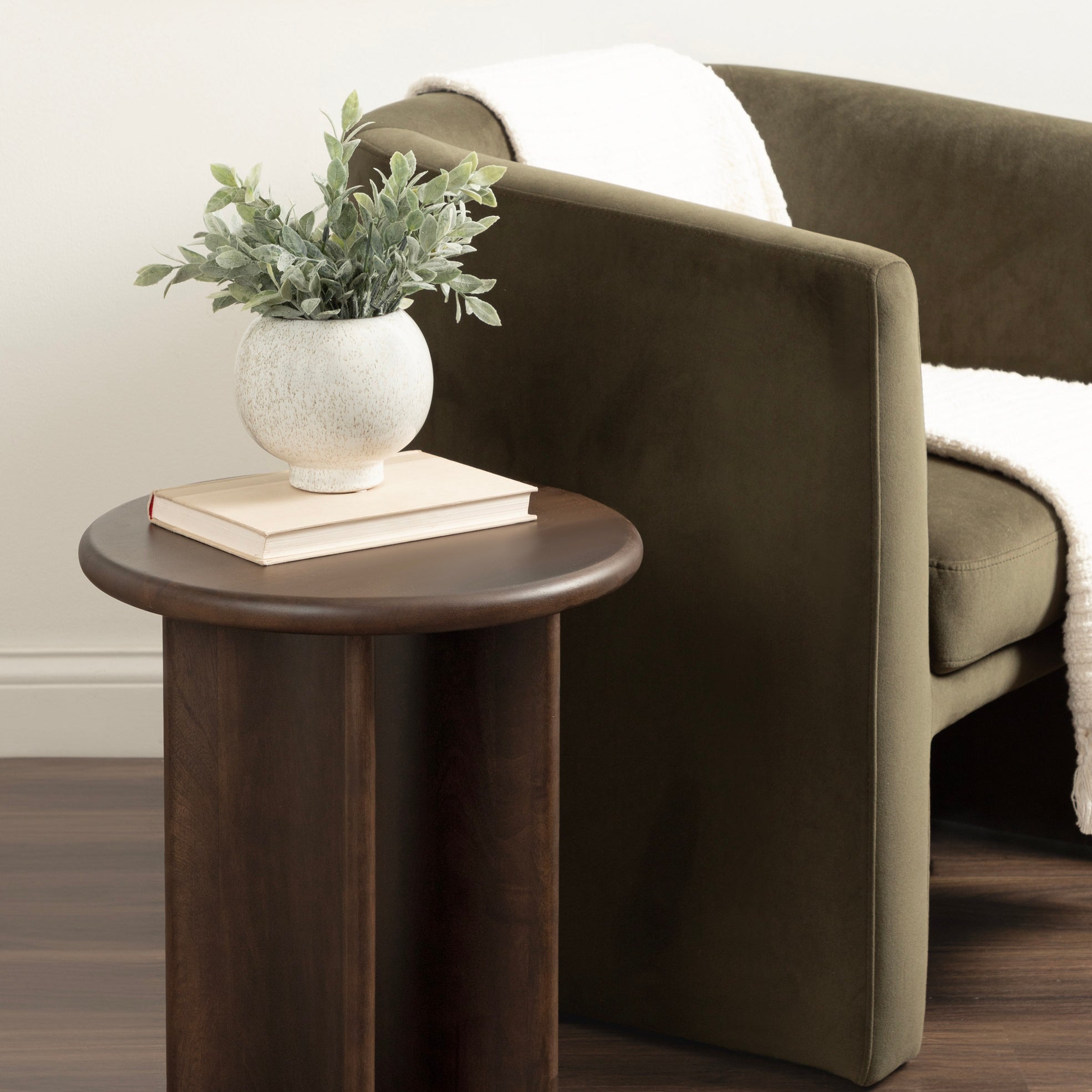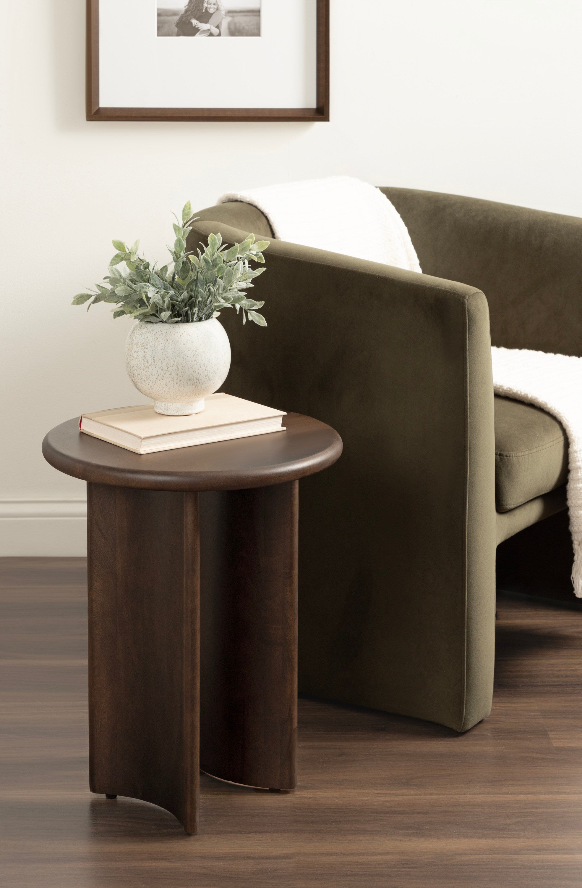 Showcase your modern-inspired style with the Erys round side table from Kate and Laurel. The stunning finish of the wood adds a touch of sophistication to any space, while the unique curvature of the design makes it easy to blend seamlessly with any decor style. However, the irregular curved shape of the table legs makes it a youthful living room accent table. A careful selection of solid mango wood was used to create this beautiful side table, creating a statement that is as durable as it is beautiful. The round tabletop boasts a soft bullnosed edge and is perfect for creating a curated display area for candles, small lamps, and other accents.