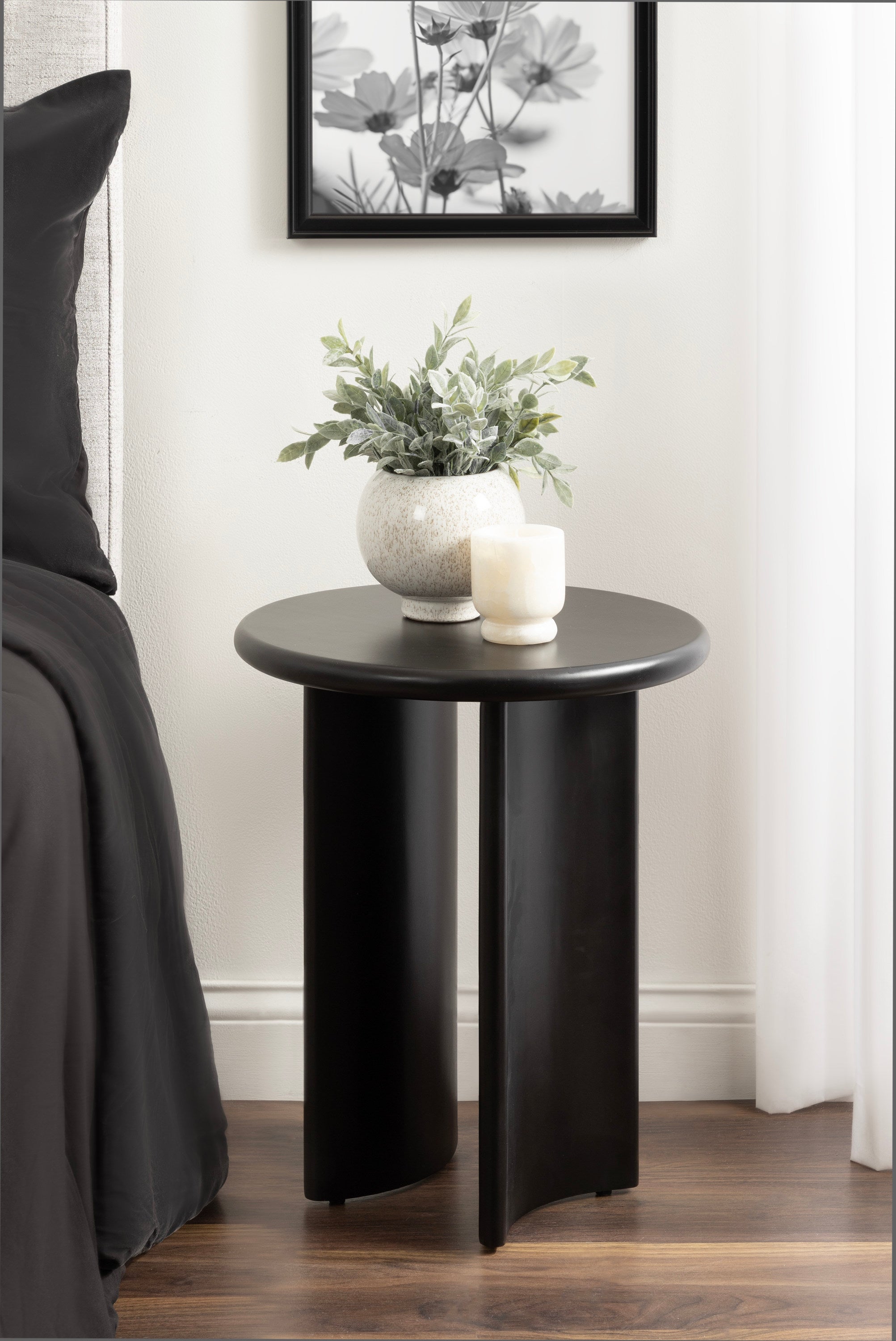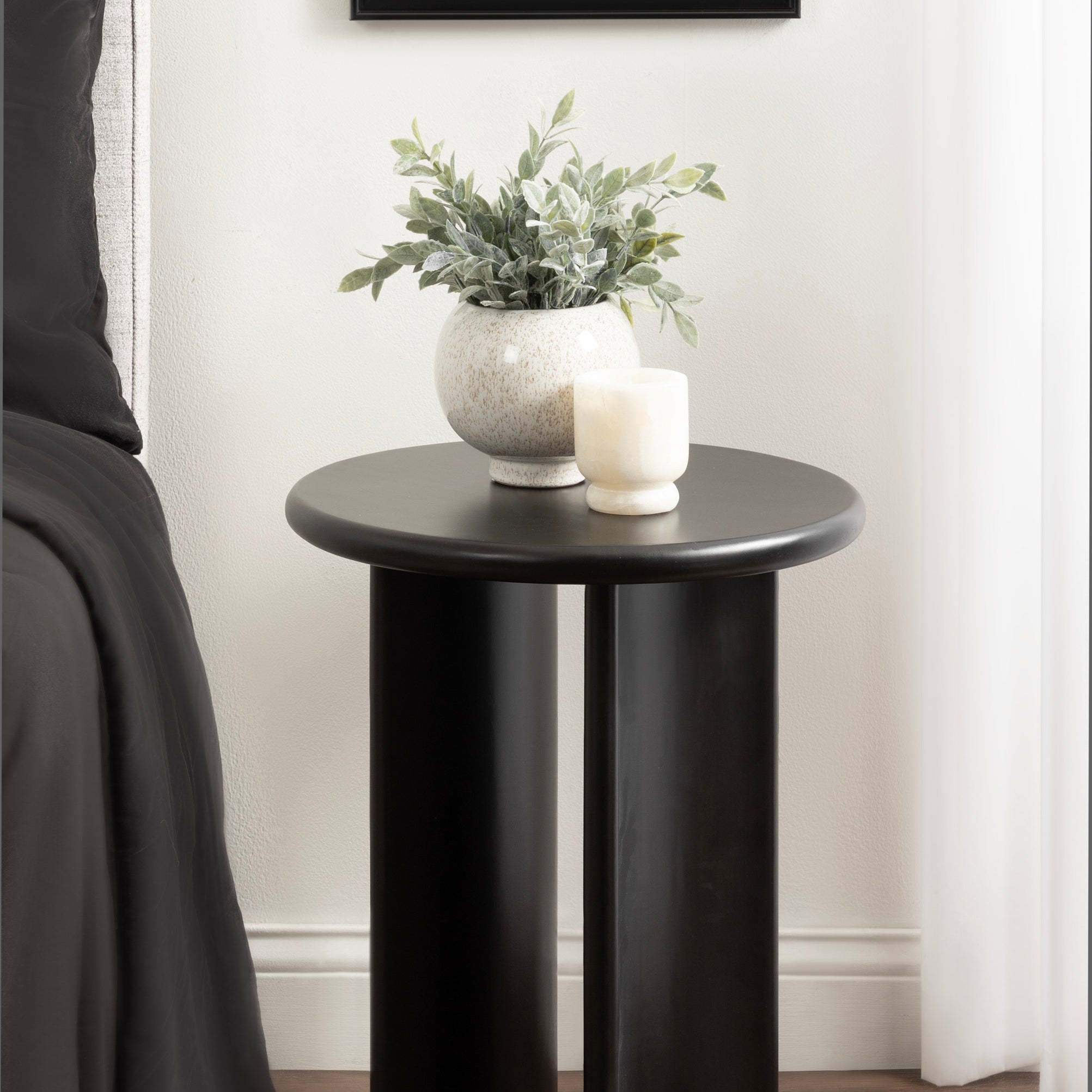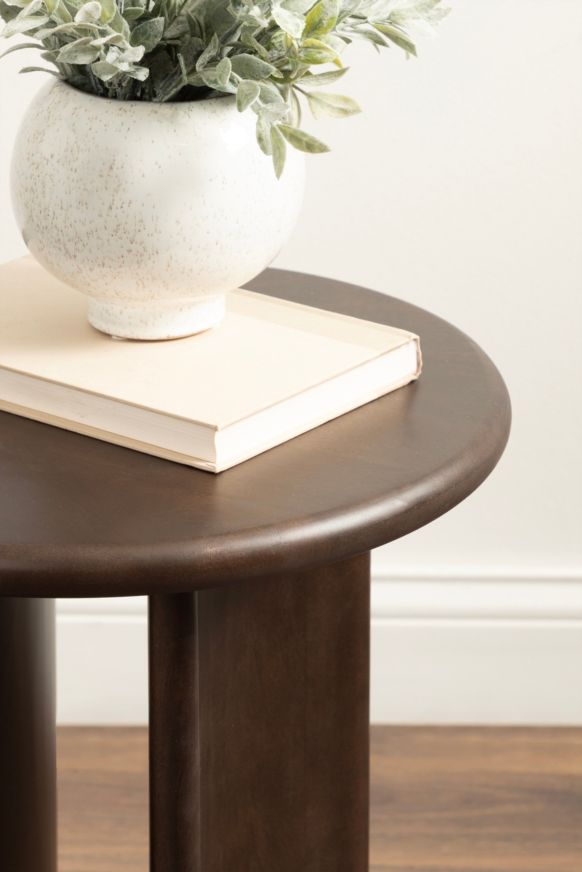 Showcase your modern-inspired style with the Erys round side table from Kate and Laurel. The stunning finish of the wood adds a touch of sophistication to any space, while the unique curvature of the design makes it easy to blend seamlessly with any decor style. However, the irregular curved shape of the table legs makes it a youthful living room accent table. A careful selection of solid mango wood was used to create this beautiful side table, creating a statement that is as durable as it is beautiful. The round tabletop boasts a soft bullnosed edge and is perfect for creating a curated display area for candles, small lamps, and other accents.