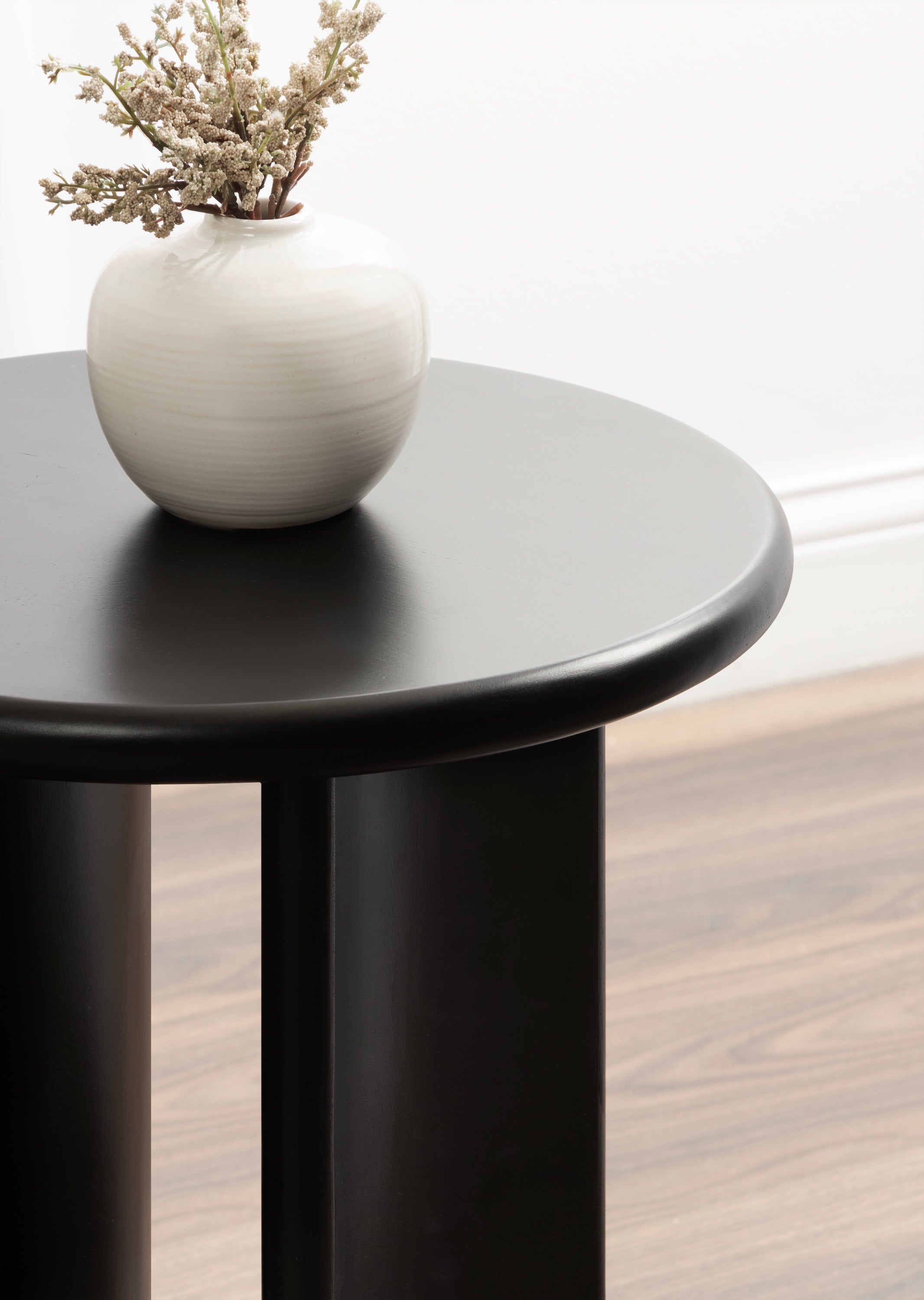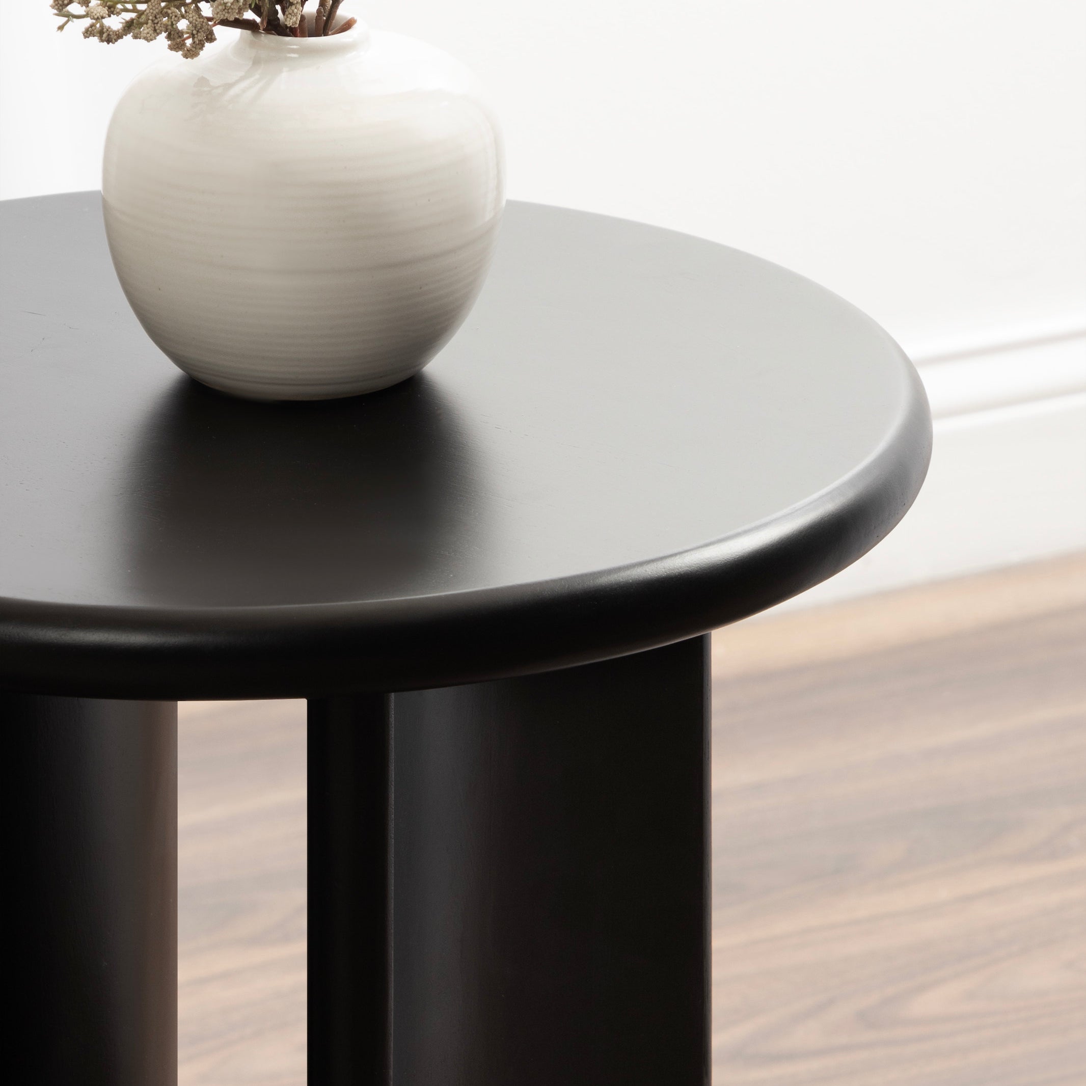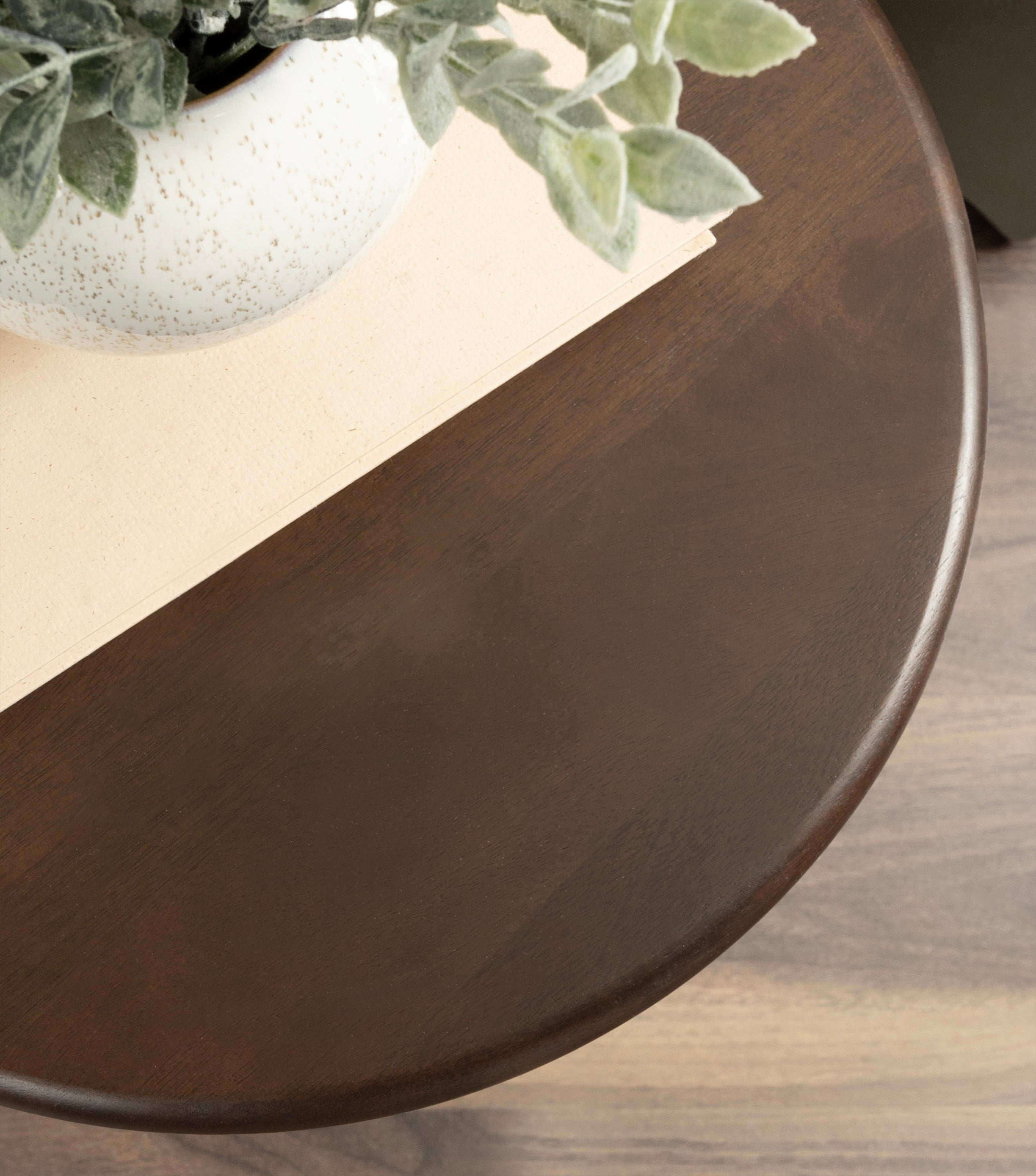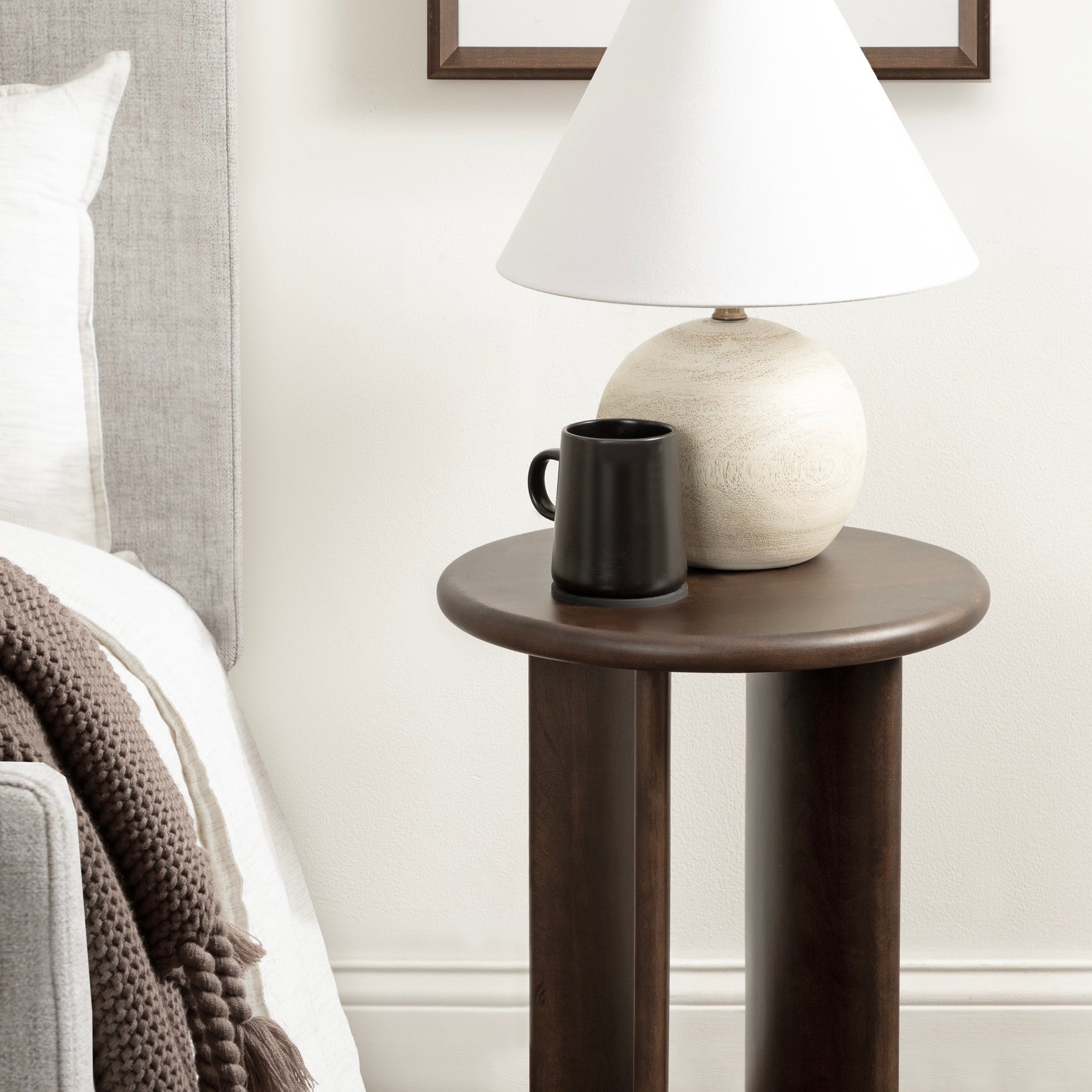 Showcase your modern-inspired style with the Erys round side table from Kate and Laurel. The stunning finish of the wood adds a touch of sophistication to any space, while the unique curvature of the design makes it easy to blend seamlessly with any decor style. However, the irregular curved shape of the table legs makes it a youthful living room accent table. A careful selection of solid mango wood was used to create this beautiful side table, creating a statement that is as durable as it is beautiful. The round tabletop boasts a soft bullnosed edge and is perfect for creating a curated display area for candles, small lamps, and other accents.