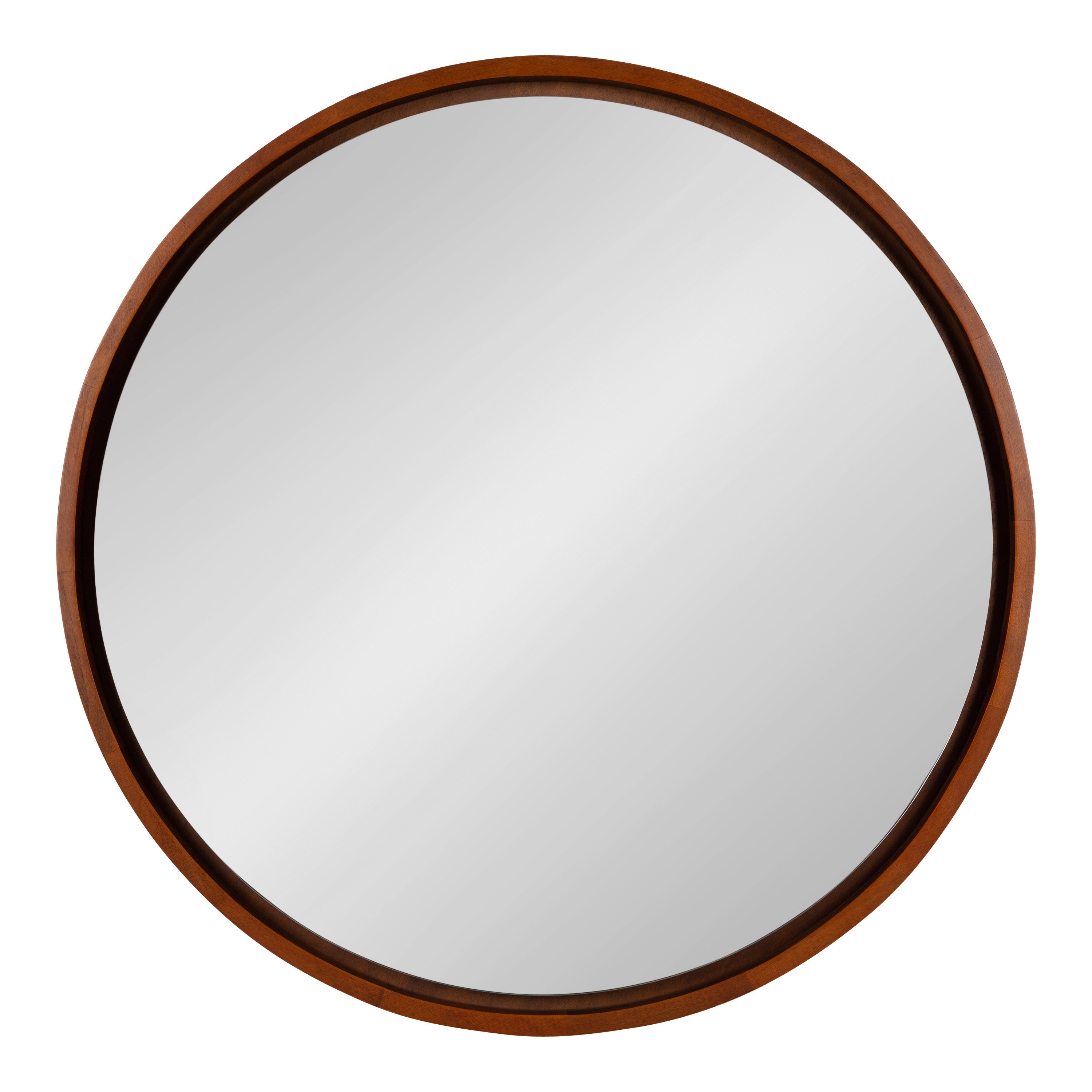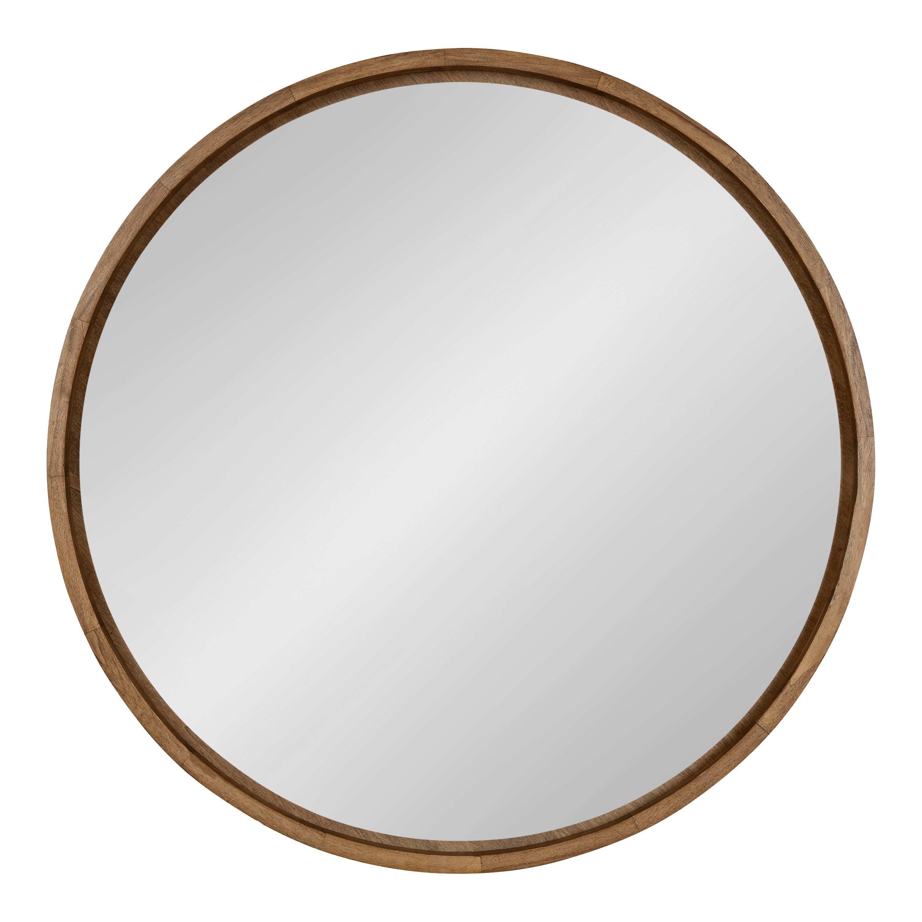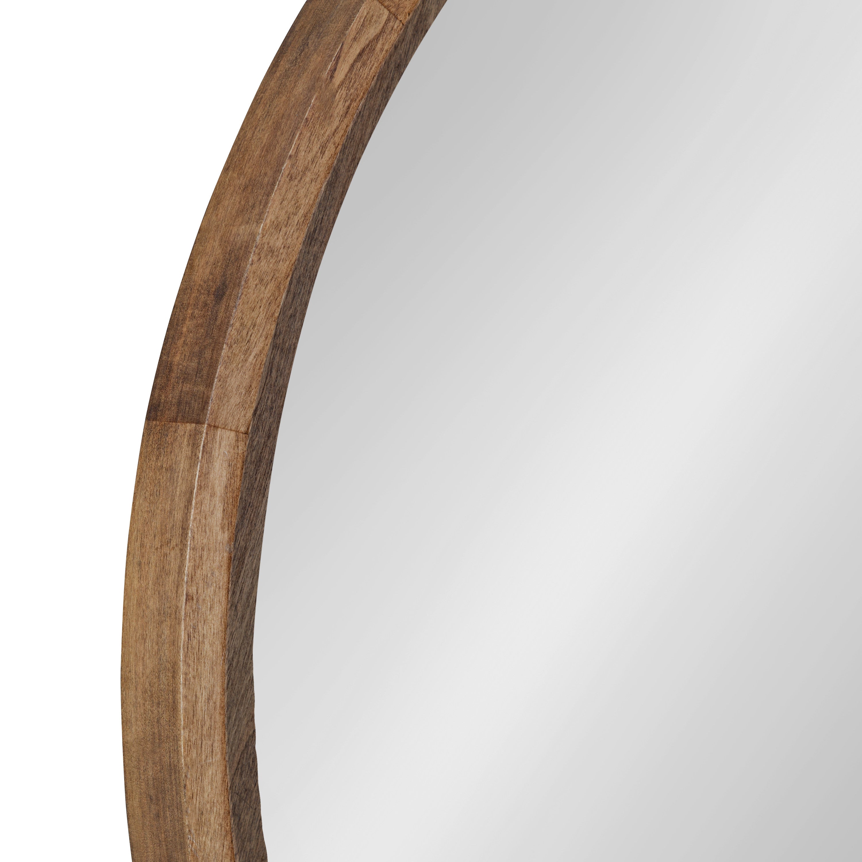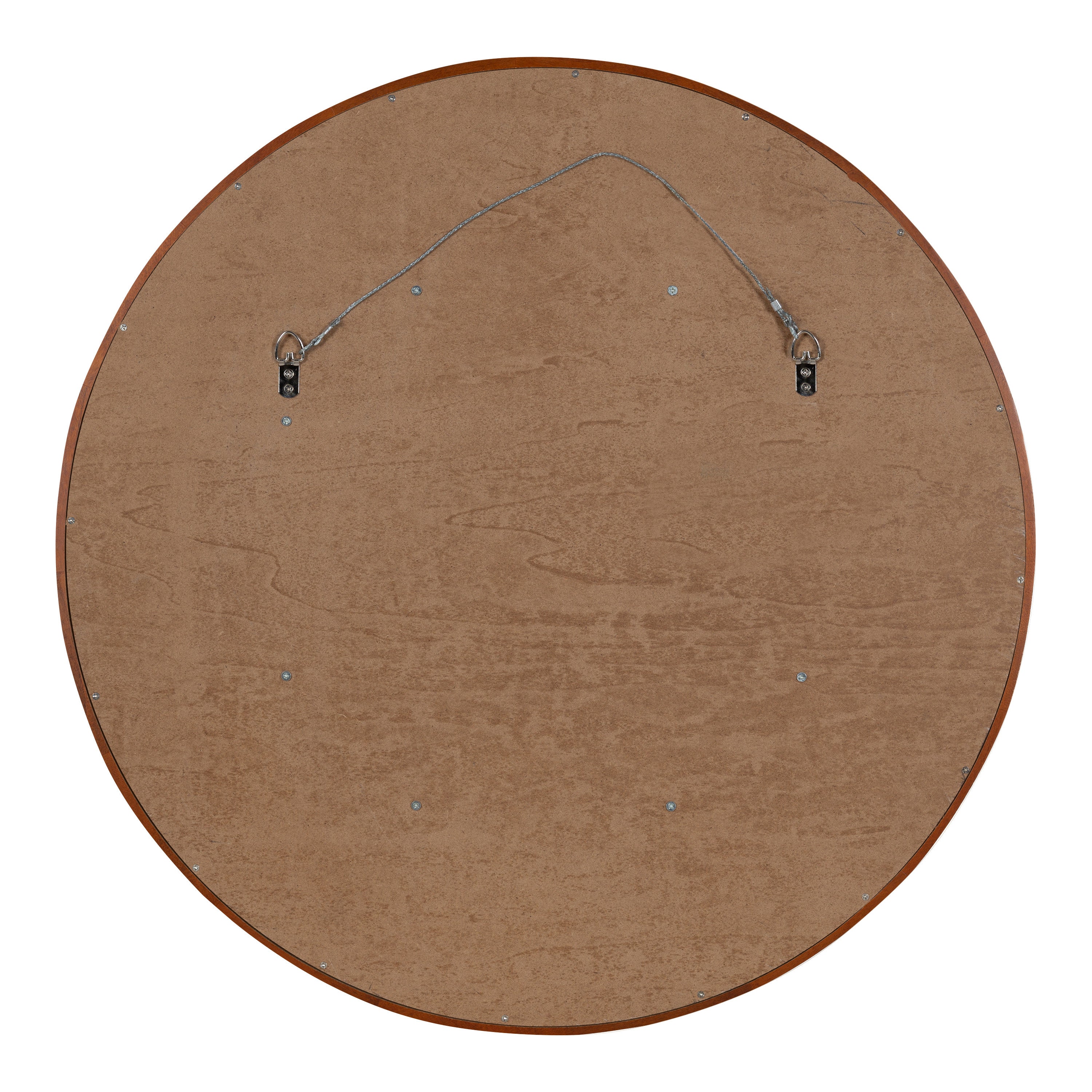 The Evans wall mirror offers your home or office a lovely, mid-century accent for functional display. This boho-chic, modern mirror has a round frame with a wood construction for extra resiliency. The interior glass floats within this solid frame, providing an eye-catching statement for any room of the home.
