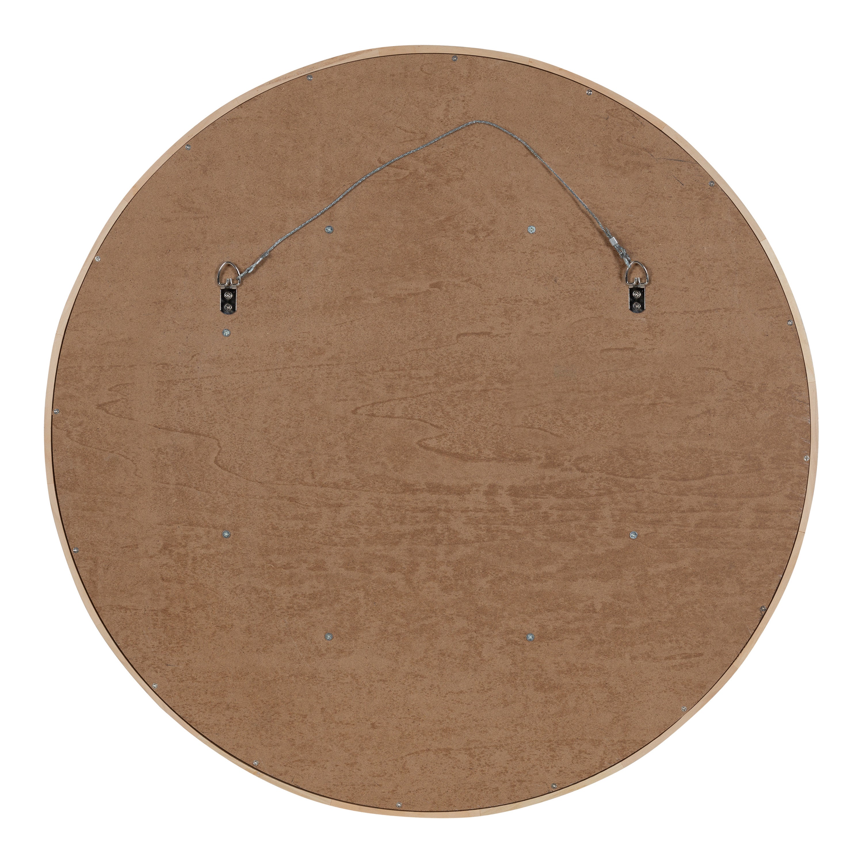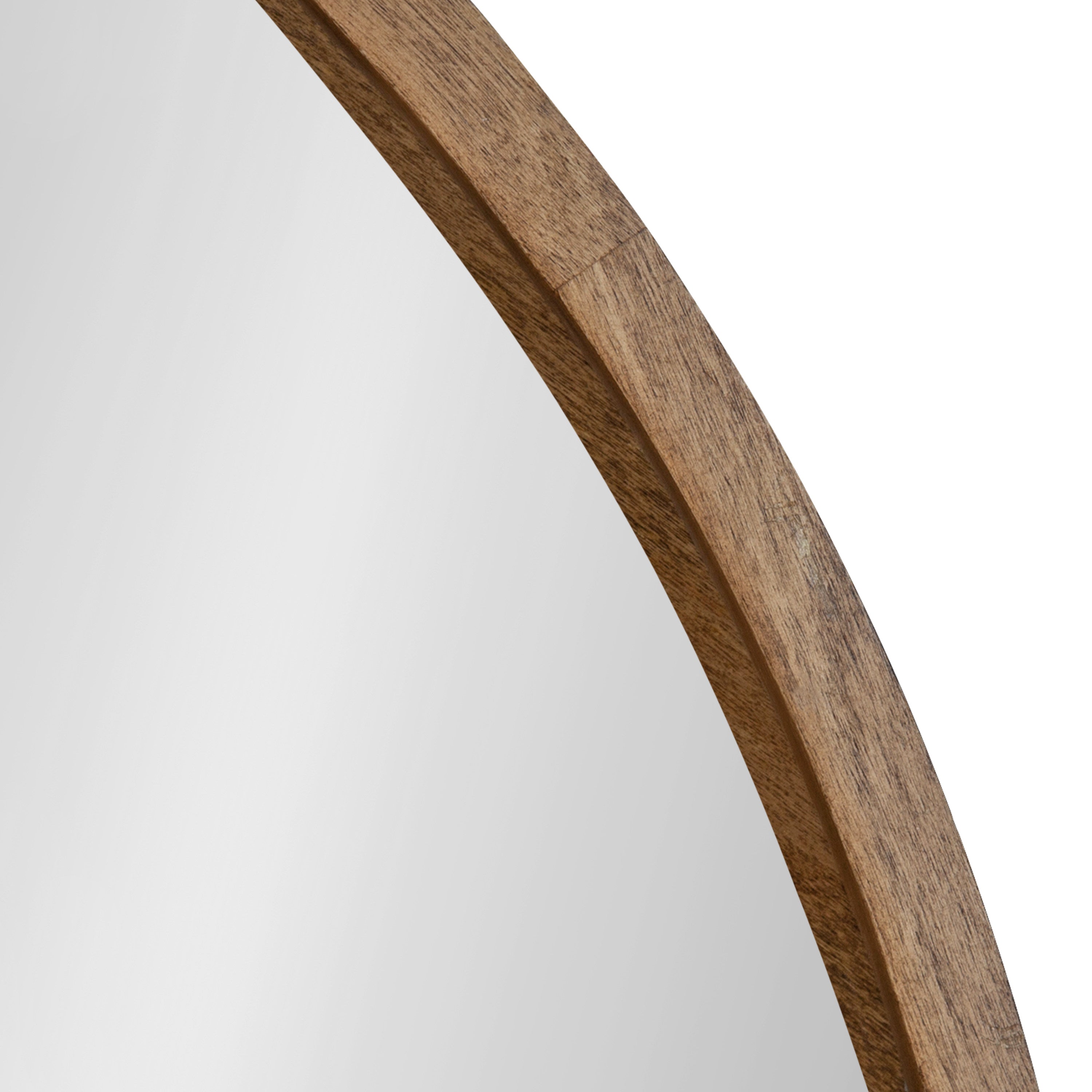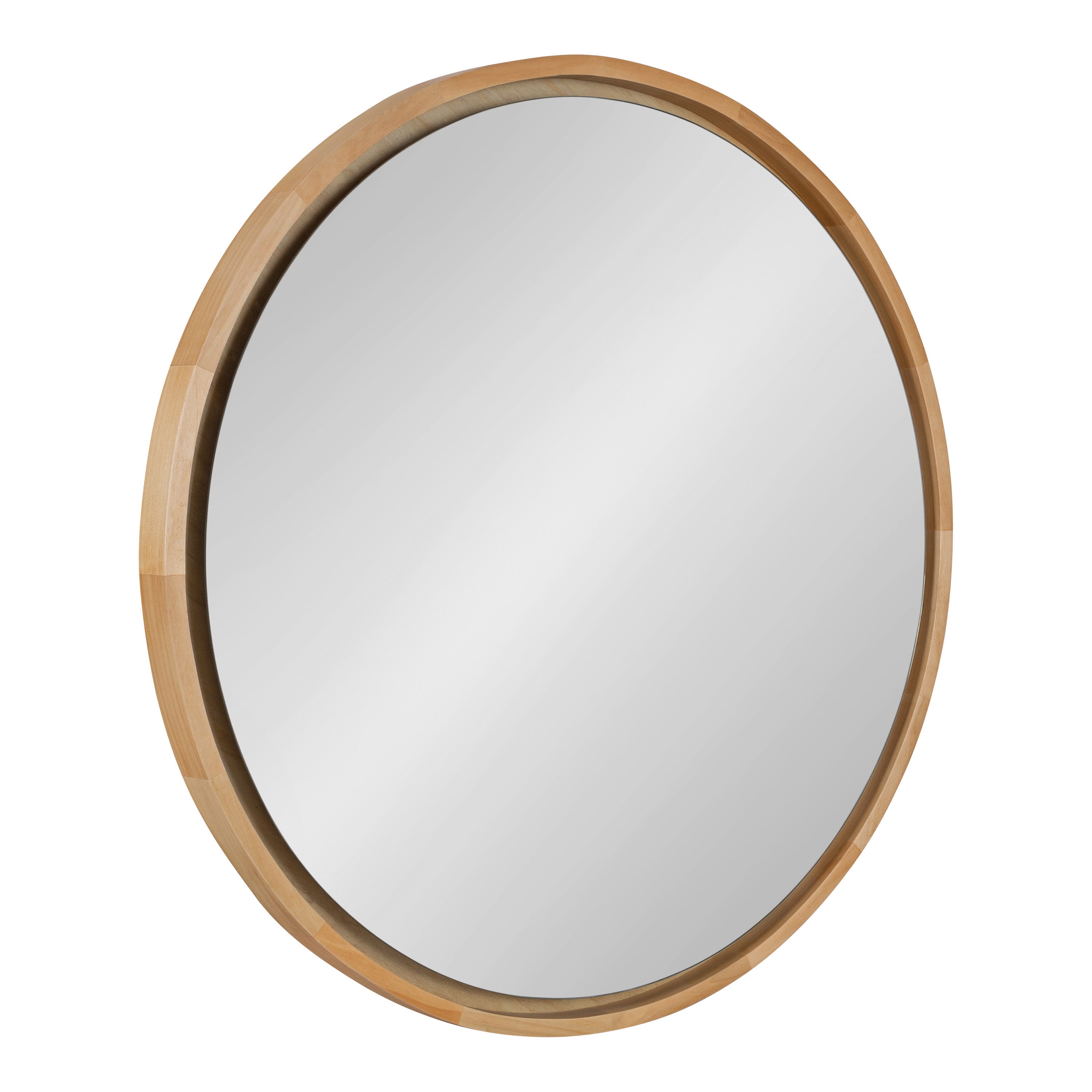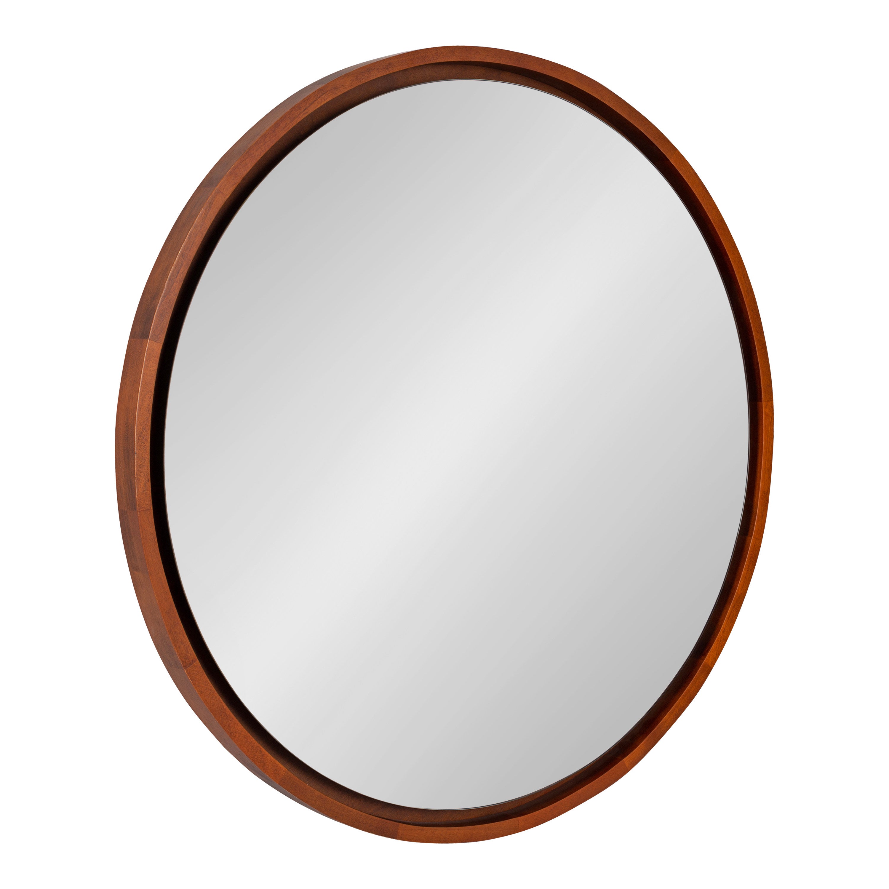 The Evans wall mirror offers your home or office a lovely, mid-century accent for functional display. This boho-chic, modern mirror has a round frame with a wood construction for extra resiliency. The interior glass floats within this solid frame, providing an eye-catching statement for any room of the home.