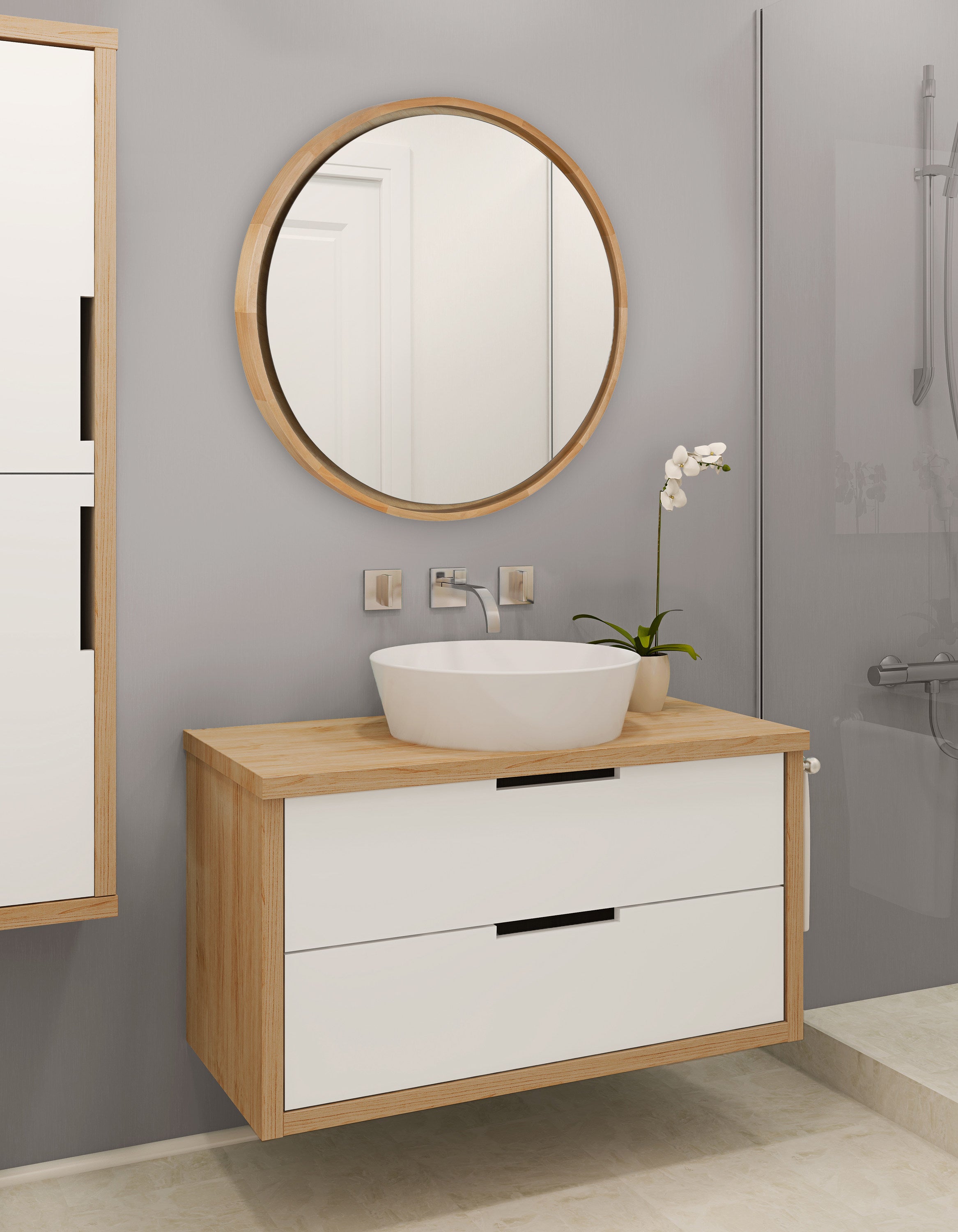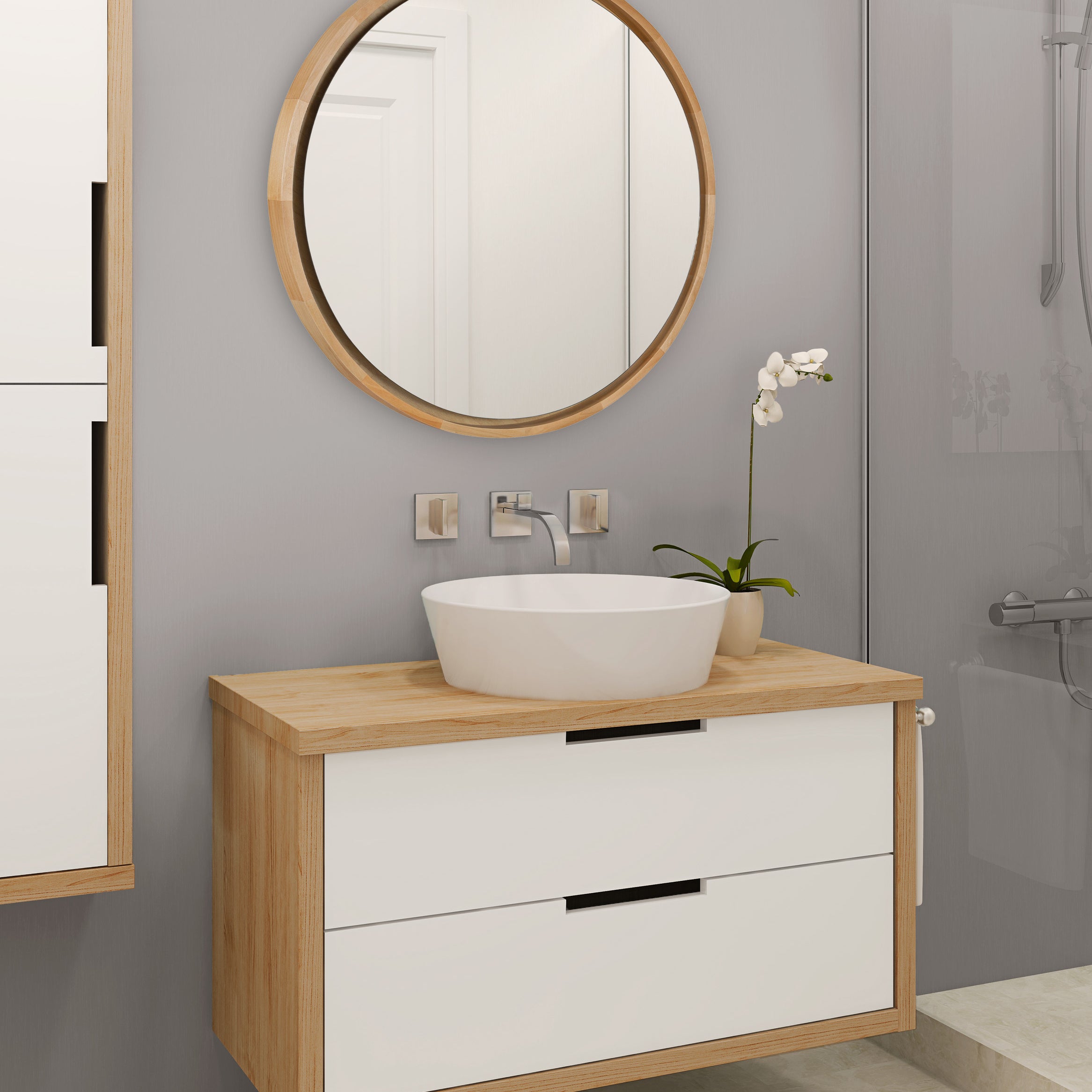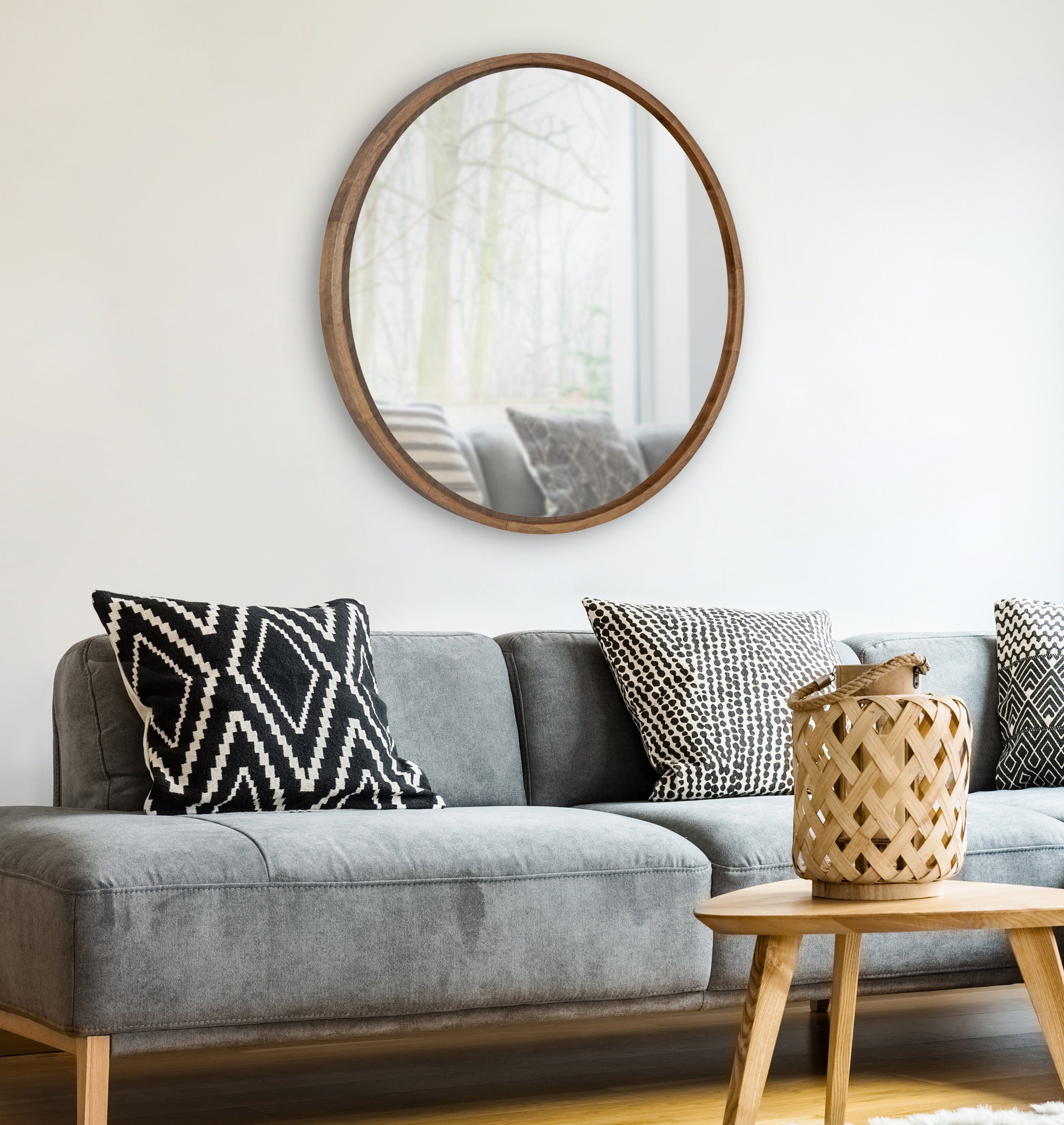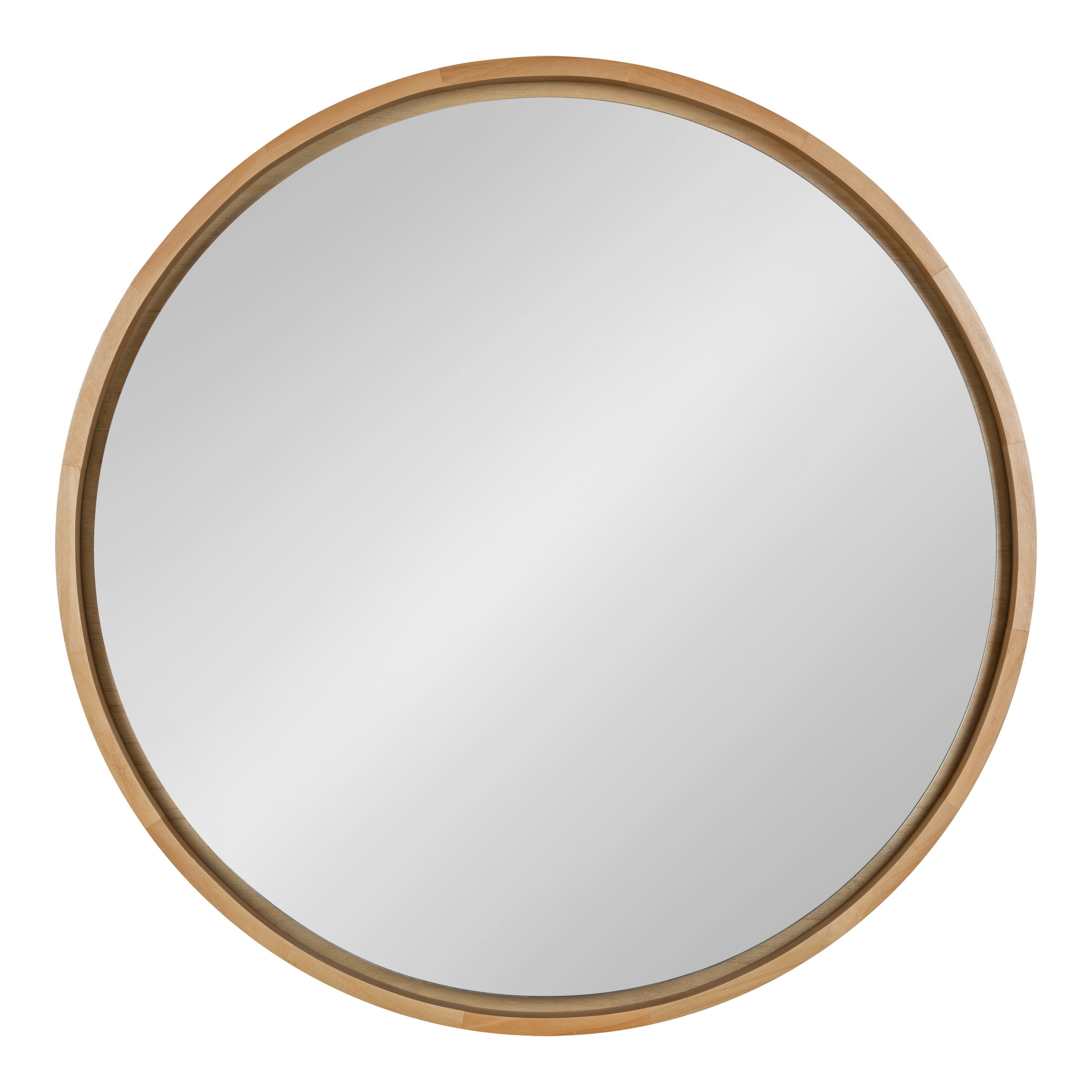 The Evans wall mirror offers your home or office a lovely, mid-century accent for functional display. This boho-chic, modern mirror has a round frame with a wood construction for extra resiliency. The interior glass floats within this solid frame, providing an eye-catching statement for any room of the home.