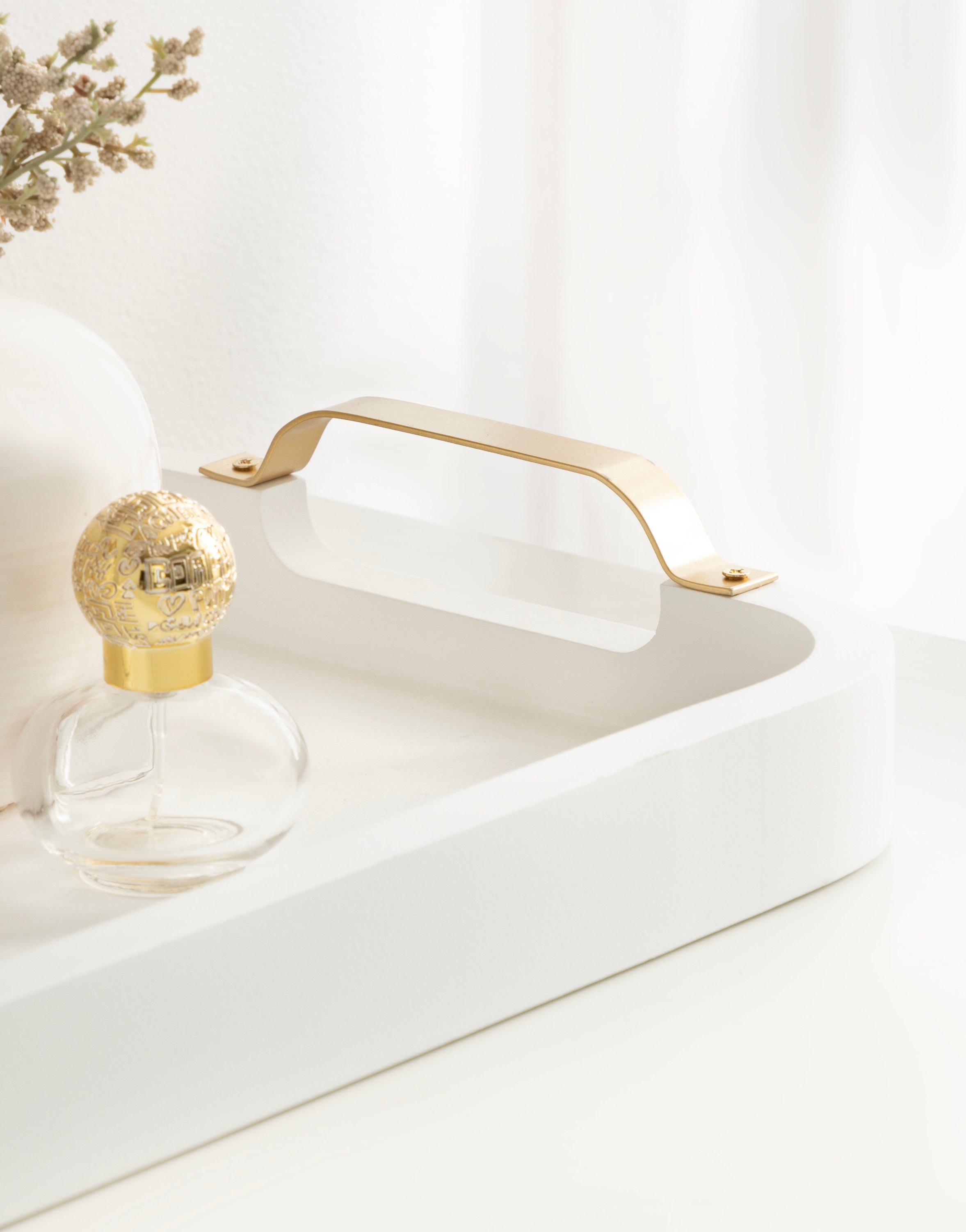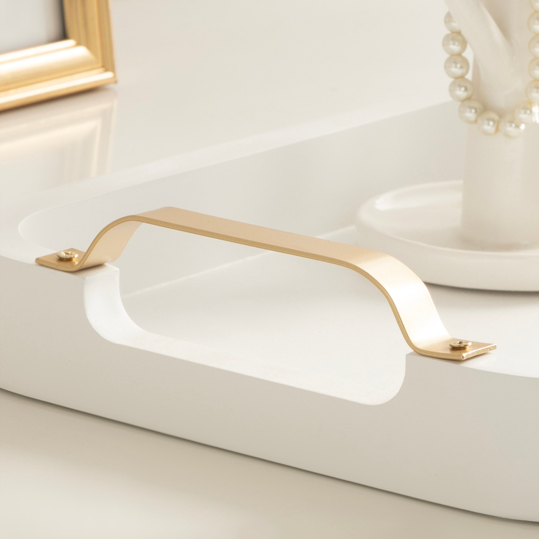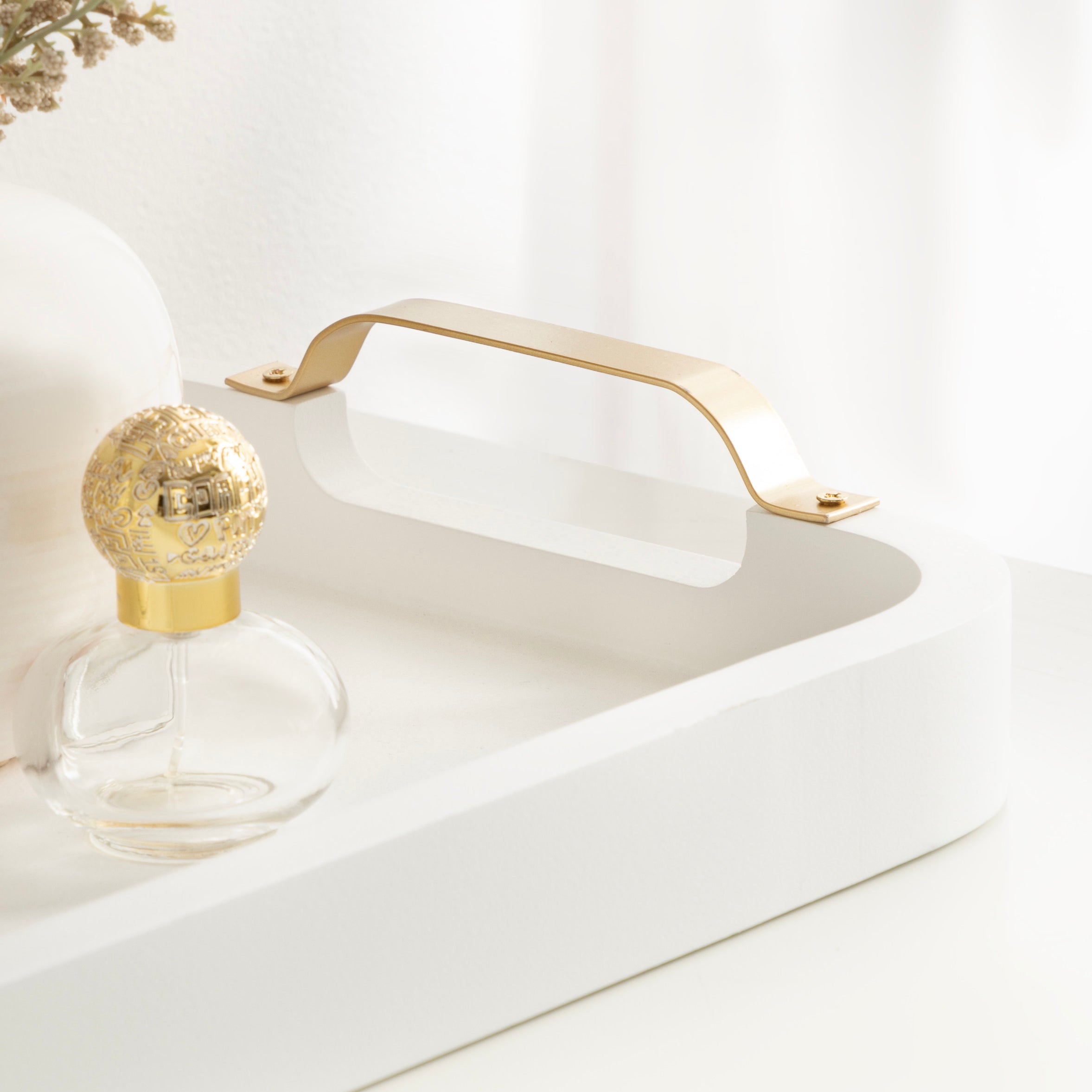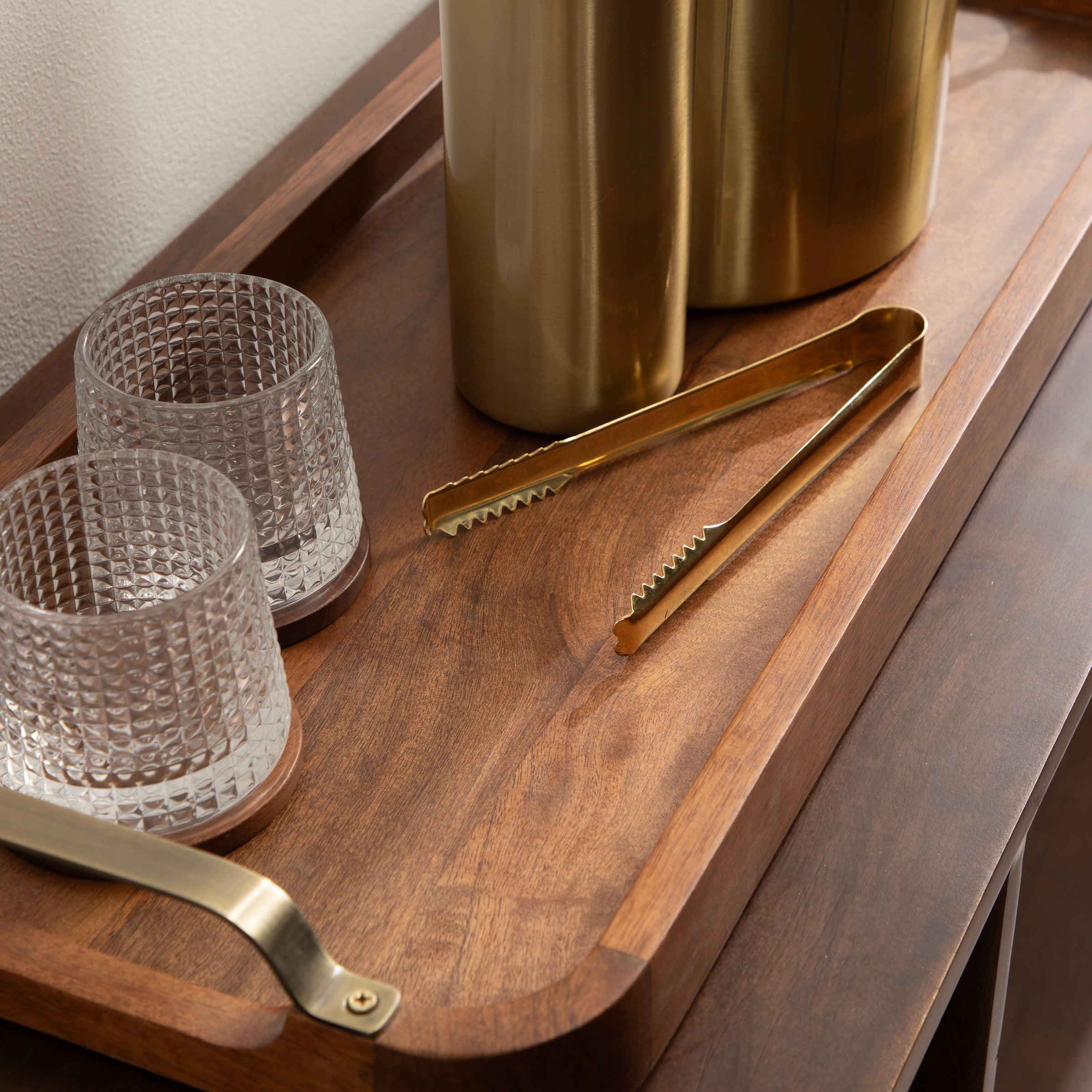 Bring transitional style into your home with this charming narrow wooden tray with metal handles. Place this narrow tray on your entrance console table as an accent tray to hold your keys and change as you come and go. This rectangle tray can also be used as a decorative accent on an ottoman to hold your beverages or on your vanity for makeup organization. Constructed of resilient wooden material and sturdy metal handles, this tray is dependable to carry your cocktails from room to room! An update to the classic accent tray, the base has a raised edge to keep your items more secure when transporting them. From a dining room table to a living room ottoman, this narrow tray brings tremendous versatility anywhere throughout your home. Its skinny size makes it great for serving snacks on little plates or as a decorative display option. The useful tray also includes protective padding on the bottom to prevent scuffs or damage to your hard surfaces.