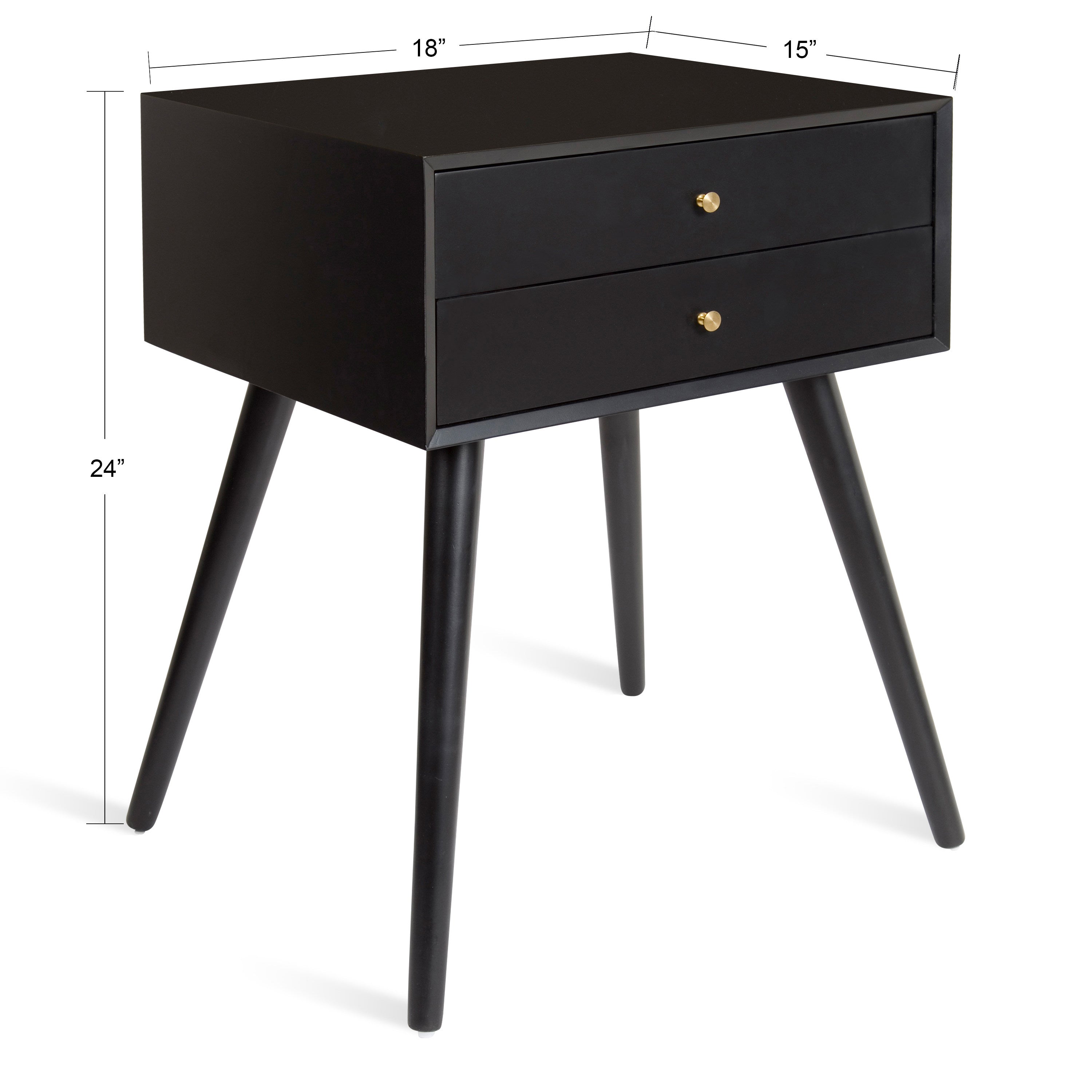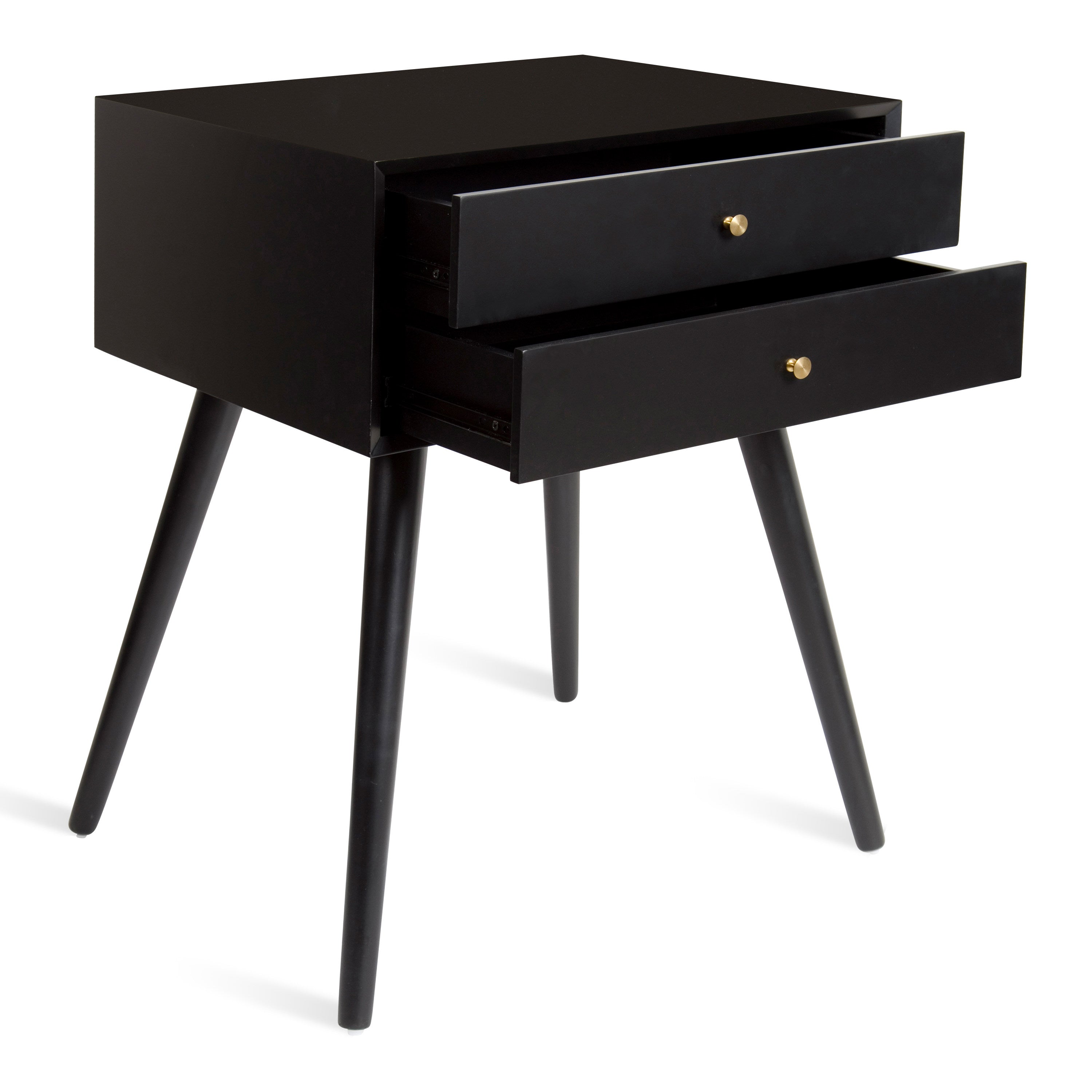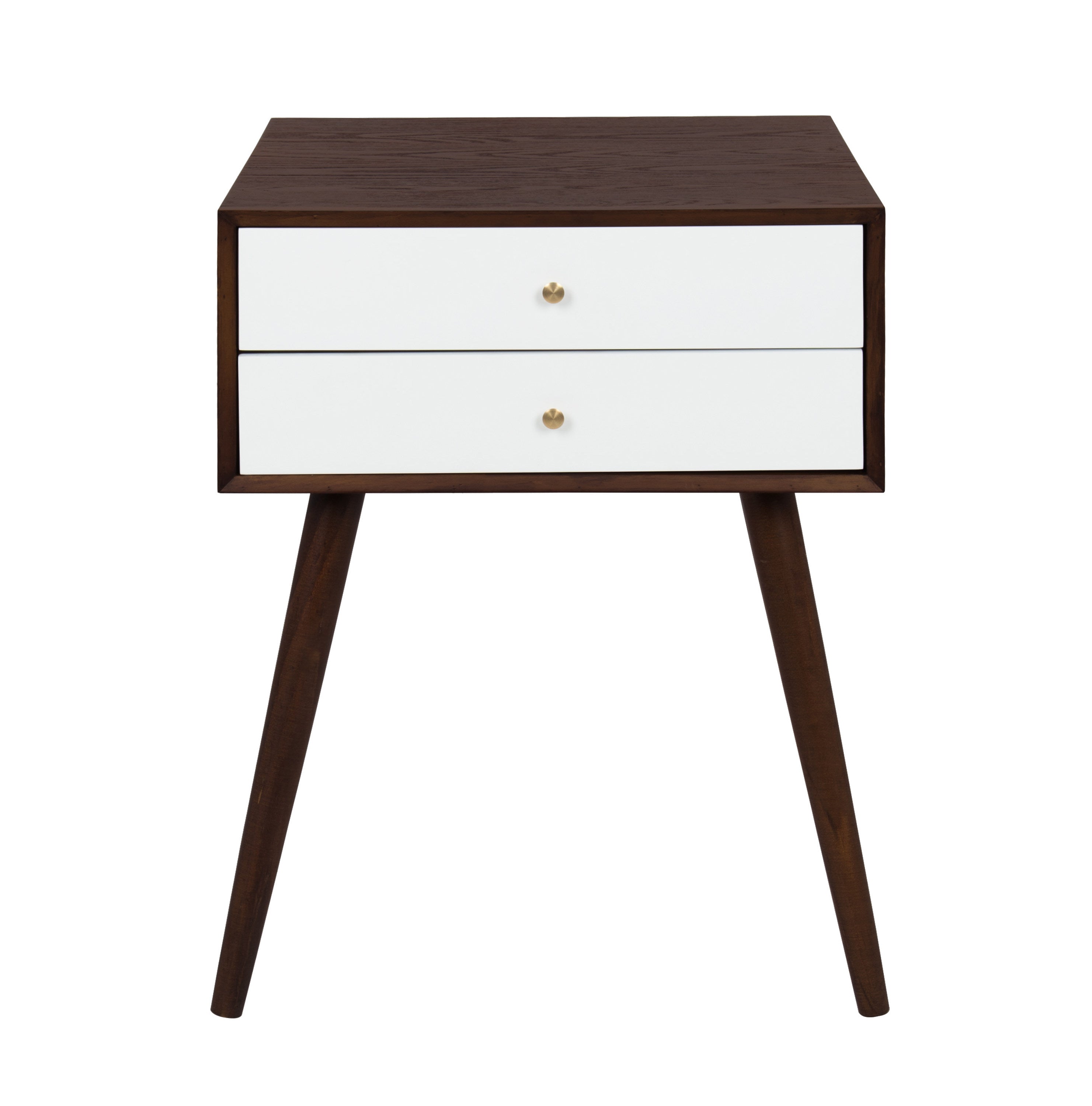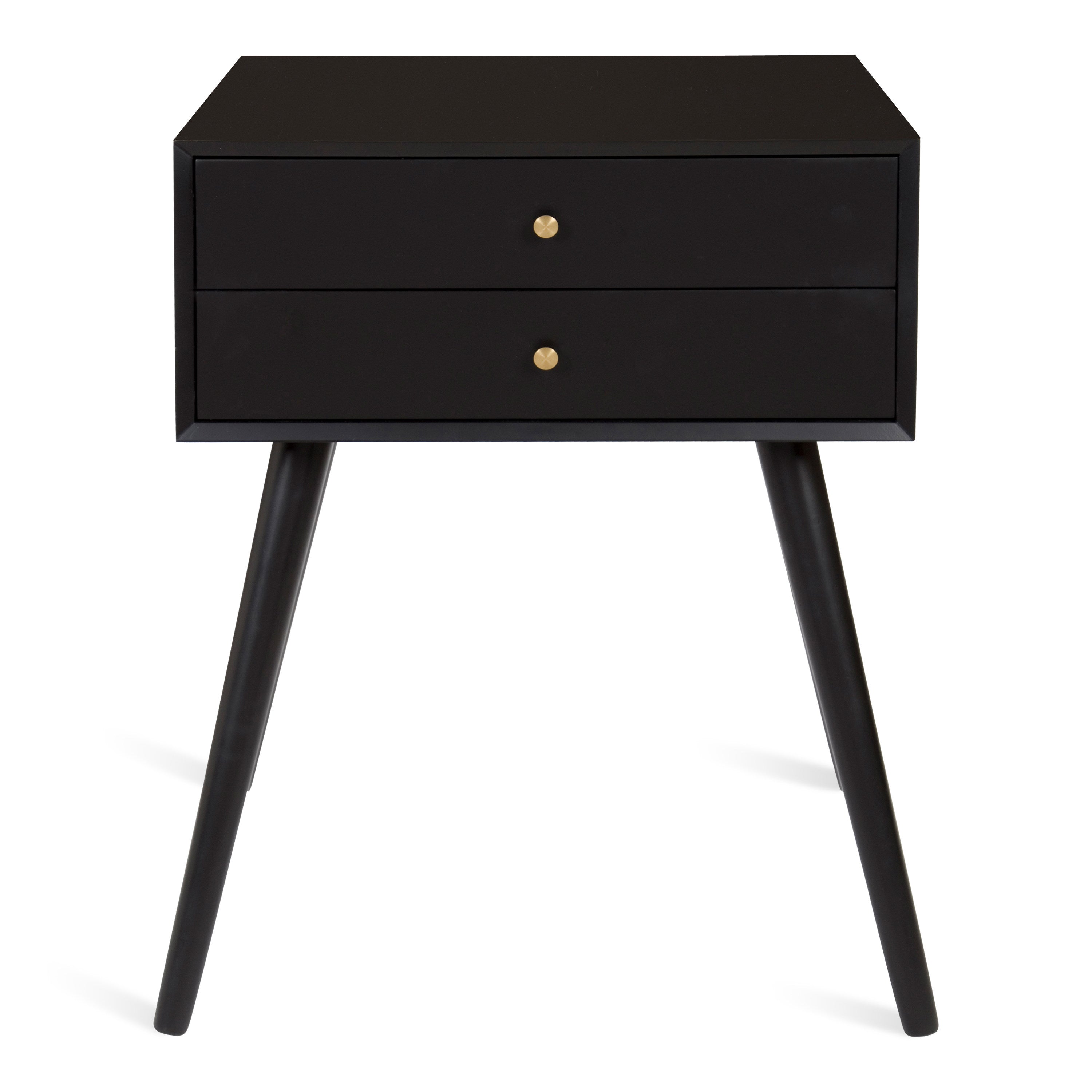 Mid-century modern style with a chic retro vibe makes the Finco side table the perfect addition to your home. It's clean, simple design fits in easily with any of your existing decor. This solidly built wooden table has two drawers for additional storage and is designed at a height that'll fit next to a bed as a nightstand or alongside a sofa or chair as a great looking end table.