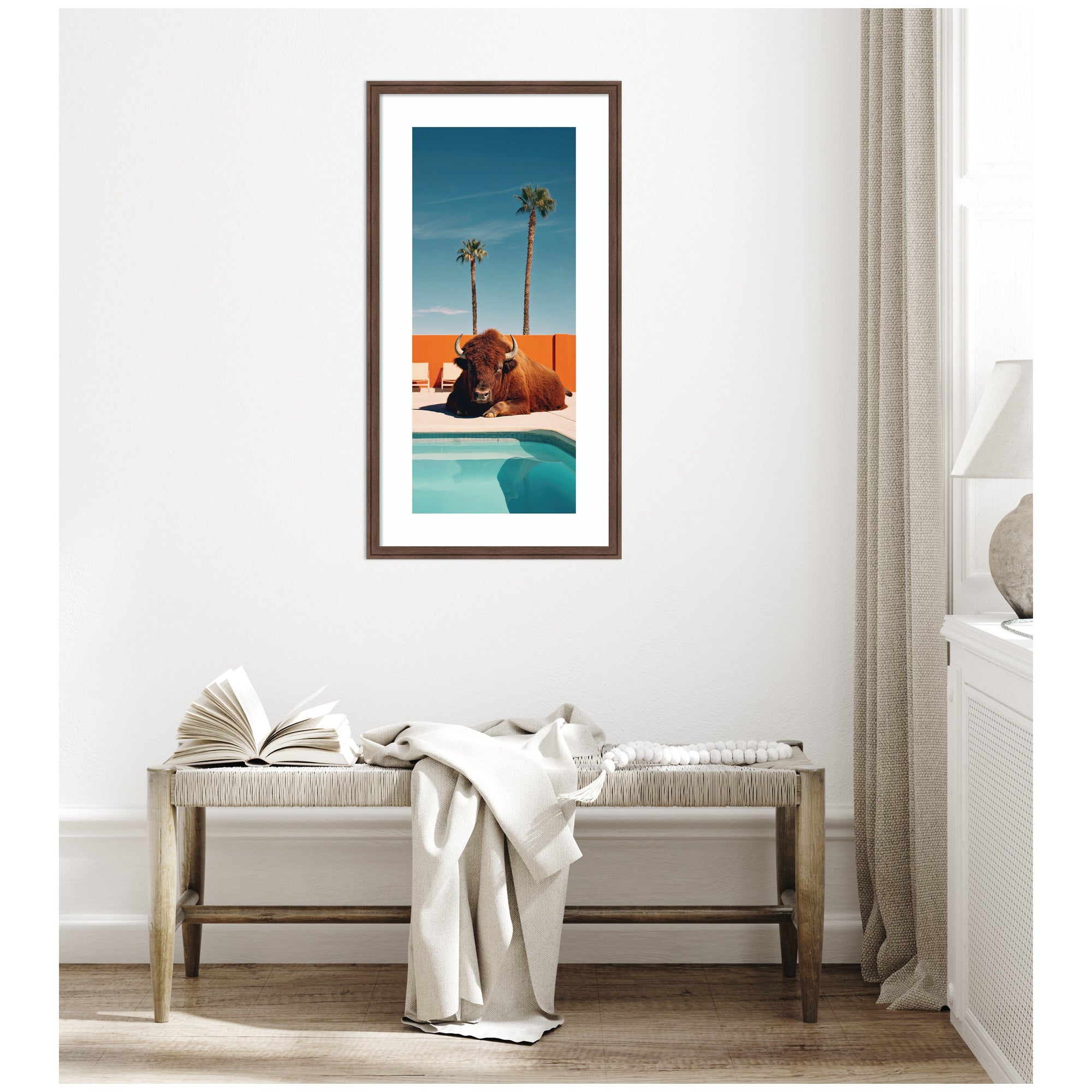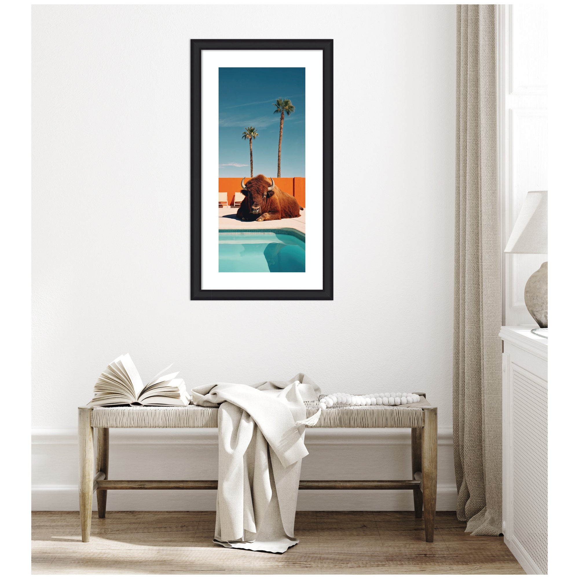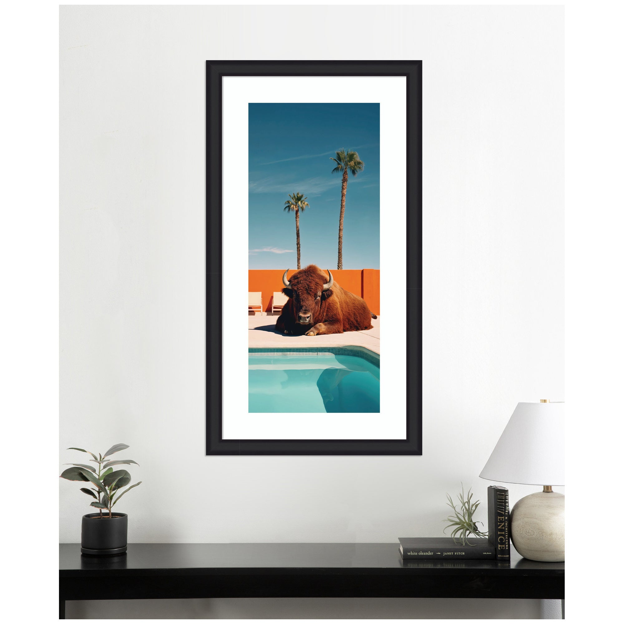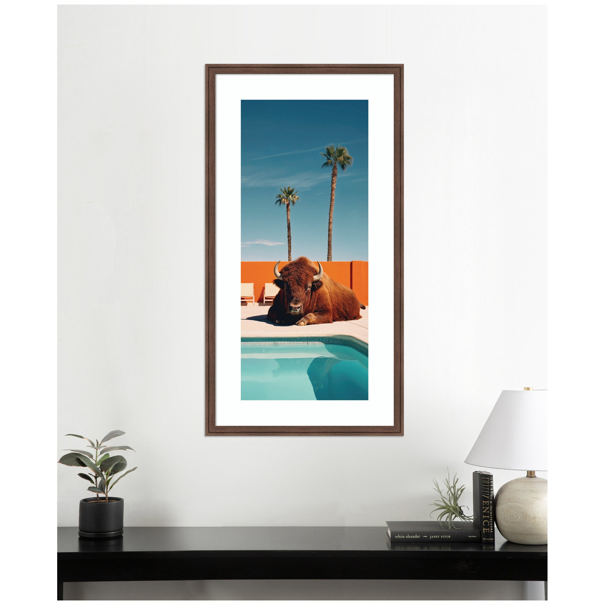 Framed Art Bison Chilling by the Pool in California by Michael Schauer