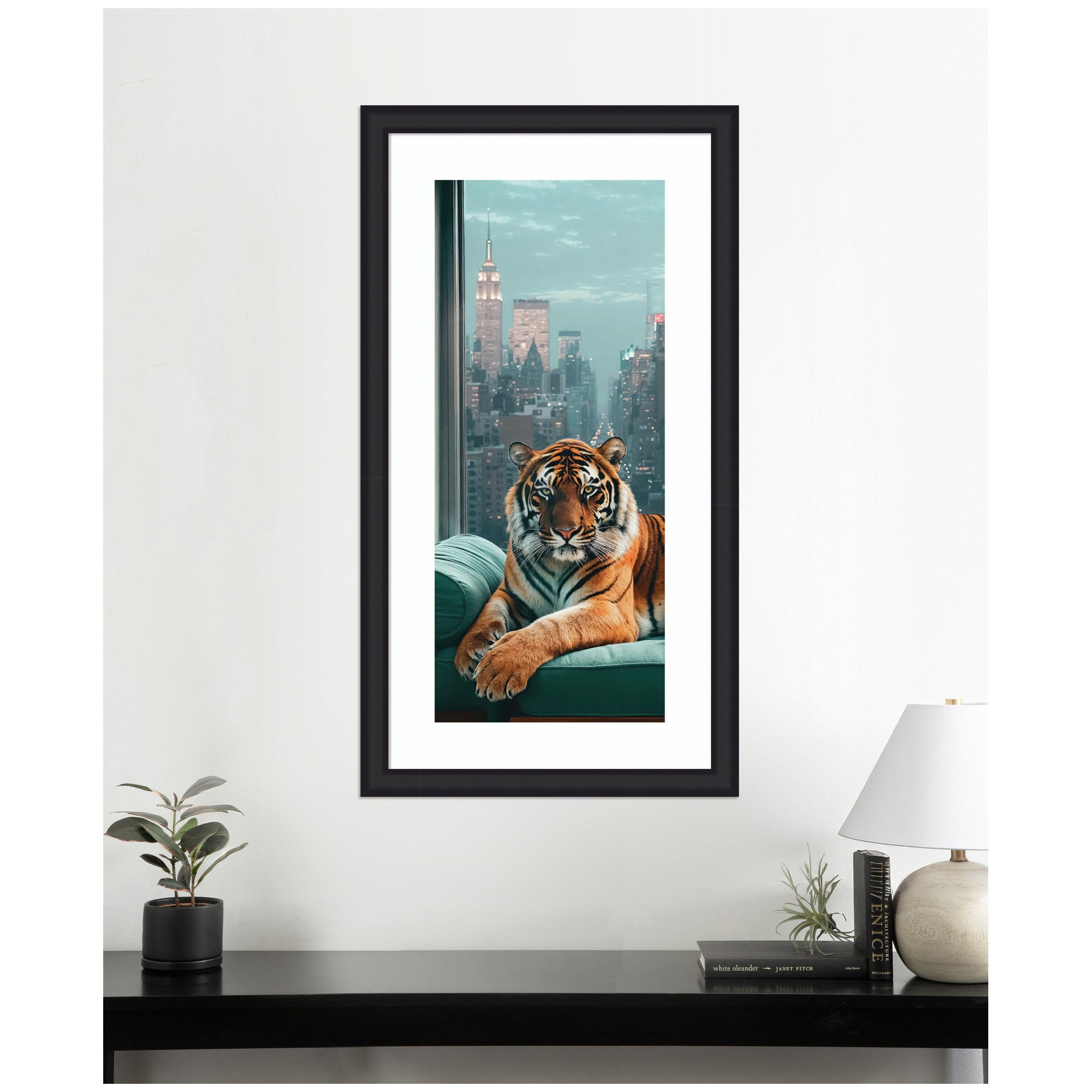 Framed Art Graceful Tiger in New York Panel by Michael Schauer