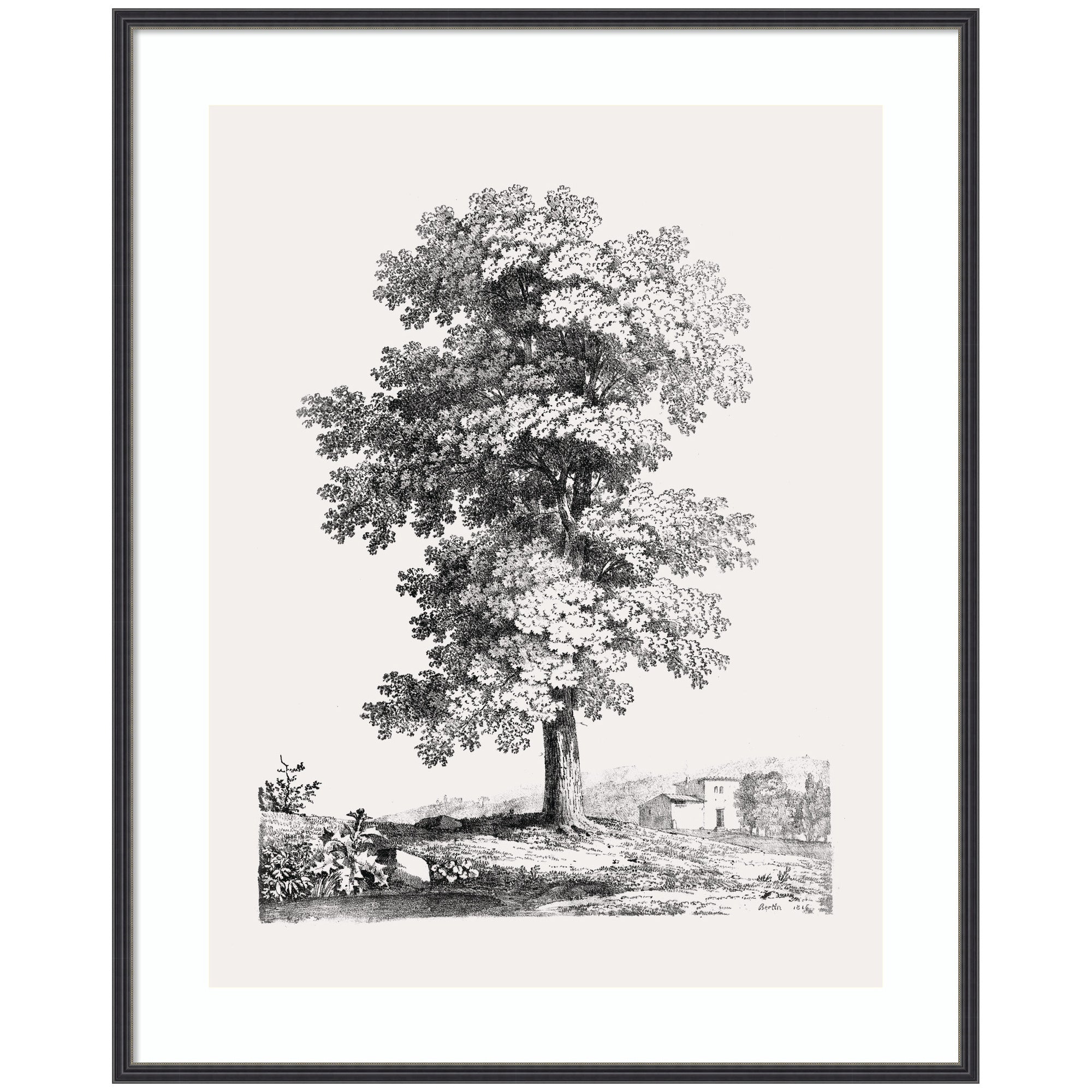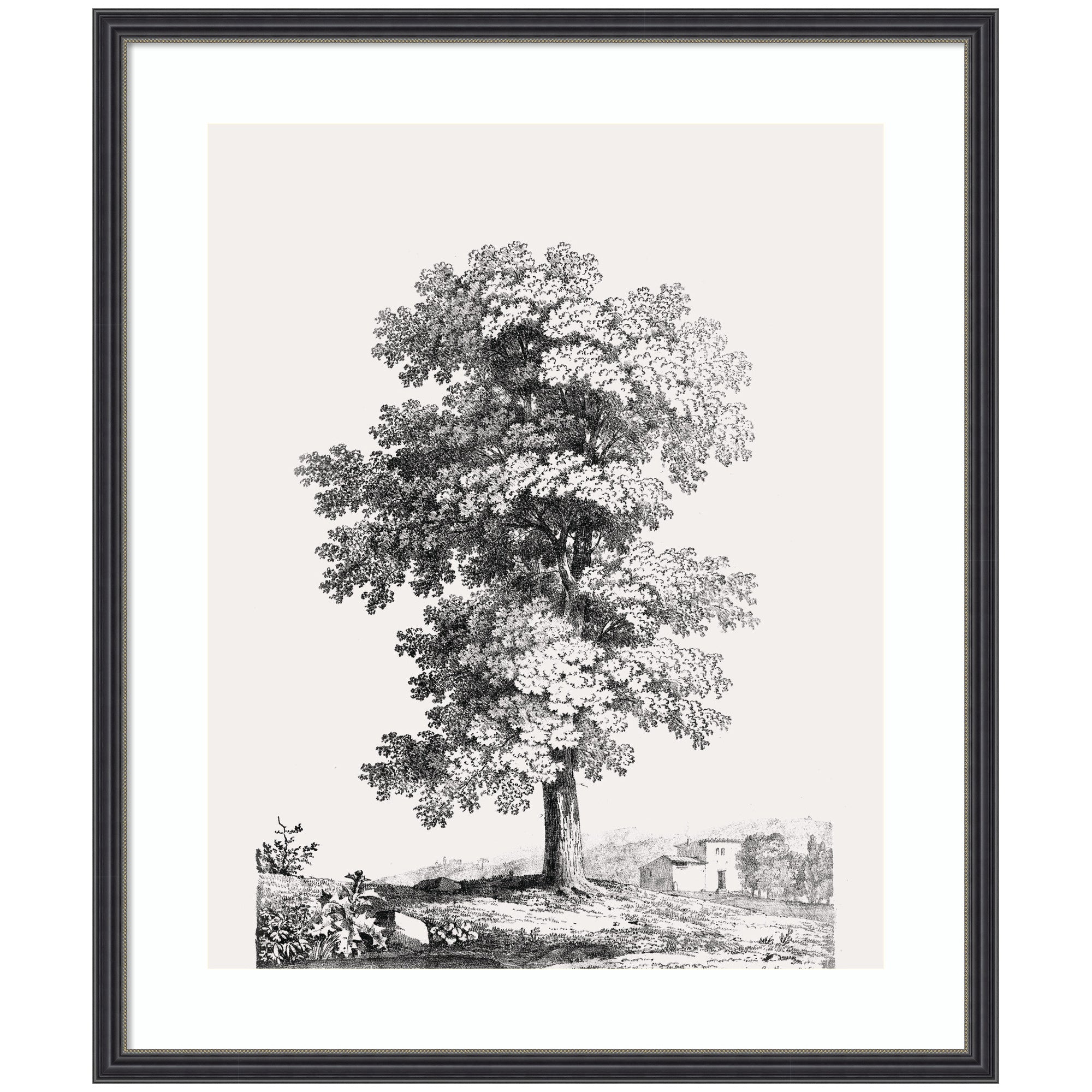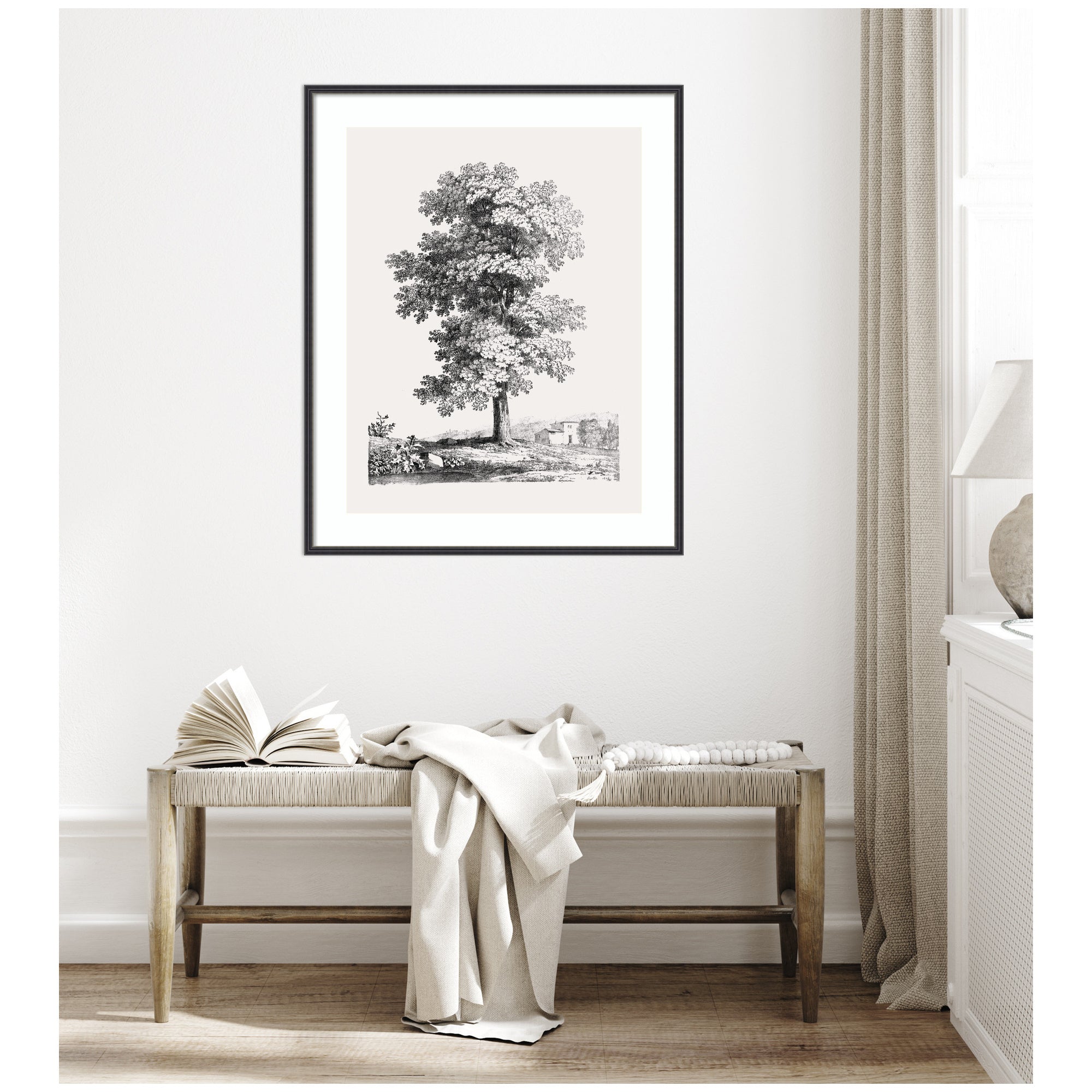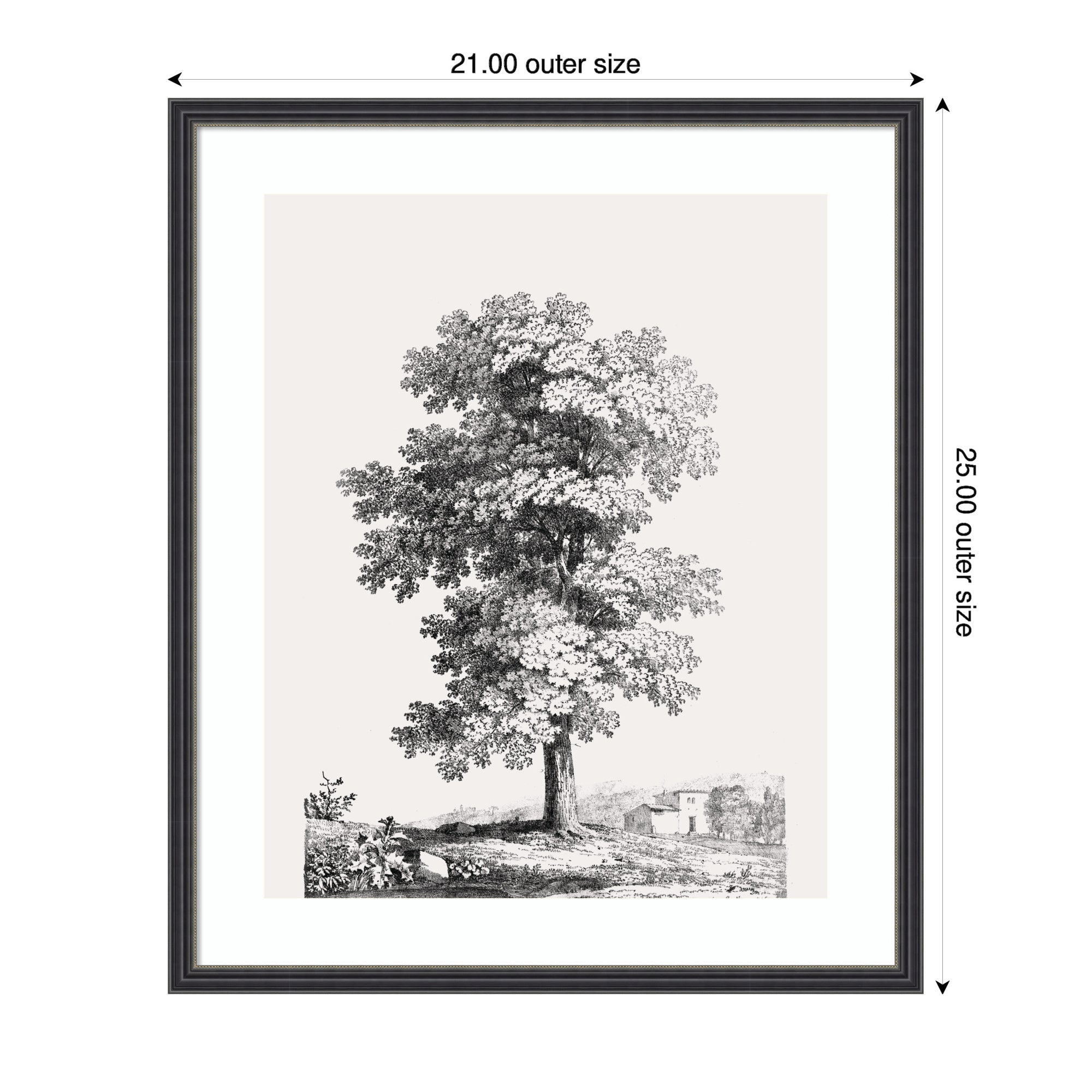 Elevate your space through thoughtfully curated style with this stunning piece designed by independent artist The Art Institute of Chicago and beautifully framed by hand in Madison, WI. The image is giclee printed using fade-resistant inks, ensuring every detail comes to life in rich, lasting color. Set in designer moulding, its a Vintage accent crafted to make a statement. Visual Story: This artwork is a detailed ink drawing of a large tree dominating the center of the composition. In the background, there is a quaint countryside scene with buildings and gentle hills. The monochrome palette enhances the vintage feel of the piece, and the intricate detailing emphasizes the natural beauty of the landscape.