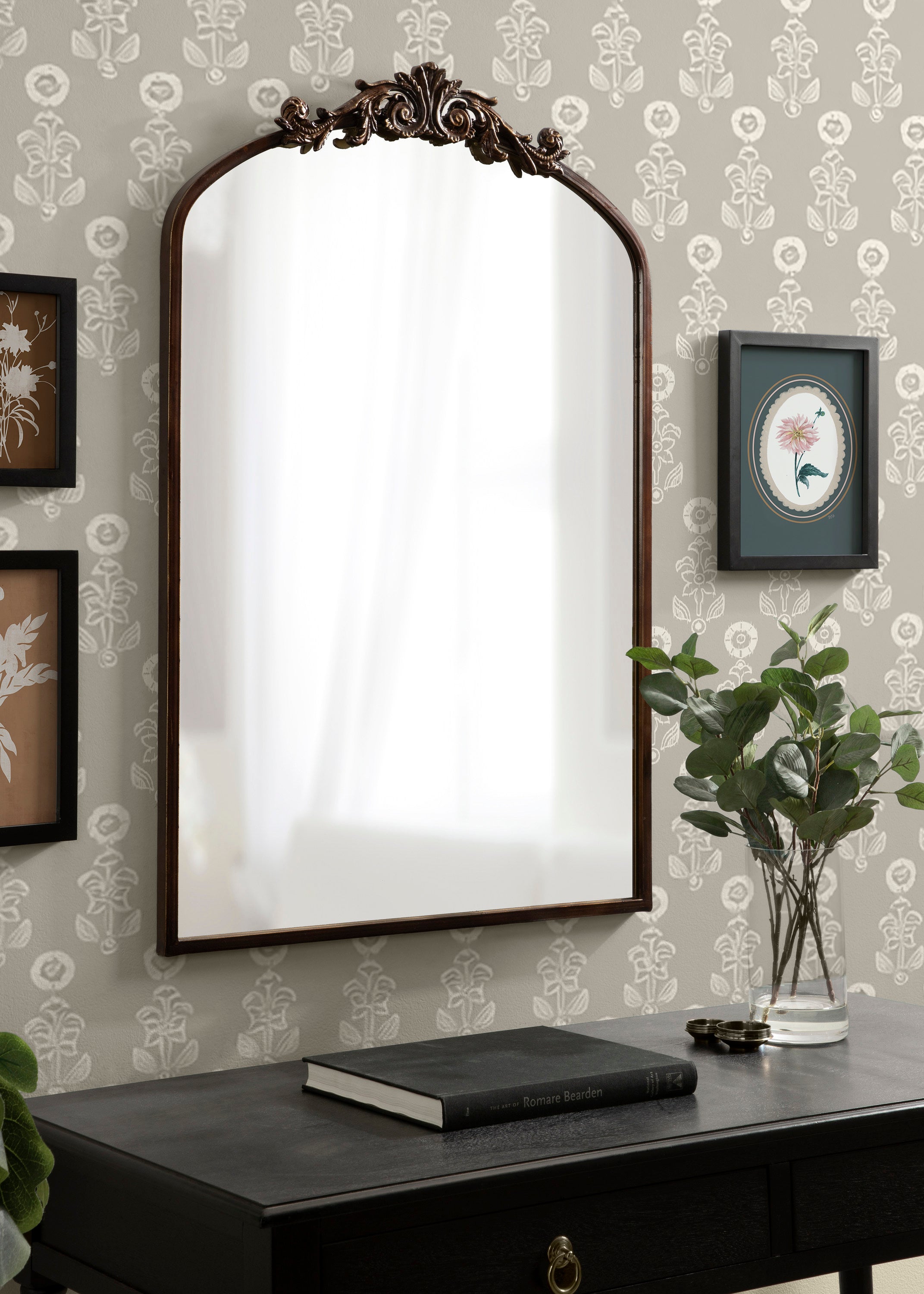The Arendahl wall mirror brings a decadent accent to your traditional home decor. This wall mirror features a baroque-inspired design, with an intricate resin overlay on its iron frame. The antique finish gives it a glamorous touch to display to give your home an air of sophistication. Due to its hand-finished craftsmanship, each piece may vary in appearance. Display it in your living room, bedroom, entryway, bathroom, or dining room as a high-class conversation piece. Use this wall mirror to bring dimension to your smaller spaces, opening up the area and illuminating the darker corners.