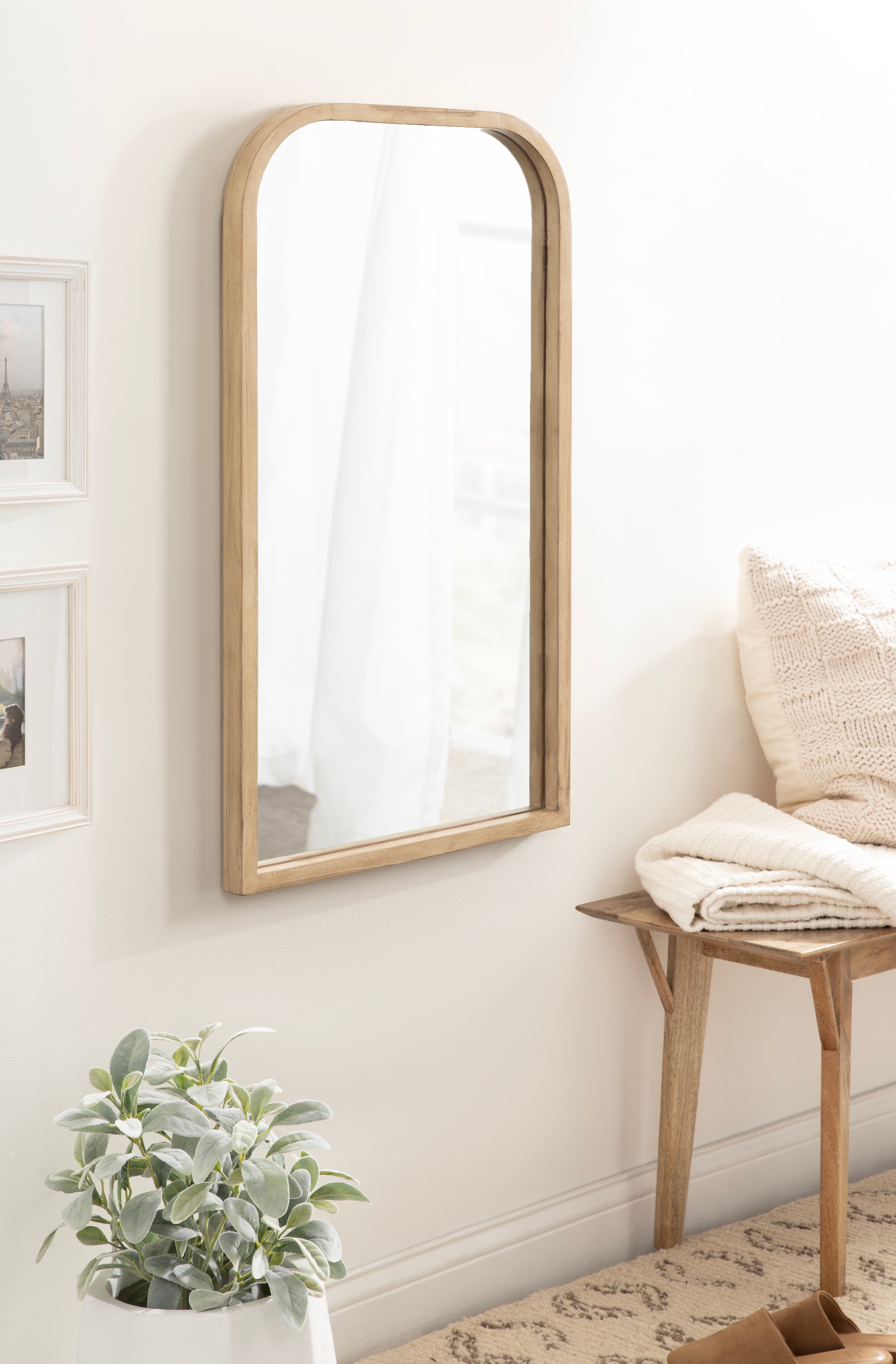 Crafted with meticulous attention to detail, this arch mirror adds character and depth to any space. The arched shape breaks away from traditional rectangular mirrors, making it a captivating focal point on any wall. This wall mirror is not only aesthetically pleasing but also functional. It reflects light and opens up the room, making it appear larger and brighter. Hang it in your living room, bedroom, hallway, or entryway to elevate the ambiance and create an inviting atmosphere.