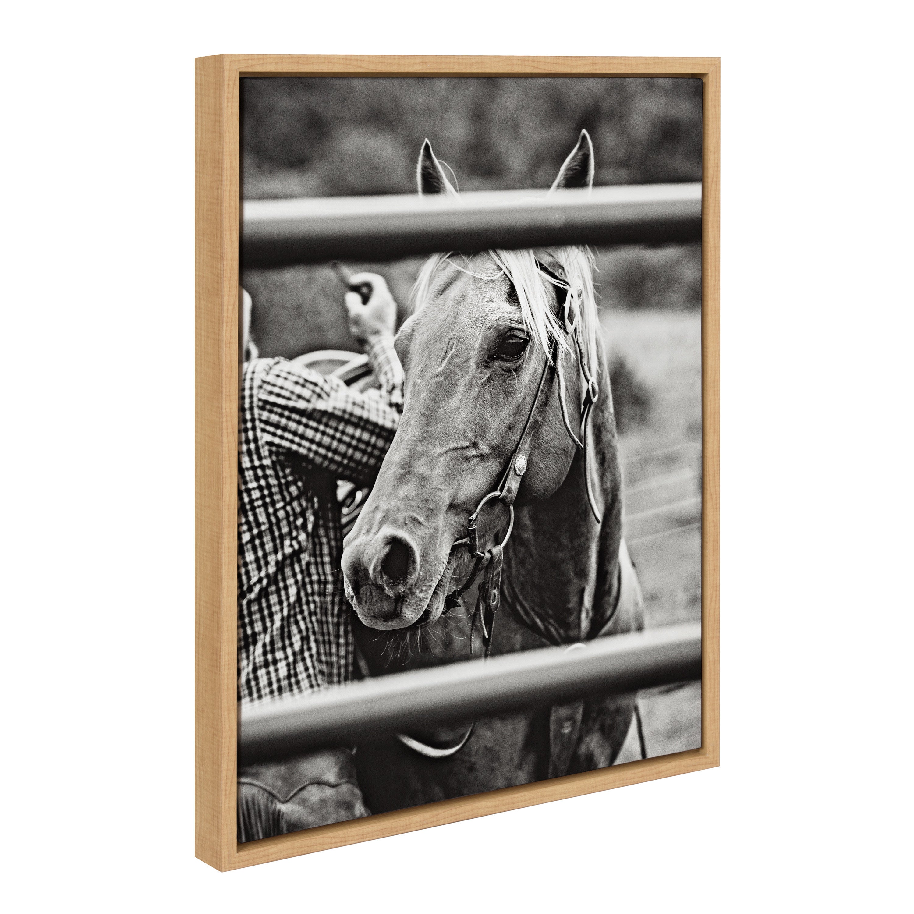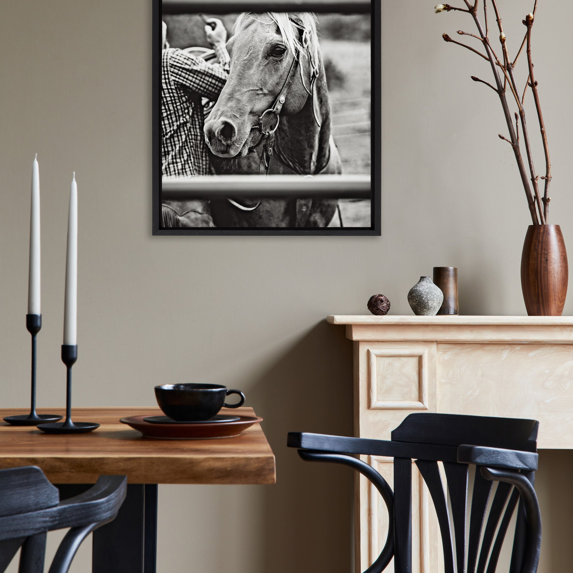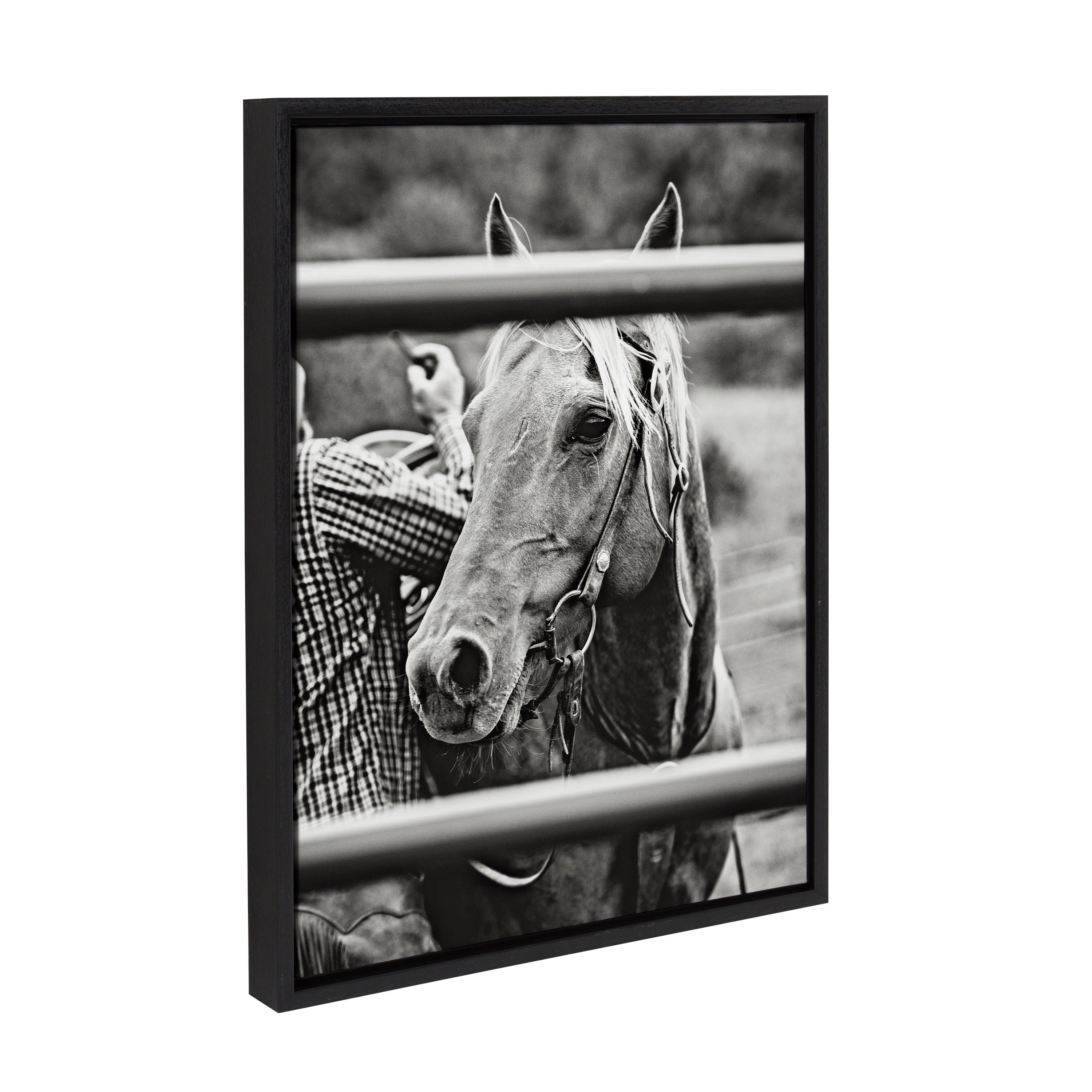 This evocative photograph by The Whiskey Ginger features a horse being saddled, bringing the spirit of the west into your home. Printed and framed in the USA in Waunakee, Wisconsin, this framed floating canvas art will be a pleasure to look at every day in your living room, bedroom, office, or any room in the home. This art also makes an excellent gift for birthdays, holidays, or house-warming parties. Printed on gallery-wrapped canvas and framed with a lightweight polystyrene frame, this wall art is easy to display on the wall.