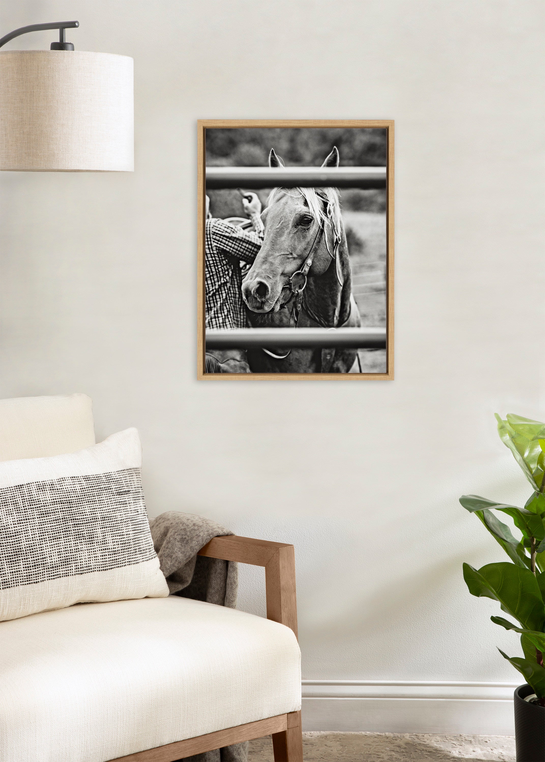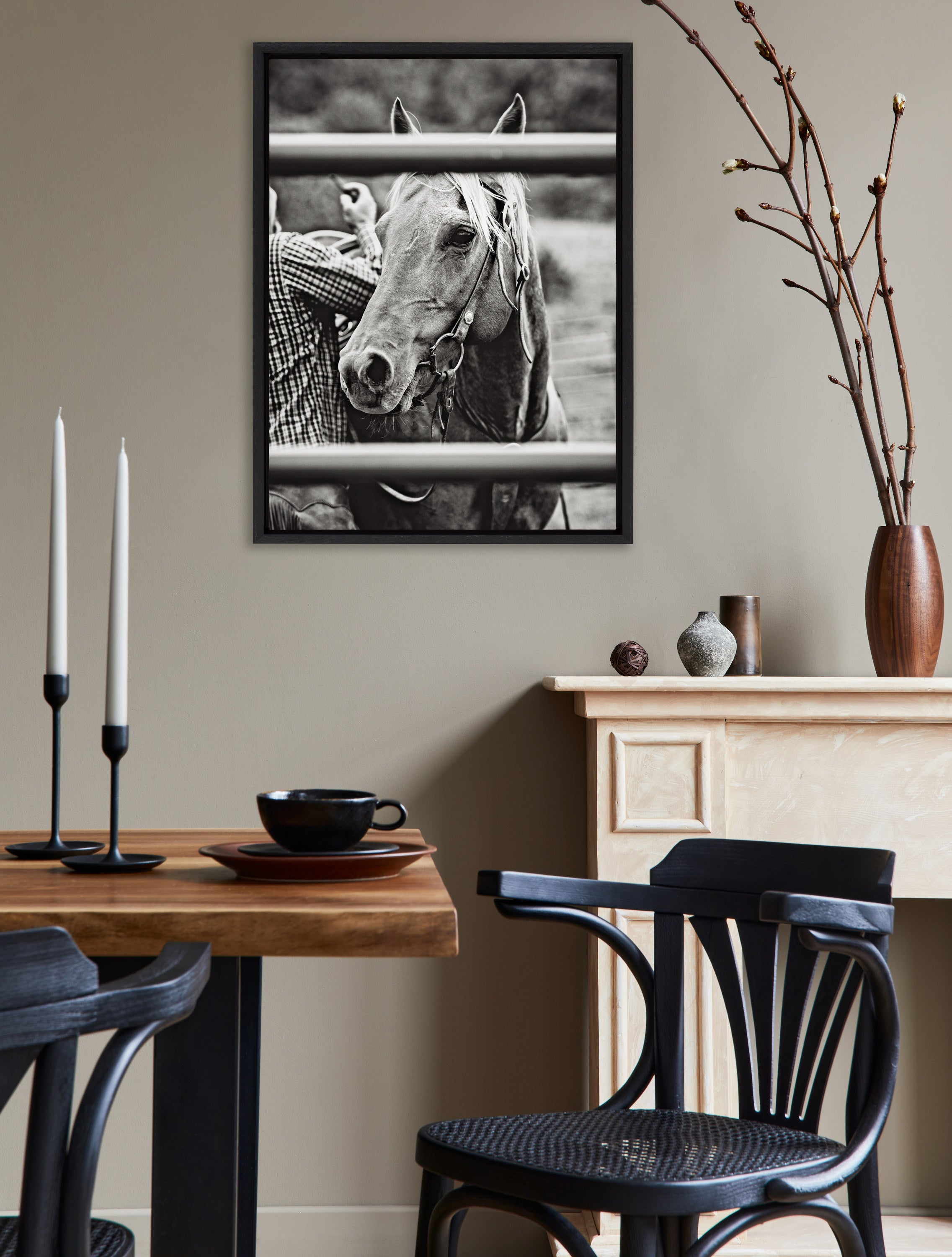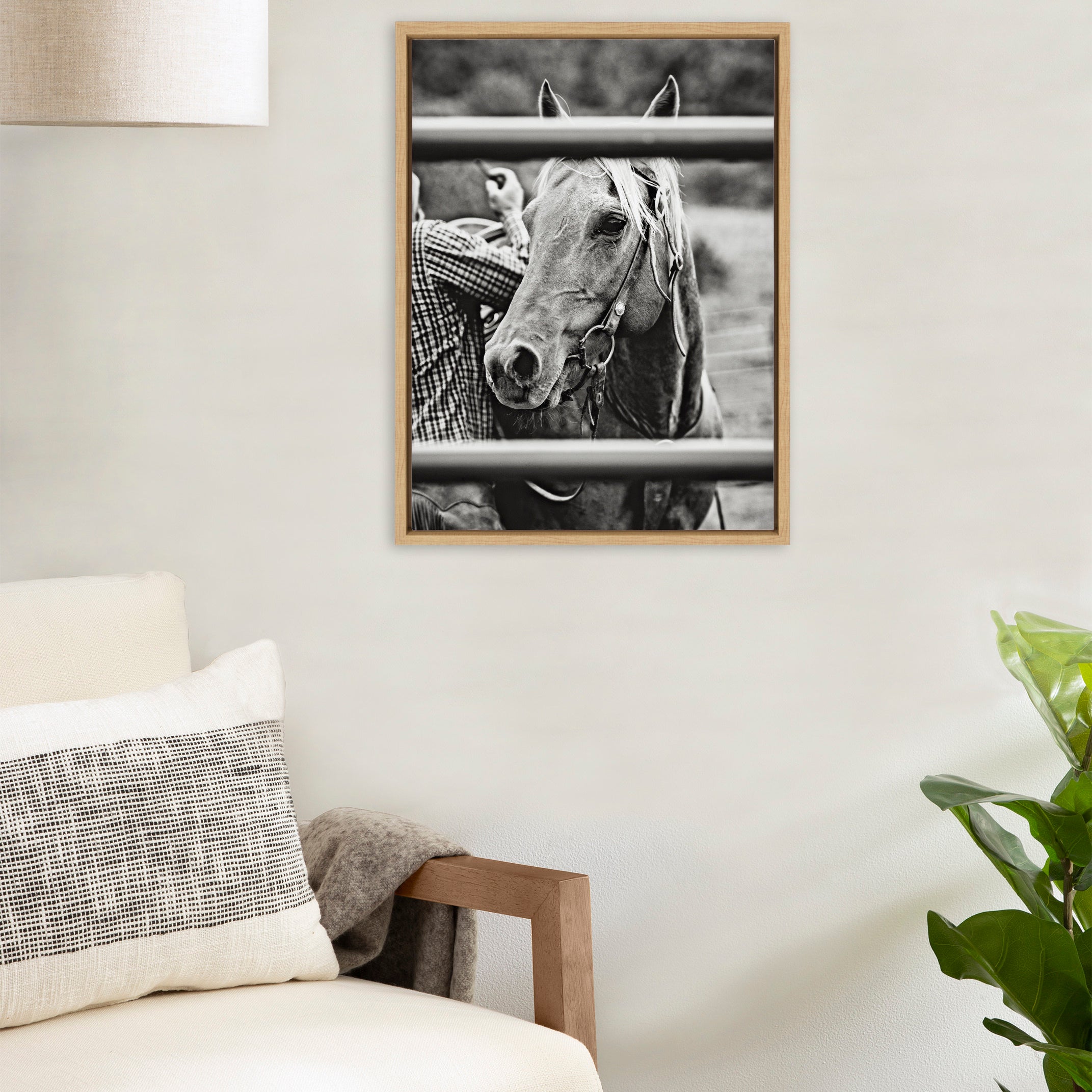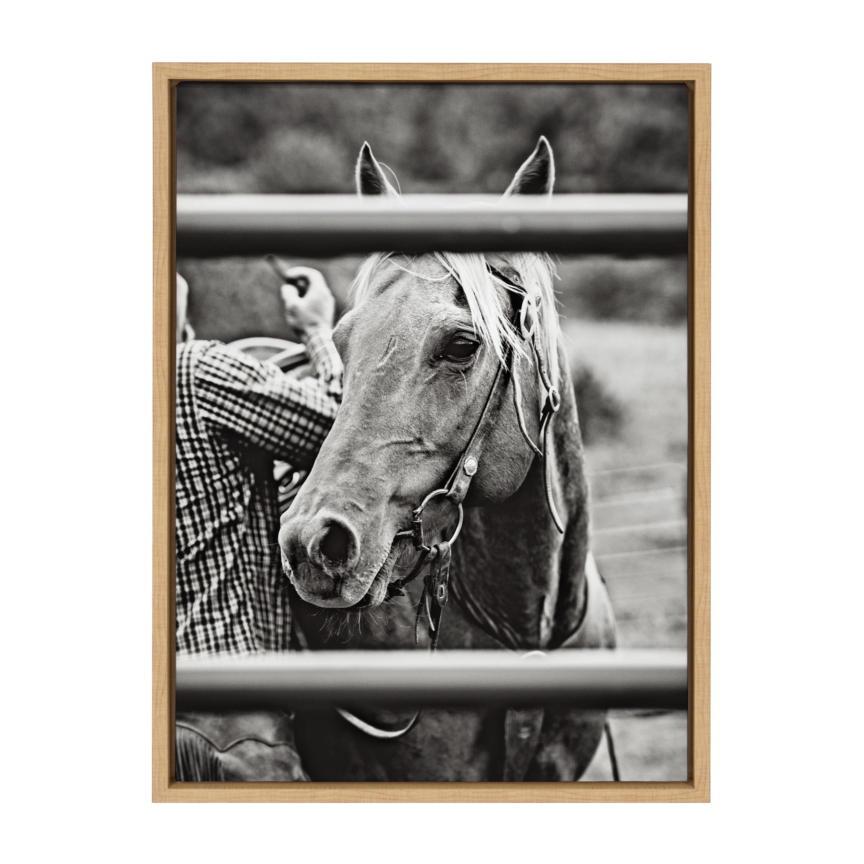This evocative photograph by The Whiskey Ginger features a horse being saddled, bringing the spirit of the west into your home. Printed and framed in the USA in Waunakee, Wisconsin, this framed floating canvas art will be a pleasure to look at every day in your living room, bedroom, office, or any room in the home. This art also makes an excellent gift for birthdays, holidays, or house-warming parties. Printed on gallery-wrapped canvas and framed with a lightweight polystyrene frame, this wall art is easy to display on the wall.