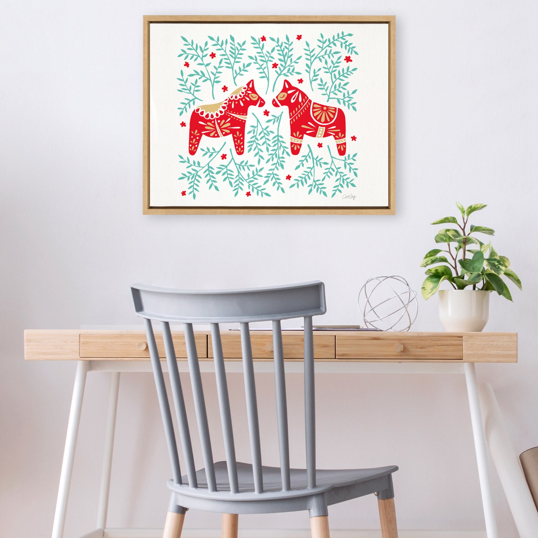 Sylvie Swedish Dala Horses Framed Canvas by Cat Coquillette