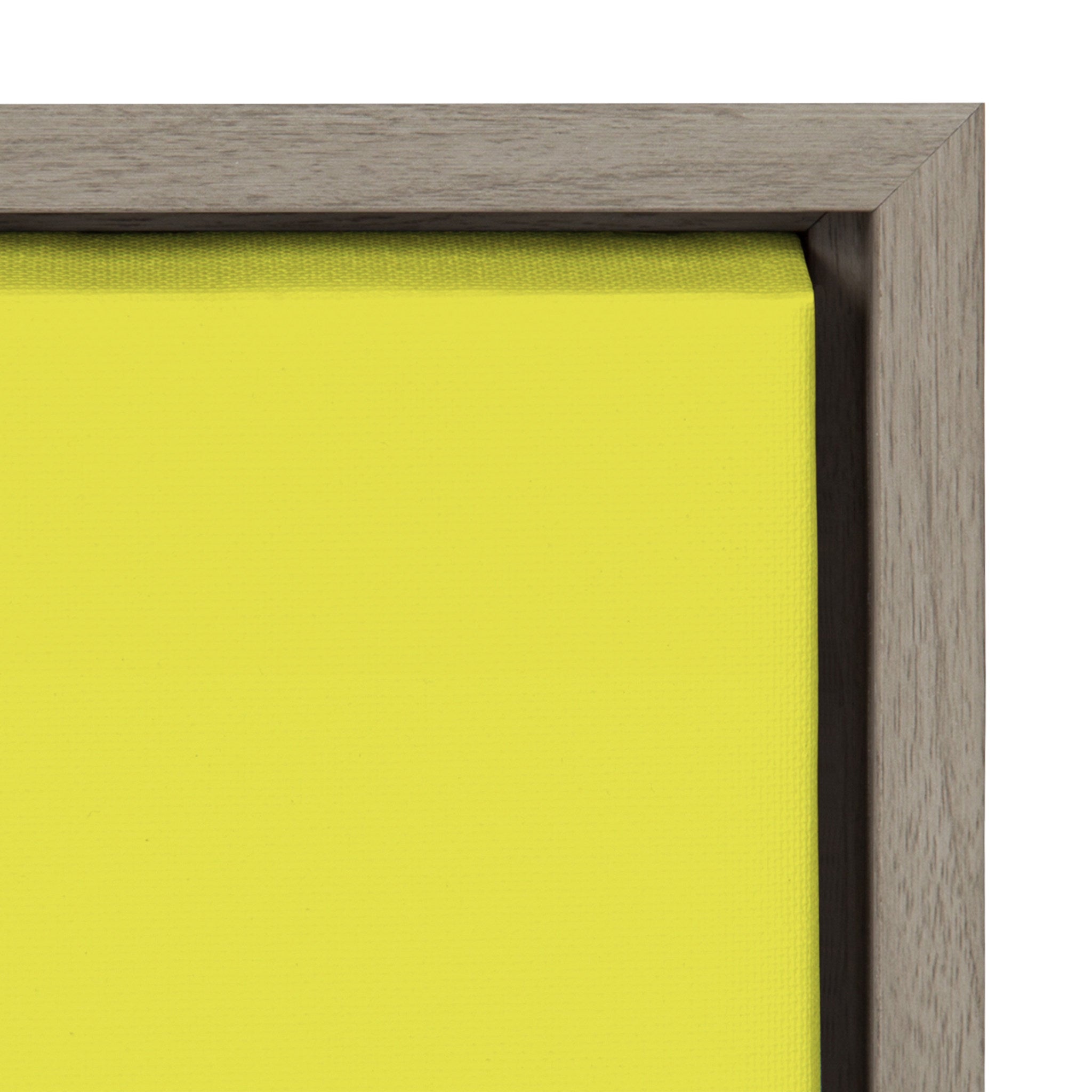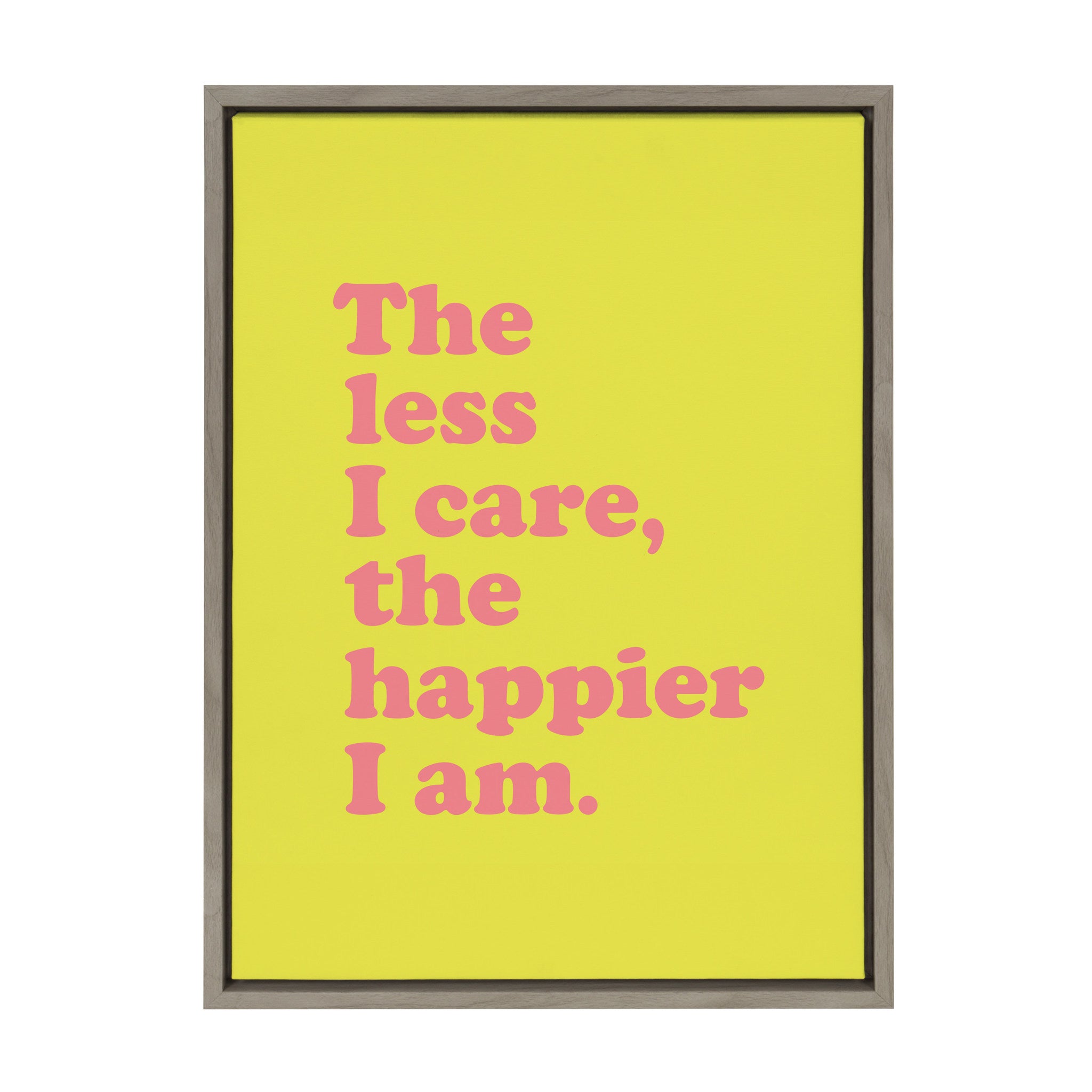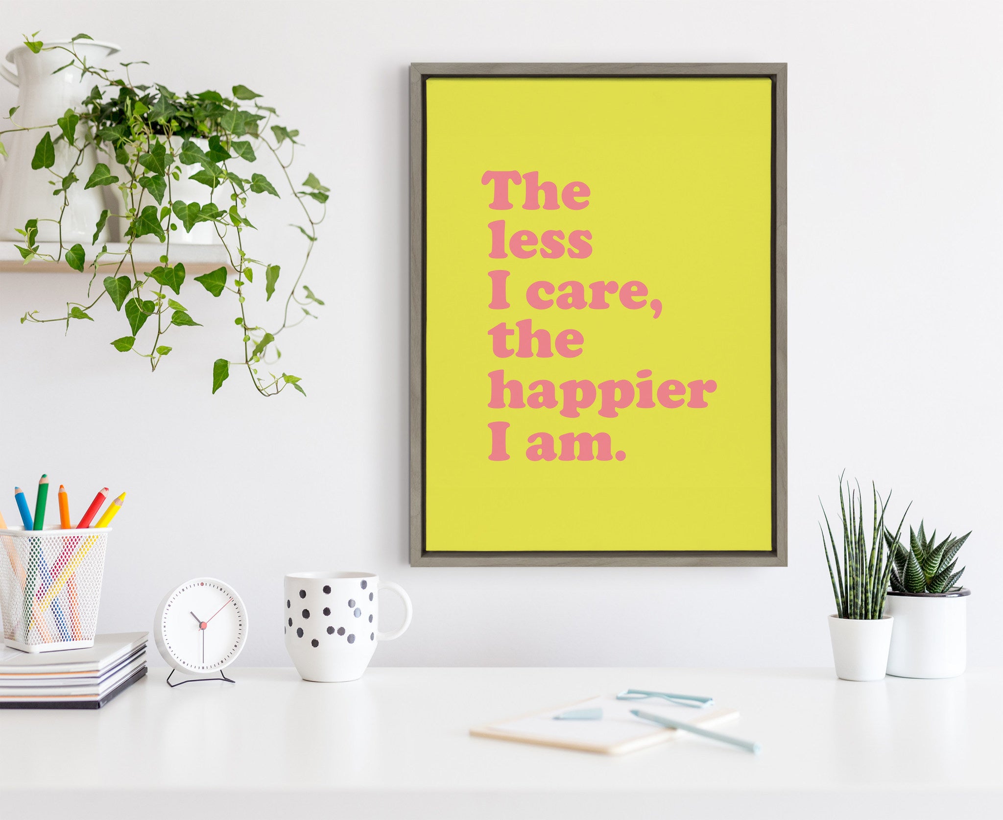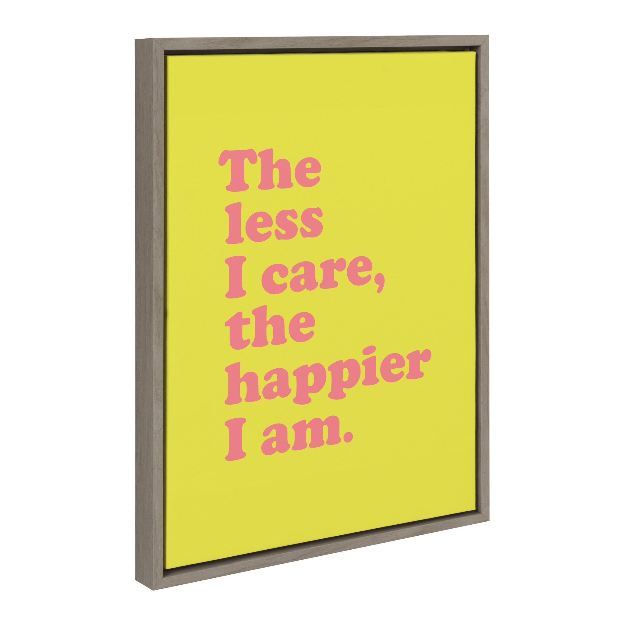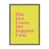 Sylvie Less I Care Happier I am in Yellow and Pink Framed Canvas by Apricot and Birch