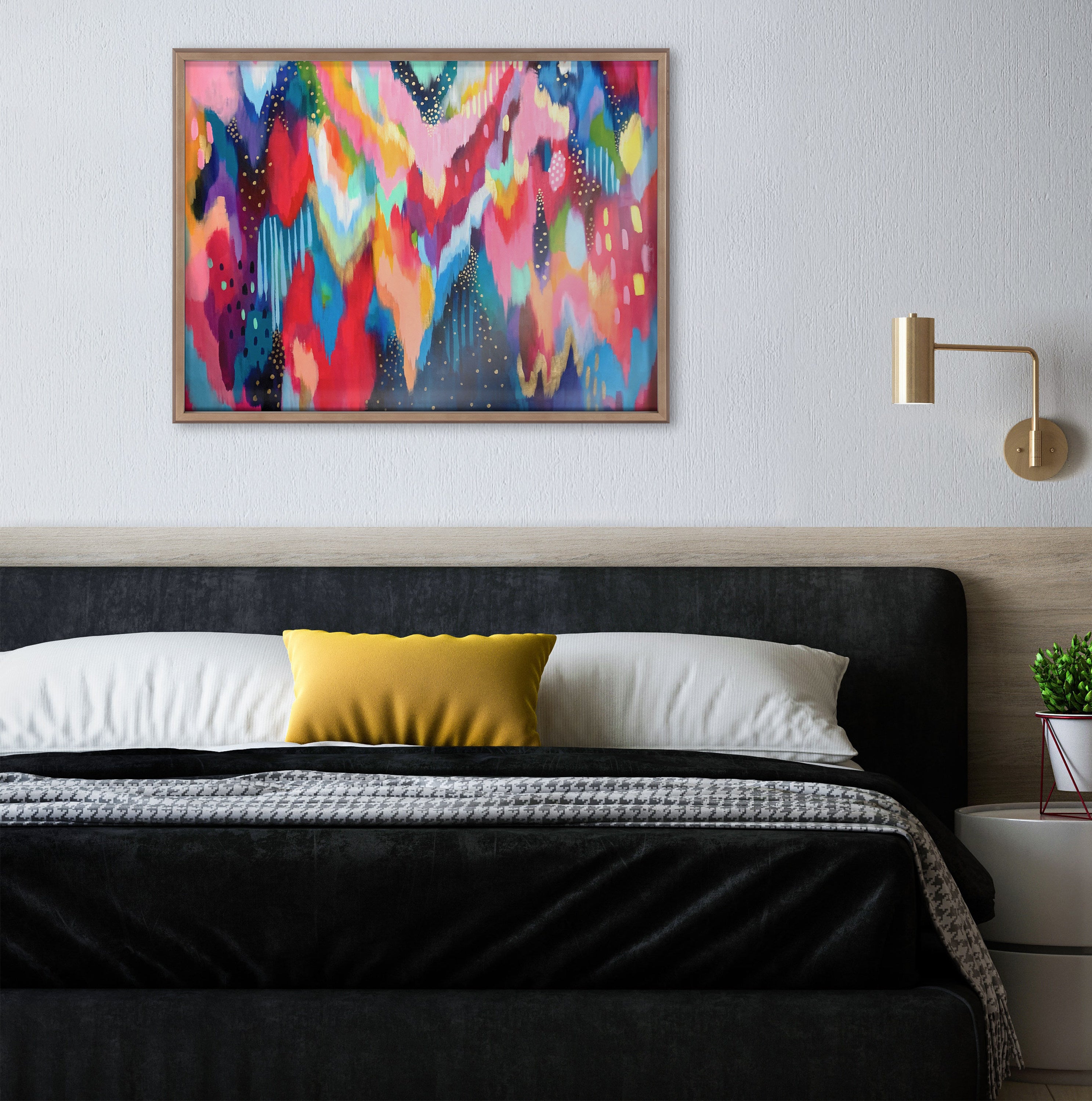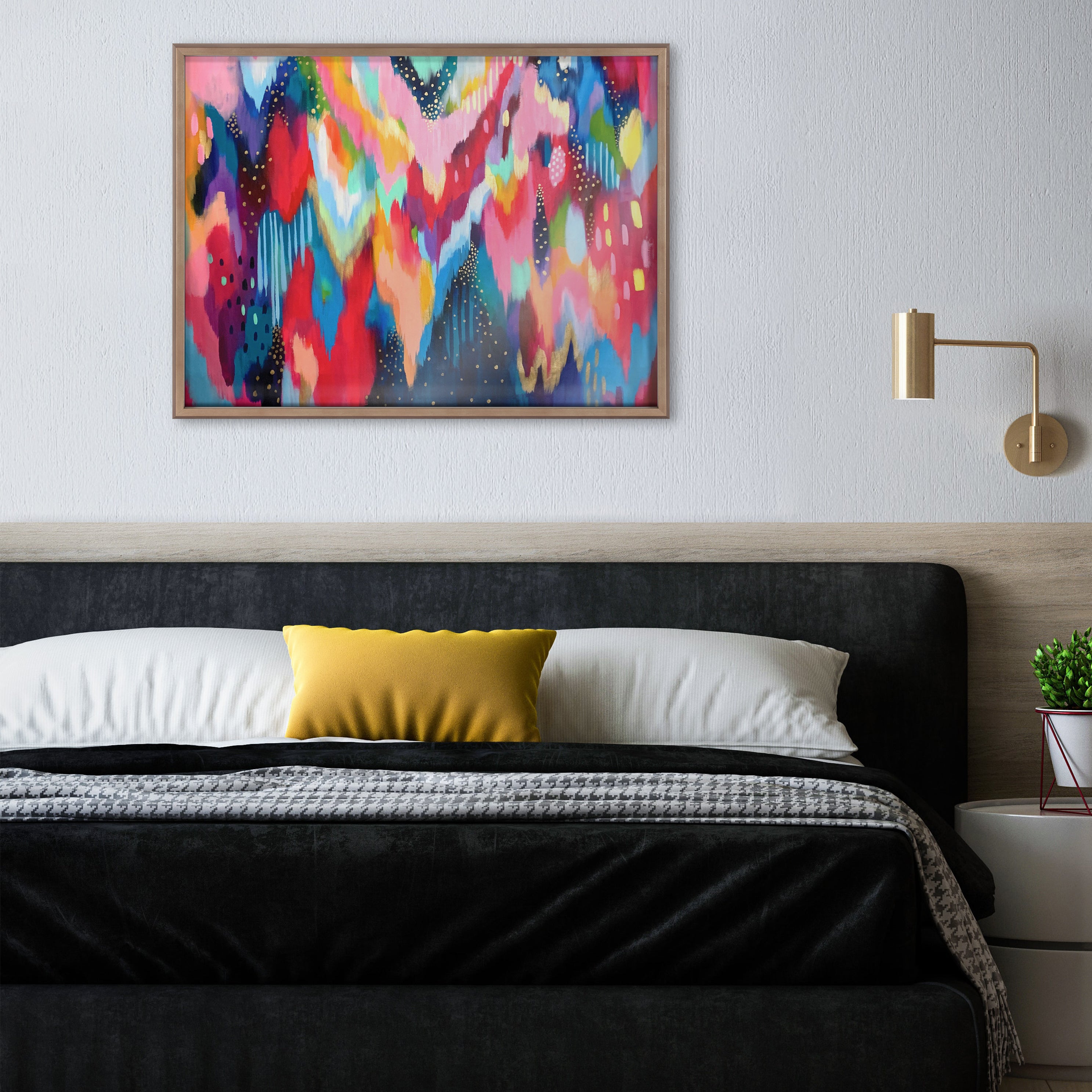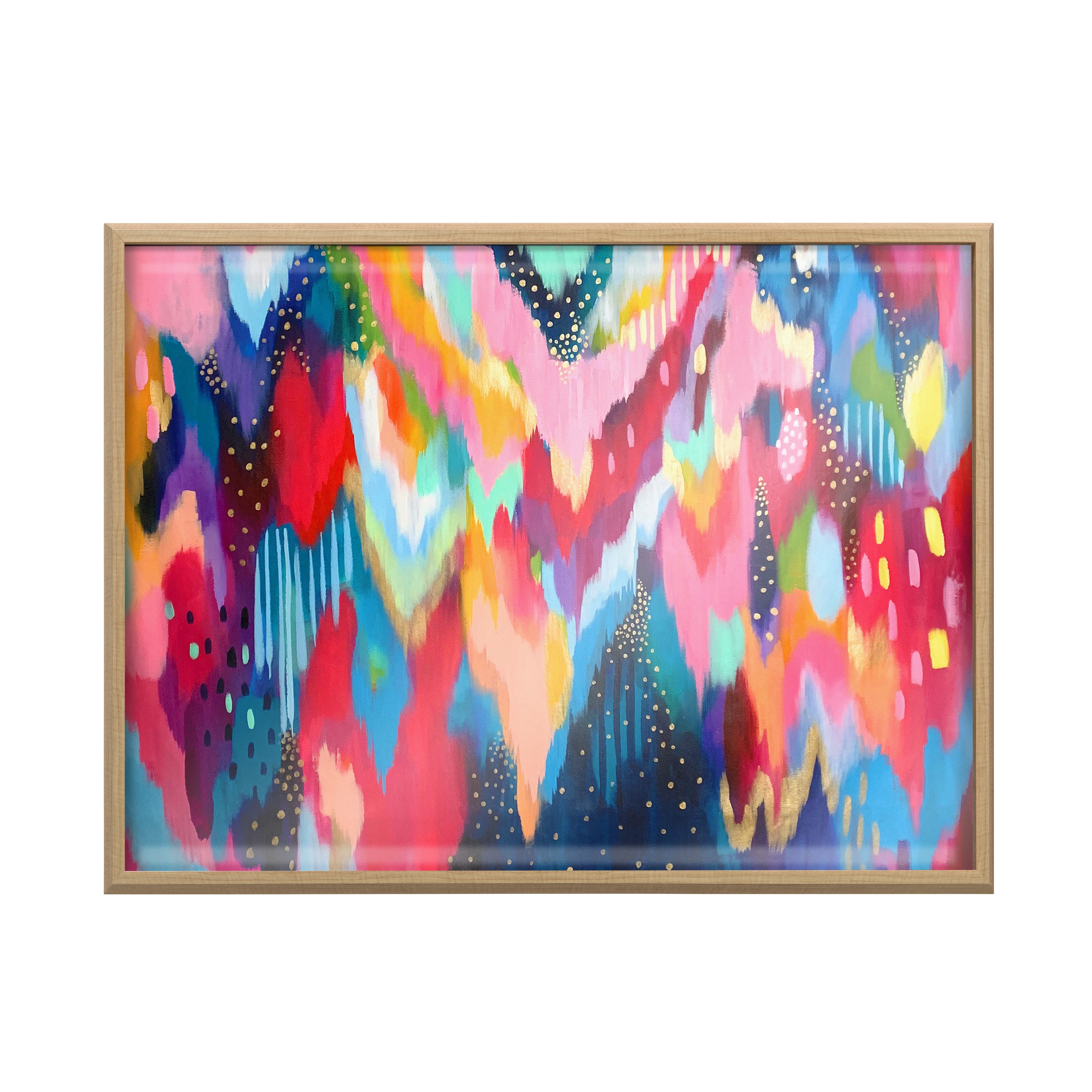 Fill your space with unique vibrancy and abstract brushstrokes from this lovely wall art print. Printed and framed in the USA in Waunakee, Wisconsin, this framed art will be a pleasure to look at every day in your living room, bedroom, office, or any room in the home. This art print also makes an excellent gift for birthdays, holidays, or house-warming parties. Printed on a premium solid surface and framed with a lightweight polystyrene frame, this wall art is easy to display on the wall.