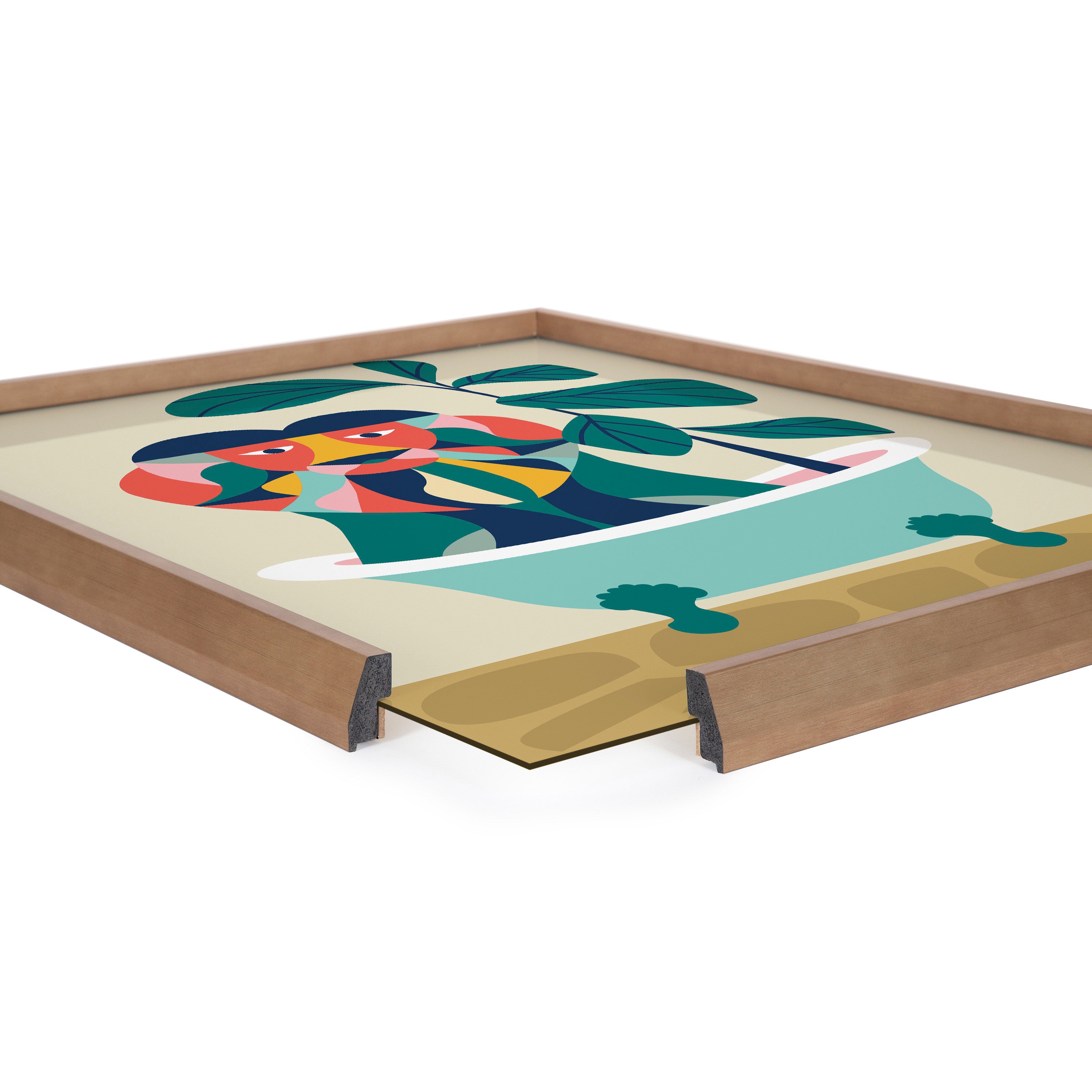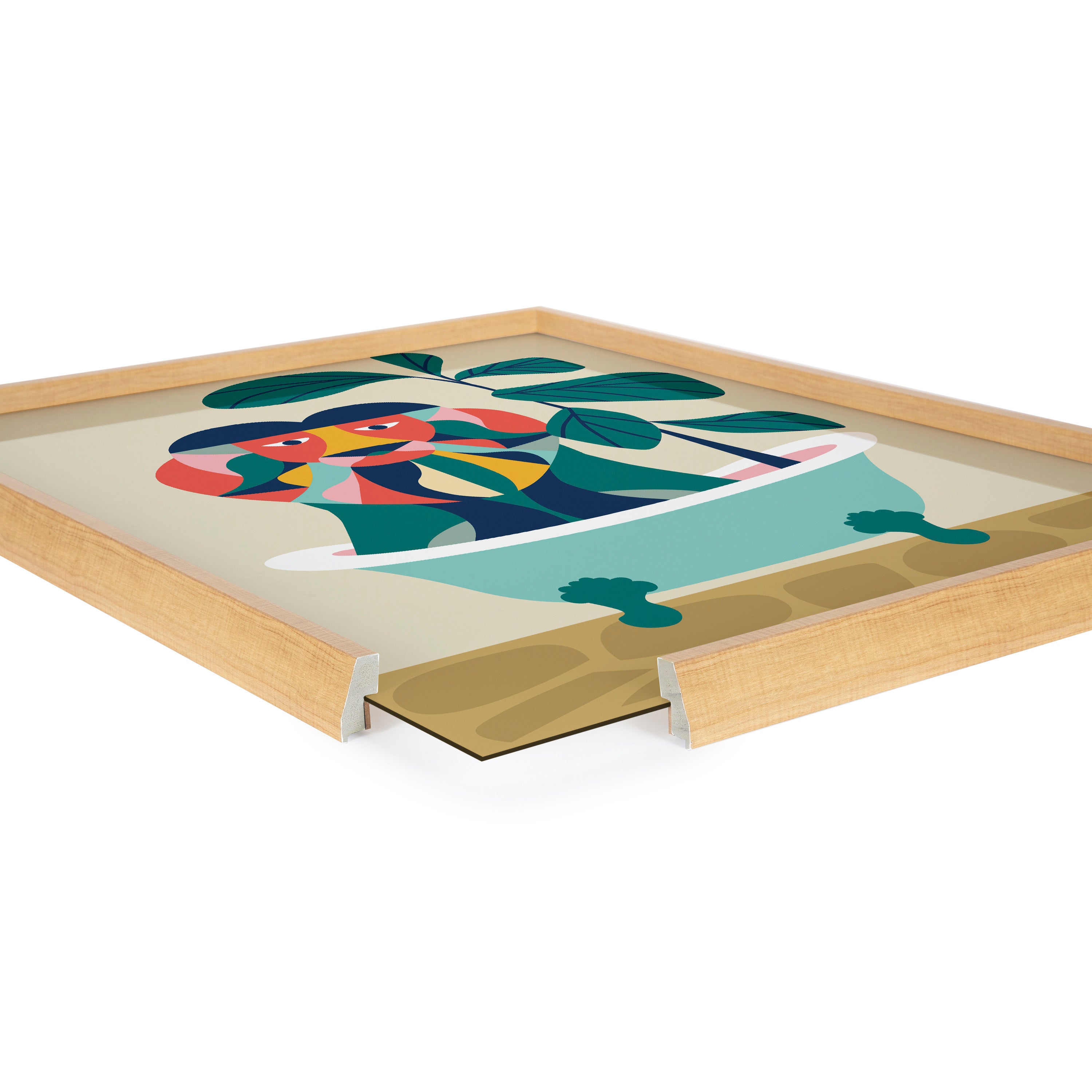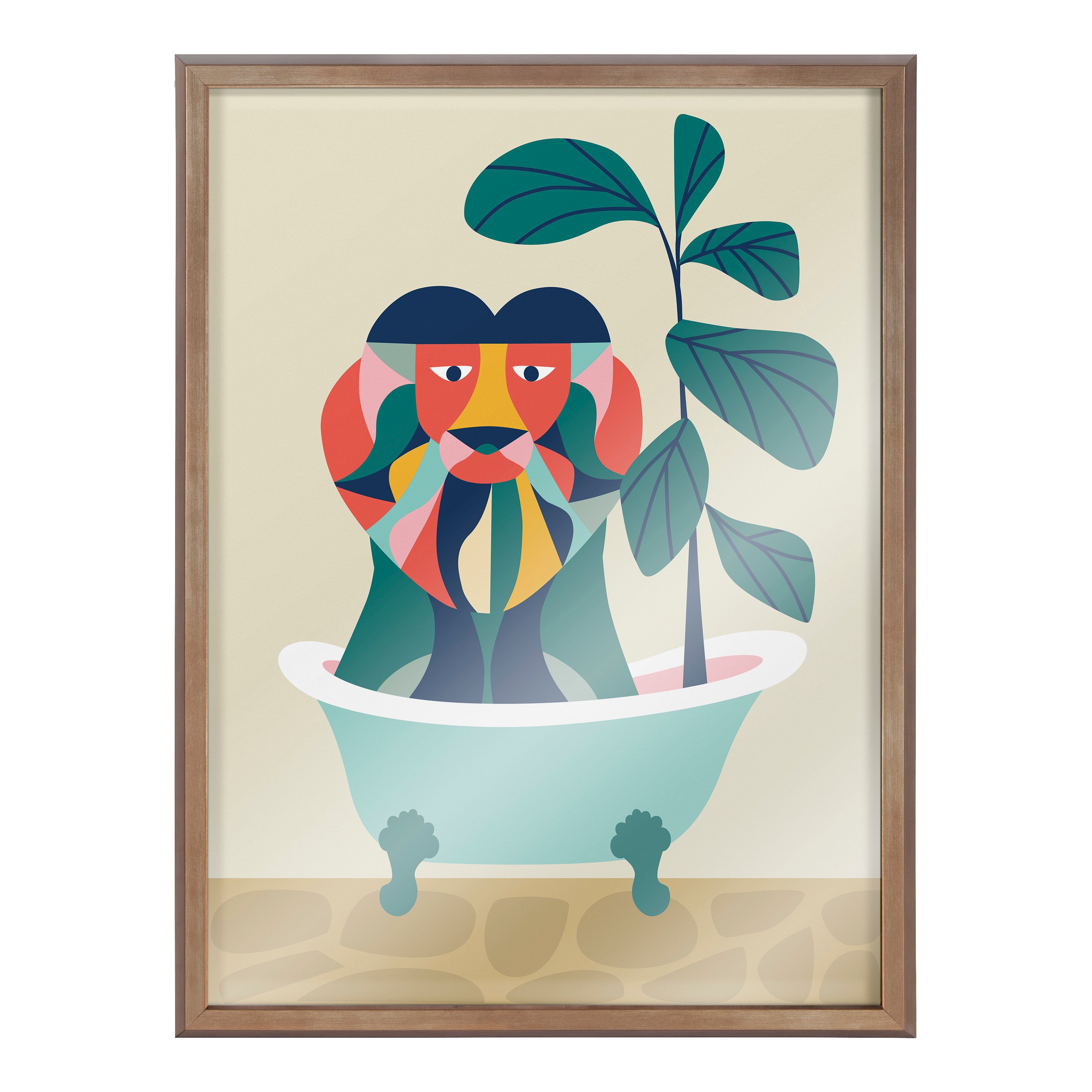 Blake Mid Century Modern Lion in Bathtub Framed Printed Glass by Rachel Lee of My Dream Wall