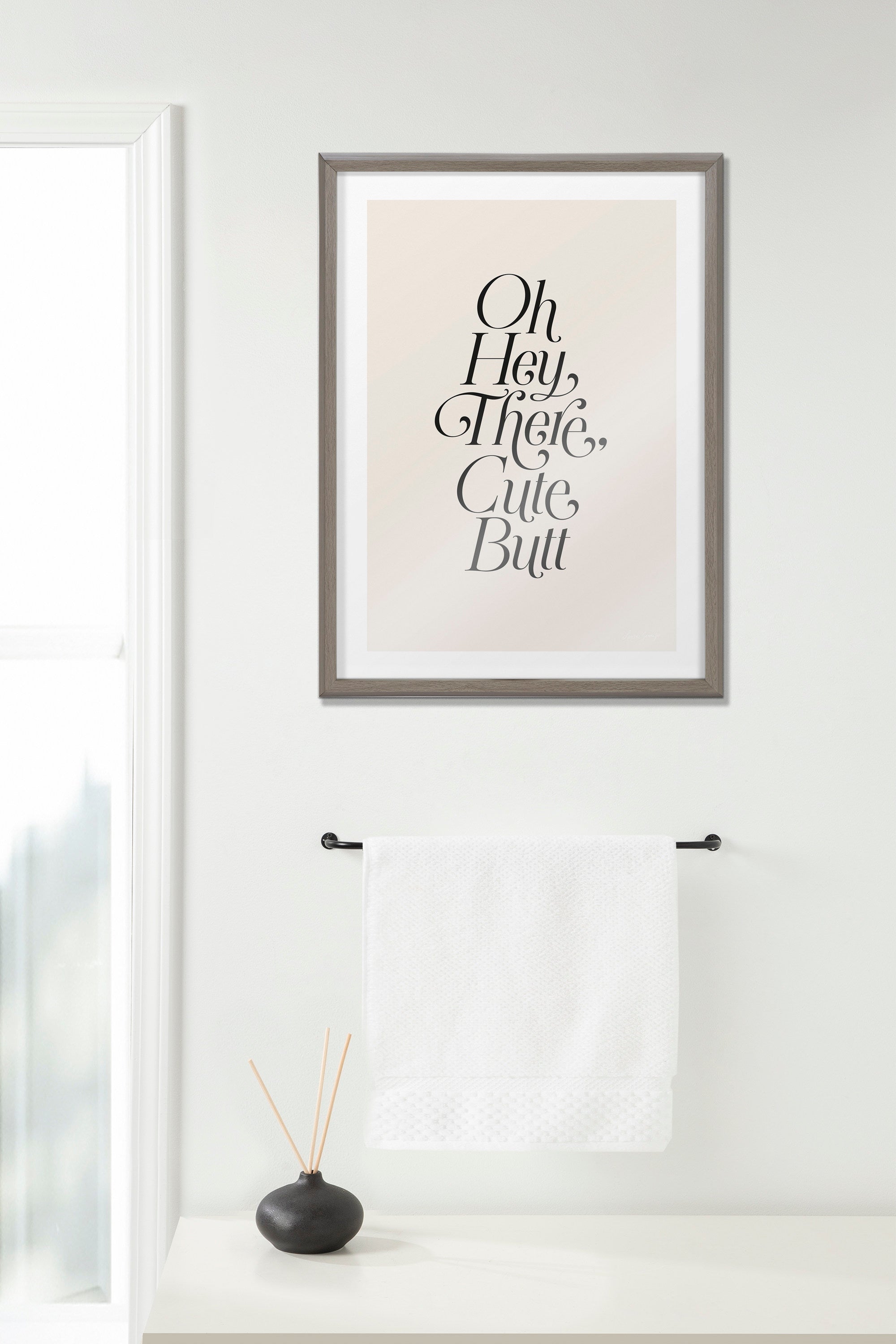 Home/Avery Collection/Blake Nice Butt Framed Printed Glass by Leonora Jennifer Benza of Yellow Heart Art