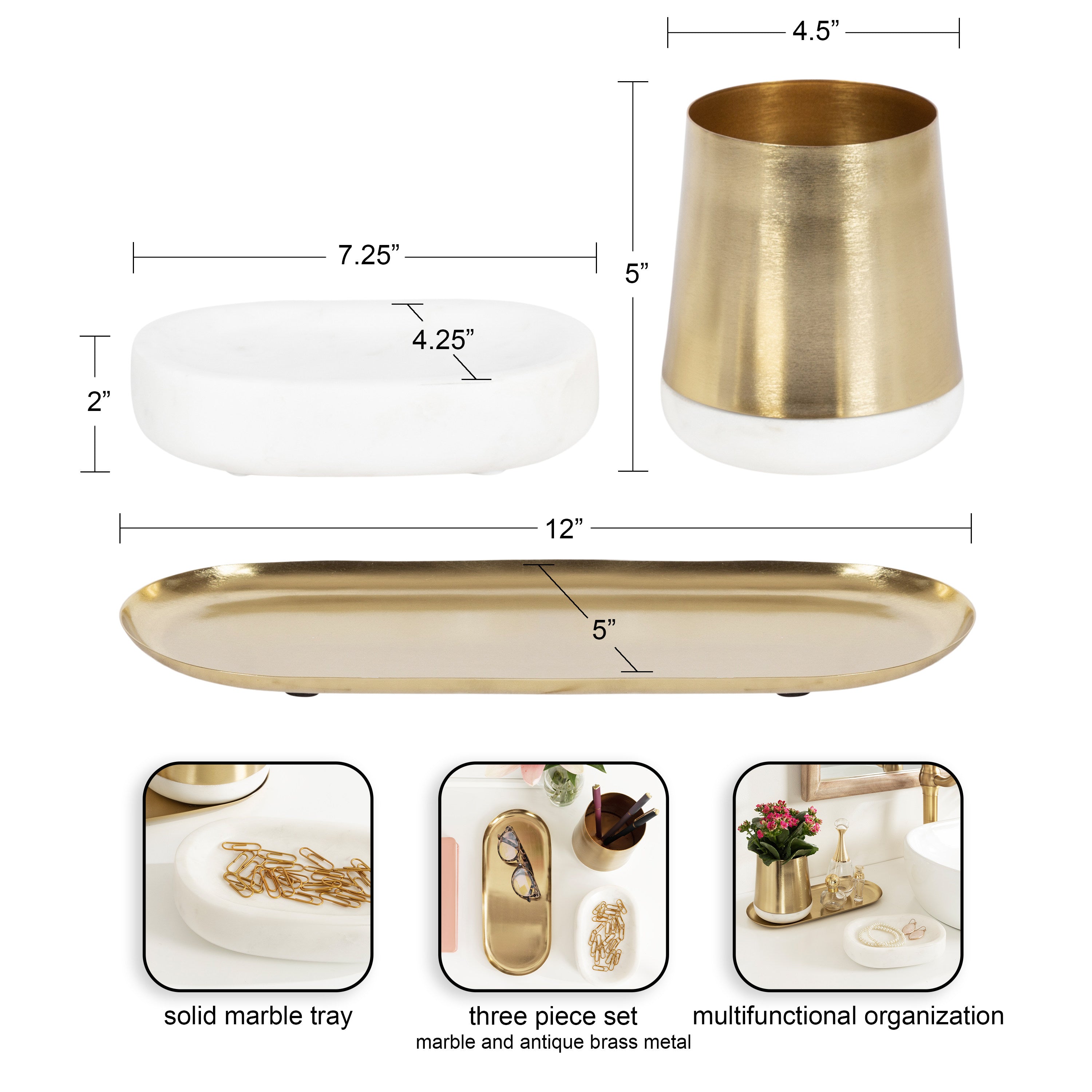 Revolutionize your organizational approach with the Kate and Laurel Koni three-piece organization set. Meticulously crafted to blend functionality with contemporary aesthetics, this set is a must-have addition to any entryway or office space. Designed with elegance in mind, each piece showcases a harmonious fusion of finishes and materials, exuding sophistication and timeless style. When using it as an entryway organization set, you can showcase it as a versatile catch-all tray to hold anything from keys to change. From holding stationery essentials to corralling bathroom decorations, these supplementary pieces offer practicality without compromising on style.