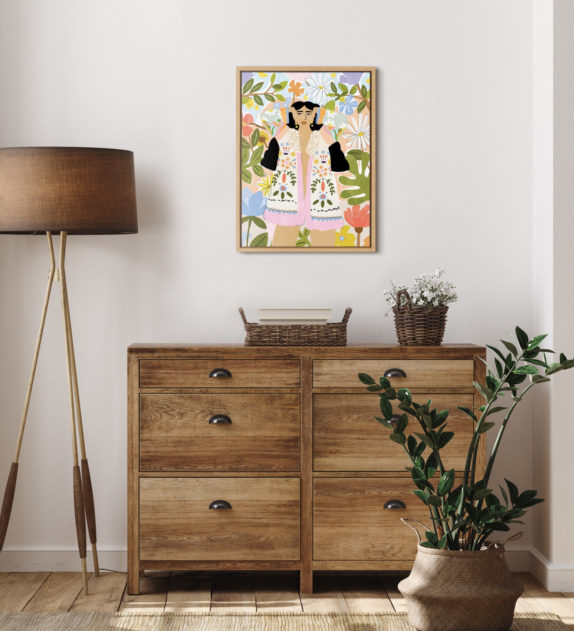 This boho-chic art print is perfect for showcasing a casual and feminine aesthetic in your wall decor. Printed and framed in the USA in Waunakee, Wisconsin, this framed floating canvas art will be a pleasure to look at every day in your living room, bedroom, office, or any room in the home. This art print also makes an excellent gift for birthdays, holidays, or house-warming parties. Printed on gallery-wrapped canvas and framed with a lightweight polystyrene frame, this wall art has two hangers already attached to the MDF back for easy wall display.