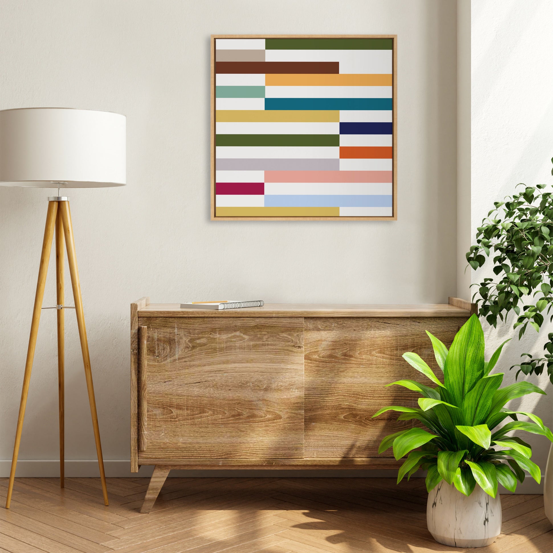 This clean minimal abstract provides a statement without being too over powering. Printed and framed in the USA in Waunakee, Wisconsin, this framed floating canvas art will be a pleasure to look at every day in your living room, bedroom, office, or any room in the home. This art print also makes an excellent gift for birthdays, holidays, or house-warming parties. Printed on gallery-wrapped canvas and framed with a lightweight polystyrene frame, this wall art is easy to display on the wall.