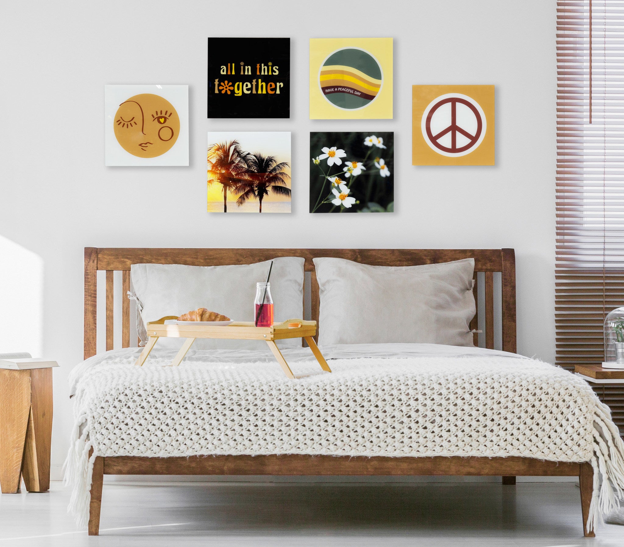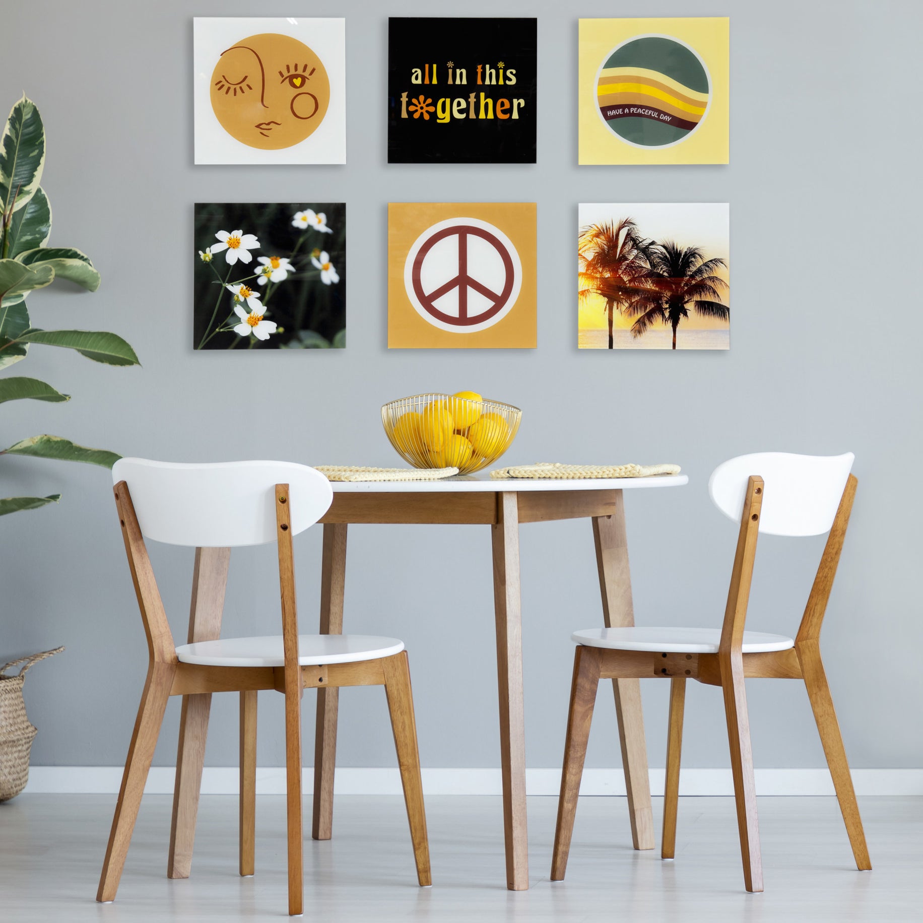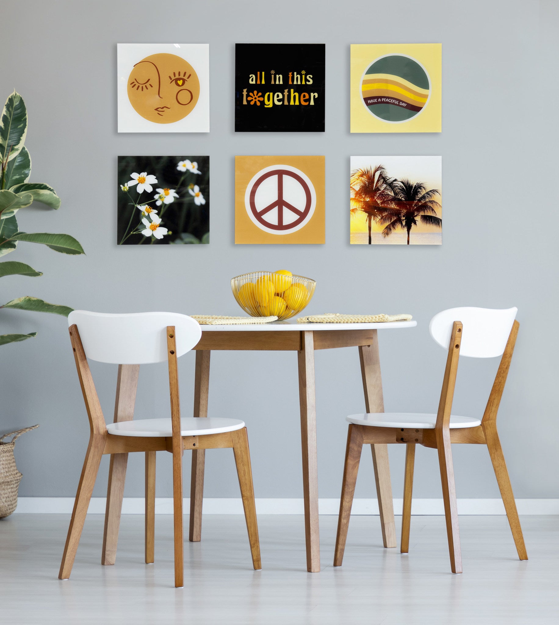 - Prints "Love Yourself" "All in this Together" "Have a Peaceful Day" "You Are a Wildflower" "Retro Peace Sign" "Golden Hour Palm Trees"©2022 The Creative Bunch Studio. Check out other work by these artists to create your very own gallery wall