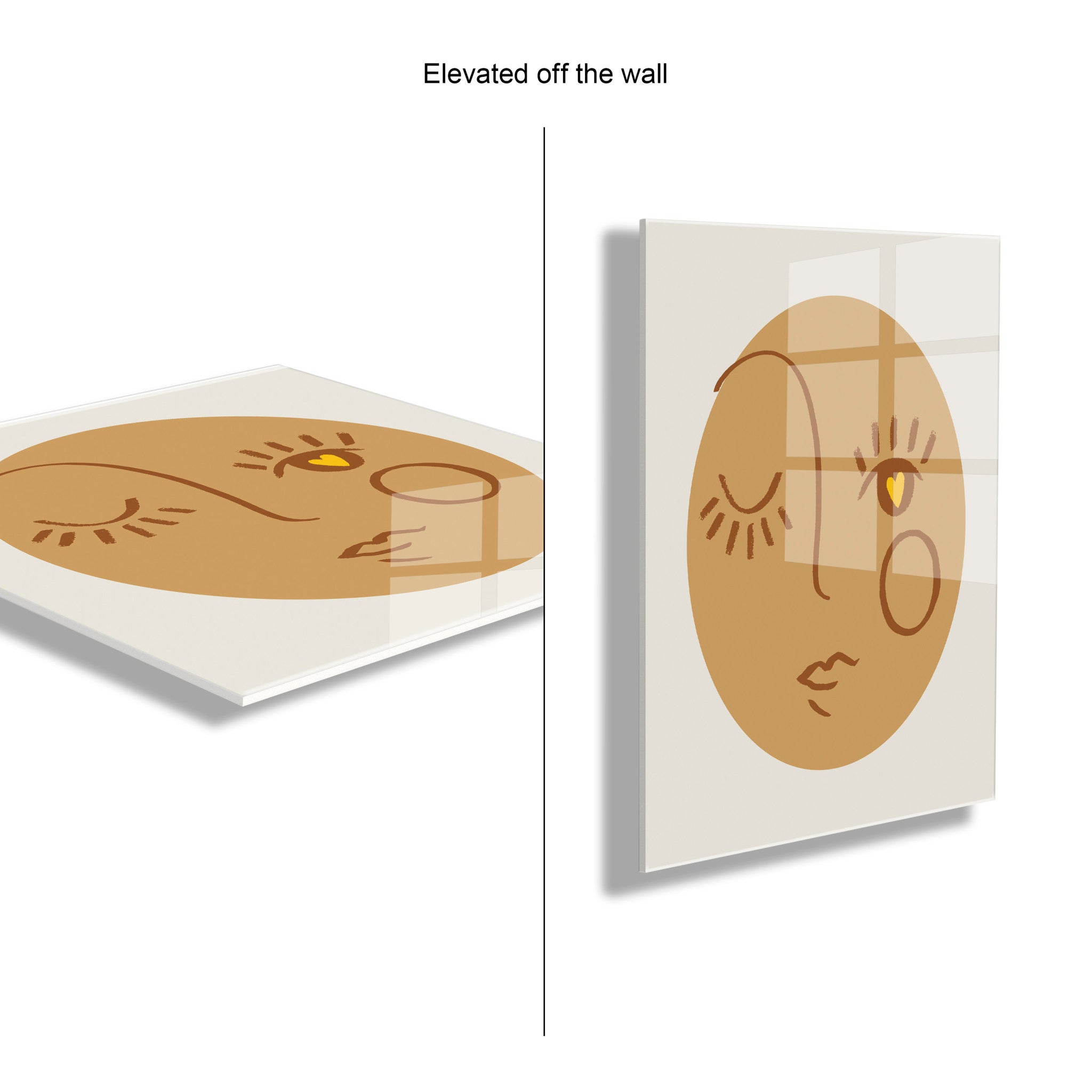 - Elevated off the wall to give a dimensional look with depth