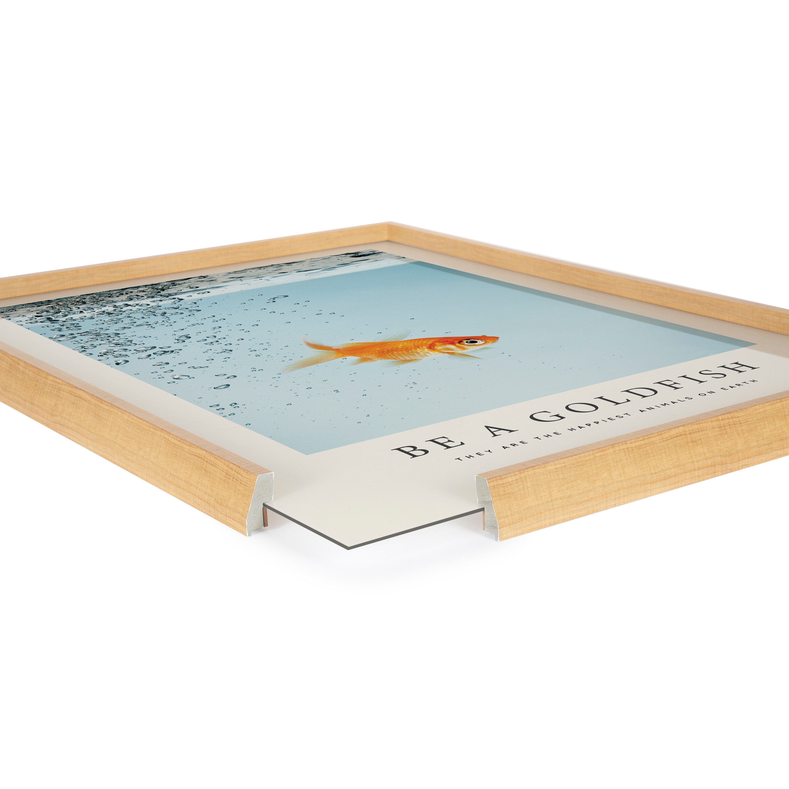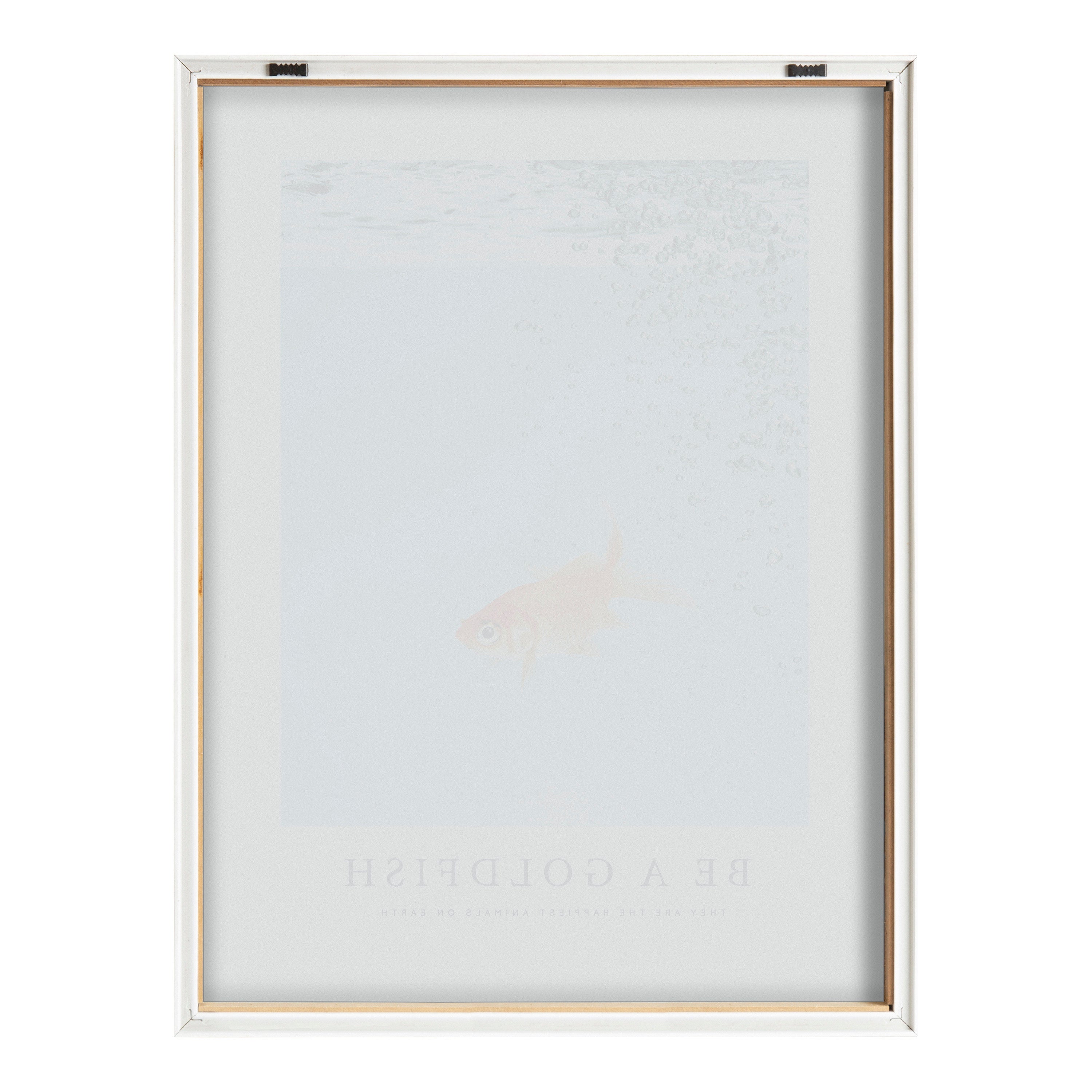 This inspirational goldfish wall art is perfect to display in your bathroom. Printed and framed in the USA in Waunakee, Wisconsin, this framed glass art will be a pleasure to look at every day in your living room, bedroom, office, or any room in the home. This art print also makes an excellent gift for birthdays, holidays, or house-warming parties. Printed on glass and framed with a lightweight polystyrene frame, this wall art is easy to display on the wall.