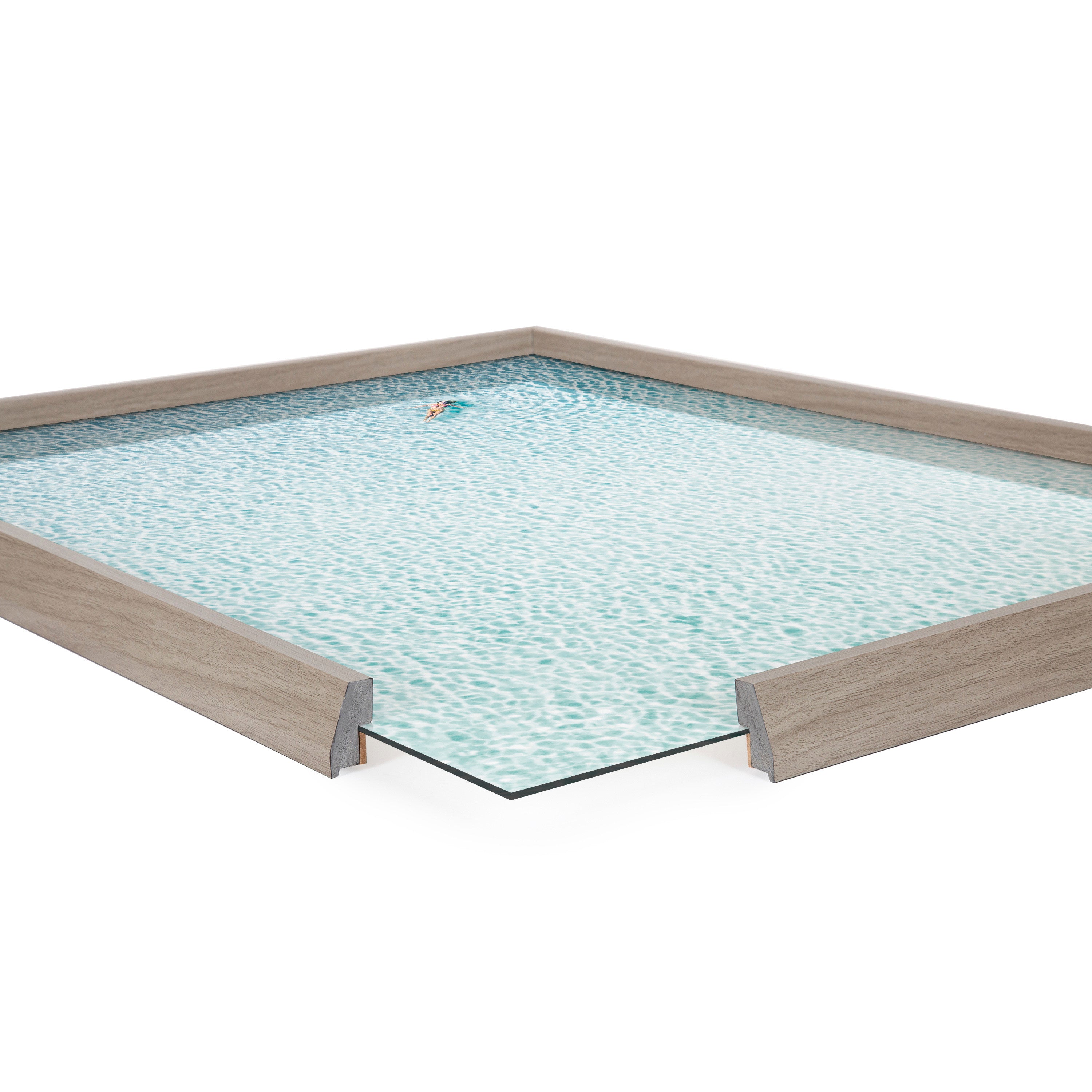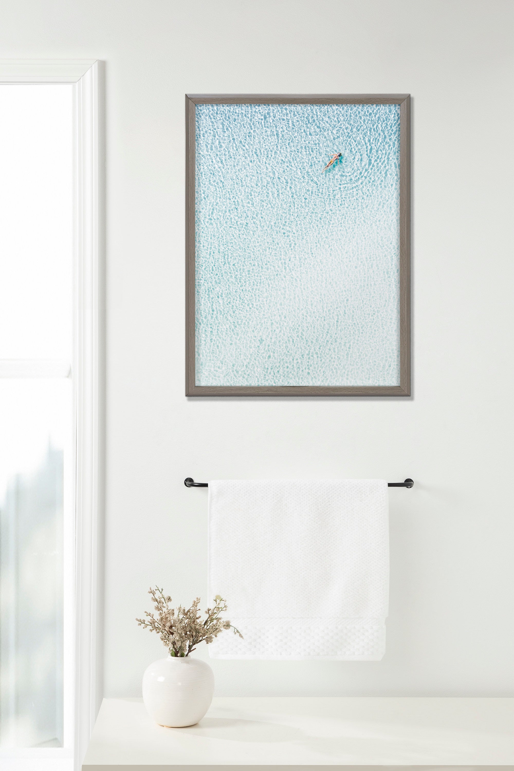 Create a calming spot of meditation and reflection with this art print that uses cool blue colors to represent tranquility. Printed and framed in the USA in Waunakee, Wisconsin, this framed glass art will be a pleasure to look at every day in your living room, bedroom, office, or any room in the home. This art print also makes an excellent gift for birthdays, holidays, or house-warming parties. Printed on glass and framed with a lightweight polystyrene frame, this wall art has two hangers already attached to the back for easy wall display.