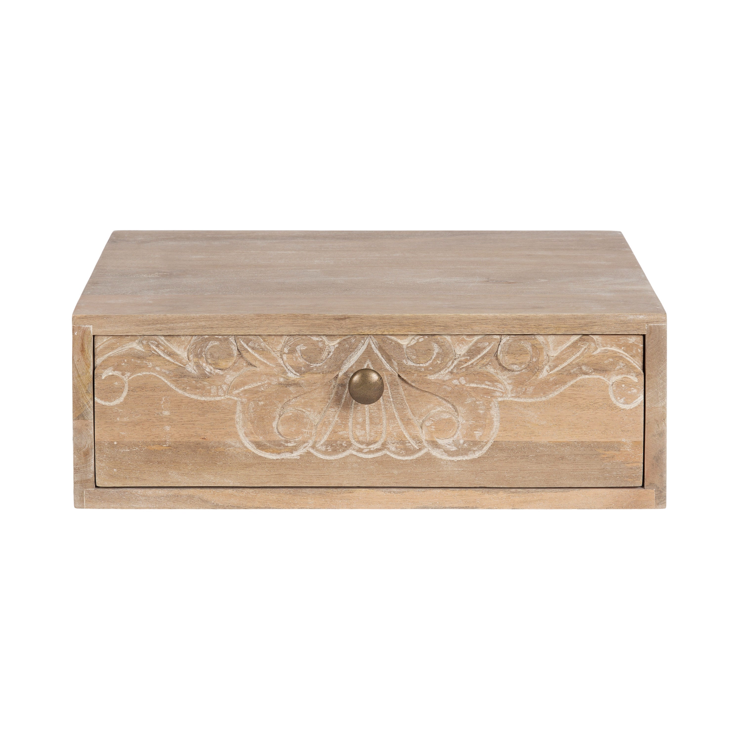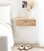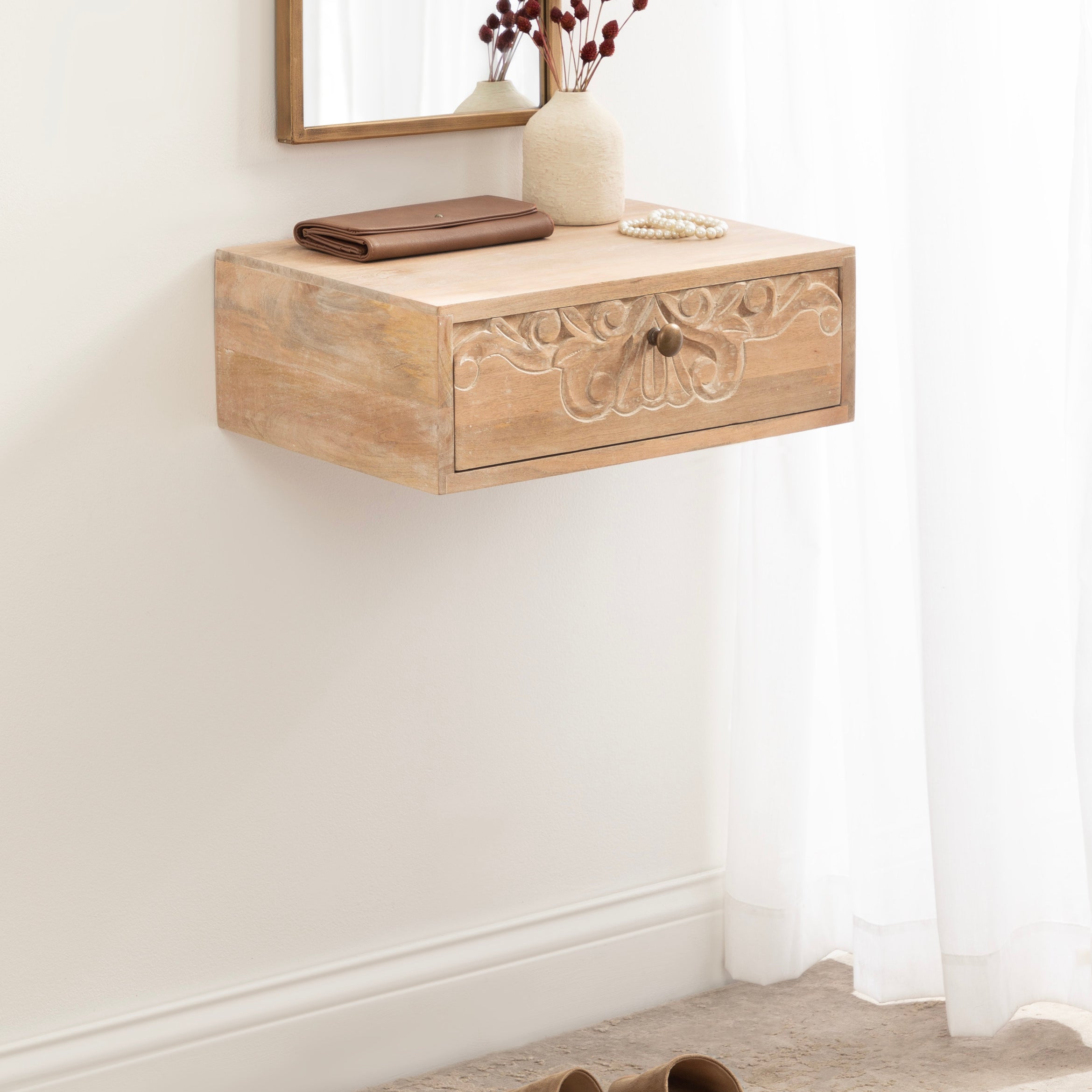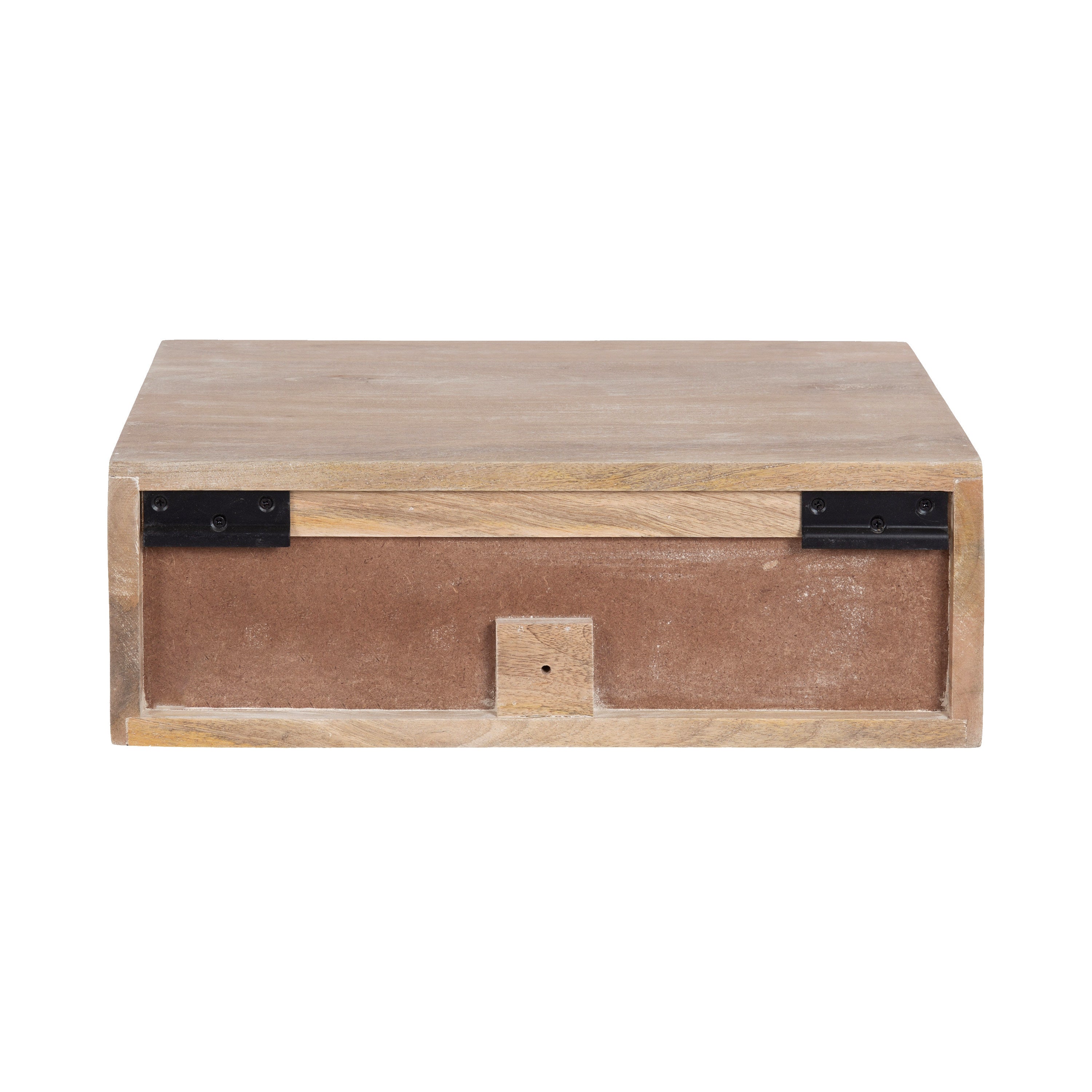 Introducing the Mirza floating side table - the perfect addition to your bedroom or living space! This modern floating wall shelf is designed to add functionality and style to any room with its sleek and transitional design. Featuring a convenient drawer, this floating side table provides ample storage space for your essentials, such as books, remotes, and other small items. The floating design also helps to create an illusion of more space, making it a great choice for small rooms or apartments. Made from solid mango wood, this floating side table is built to last.