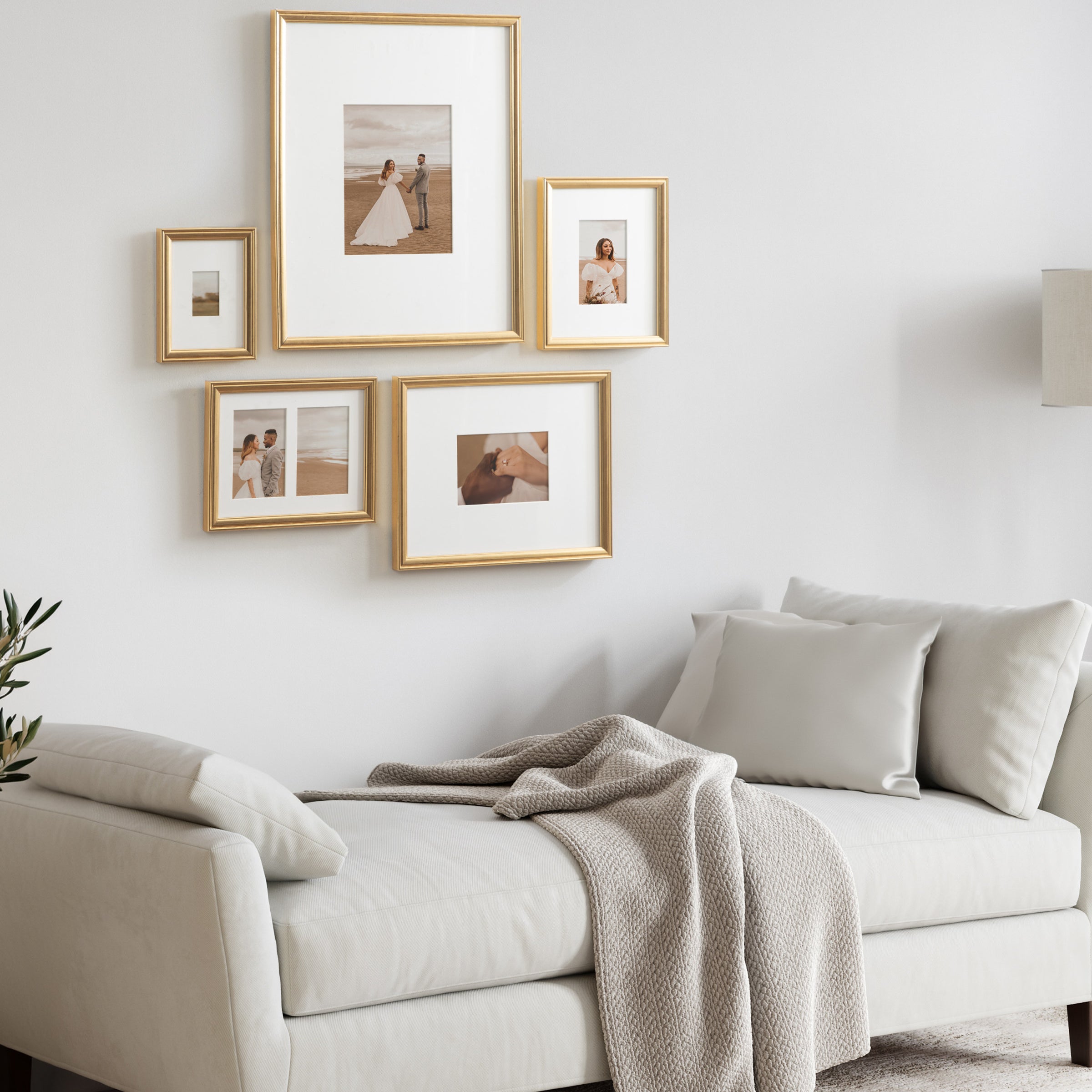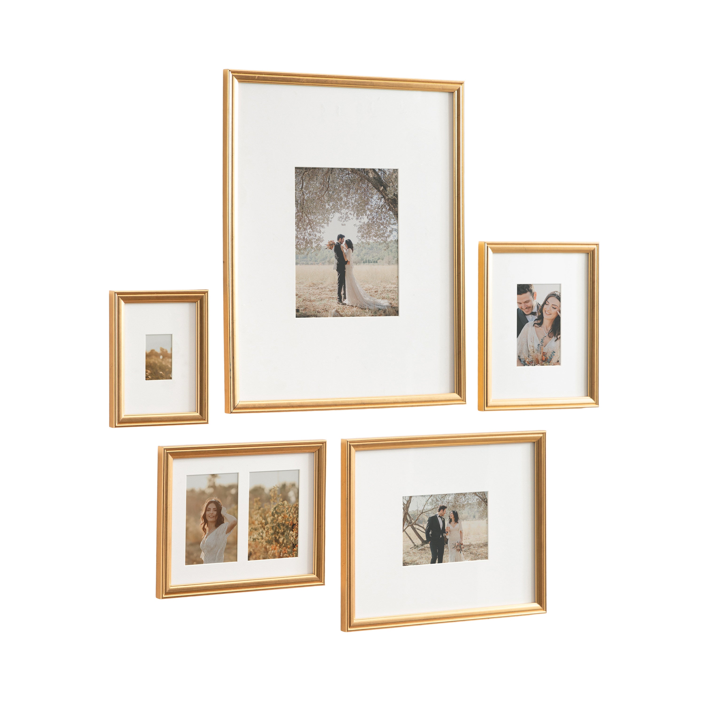 Family photographs should be displayed where they can be a constant reminder that time spent with family and friends should be enjoyed by everyone. Sharing those photos is a joy that brings you not only satisfaction, but also entertains your guests. Done right, you have a timeless collection of your best times captured in one customized view on your favorite wall. This set of 5 picture frames crafts a cohesive gallery wall option with a variety of frame sizes and photography display sizes. The picture frame set comes with a hanging template for where to place each frame for a hassle-free gallery wall display.