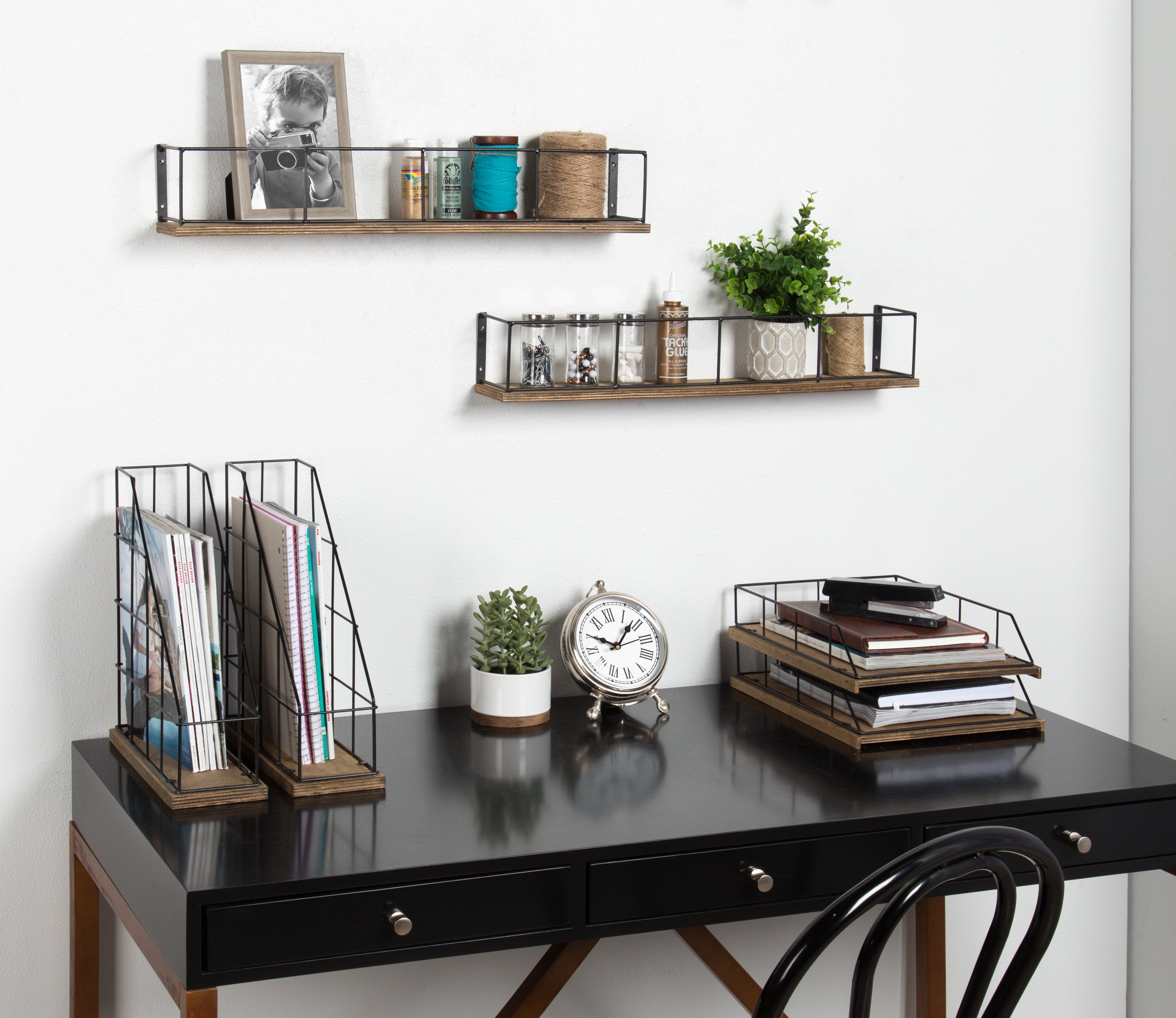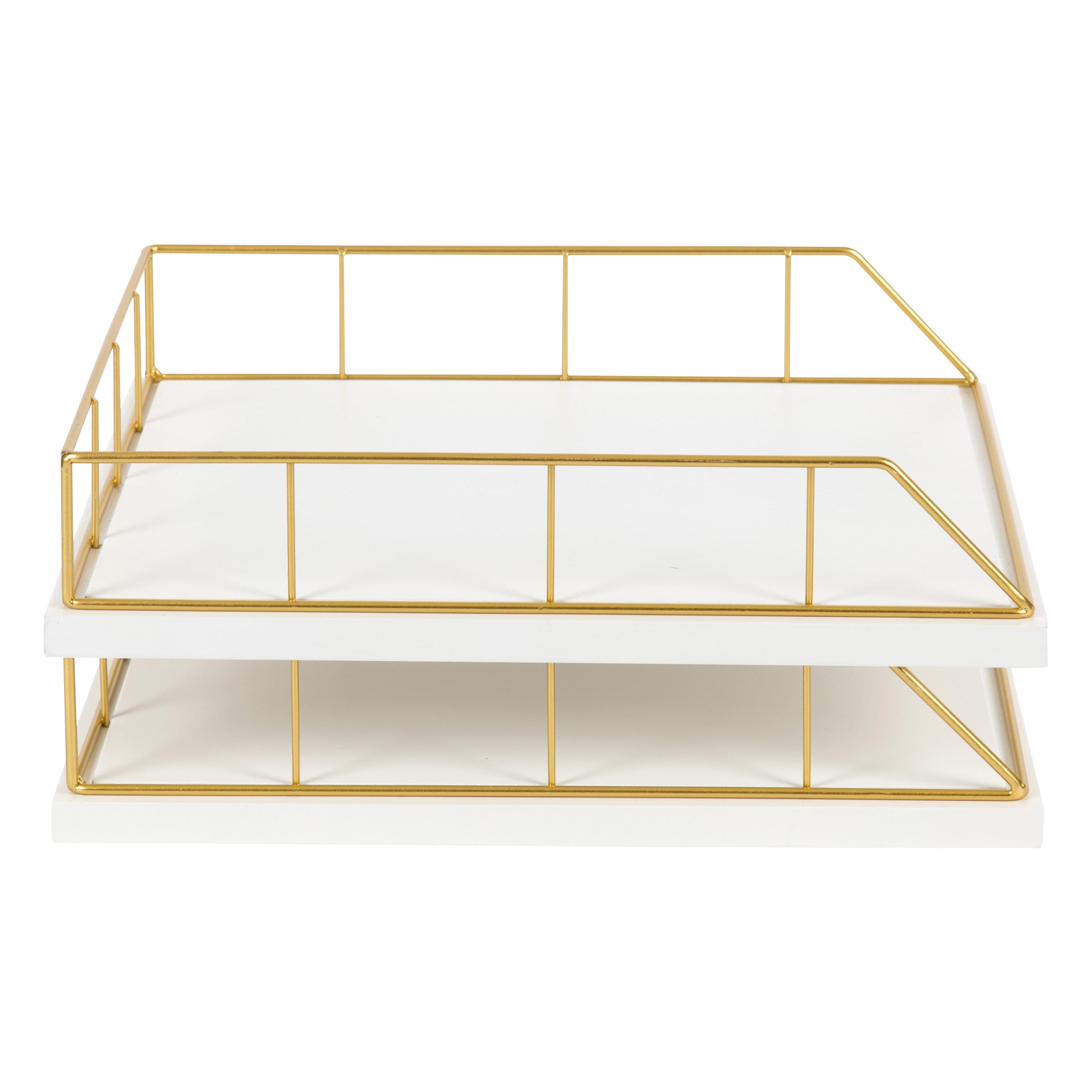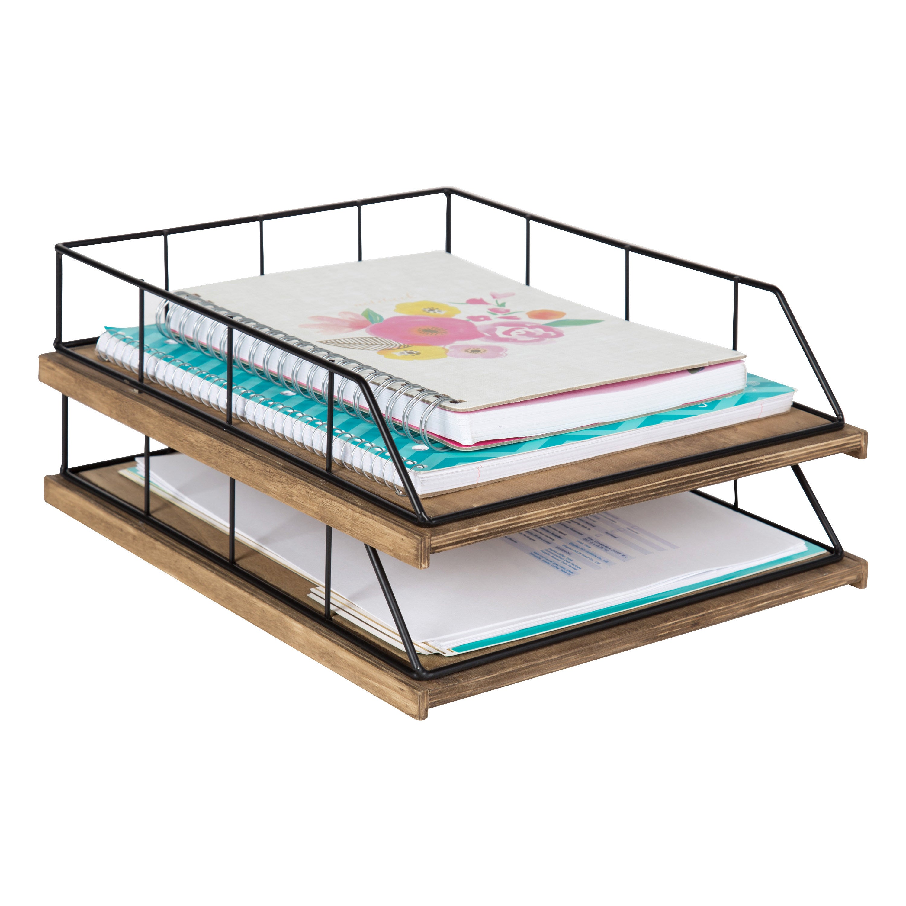 These desktop letter trays can be used stacked one on top of the other or side by side, either way they'll organize your paper and file folders while getting the clutter off of your desk. The wood and metal design is a unique, stylish look that'll give your desktop high fashion with maximum function.