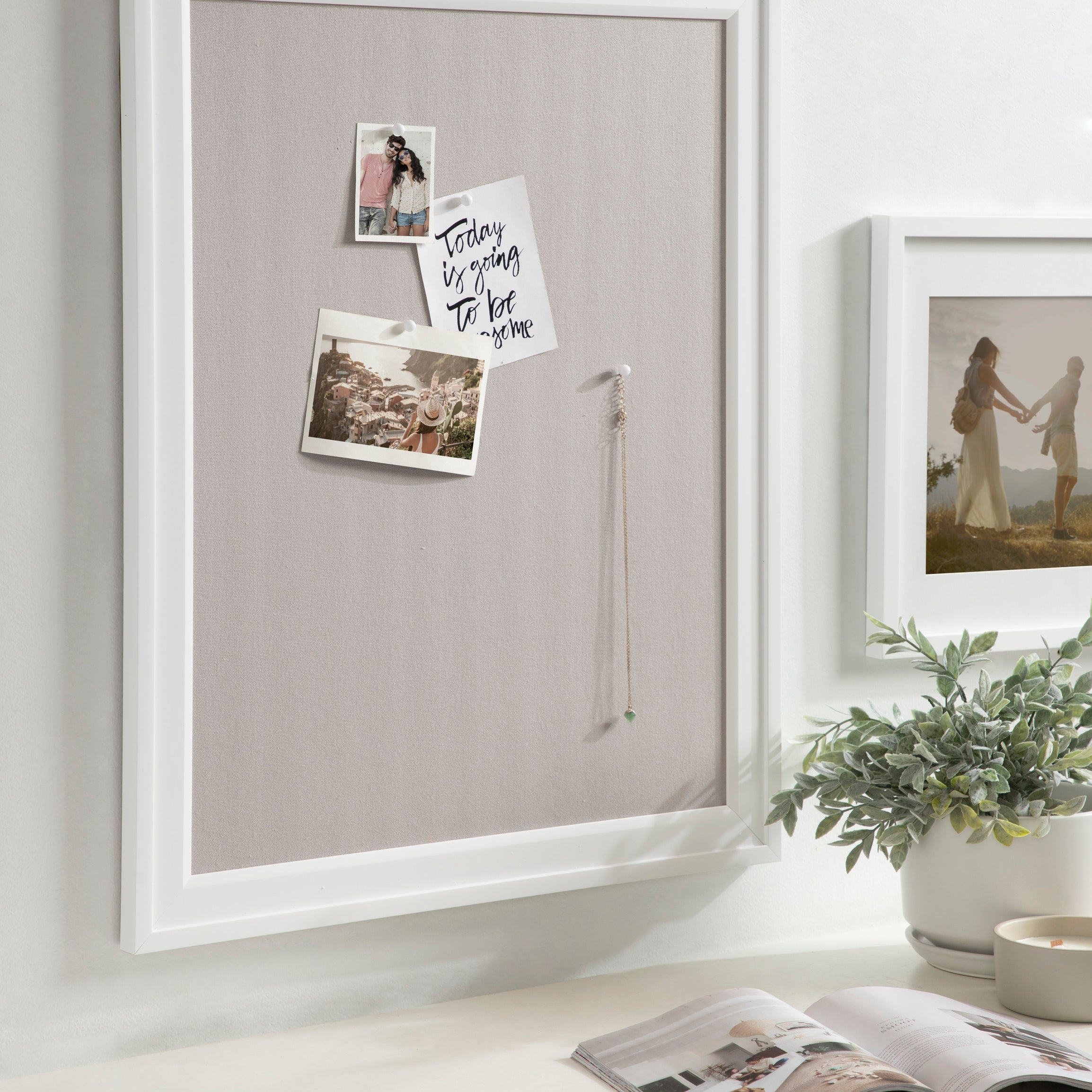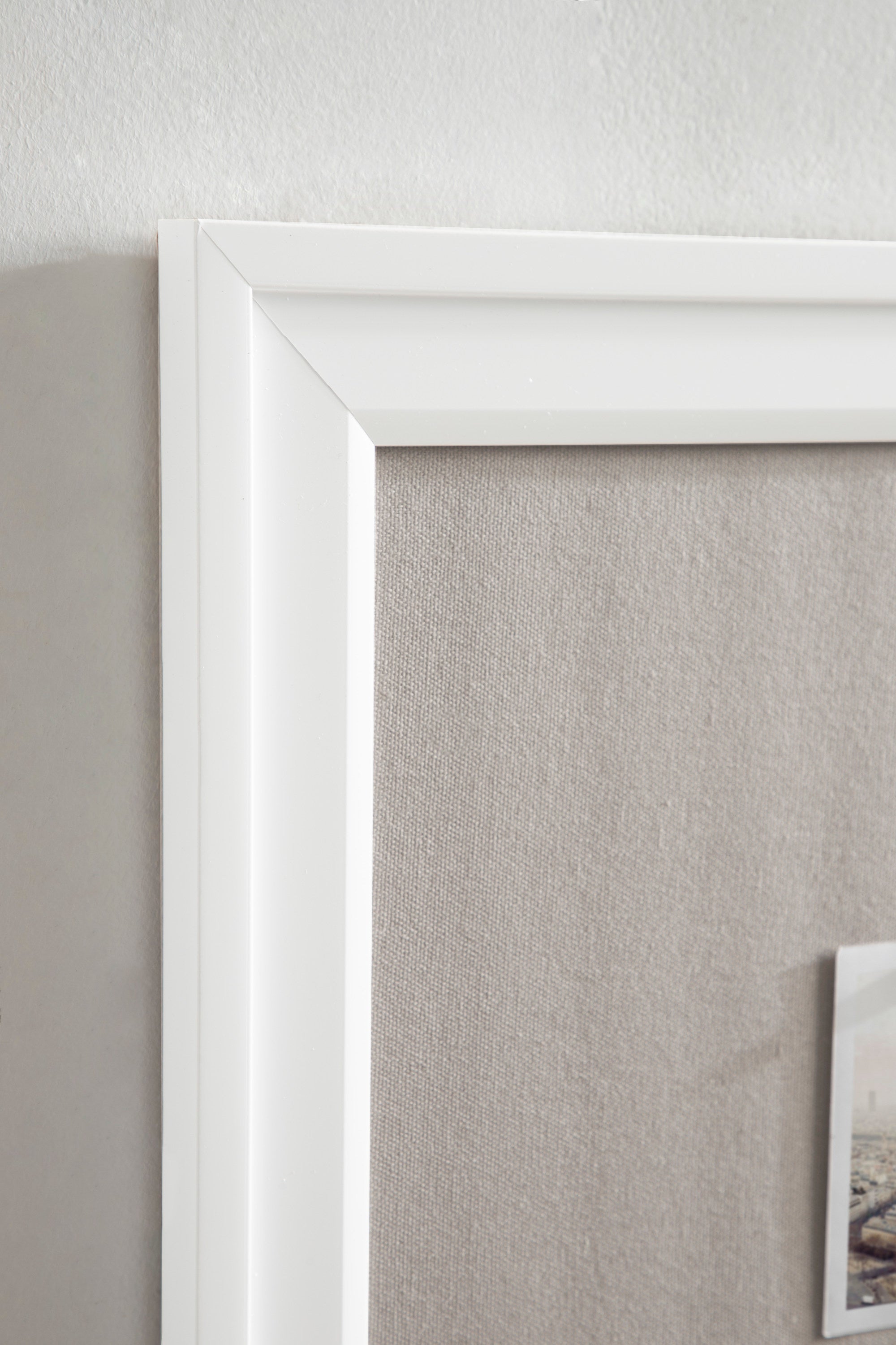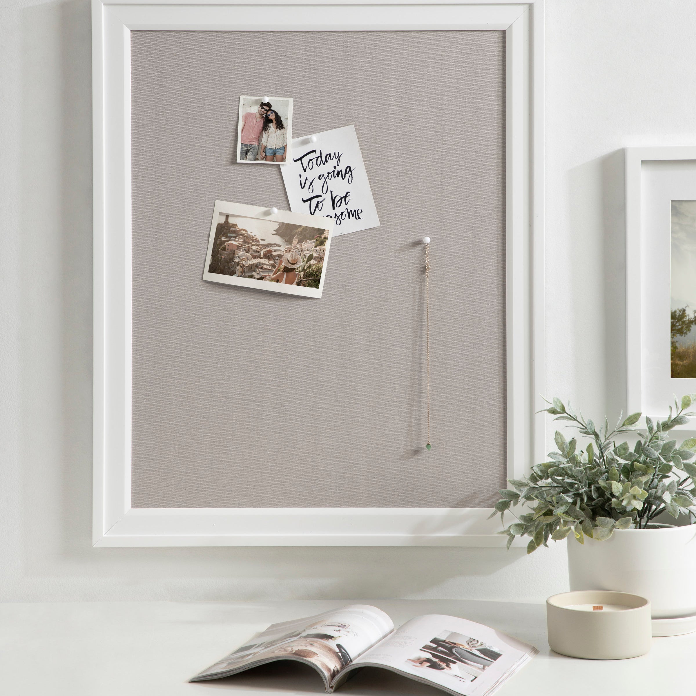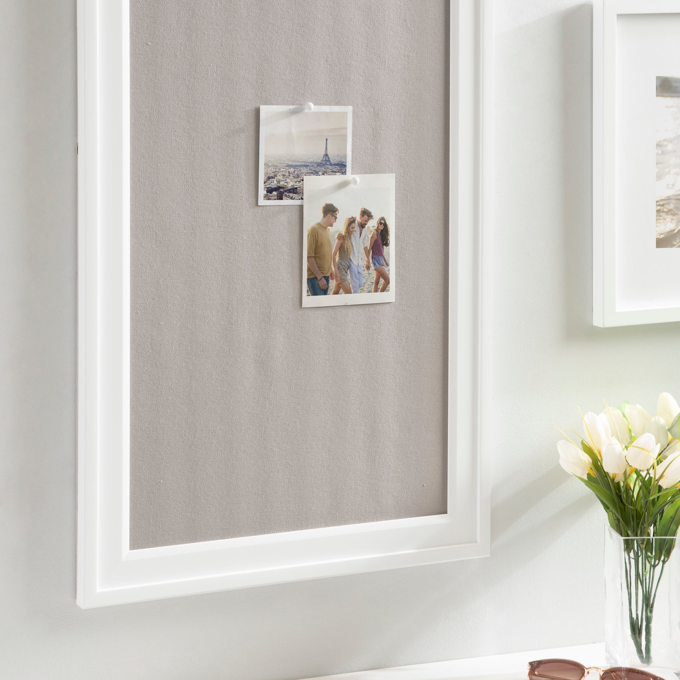 A transitional style frame surrounds the sturdy linen fabric pinboard to create home or office organization that's as decorative as it is functional. It's the wall-mounted memo board you didn't know you needed! With the casual look and the soft linen fabric padded pinboard area, it'll look fantastic in your entry way, kitchen, or home office.