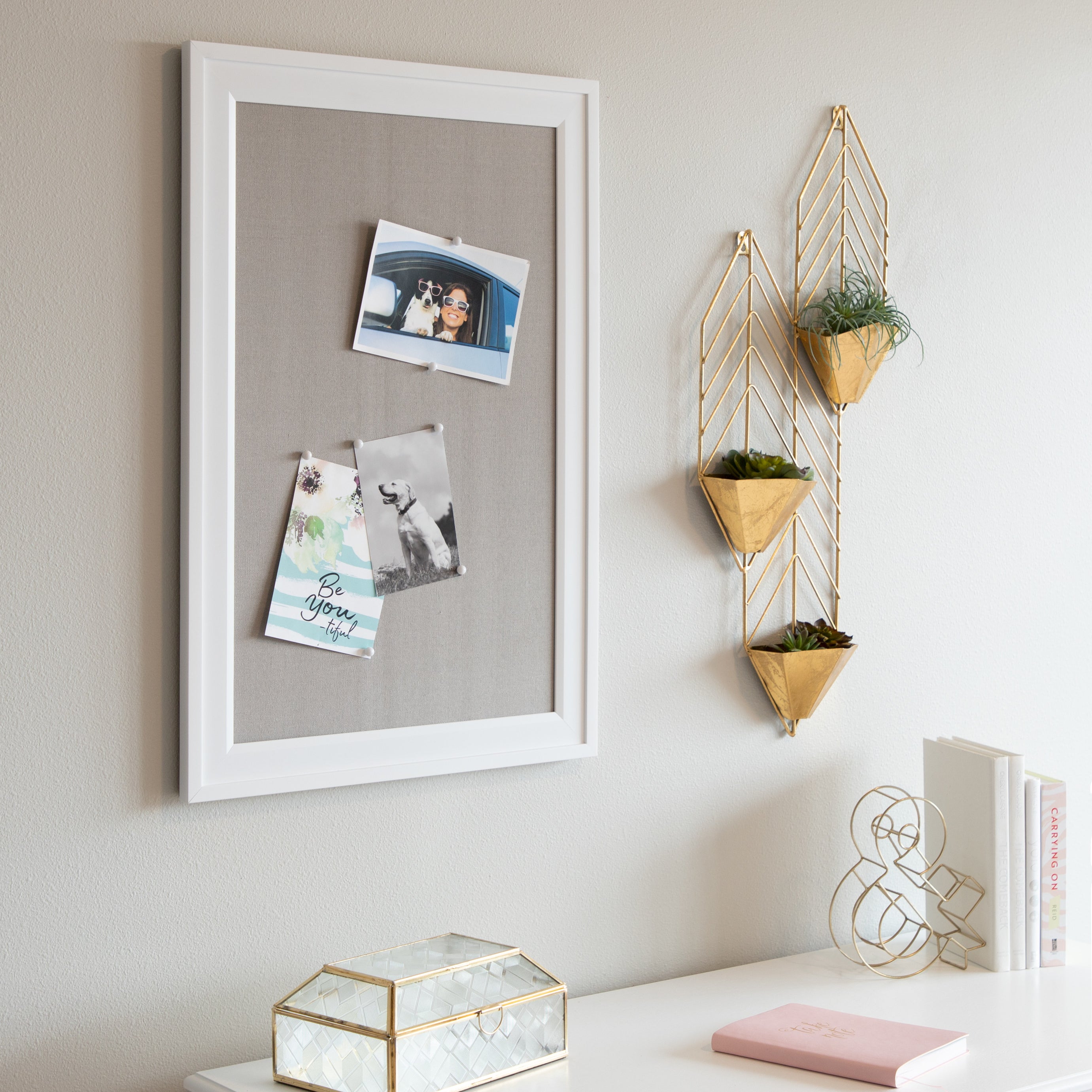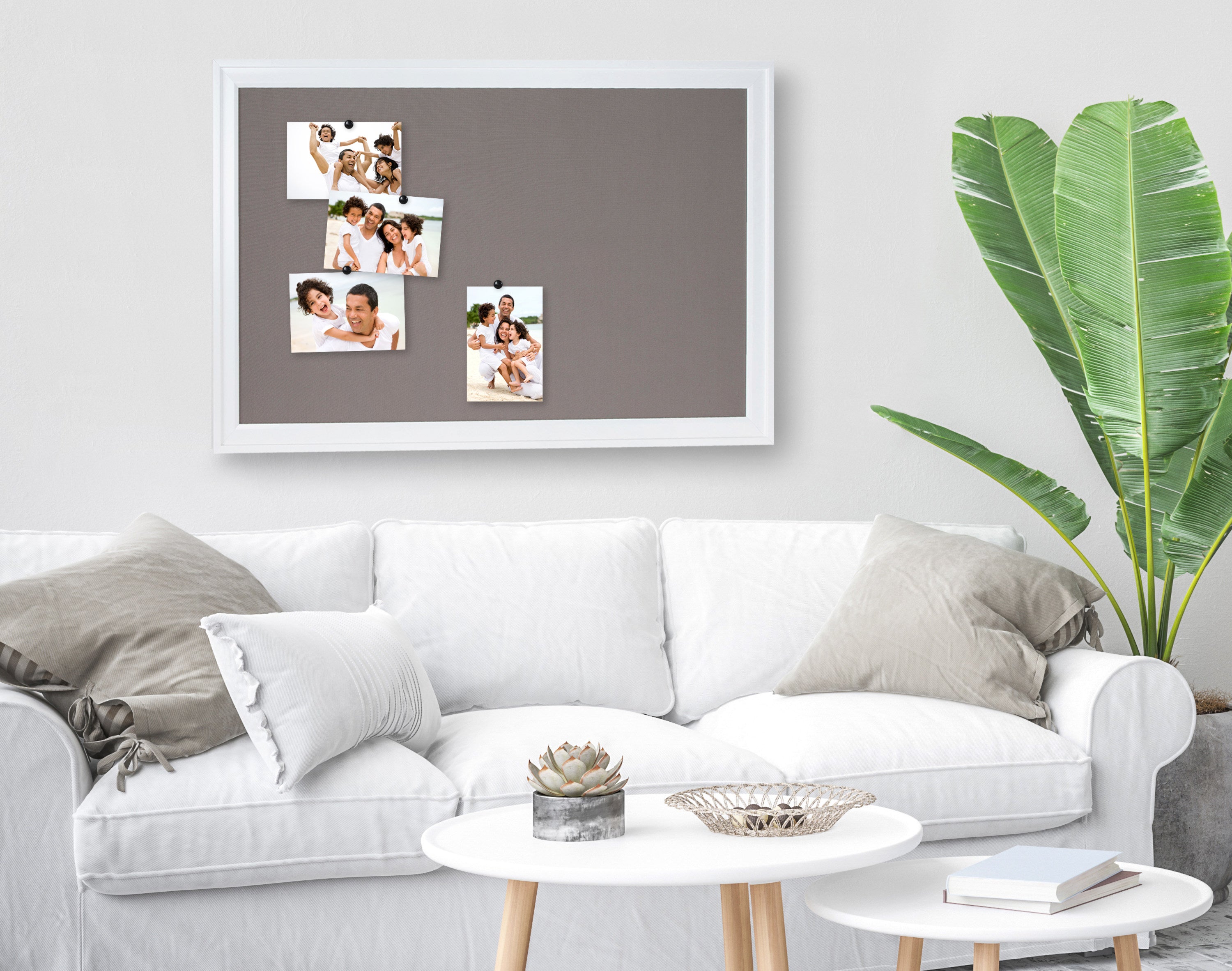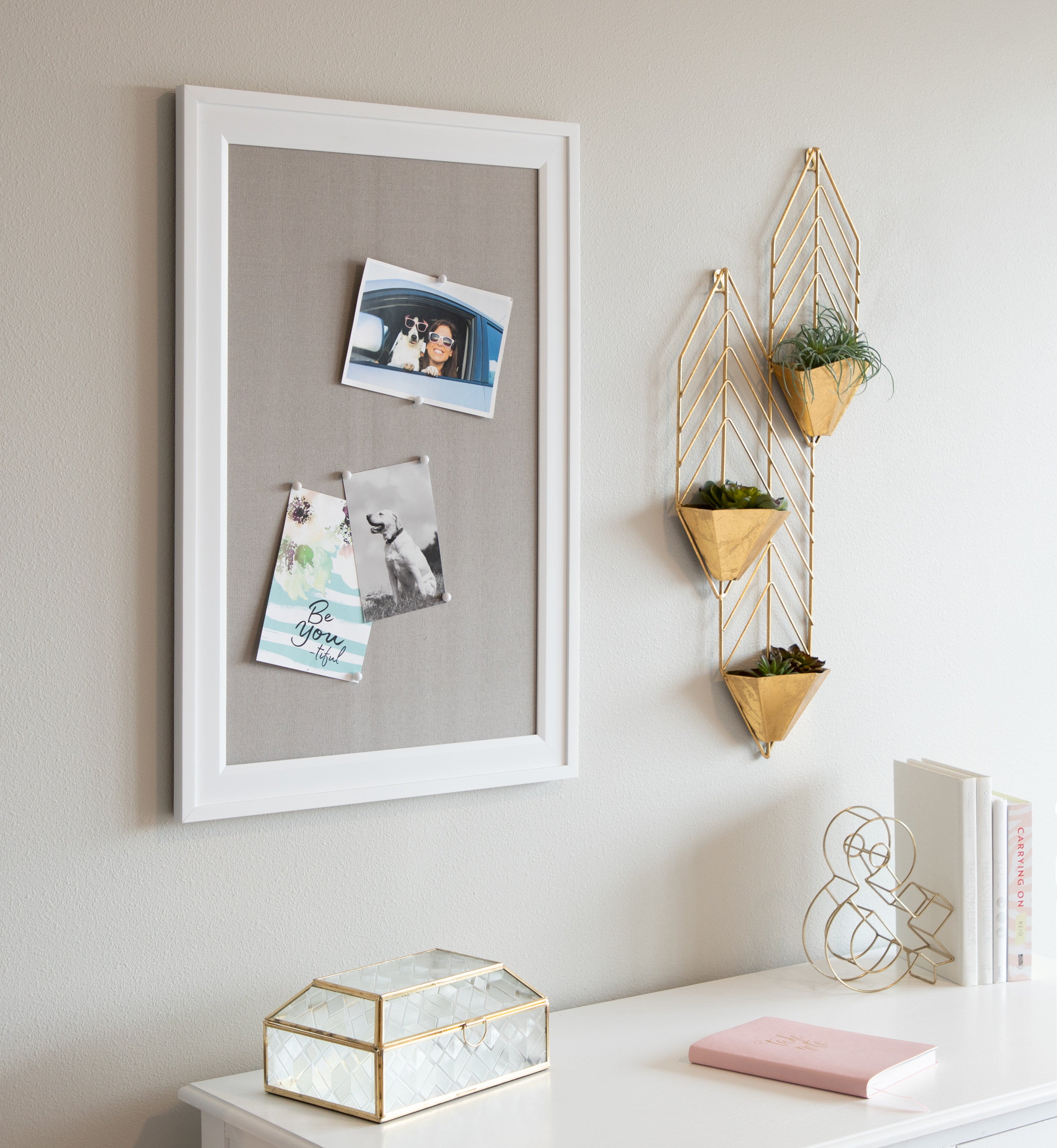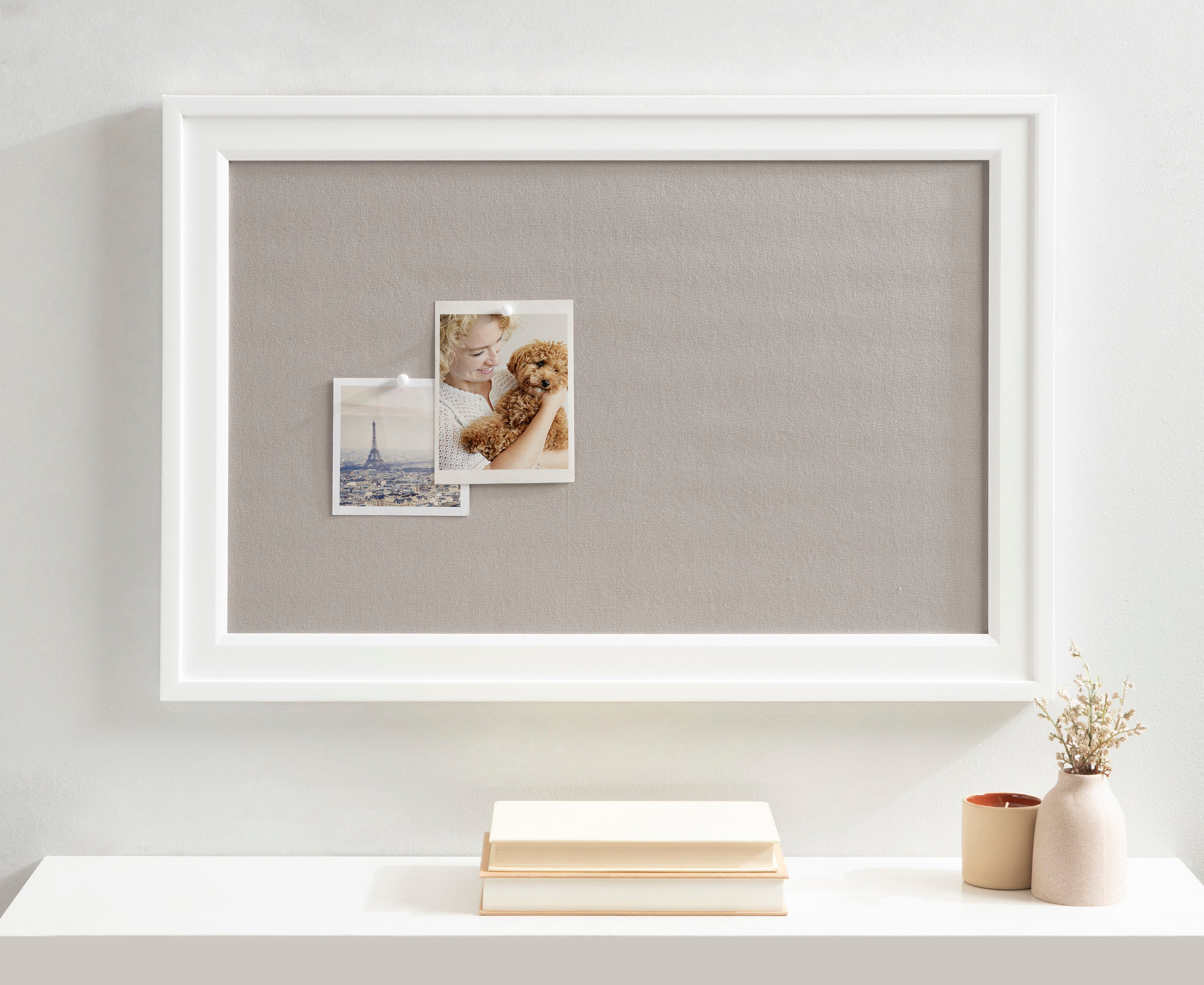 A transitional style frame surrounds the sturdy linen fabric pinboard to create home or office organization that's as decorative as it is functional. It's the wall-mounted memo board you didn't know you needed! With the casual look and the soft linen fabric padded pinboard area, it'll look fantastic in your entry way, kitchen, or home office.