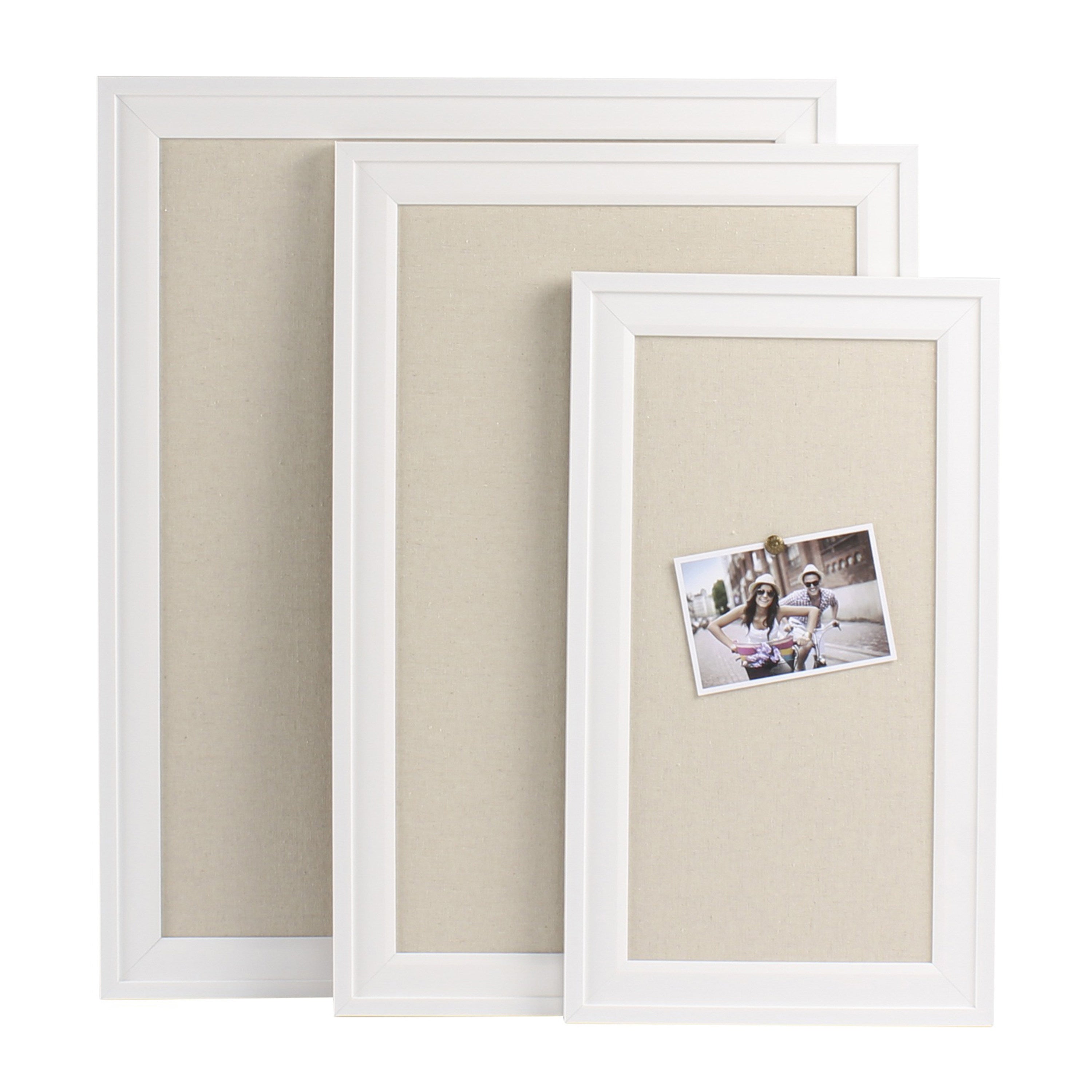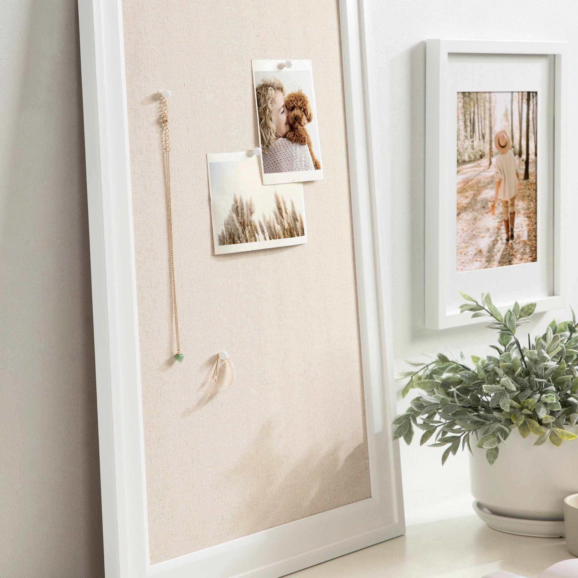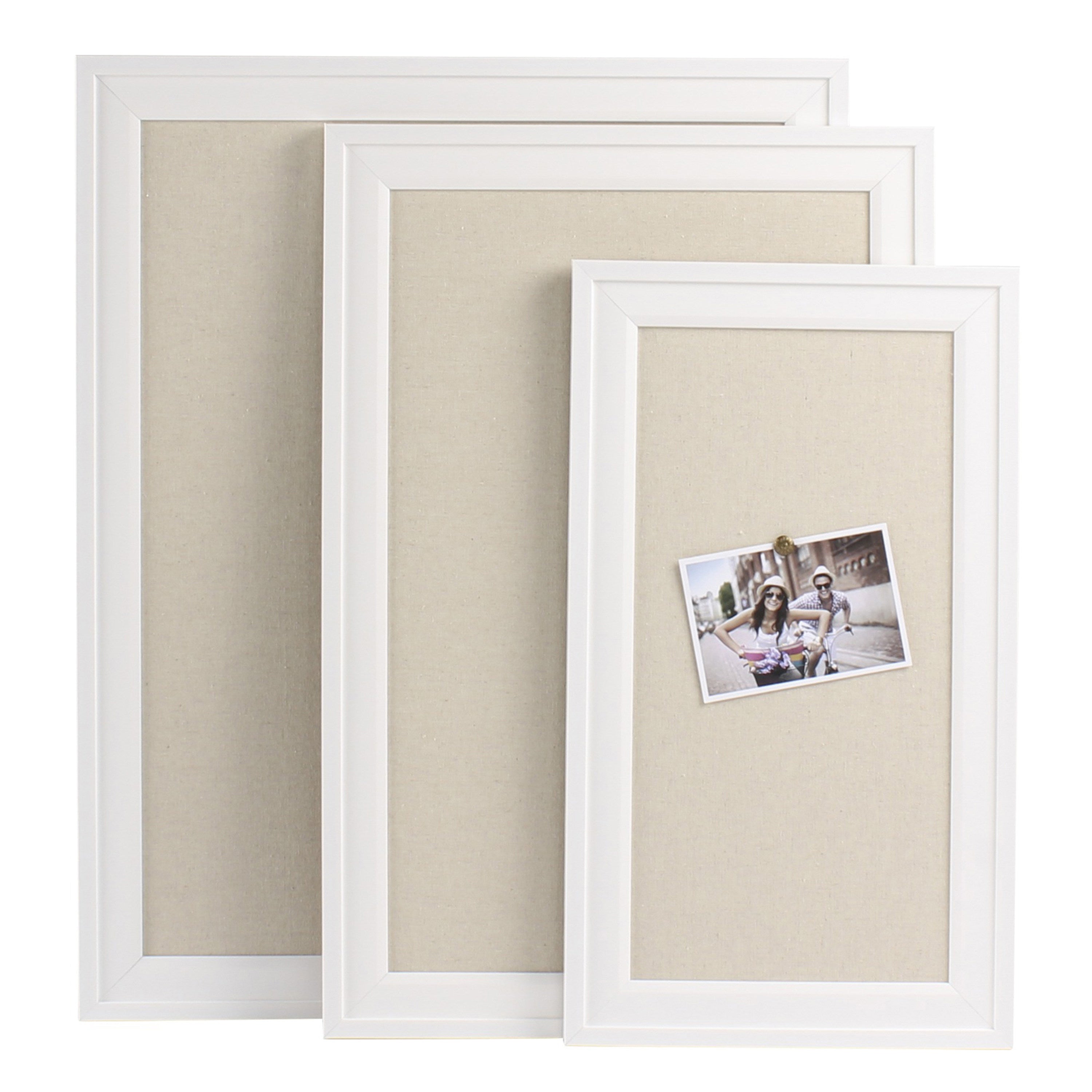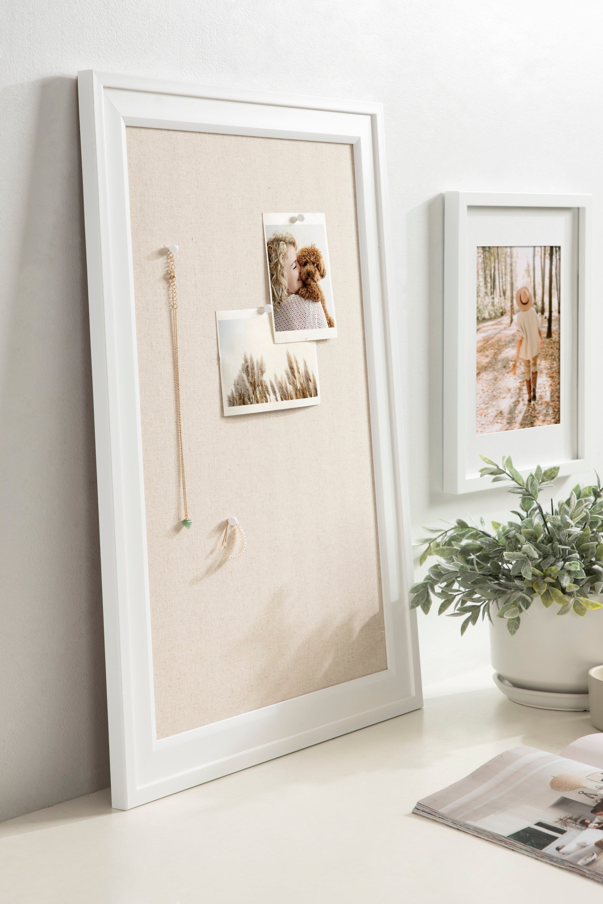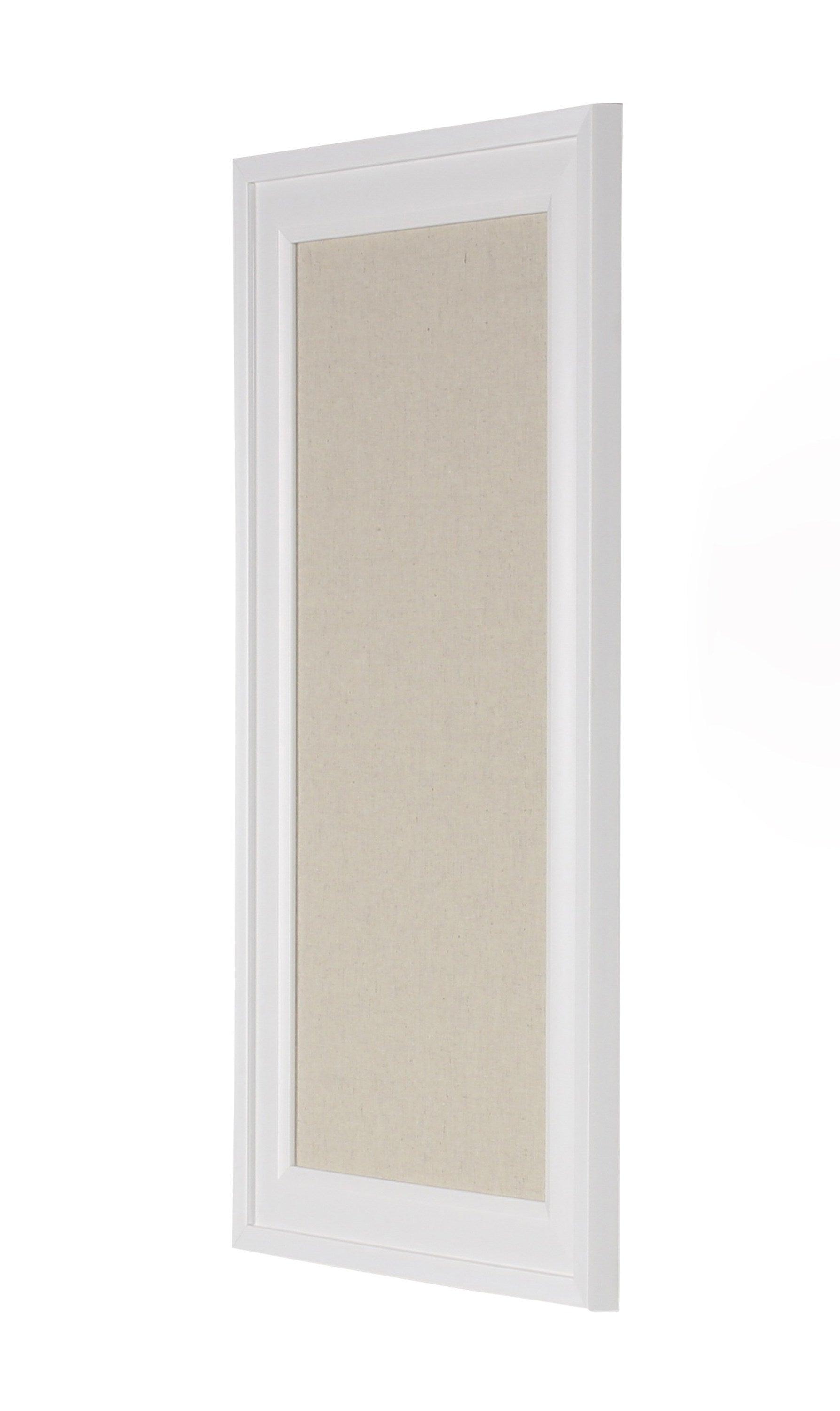 A transitional style frame surrounds the sturdy linen fabric pinboard to create home or office organization that's as decorative as it is functional. It's the wall-mounted memo board you didn't know you needed! With the casual look and the soft linen fabric padded pinboard area, it'll look fantastic in your entry way, kitchen, or home office.