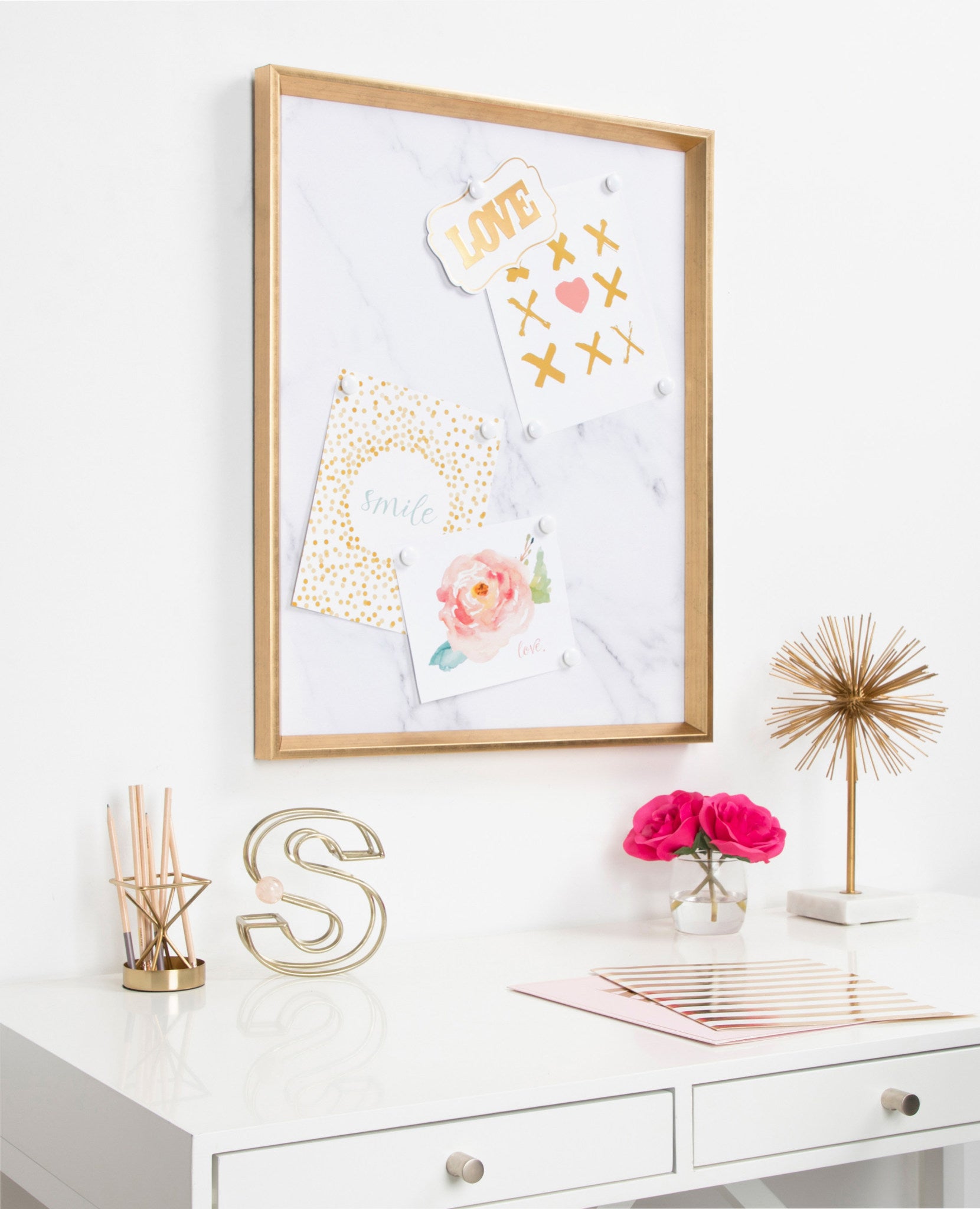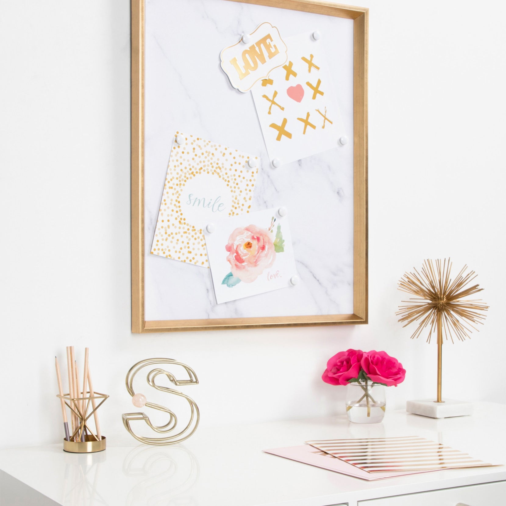 Upscale your home organizing system with the Calter framed magnetic vision board. It's a wall organization board with a beautifully designed printed magnetic stretched canvas surface that makes posting all your important memos fun to do.