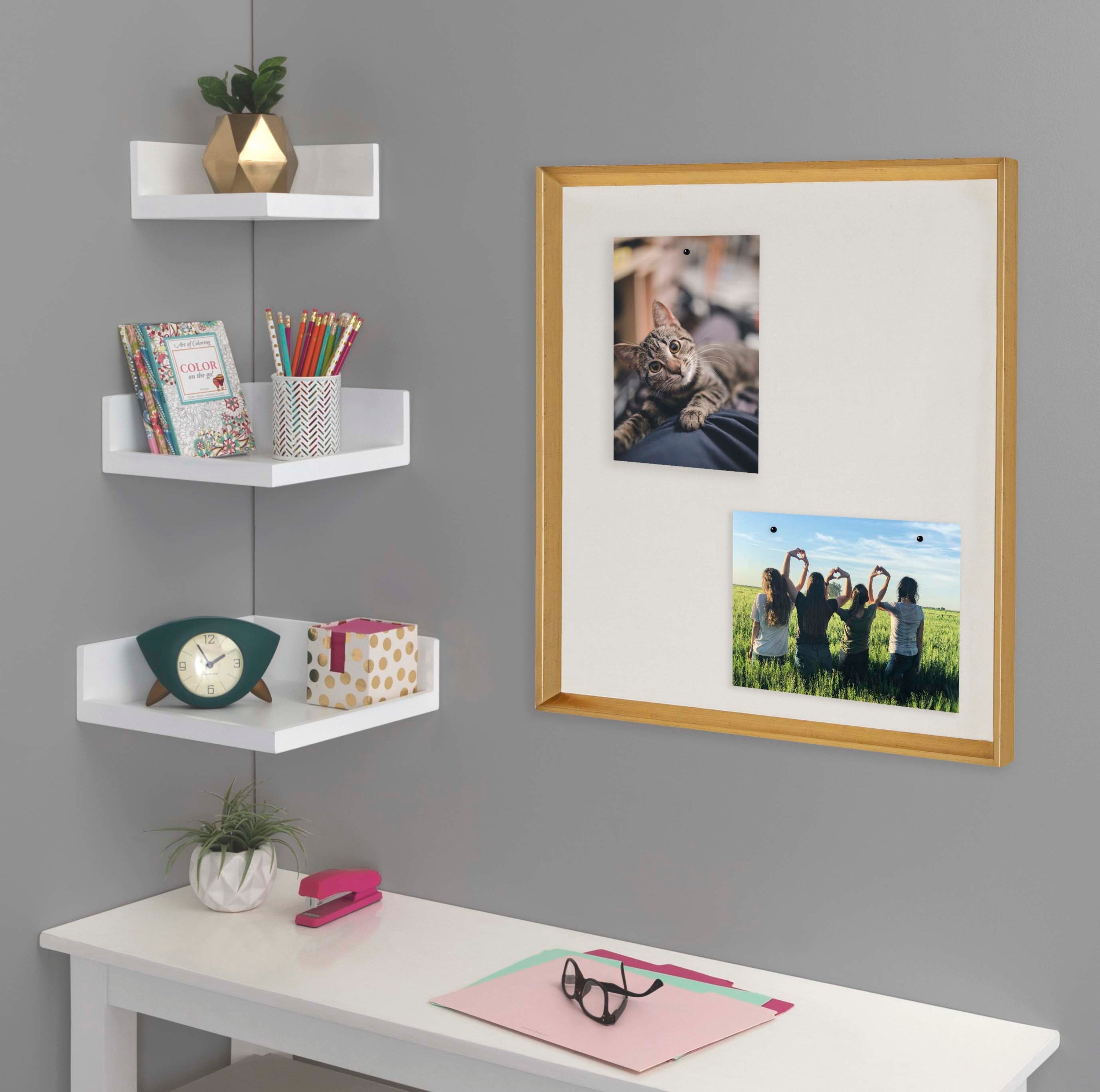 Create a great looking and accessible communication center for your home or office when you use the Calter framed pinboard. You'll be organized and in style pinning your photos, children's artwork, your to-do list, etc.! This functional framed pinboard has a soft linen fabric padded area that leaves lots of room for organizing in your entryway, kitchen, or home office.