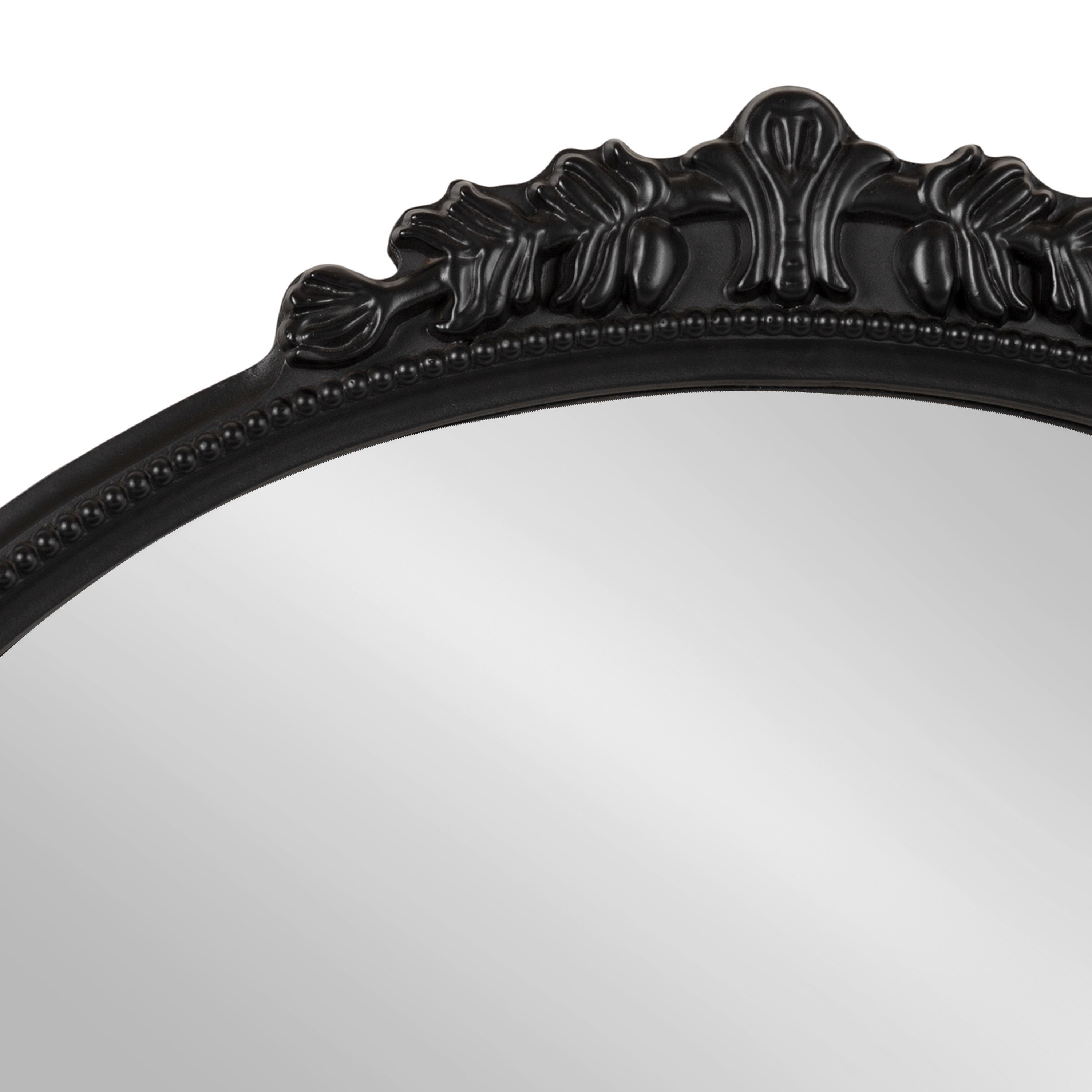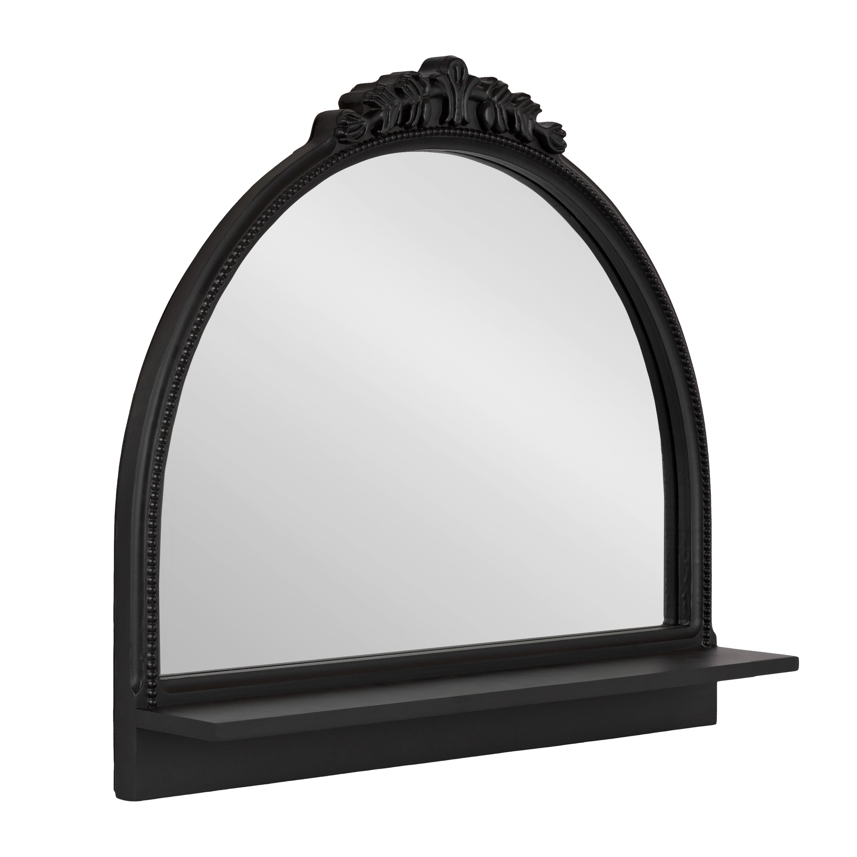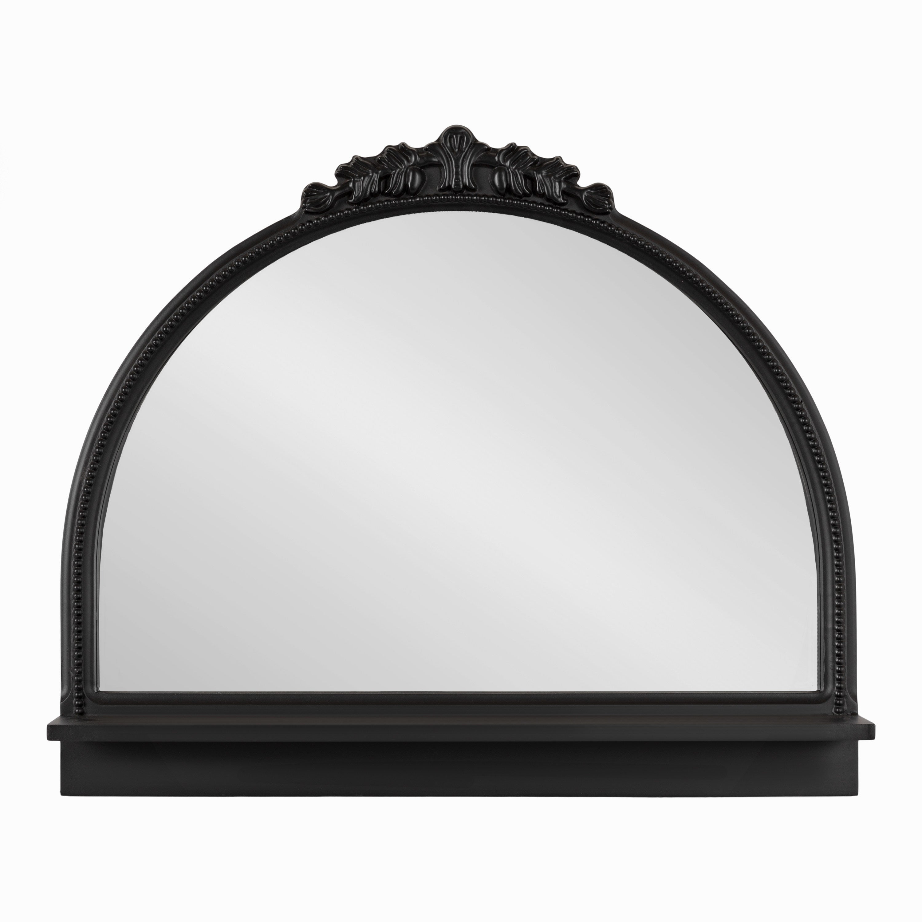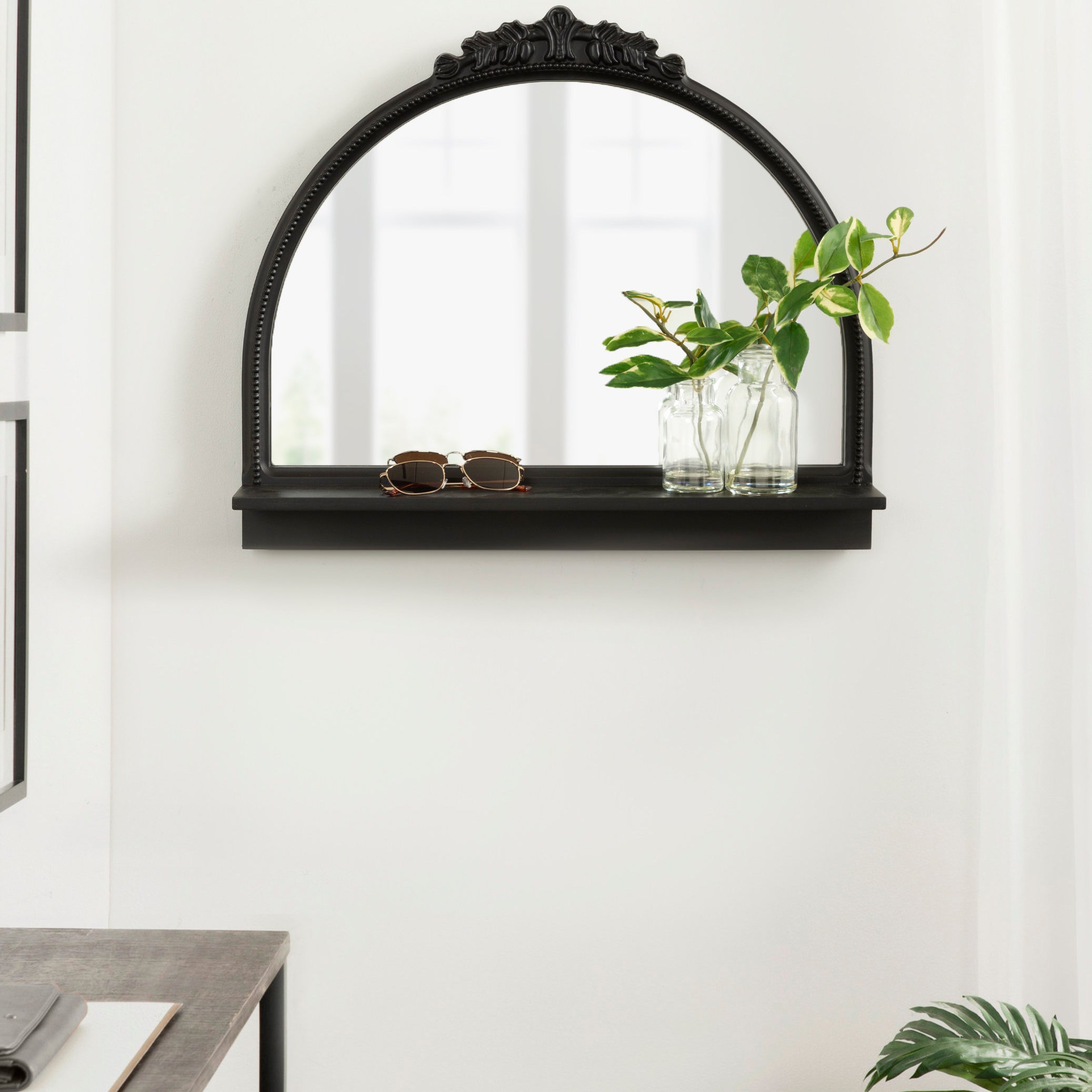 The Dellona wall mirror is here to bring a brilliant and decadent accent to your vintage home decor. This wall mirror features a baroque-inspired design, with an ornate crown and beaded detailing down its beautiful frame. It also boasts a useful shelf for either display or storage possibilities. Display the glamorous Dellona mirror as a bedroom dresser mirror or a decorative focal point amongst your living room, entryway, or bathroom decor.