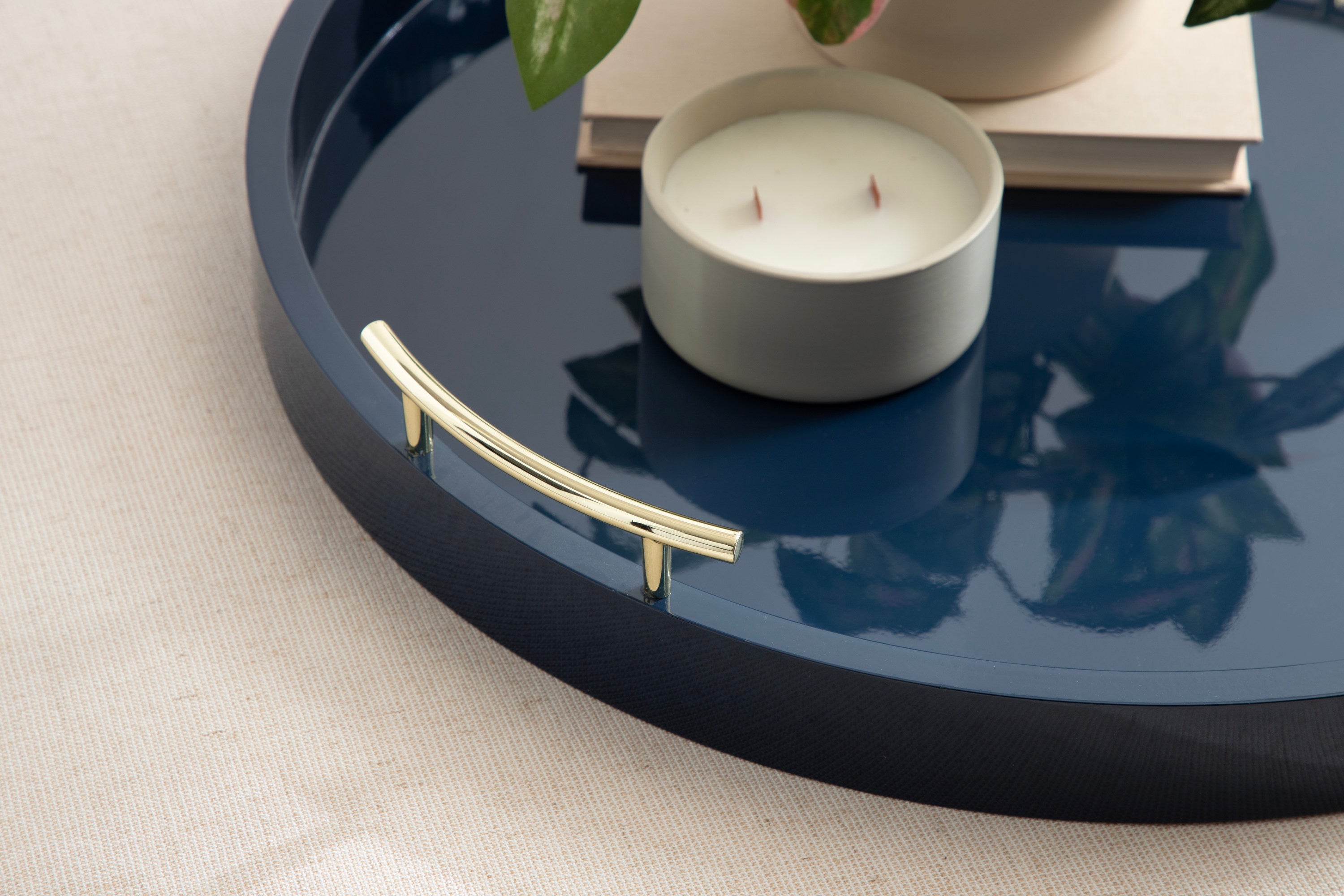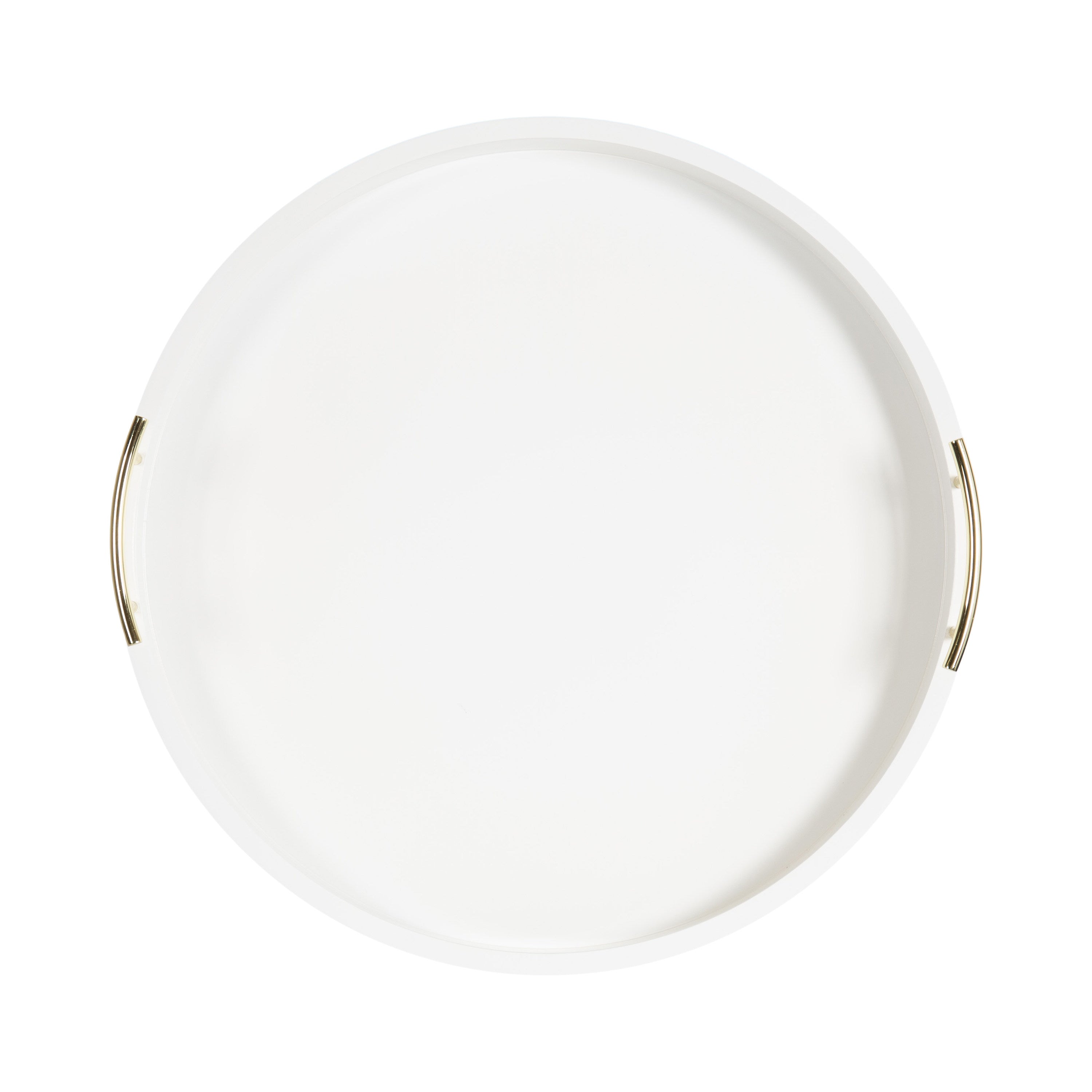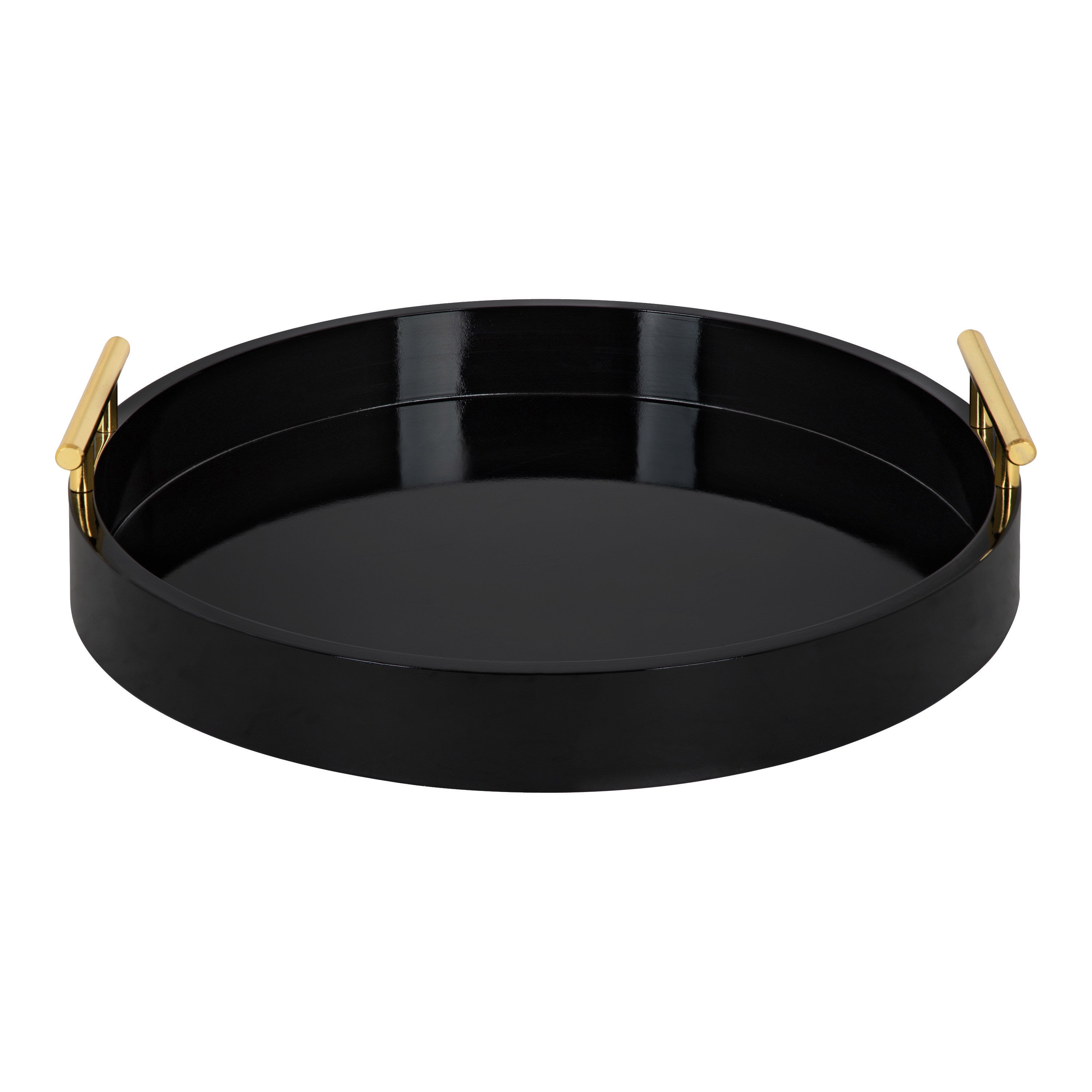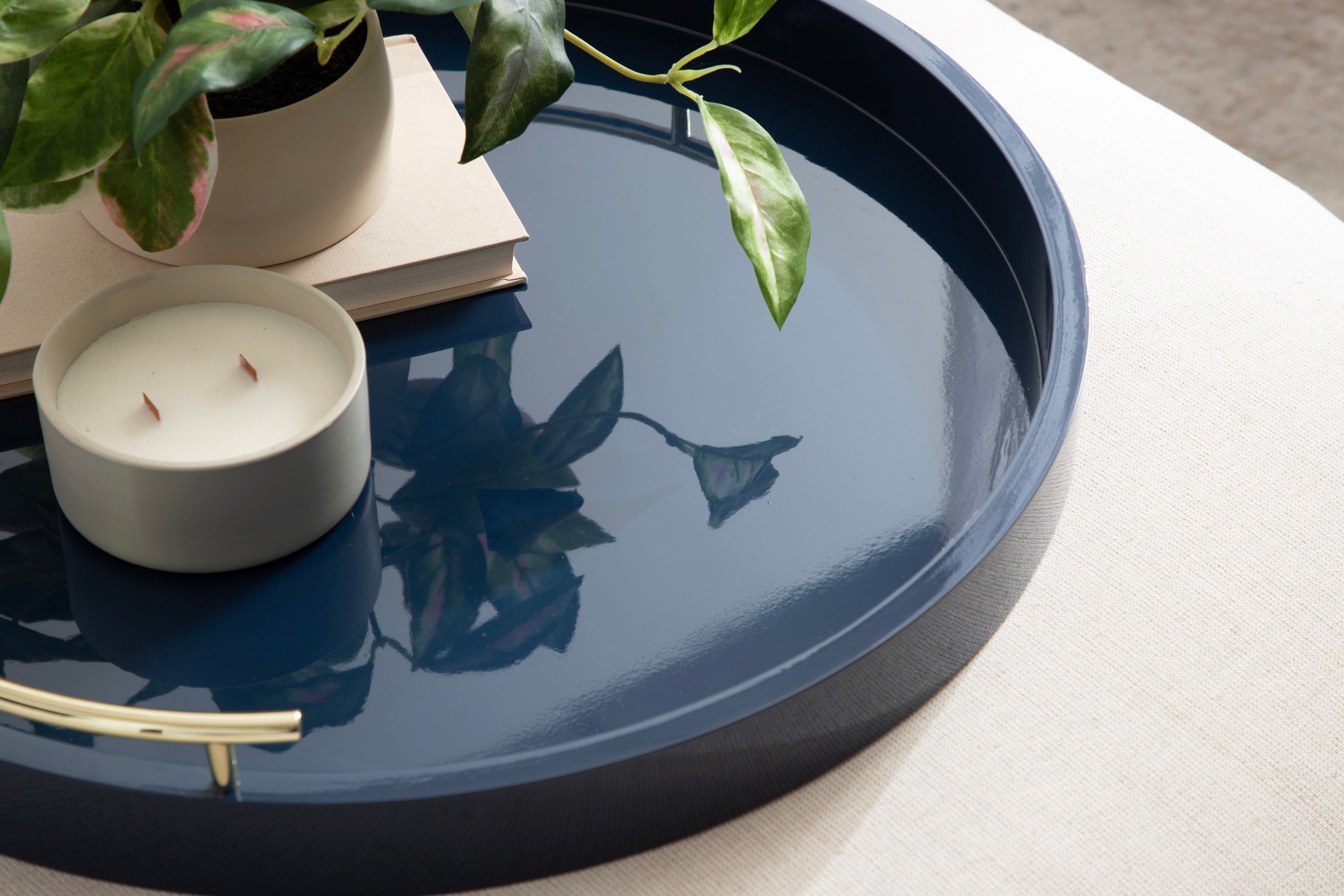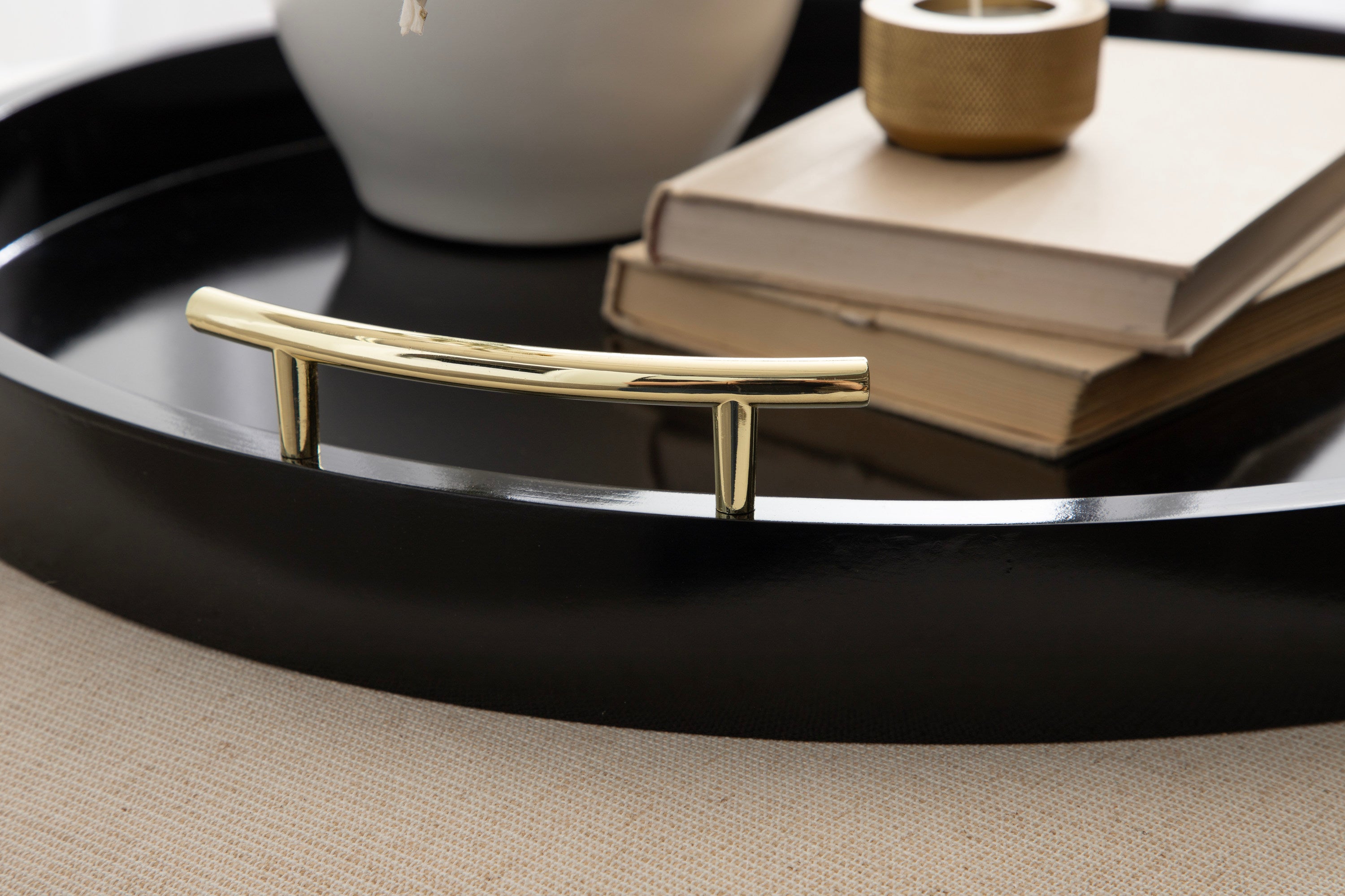 The modern round shape and metropolitan-chic style of the Lipton round tray creates an elegant accent for your home. The smaller surface size makes for a slightly demure presence but the lovely finish and metal handles splash out in all glam! Create a cosmopolitan vibe with this sophisticated accent for storage and display of keys, succulents, media remotes, books, and more!