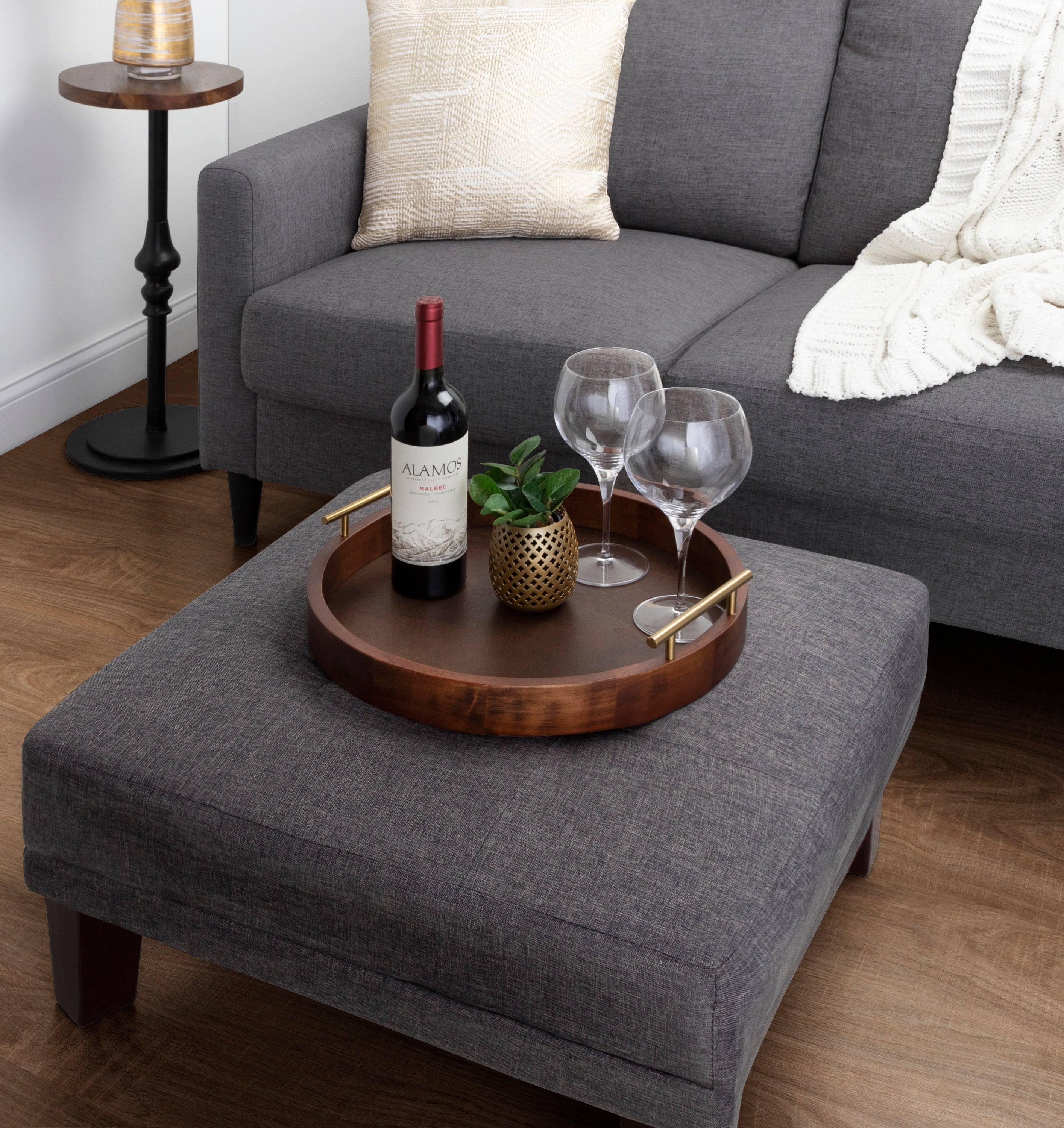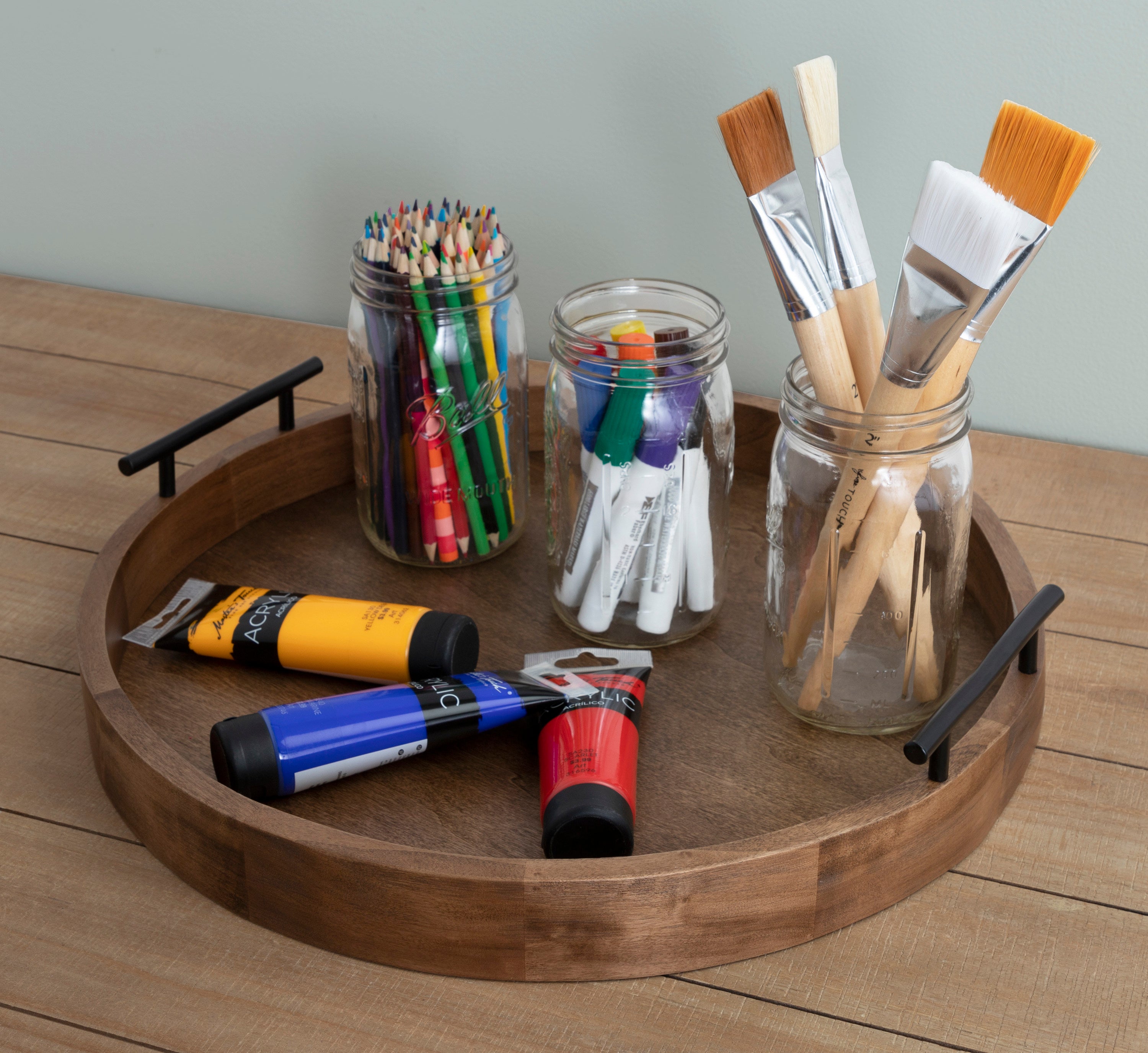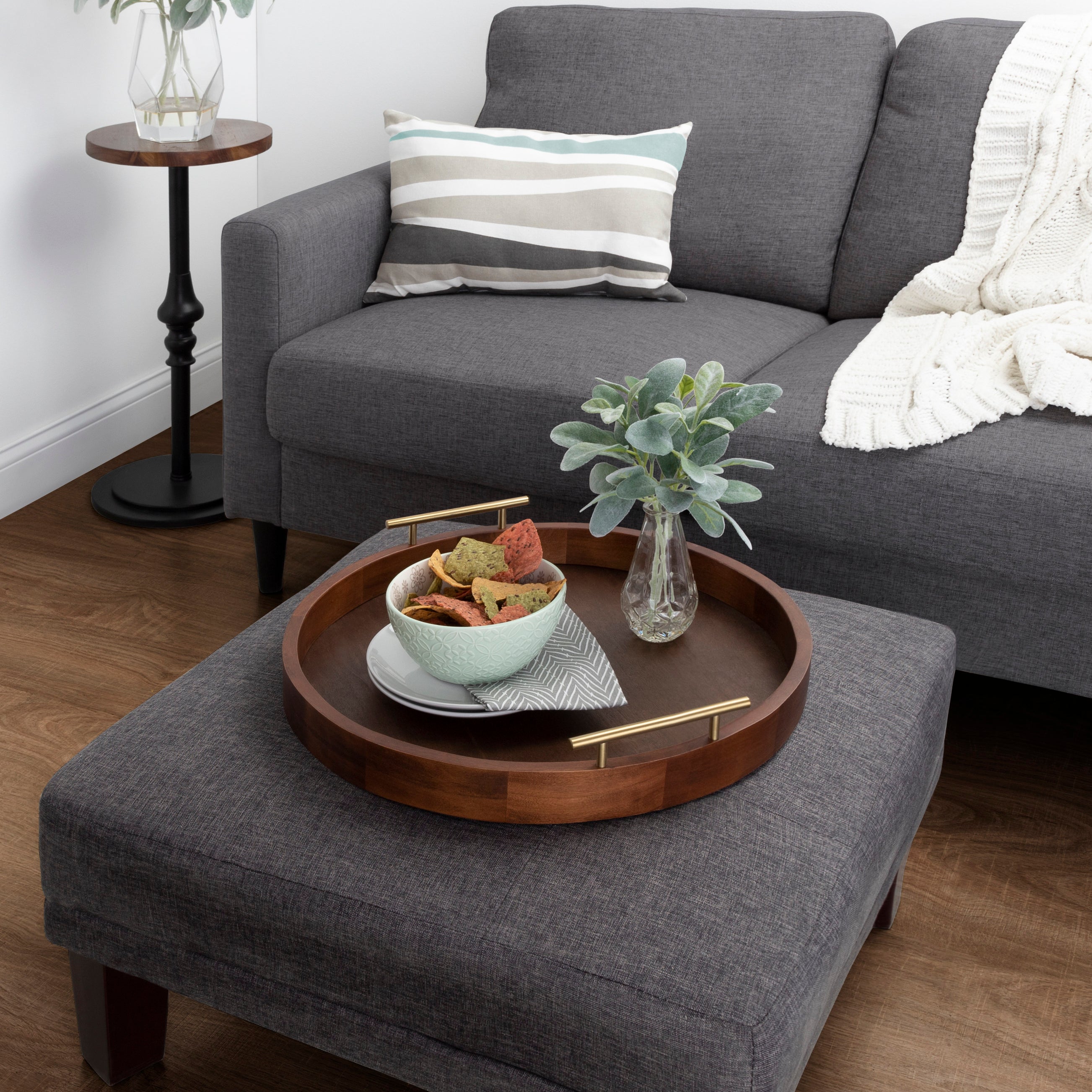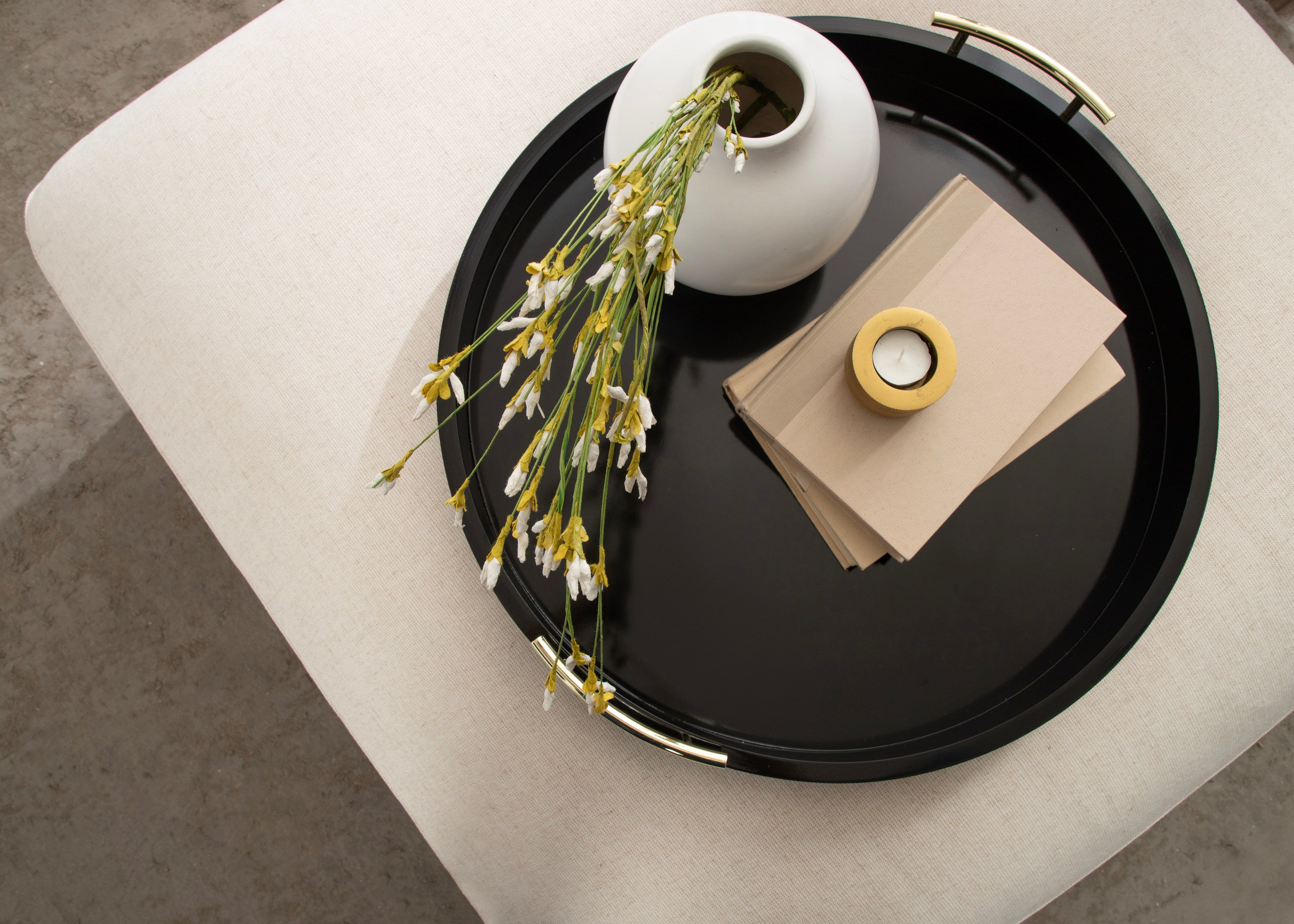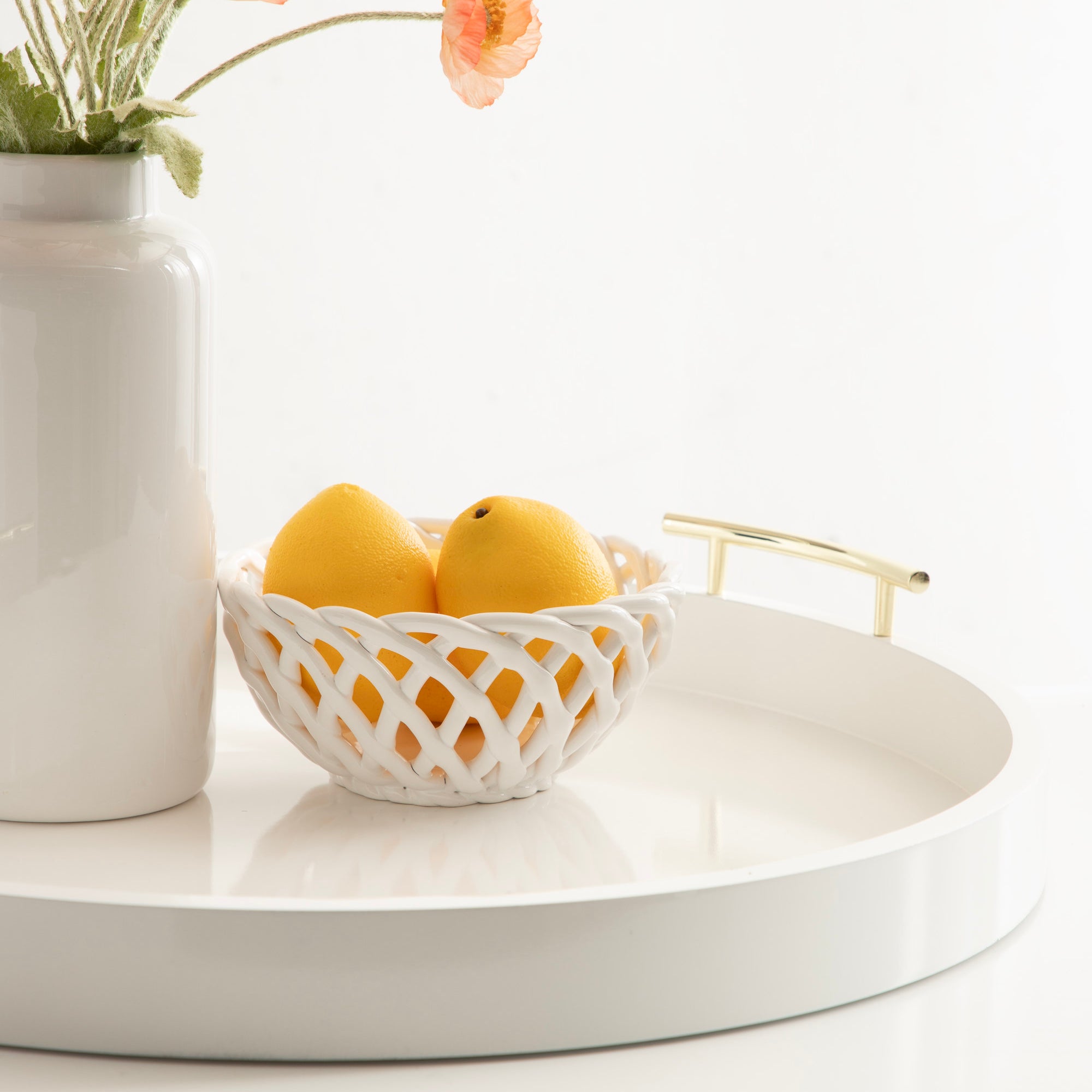The modern round shape and metropolitan-chic style of the Lipton round tray creates an elegant accent for your home. The smaller surface size makes for a slightly demure presence but the lovely finish and metal handles splash out in all glam! Create a cosmopolitan vibe with this sophisticated accent for storage and display of keys, succulents, media remotes, books, and more!