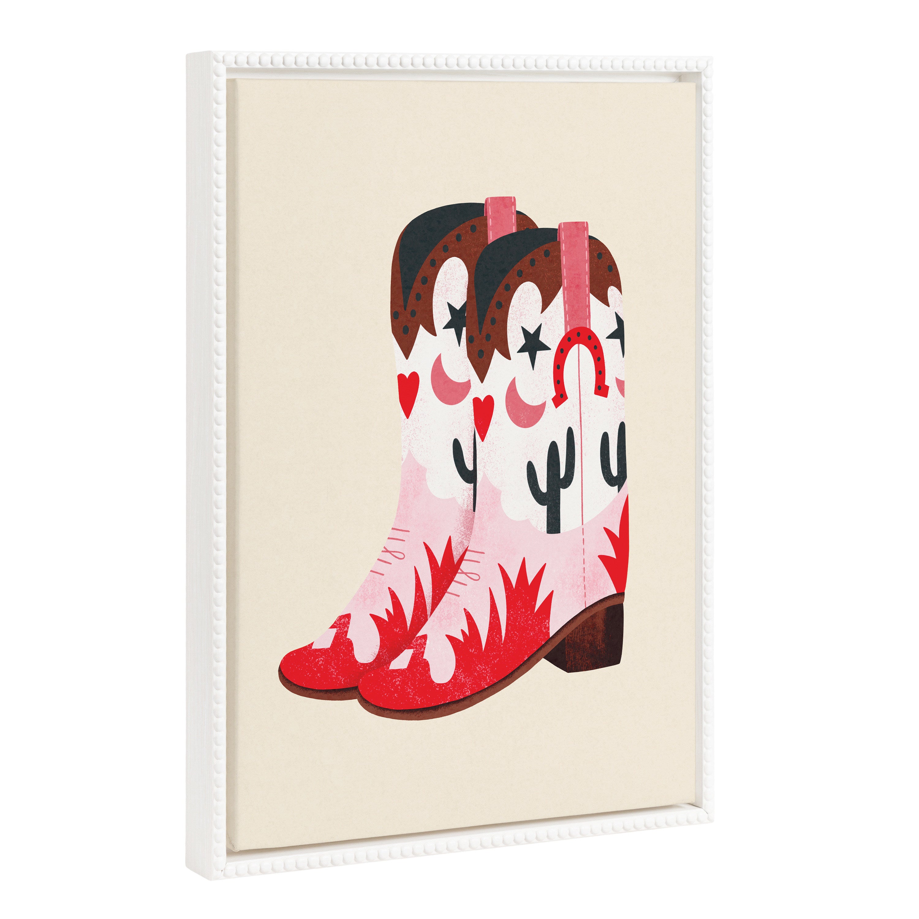 Showcasing stylish cowgirl boots, this canvas wall art by Tània García infuses a bit of Western charm into your space. Printed and framed in the USA in Waunakee, Wisconsin, this vintage beaded framed floating canvas art will be a pleasure to look at every day in your living room, bedroom, office, or any room in the home. This art also makes an excellent gift for birthdays, holidays, or house-warming parties. Printed on gallery-wrapped canvas and framed with a lightweight polystyrene frame, this wall art is easy to display on the wall.