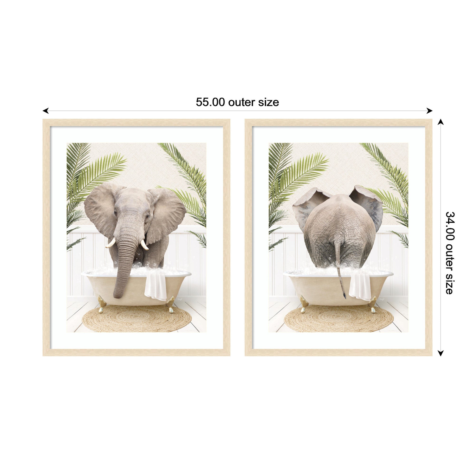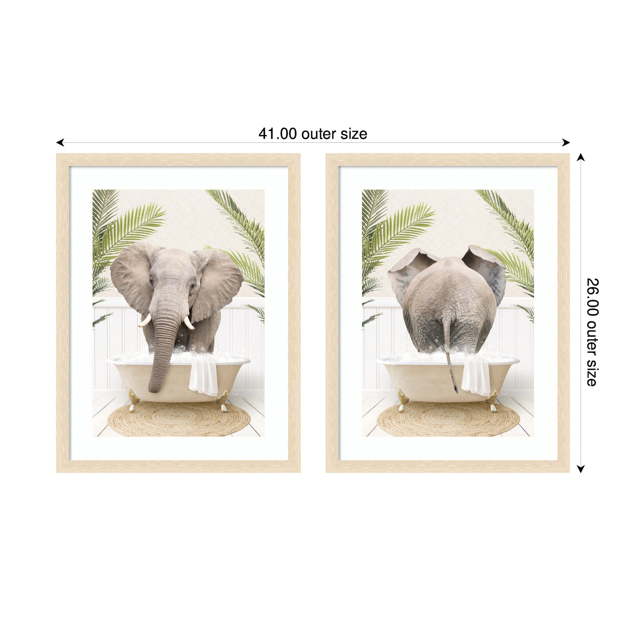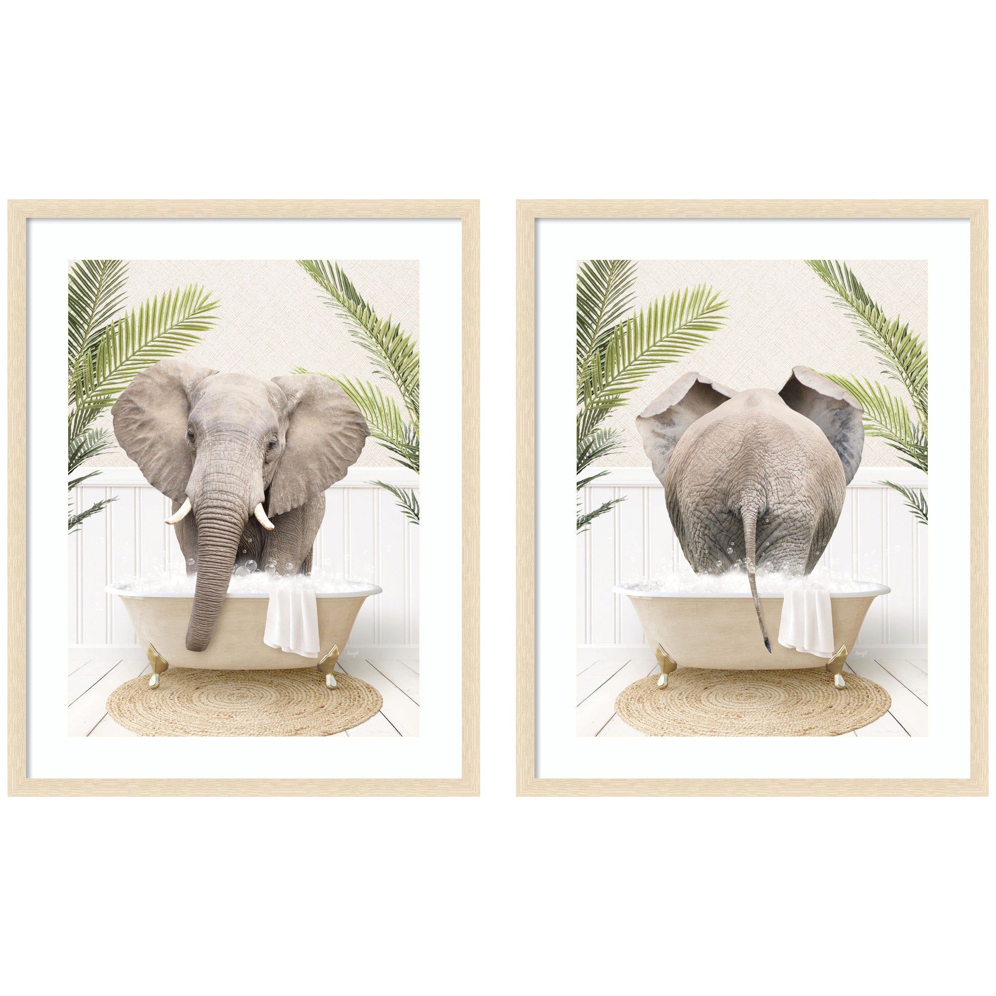 Elephant Palm Bathtub 2 Piece Framed Wall Art Print Set by Amy Peterson