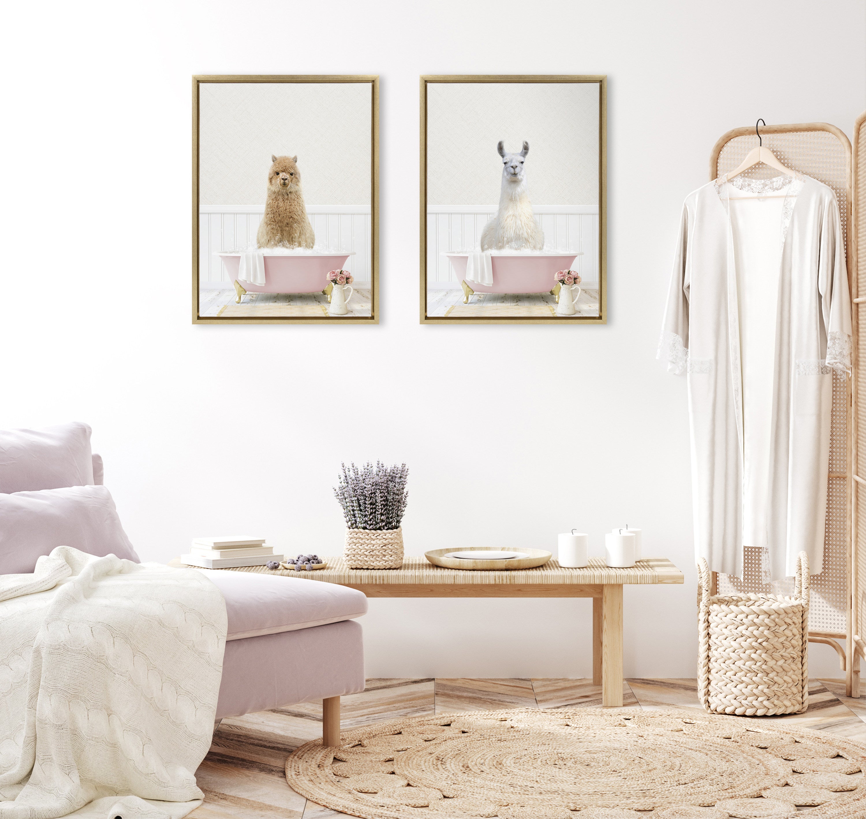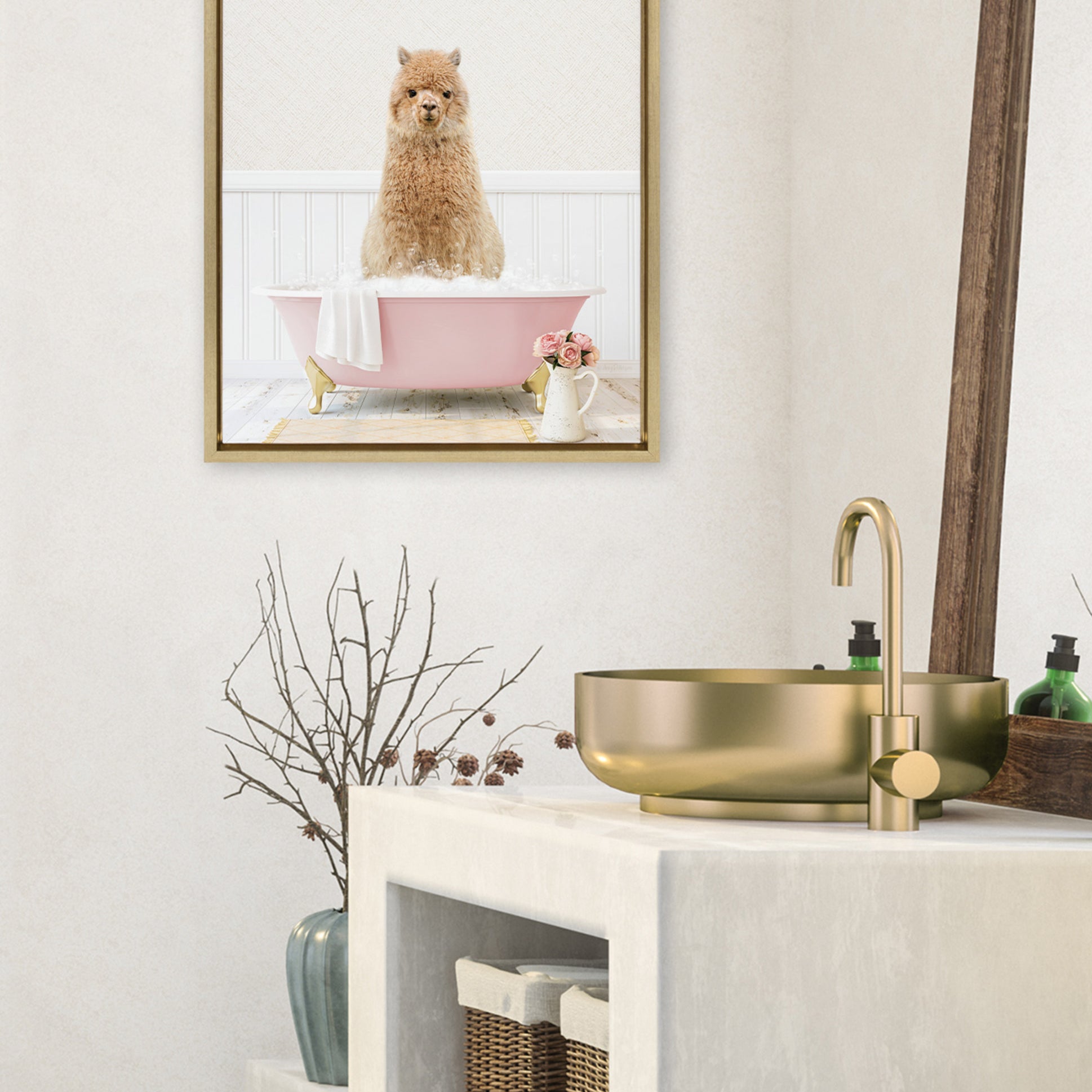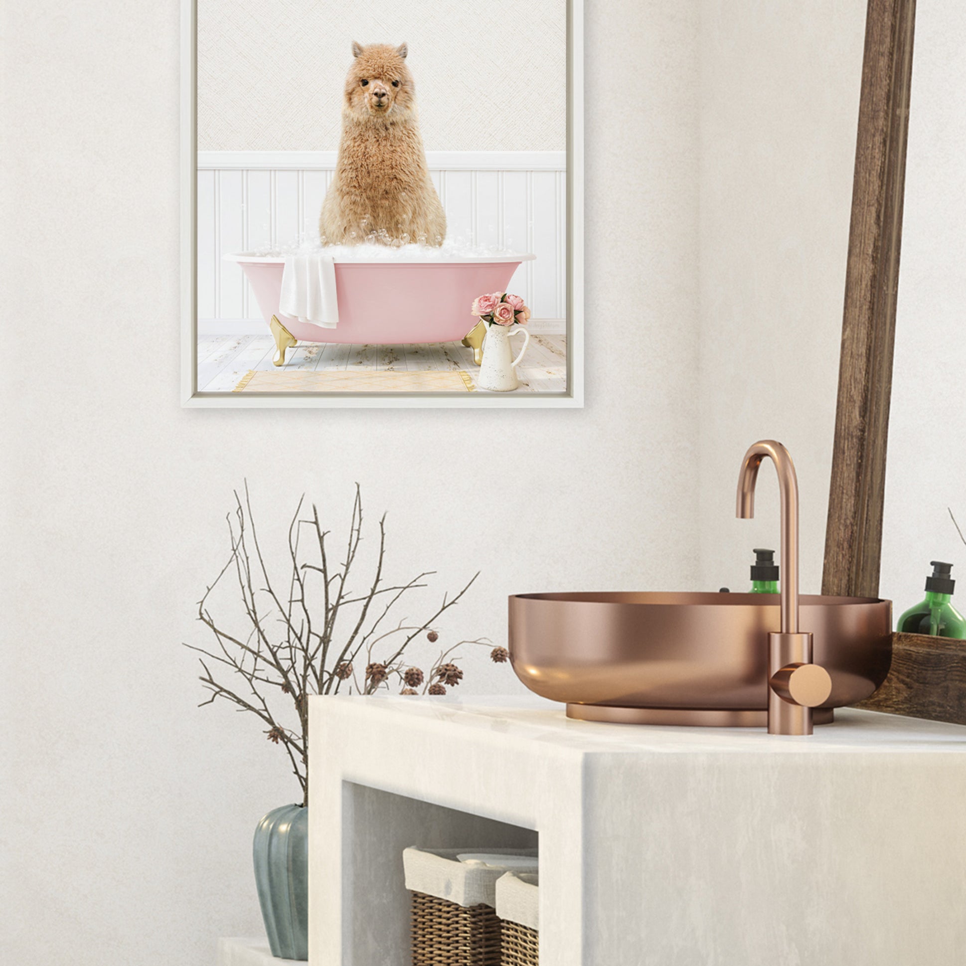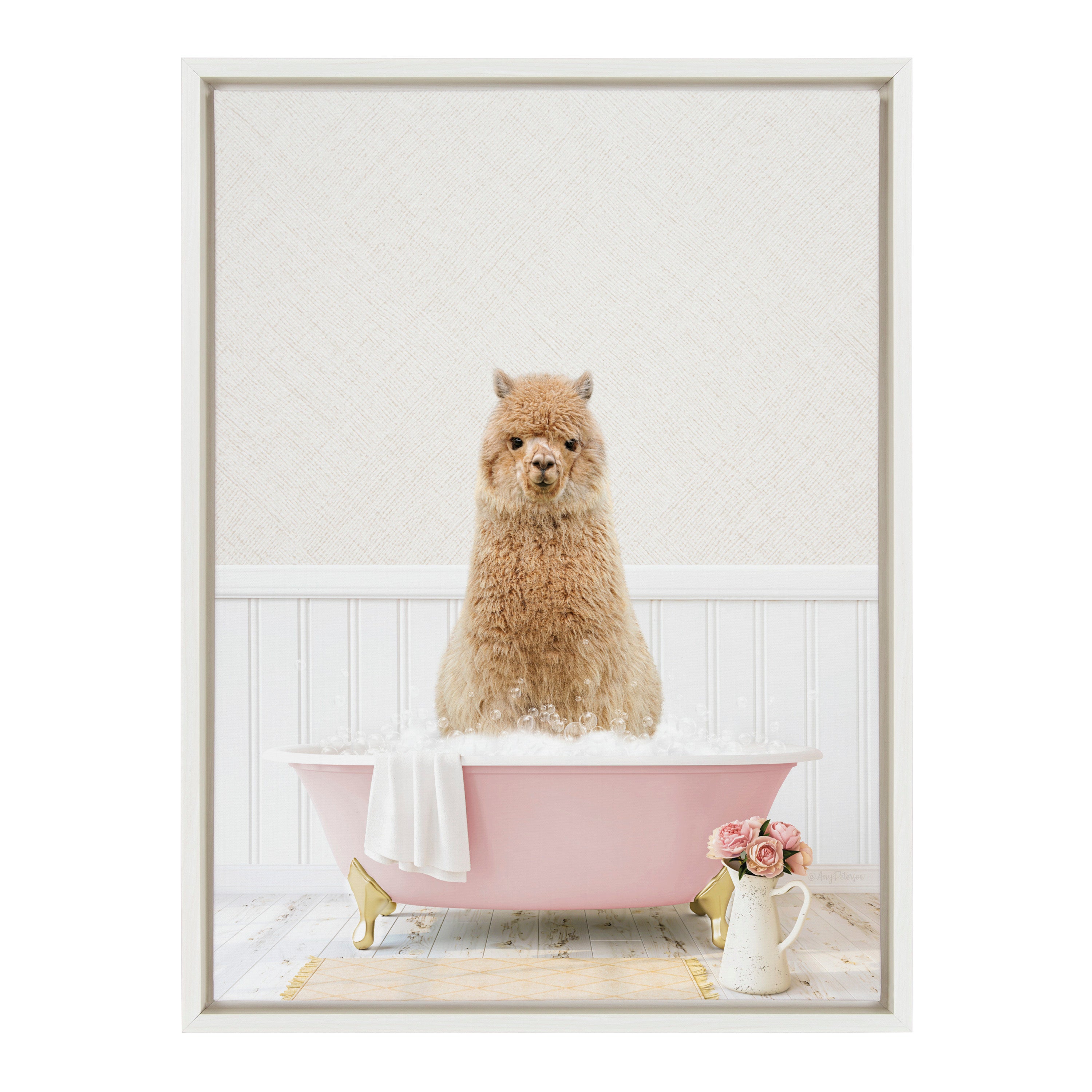 Sylvie Alpaca in Cottage Rose Bath Framed Canvas by Amy Peterson Art Studio